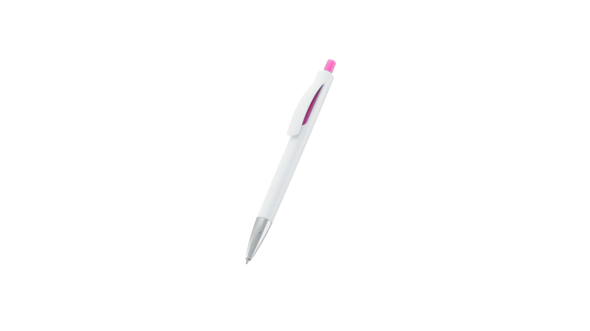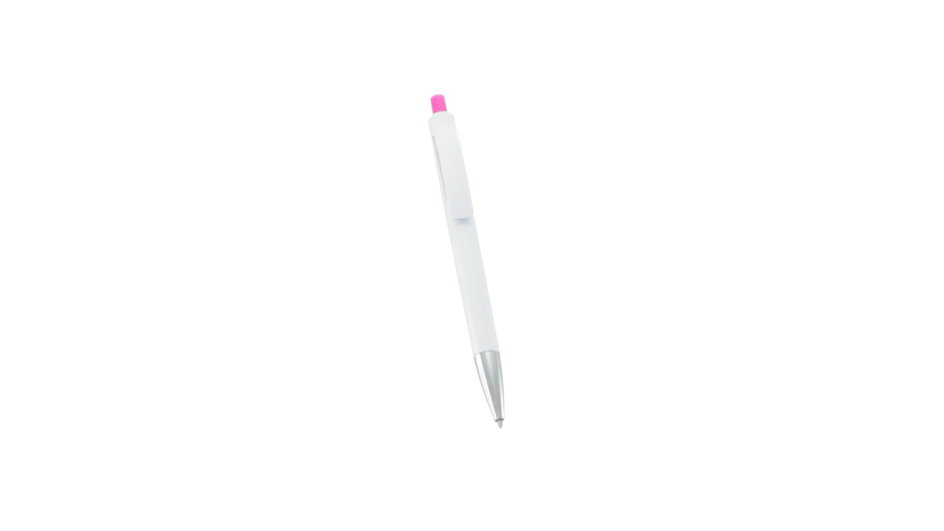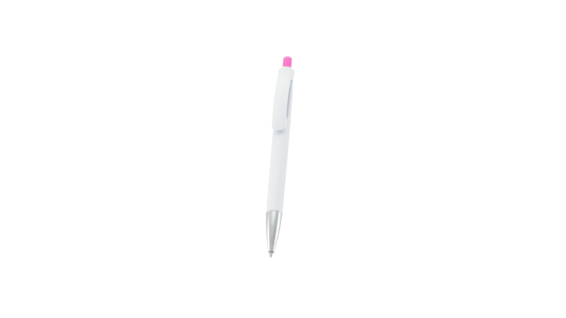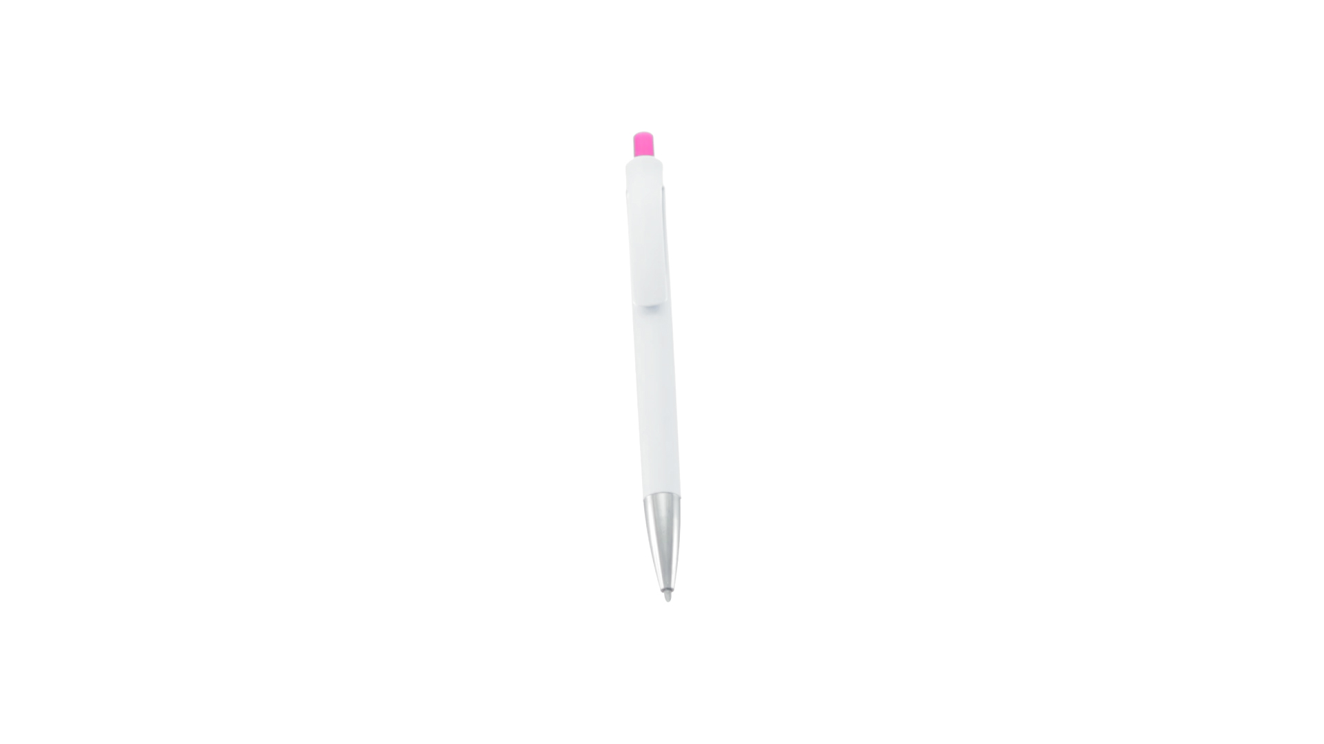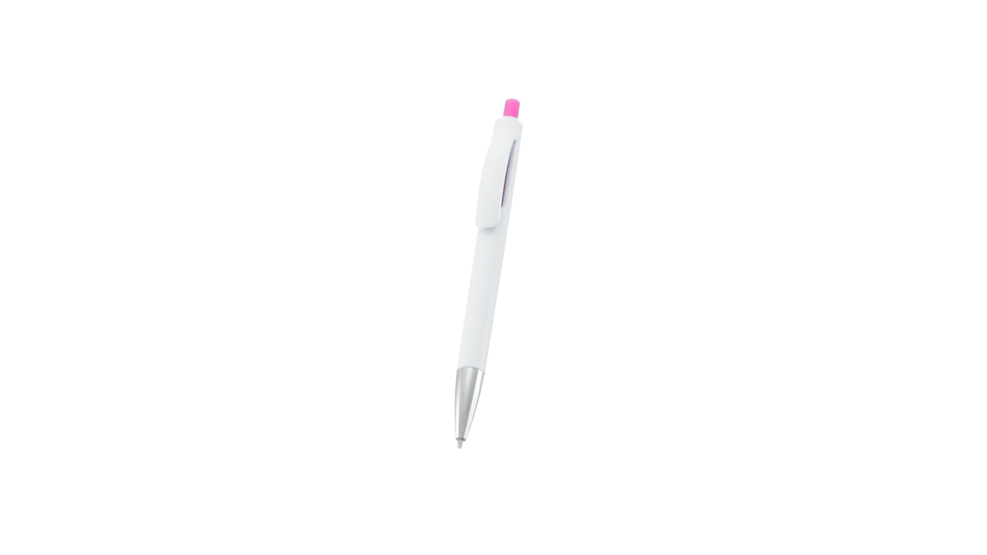 Druck-Kugelschreiber mit auffälligem zweifarbigem Design mit geschmeidigem Schaft in solidem Weiss und Kontrastdetails in glänzenden soliden Farben. Mit originellem gebogenem Clip in passender Farbe und glänzender Spitze. Blaue Tinte.