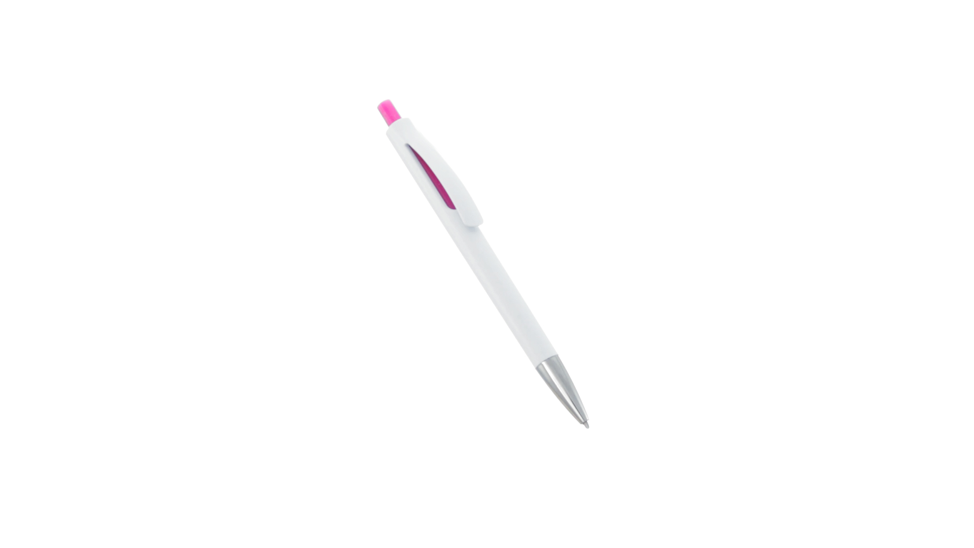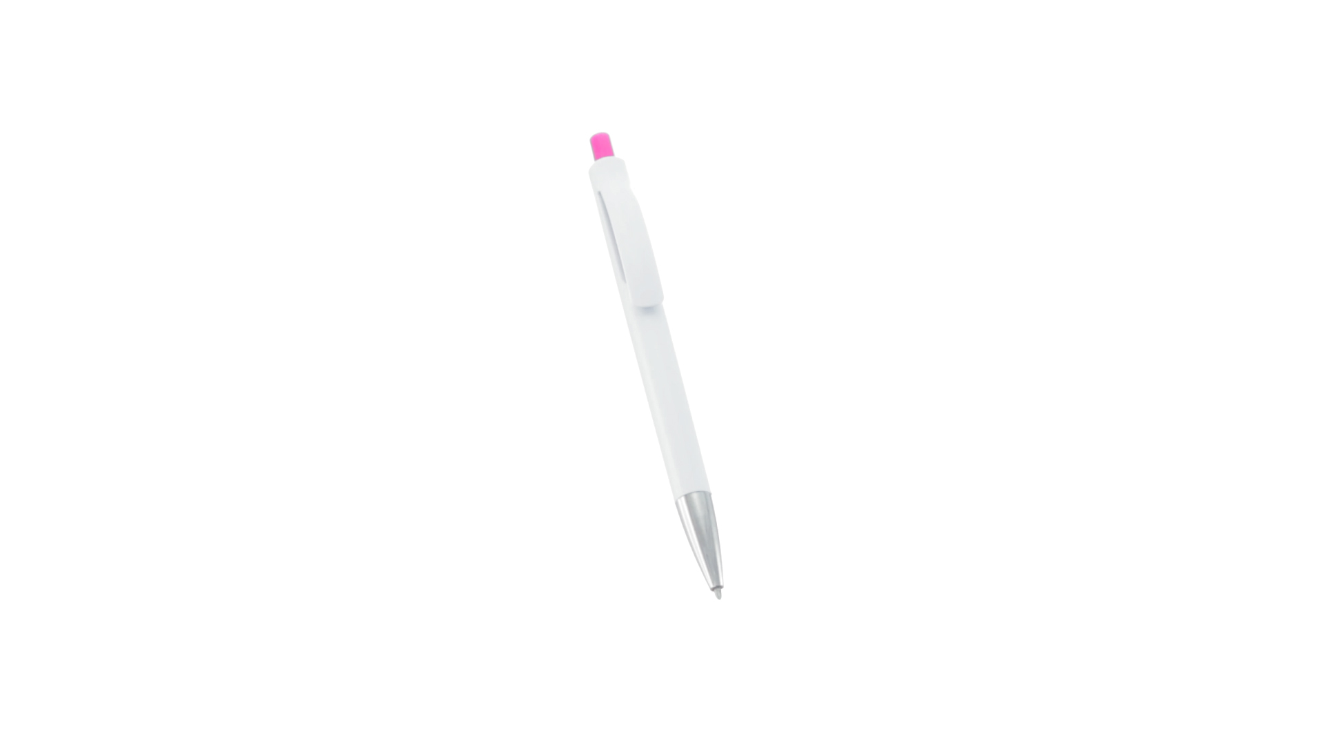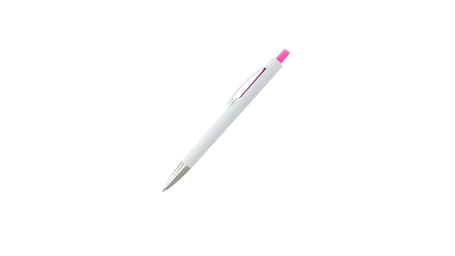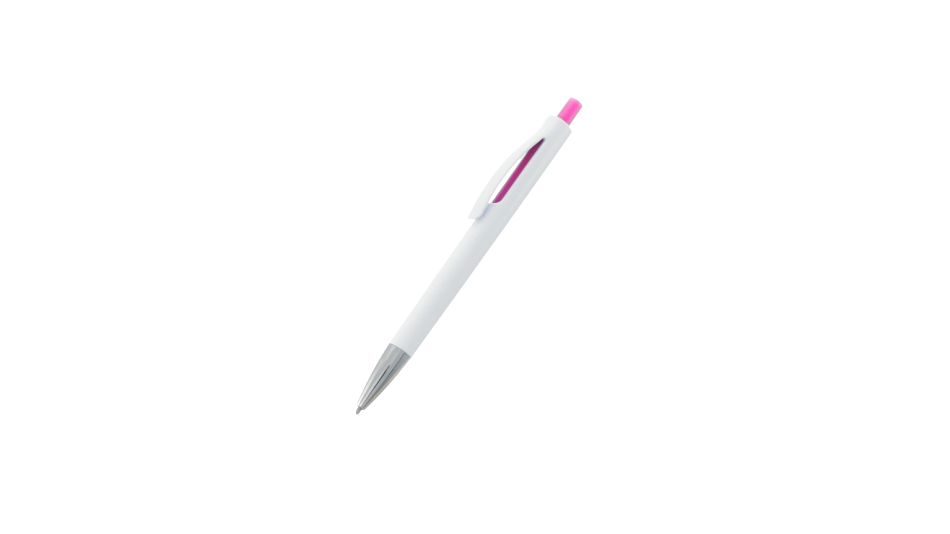 Druck-Kugelschreiber mit auffälligem zweifarbigem Design mit geschmeidigem Schaft in solidem Weiss und Kontrastdetails in glänzenden soliden Farben. Mit originellem gebogenem Clip in passender Farbe und glänzender Spitze. Blaue Tinte.