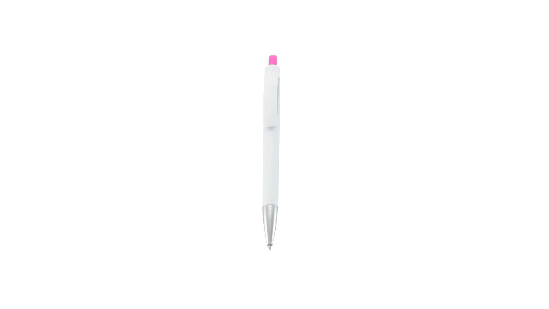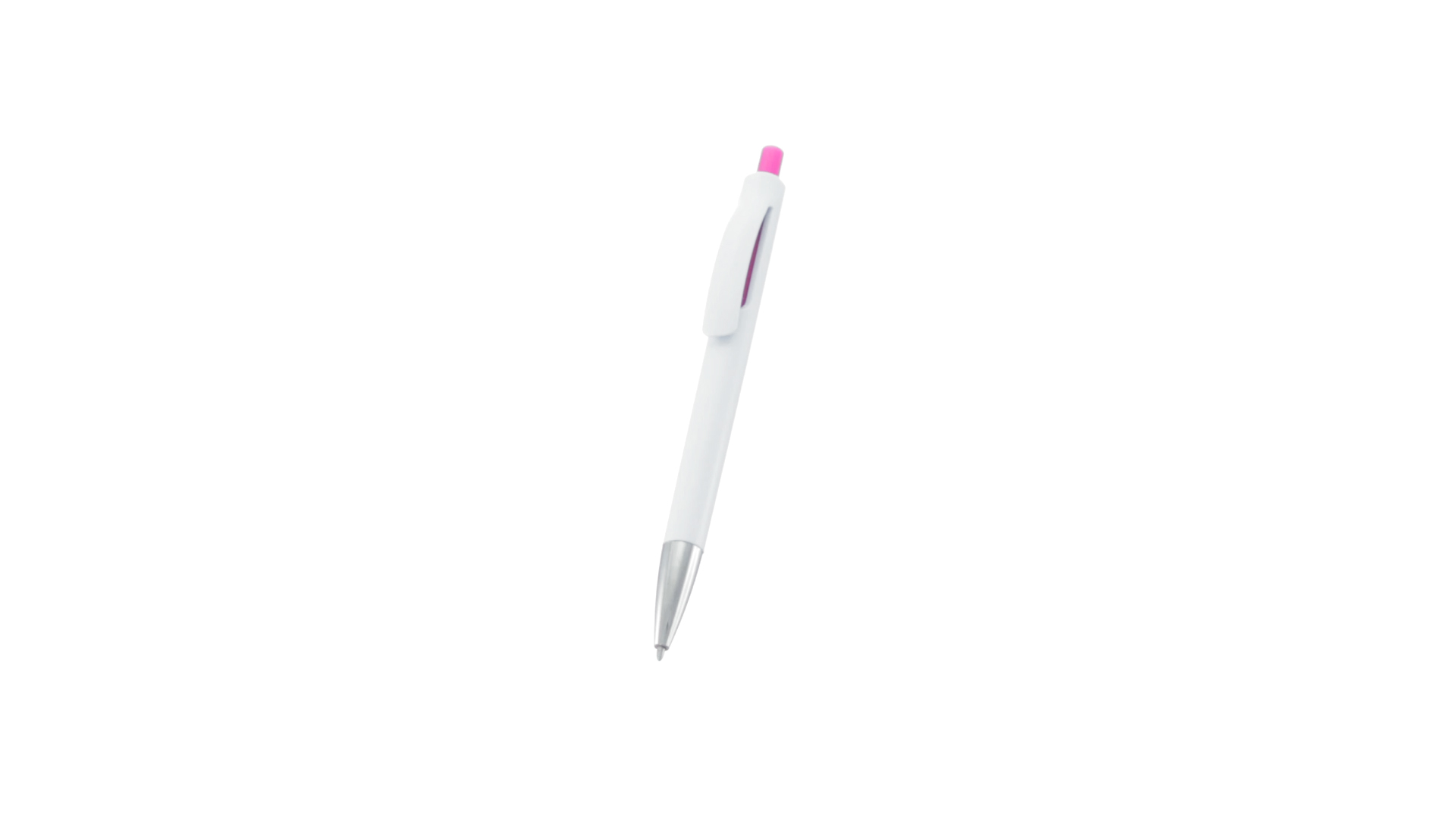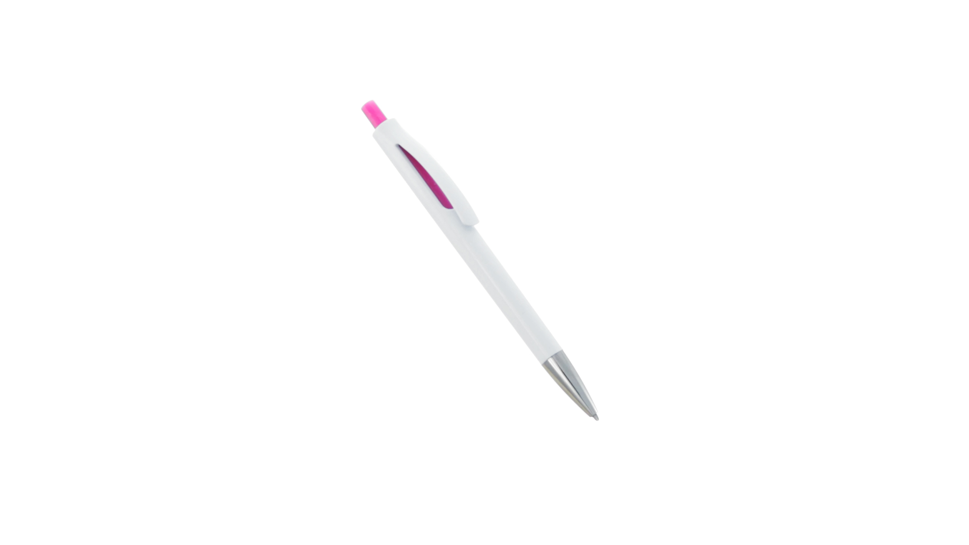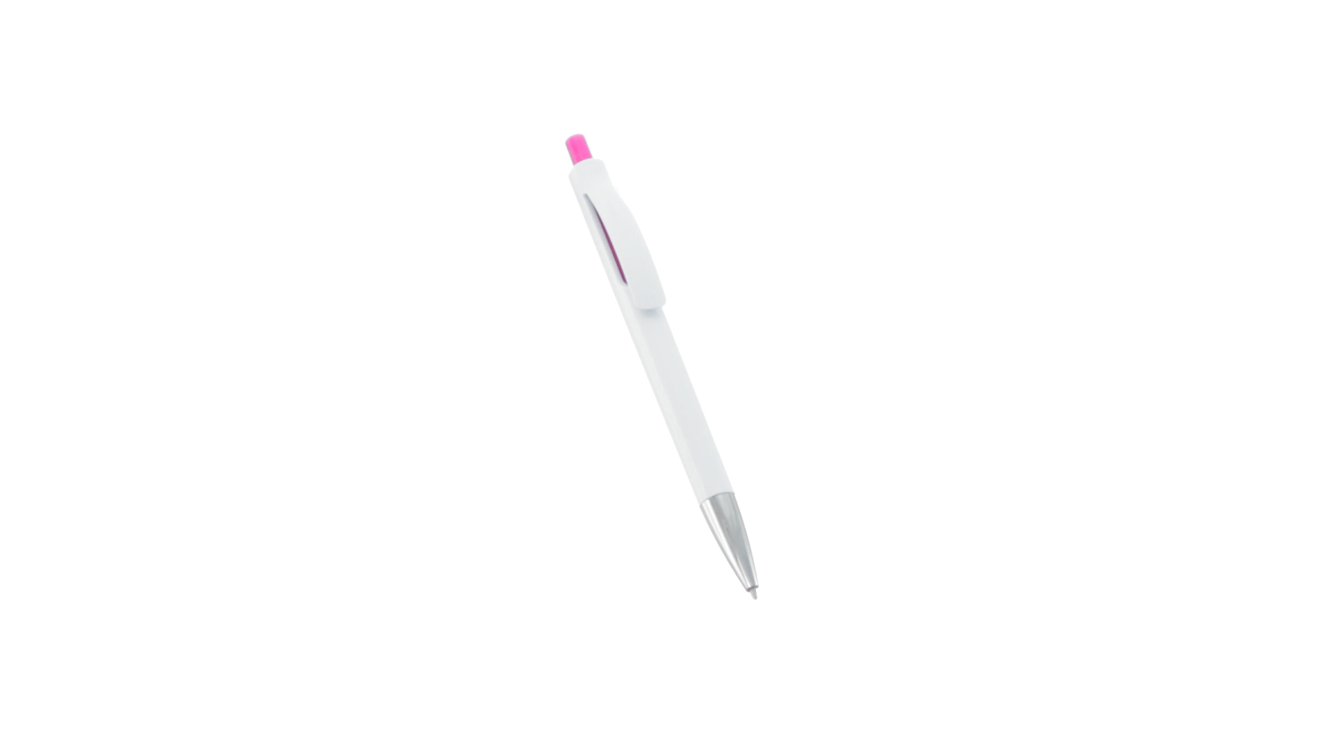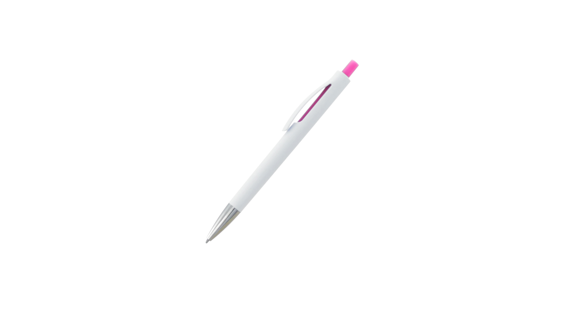 Druck-Kugelschreiber mit auffälligem zweifarbigem Design mit geschmeidigem Schaft in solidem Weiss und Kontrastdetails in glänzenden soliden Farben. Mit originellem gebogenem Clip in passender Farbe und glänzender Spitze. Blaue Tinte.