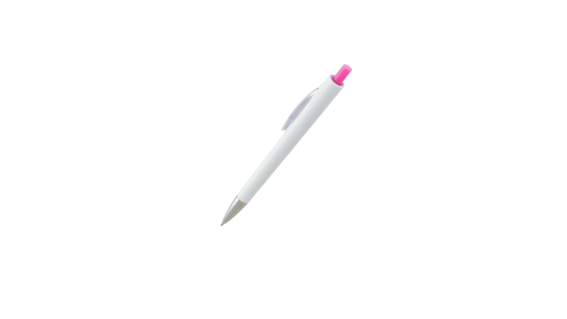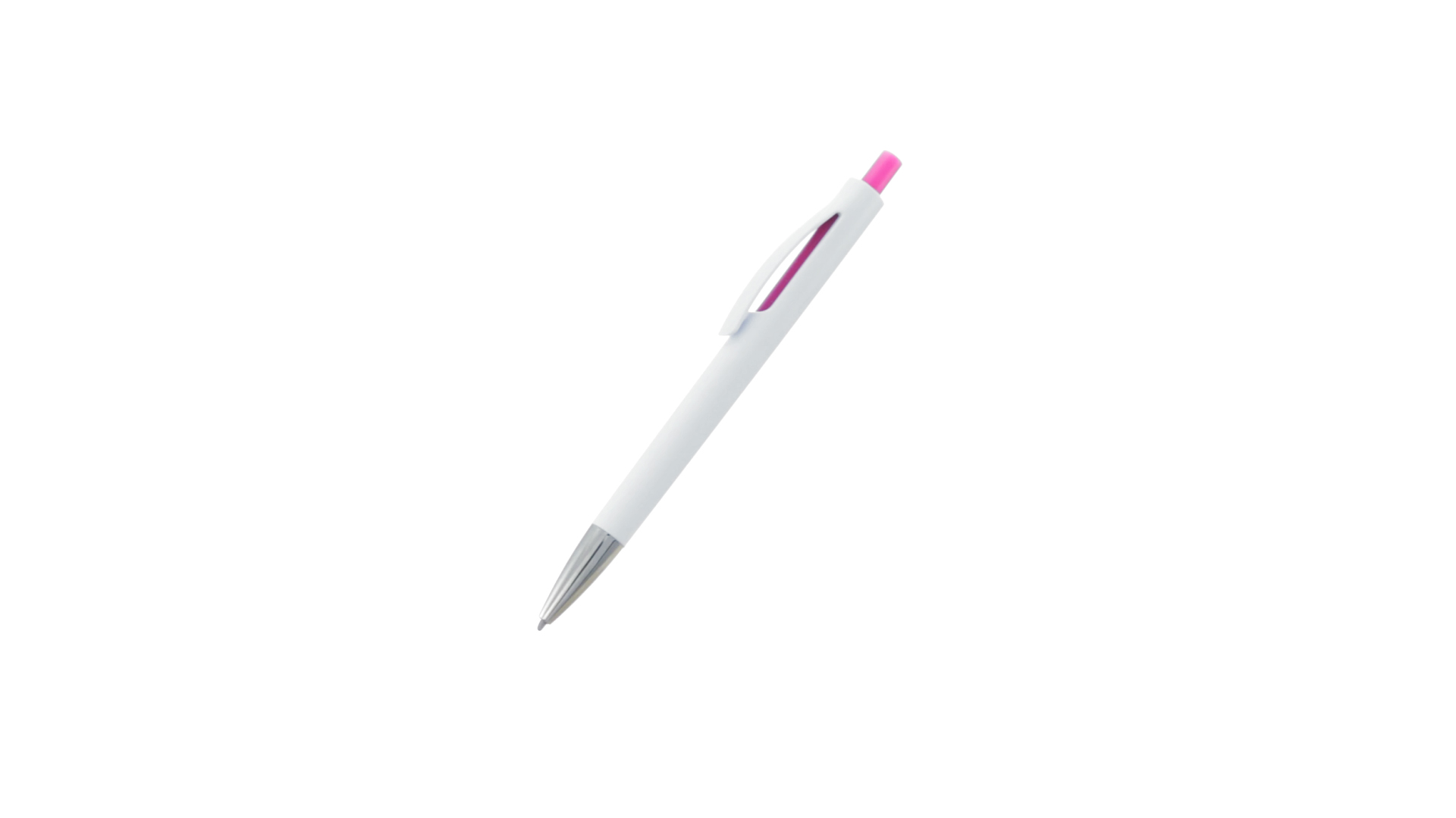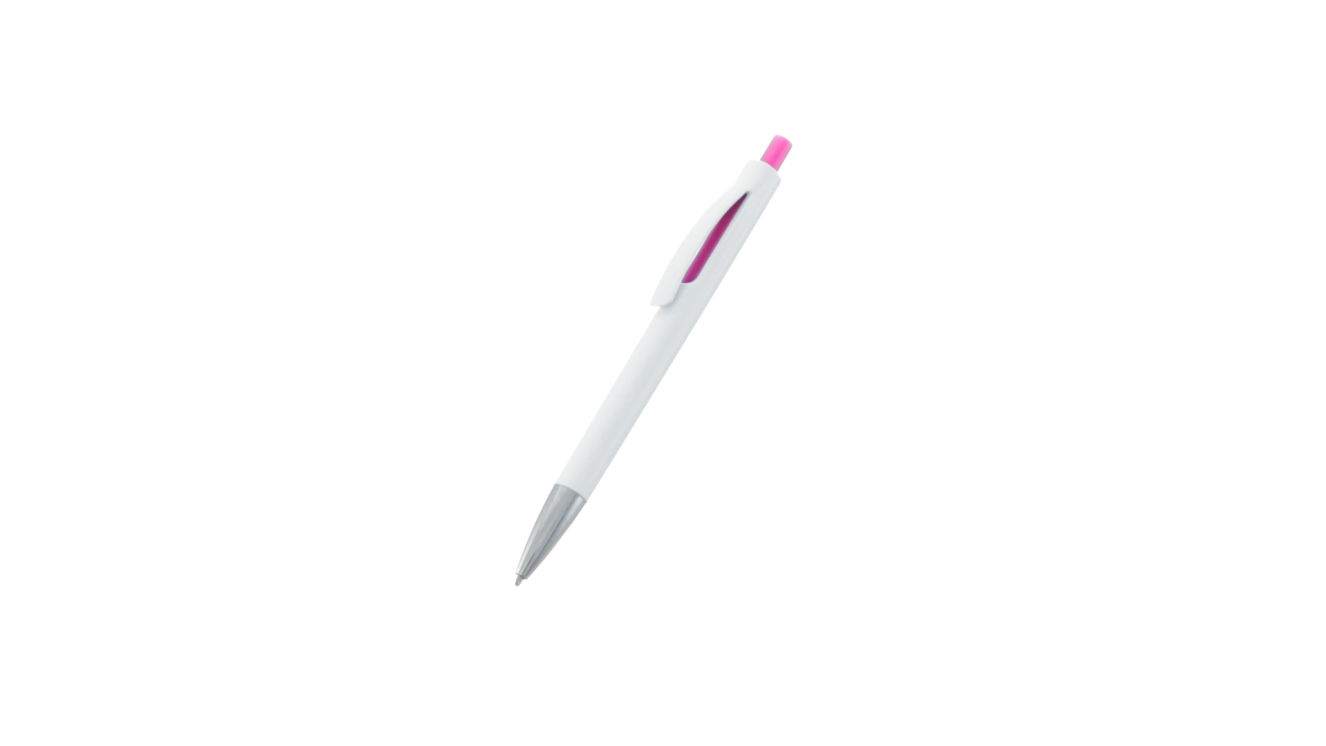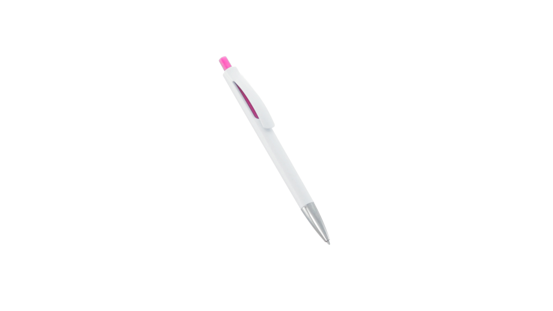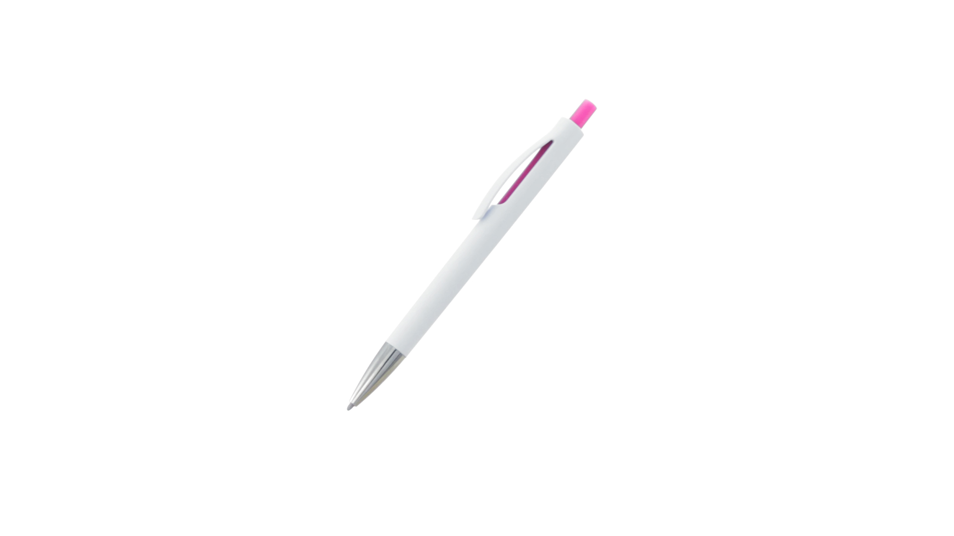 Druck-Kugelschreiber mit auffälligem zweifarbigem Design mit geschmeidigem Schaft in solidem Weiss und Kontrastdetails in glänzenden soliden Farben. Mit originellem gebogenem Clip in passender Farbe und glänzender Spitze. Blaue Tinte.
