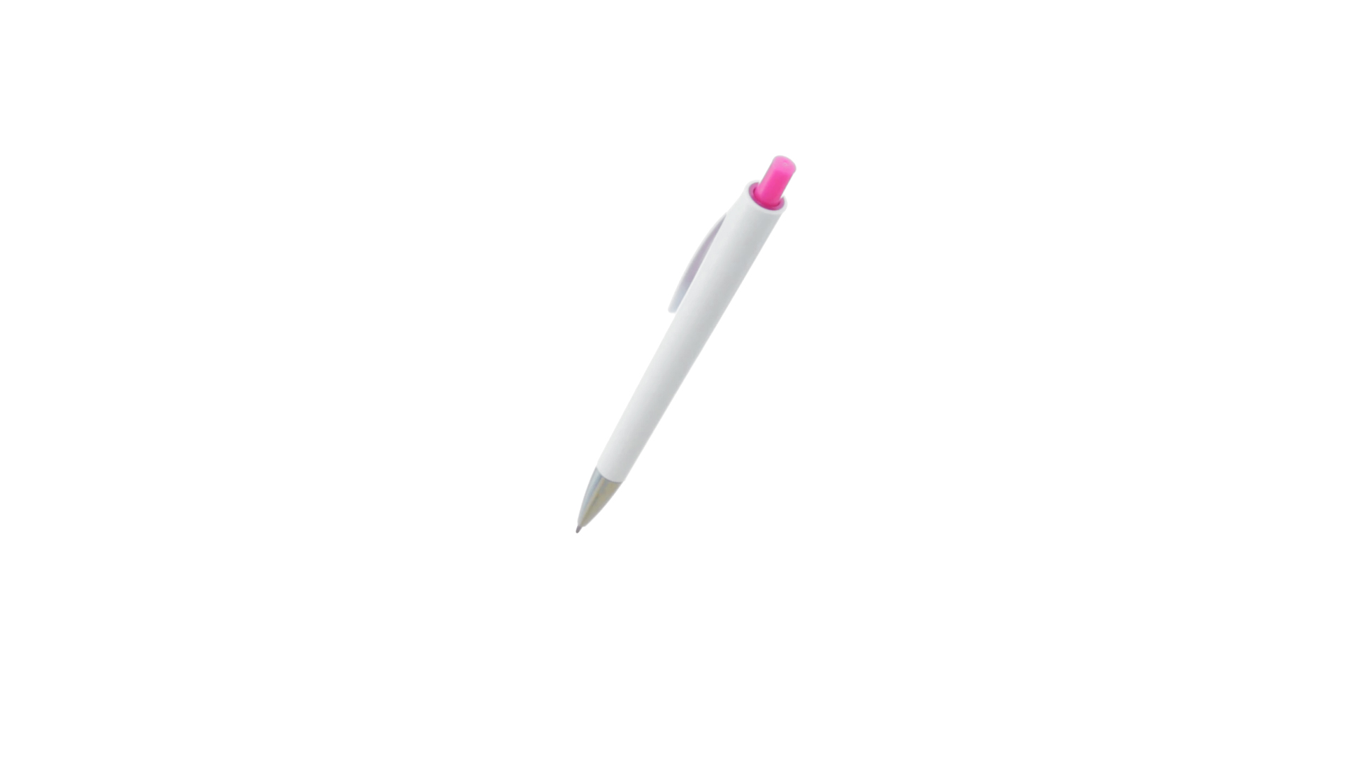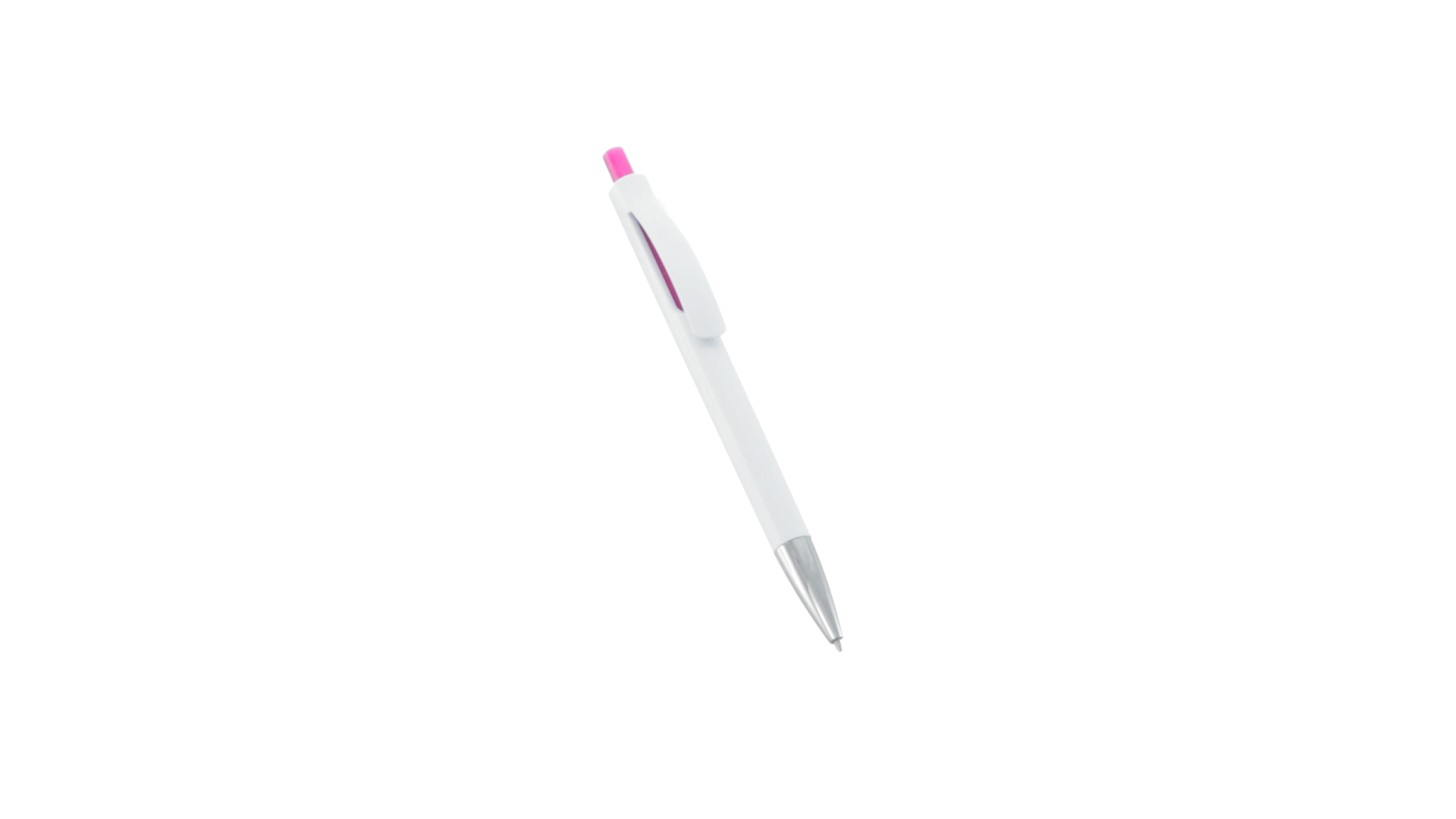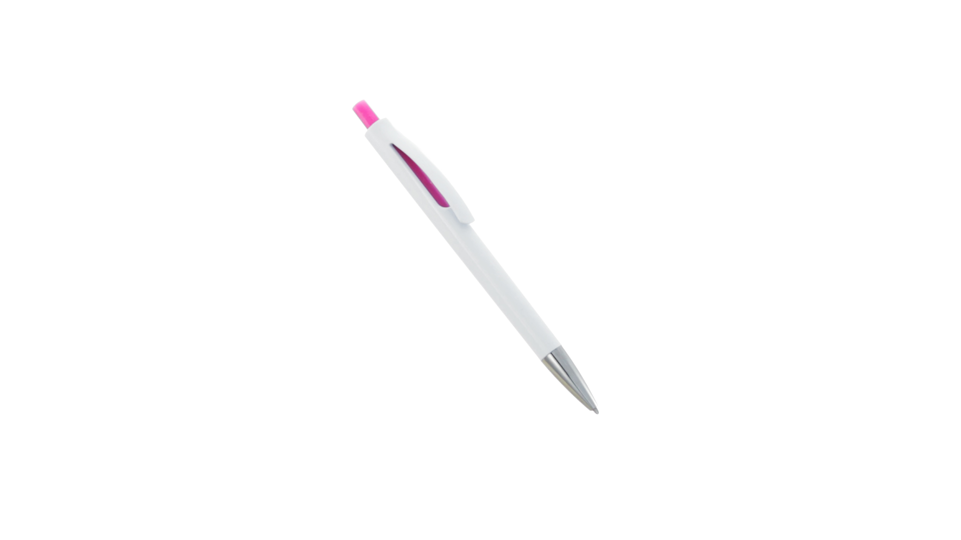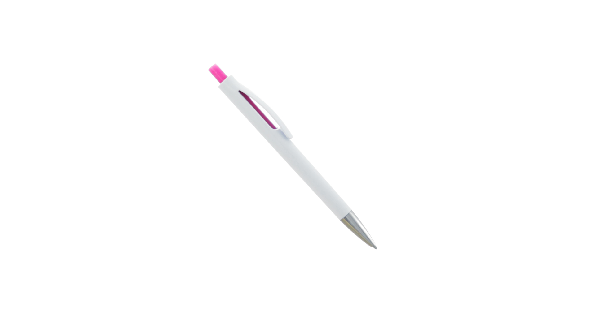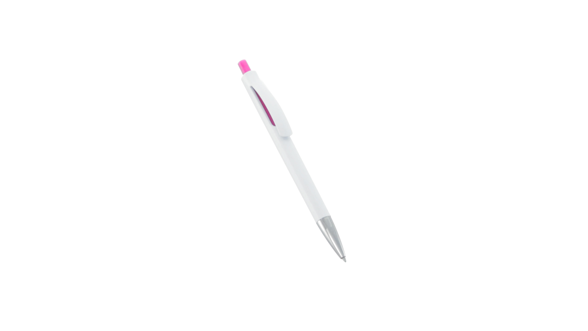 Druck-Kugelschreiber mit auffälligem zweifarbigem Design mit geschmeidigem Schaft in solidem Weiss und Kontrastdetails in glänzenden soliden Farben. Mit originellem gebogenem Clip in passender Farbe und glänzender Spitze. Blaue Tinte.