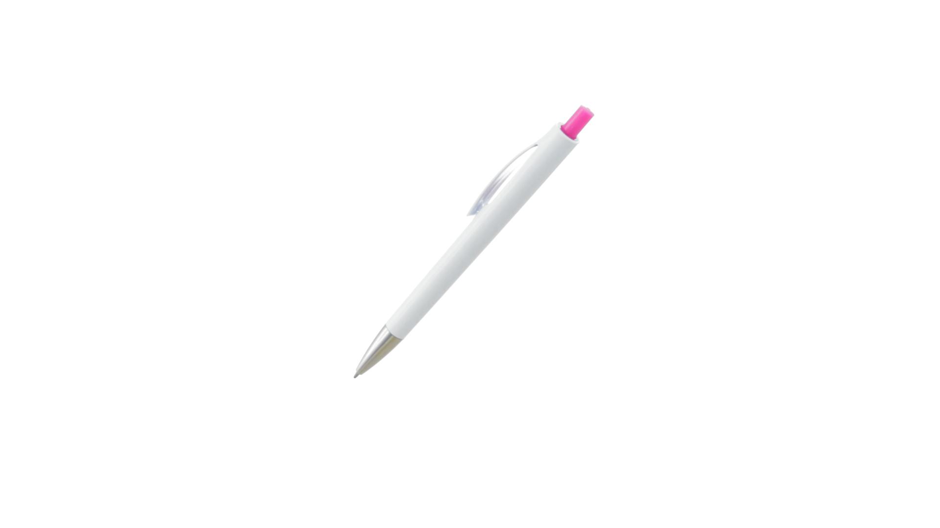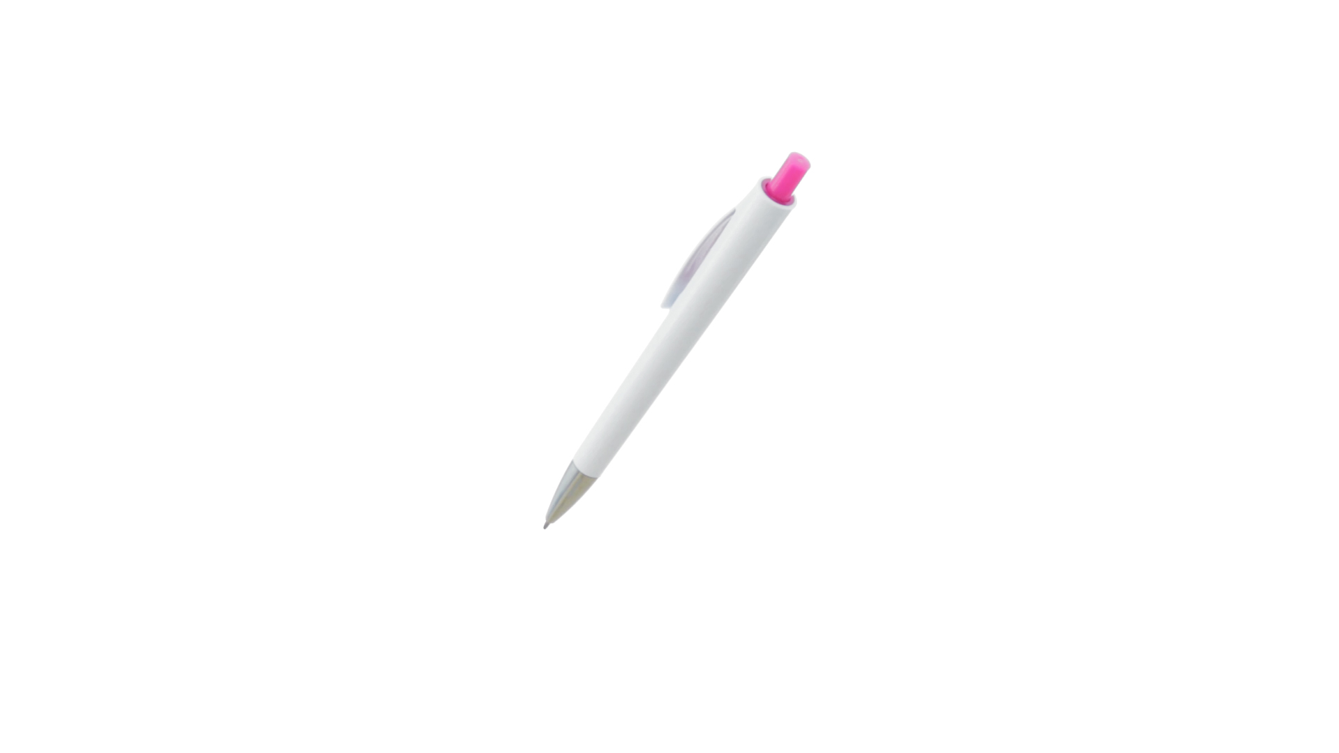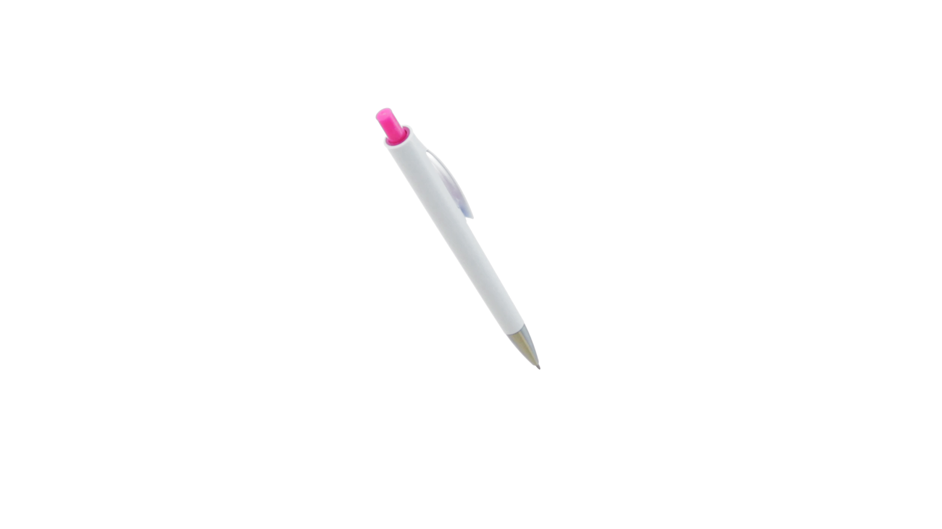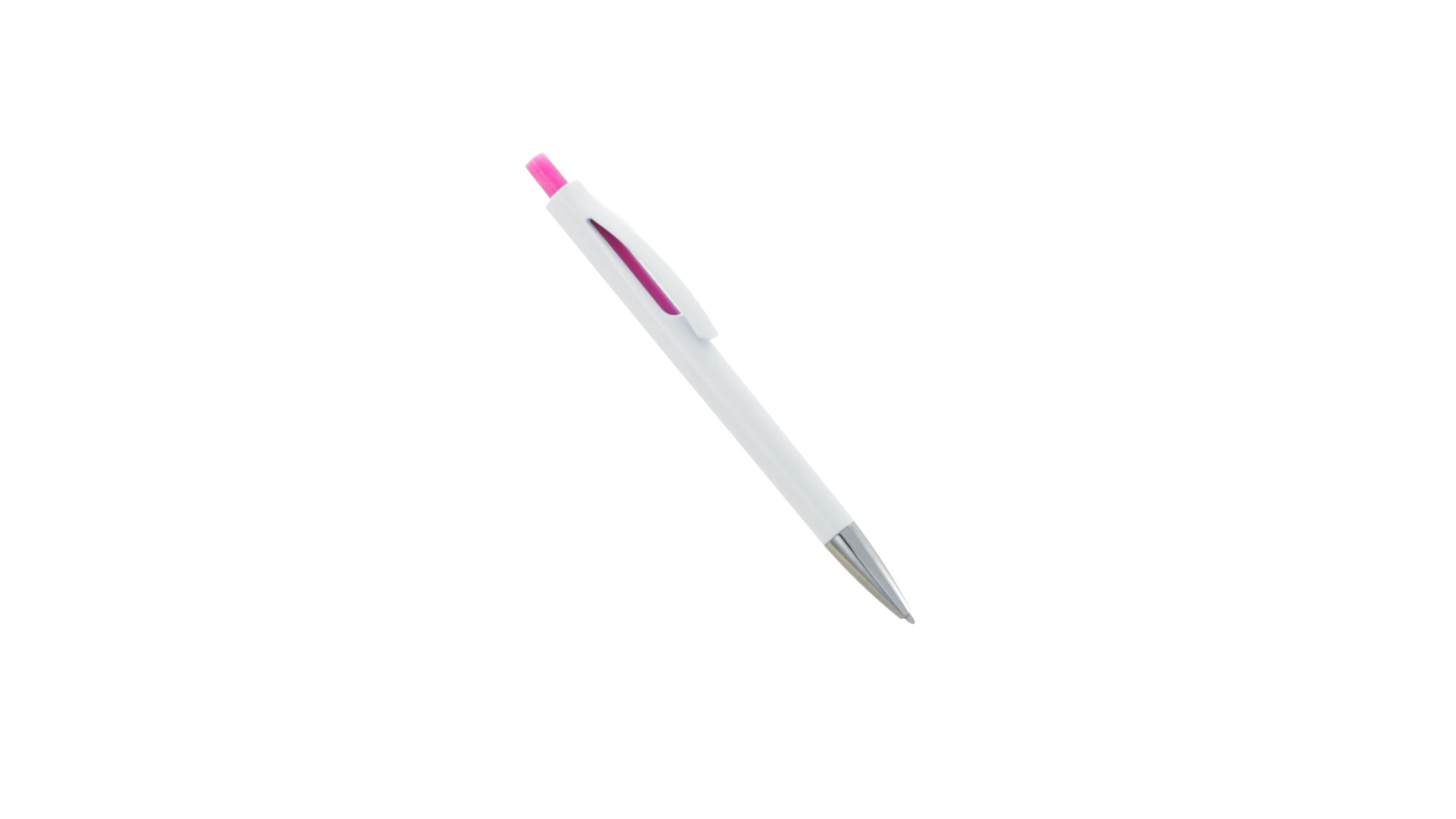 Druck-Kugelschreiber mit auffälligem zweifarbigem Design mit geschmeidigem Schaft in solidem Weiss und Kontrastdetails in glänzenden soliden Farben. Mit originellem gebogenem Clip in passender Farbe und glänzender Spitze. Blaue Tinte.