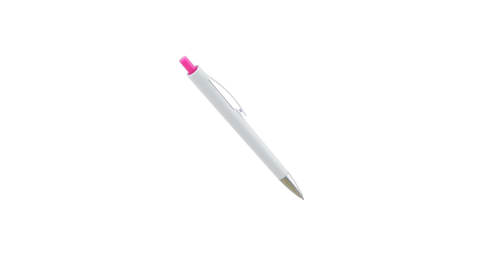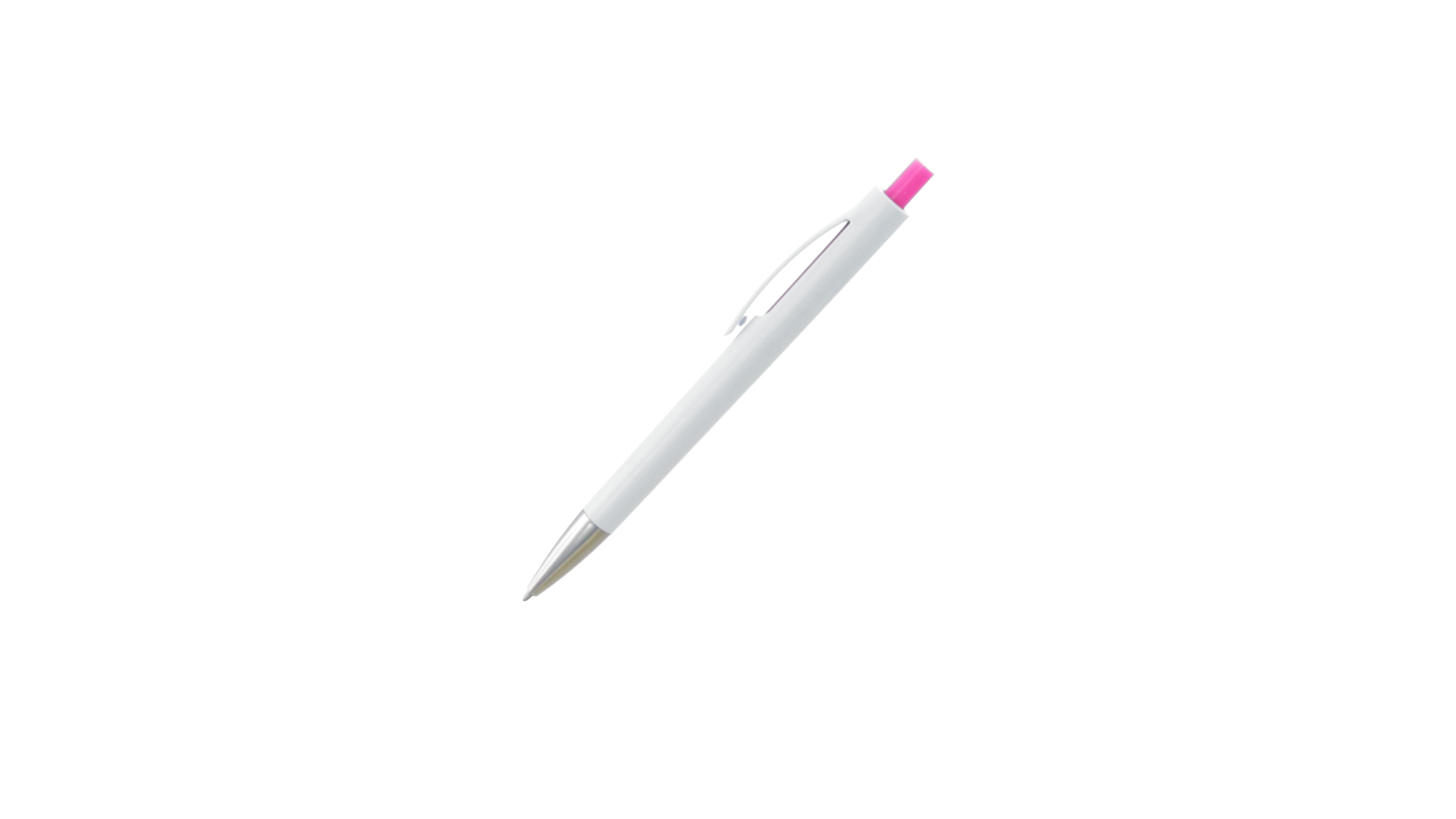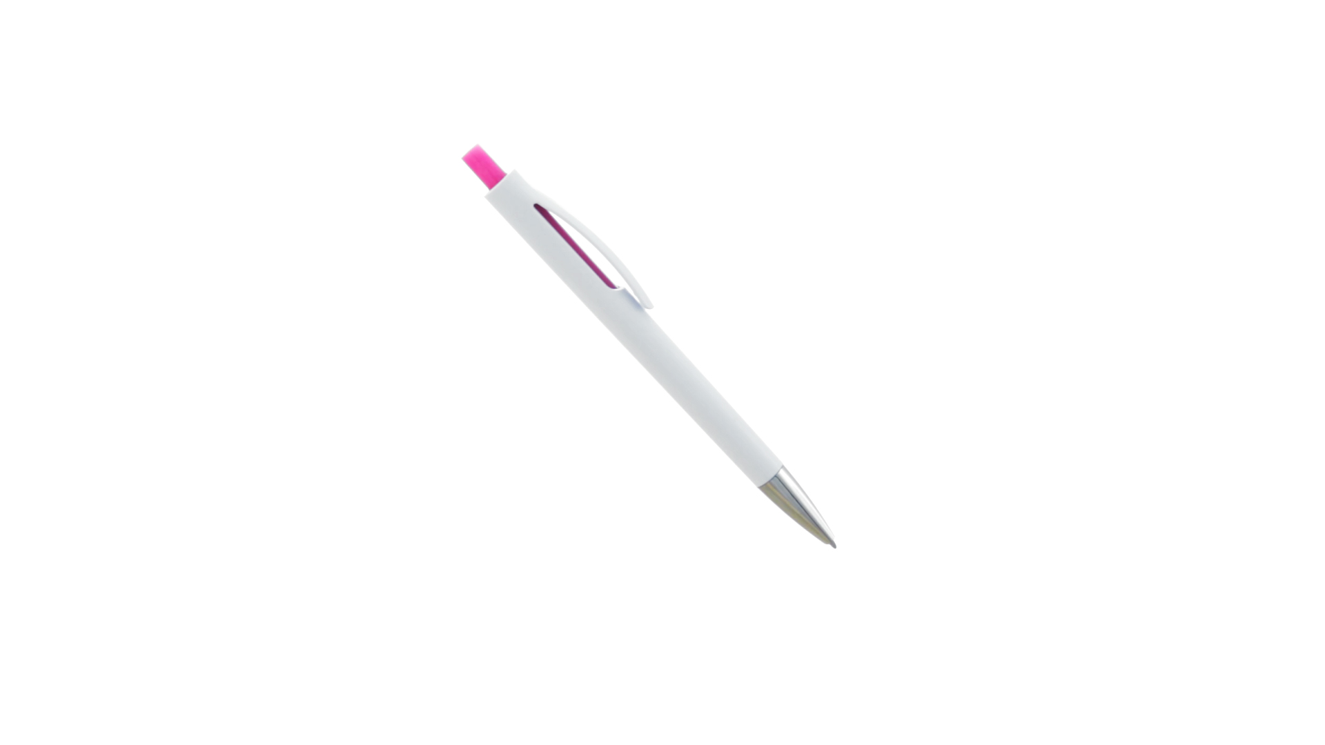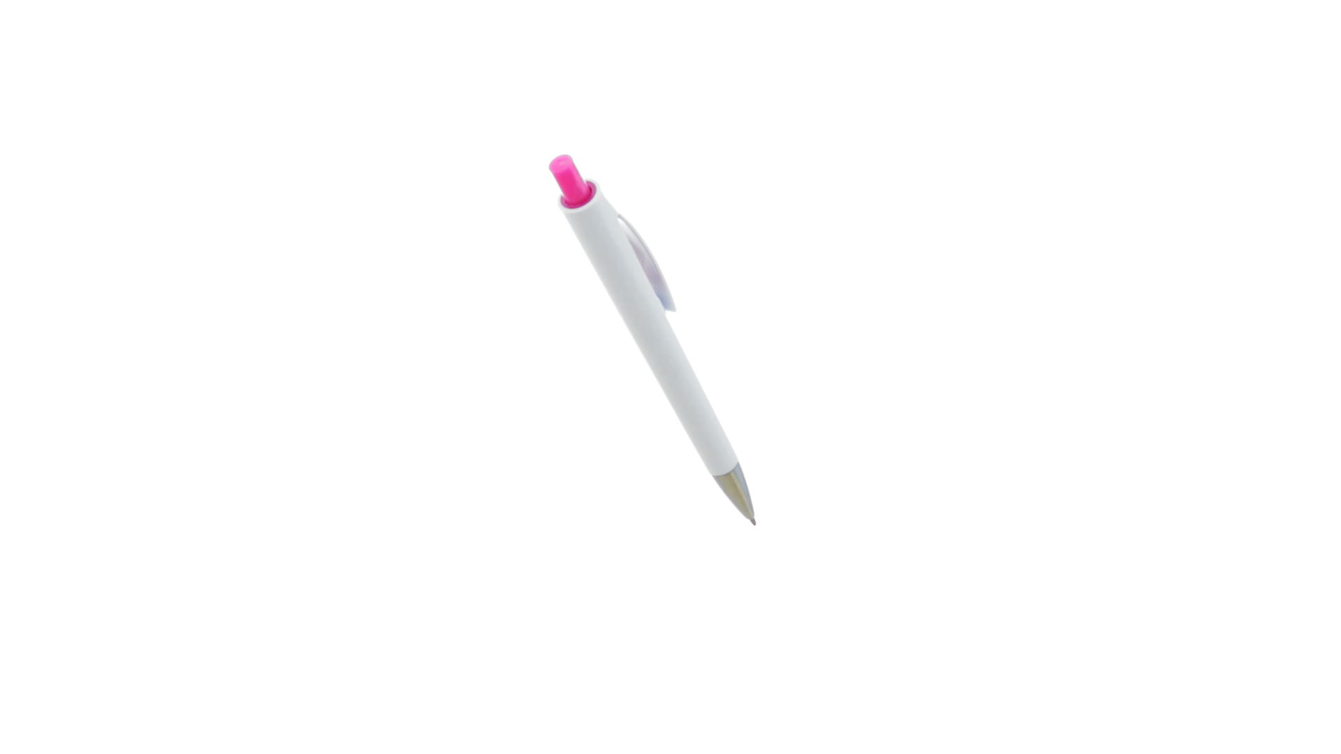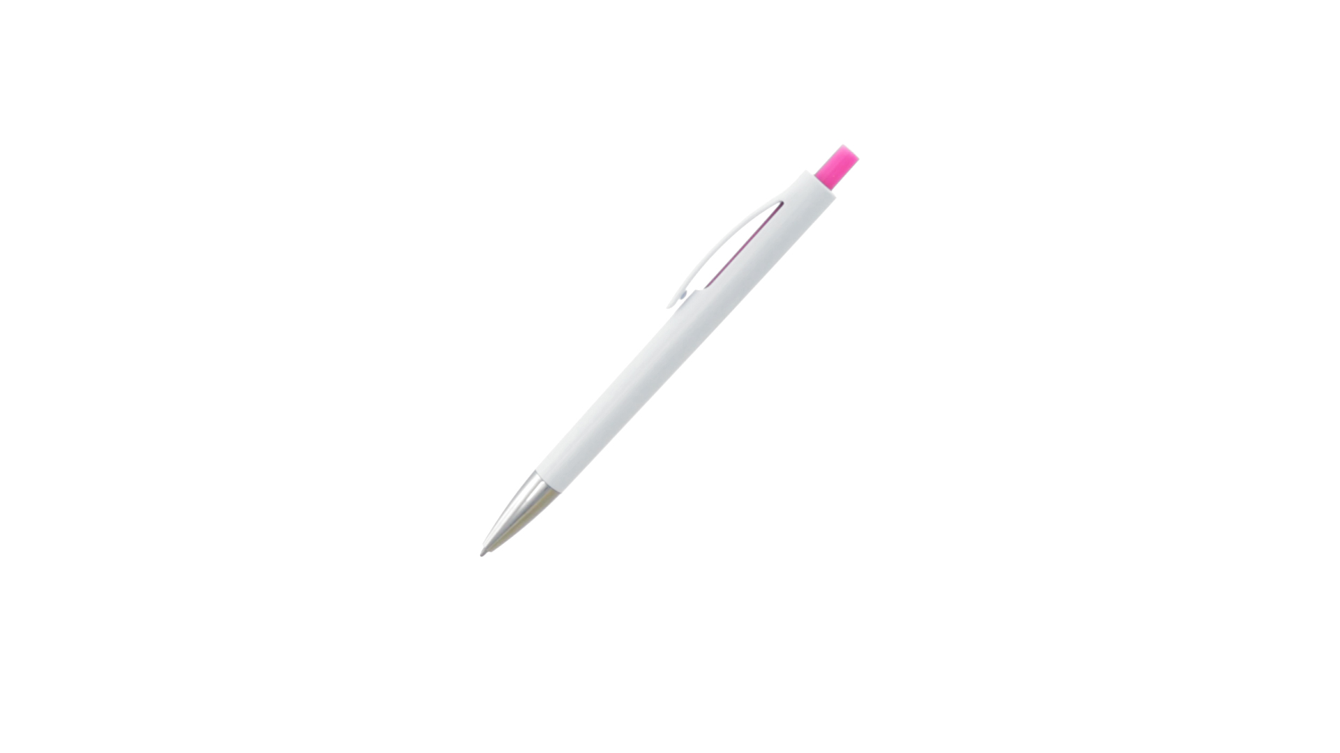 Druck-Kugelschreiber mit auffälligem zweifarbigem Design mit geschmeidigem Schaft in solidem Weiss und Kontrastdetails in glänzenden soliden Farben. Mit originellem gebogenem Clip in passender Farbe und glänzender Spitze. Blaue Tinte.