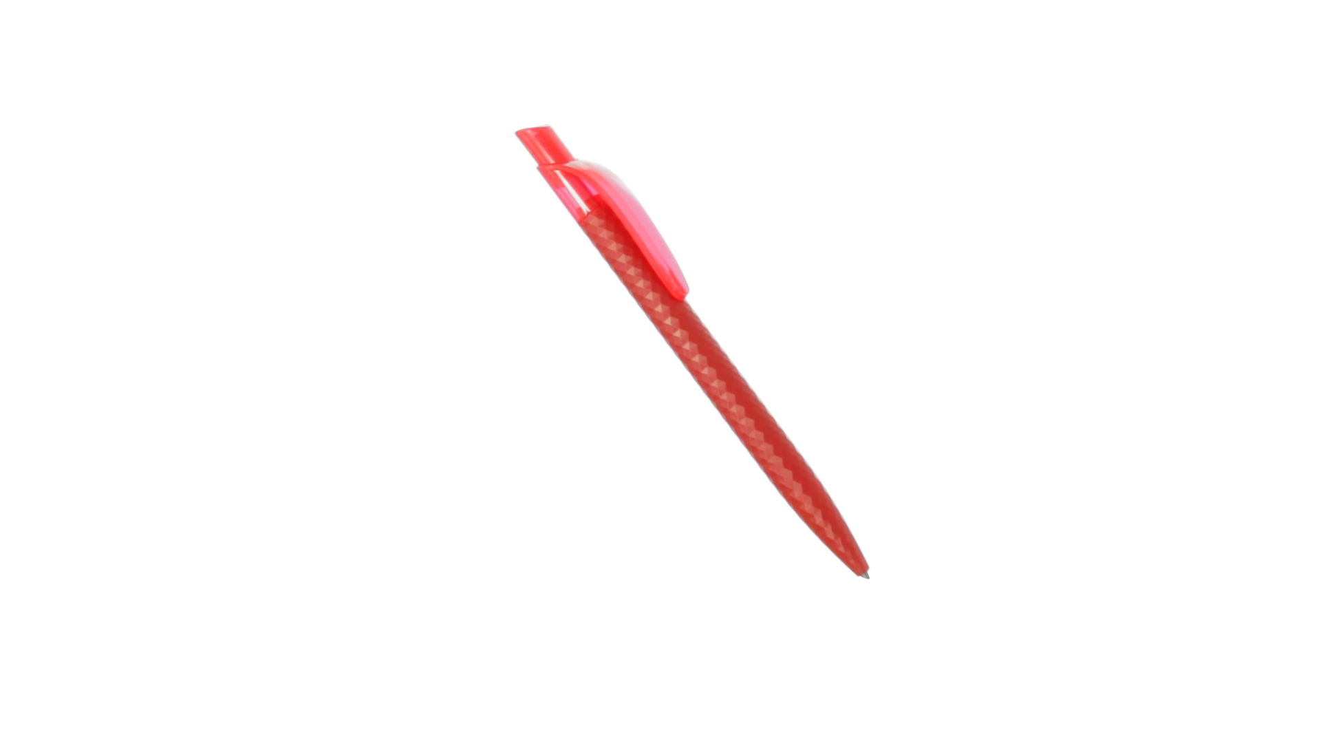 Druck-Kugelschreiber mit originellem Rauten-Design und sehr angenehm anzufassendem Gehäuse in einer Vielzahl von lebendigen Farben. Mit transparentem Clip und Druckknopf sowie blauer Tinte.
