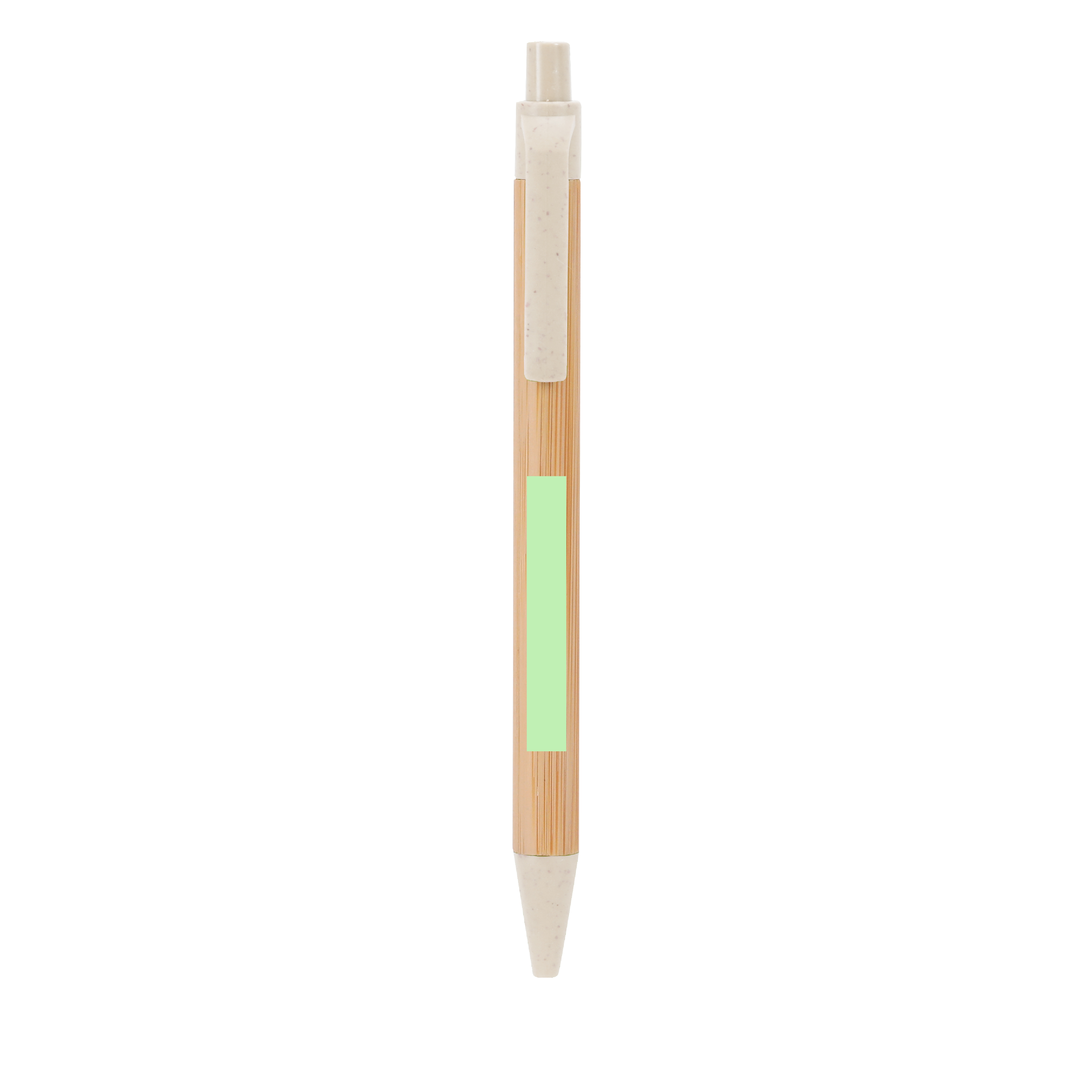 Stift aus Bambus in Kombination mit Weizenrohr. Druckknopf-Mechanismus und blaue Tinte. Beinhaltet das Wheat Straw-Abzeichen.