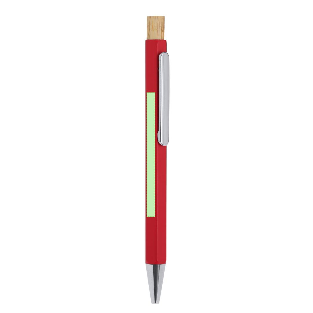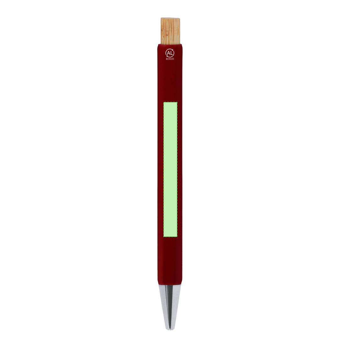 Eleganter Kugelschreiber aus recyceltem Aluminium. Mit markantem sechseckigem Körper, verchromtem Clip und Spitze. Druckmechanismus aus Bambus und blauer Tinte. Mit markantem Logo für recyceltes Aluminium auf dem Stift.Recyceltes Aluminium ist ein Material mit nahezu unbegrenzten Recyclingmöglichkeiten, ohne seine ursprünglichen Eigenschaften zu verlieren und bei geringerem Energieverbrauch in diesem Prozess.GRS-Zertifizierung (Global Recycled Standard), die den Ursprung des verwendeten Materials für die Herstellung des Produkts gewährleistet.Materialien wie Bambus fördern die Verwendung natürlicher Rohstoffe, wodurch Schadstoffemissionen reduziert werden. Sie stammen von einer widerstandsfähigen und vielseitigen Pflanze, die schnell wächst und regeneriert, und sind somit eine hervorragende Alternative zu herkömmlichem Holz.