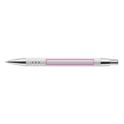 Aluminium Kugelschreiber mit 3 verchromten Ringen. Der Kugelschreiber ist in einem Aluminium Köcher verpackt.