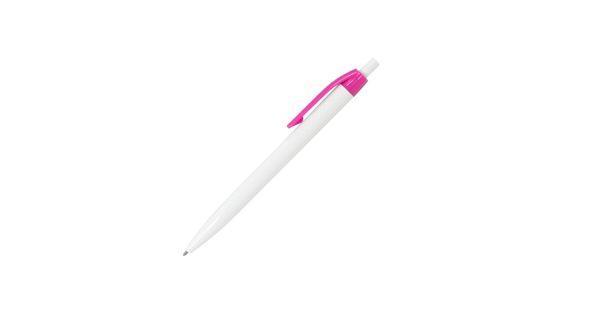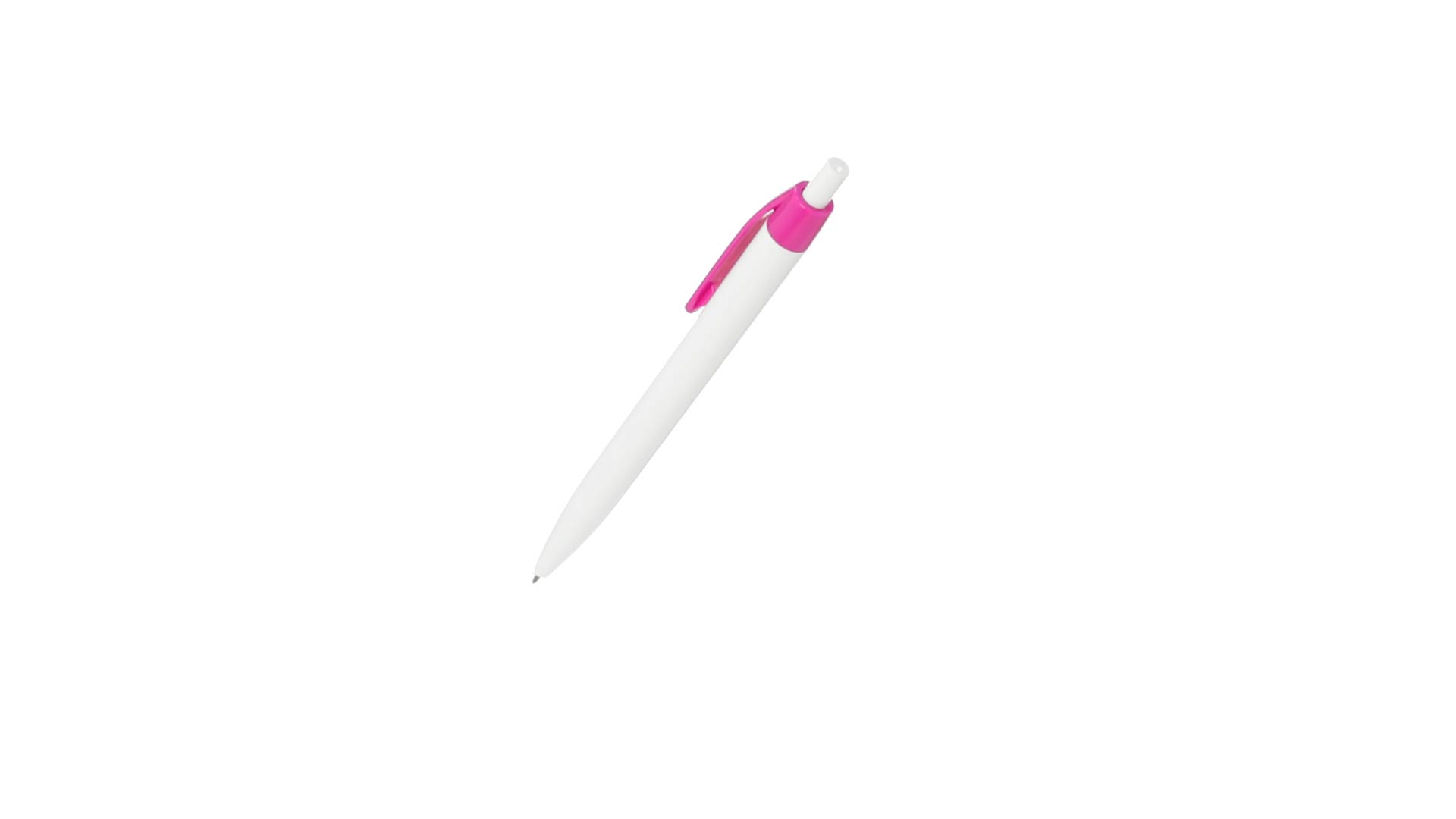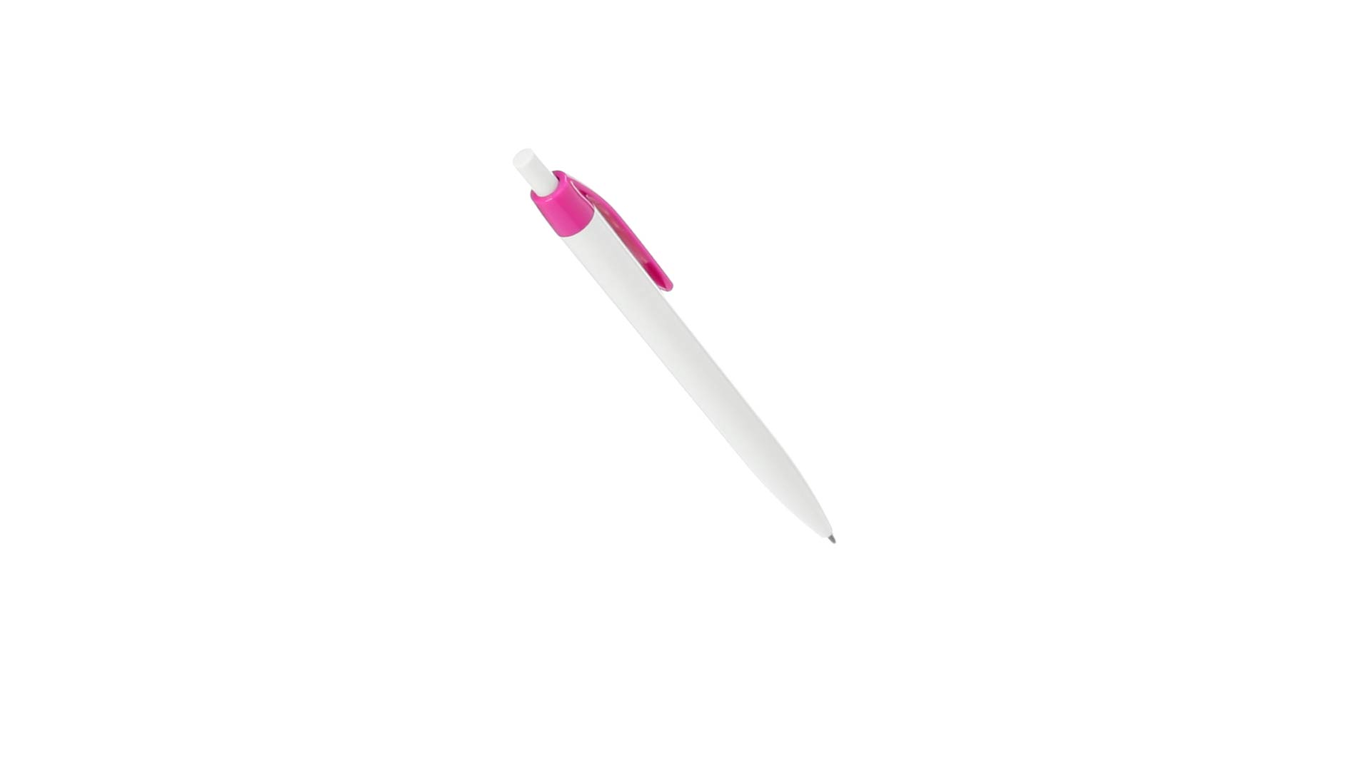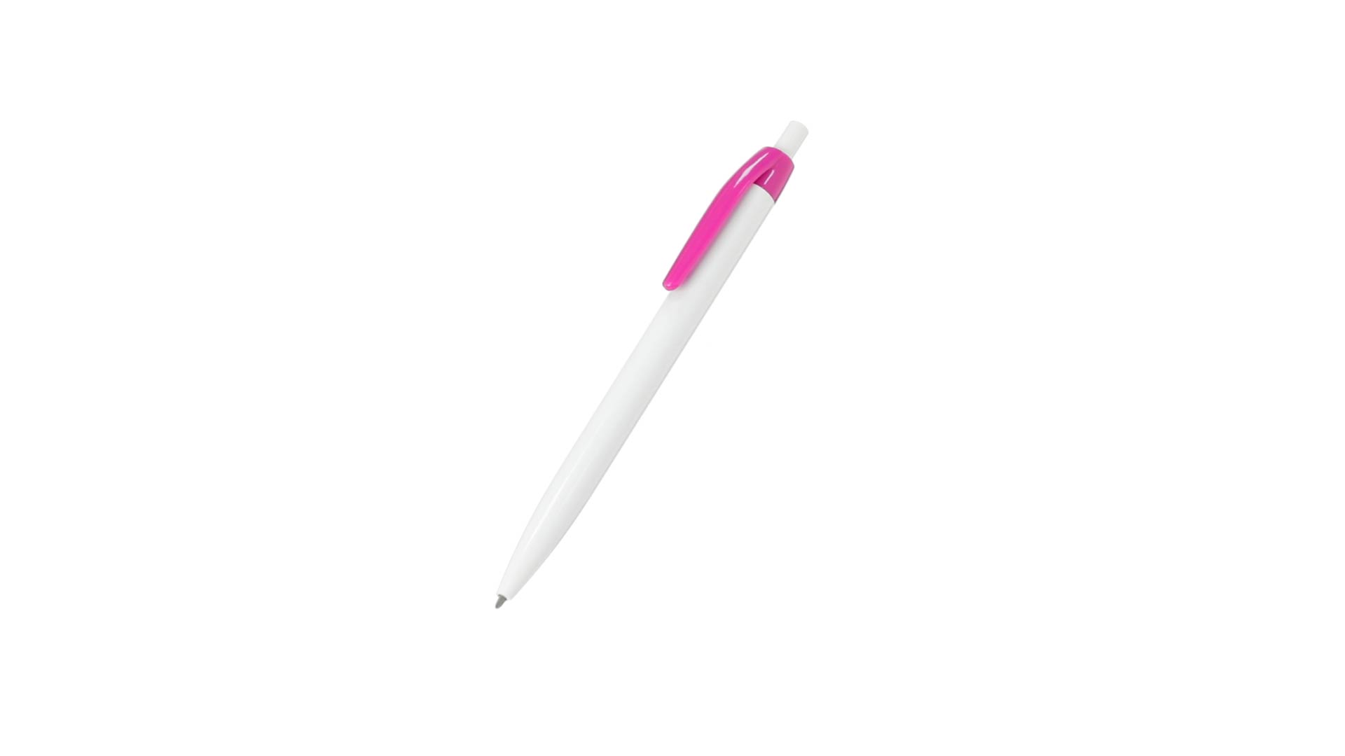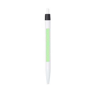 Kugelschreiber mit Push-up-Mechanismus in auffälligem, zweifarbigem Design. Gehäuse in weisser Farbe und Clip in verschieden breiten Farben. Grosser Druckbereich und blaue Tintenmine.