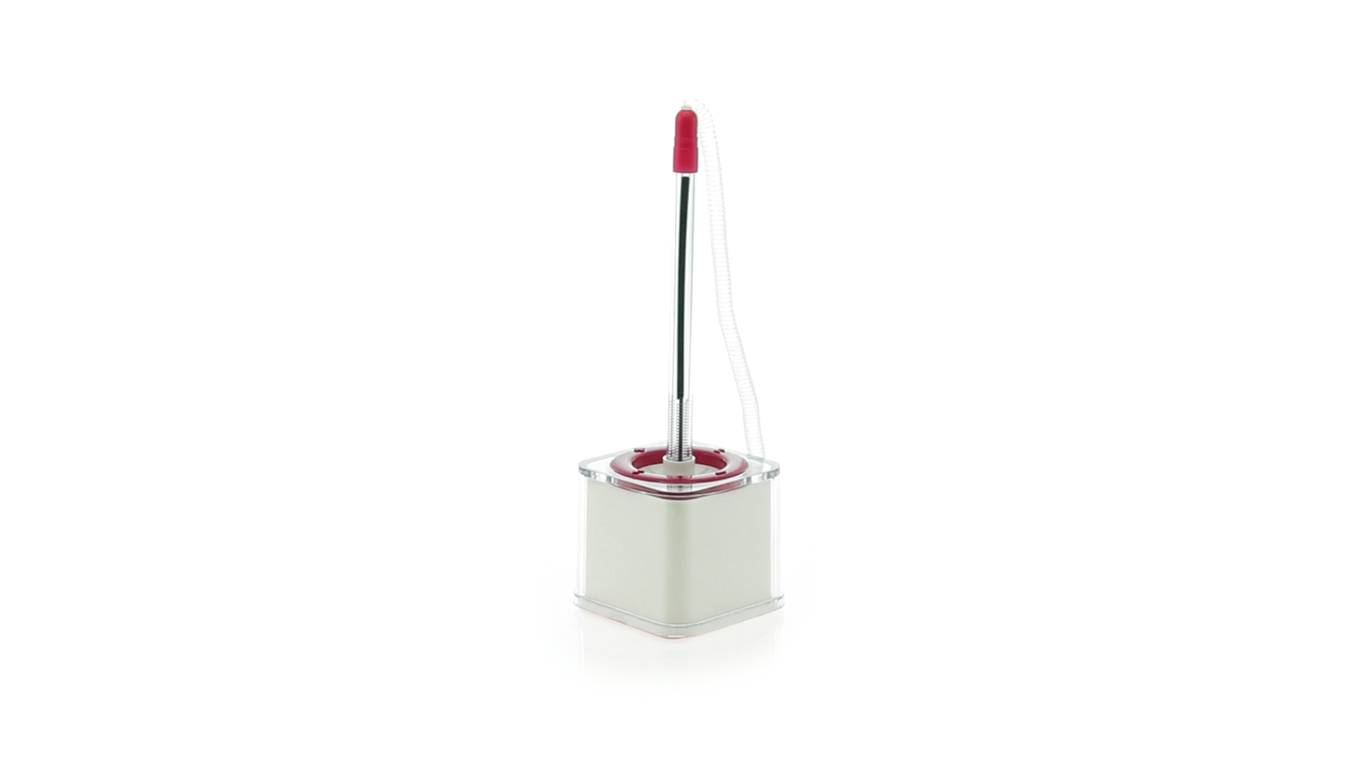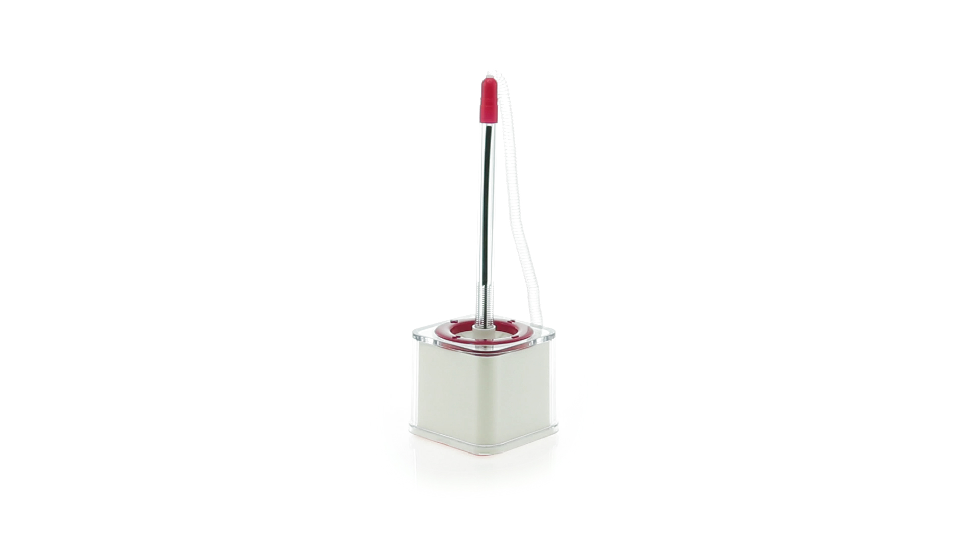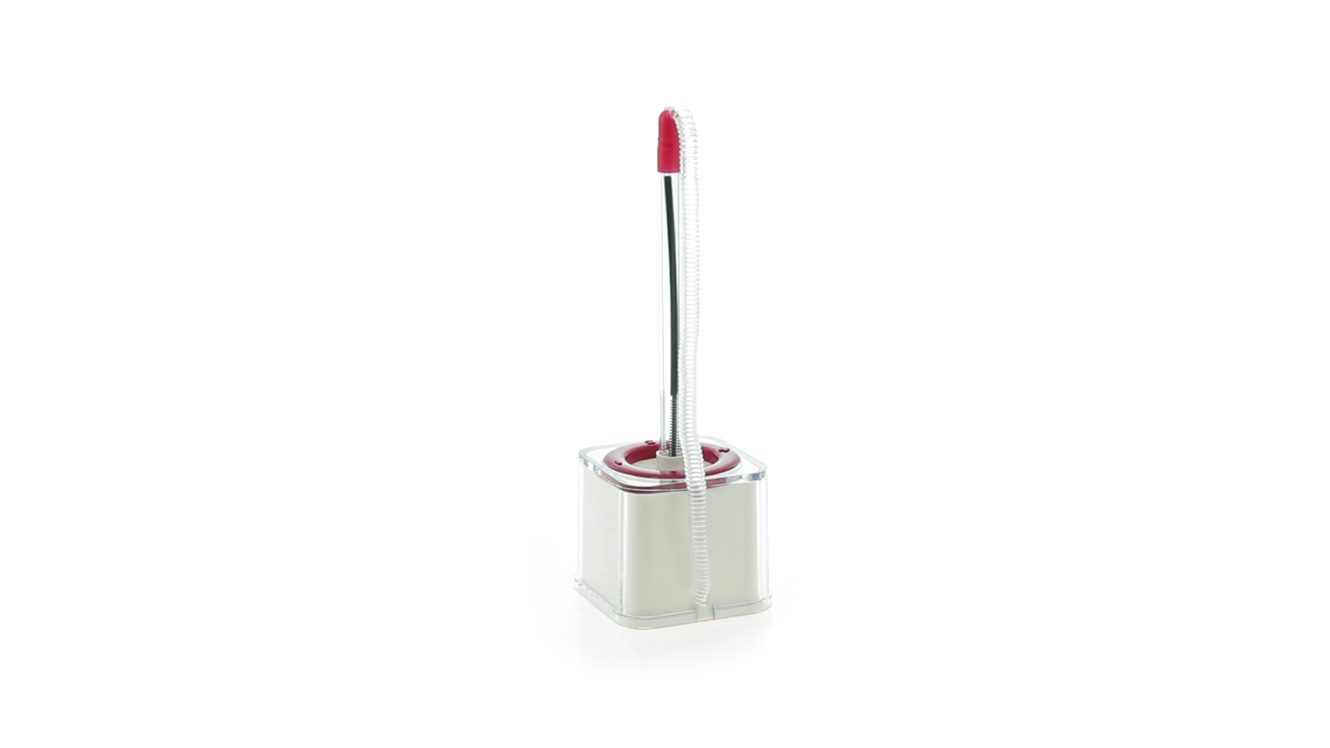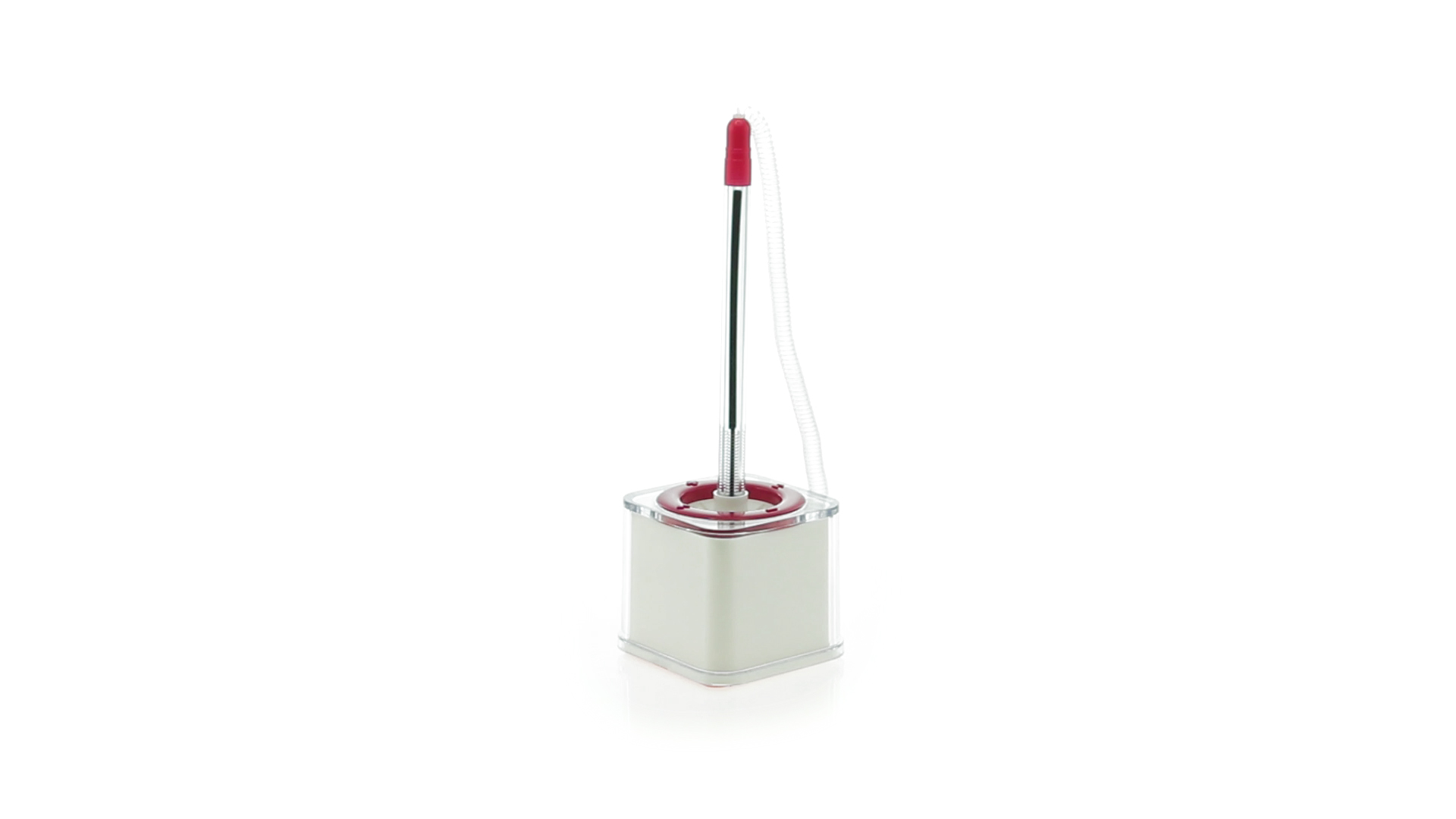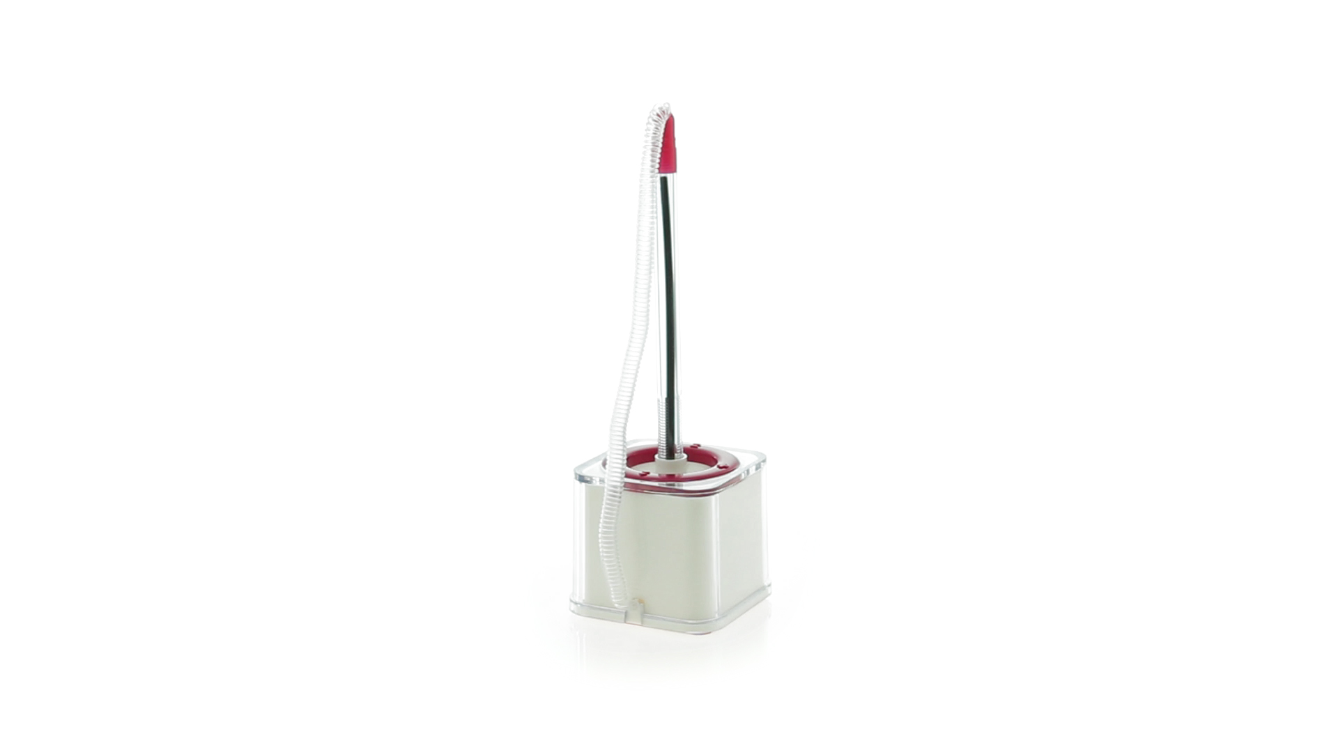 Kugelschreiber mit elastischem Spiralband an transparentem Standfuss mit originellem, zweifarbigem Design und rutschfester Unterseite.
