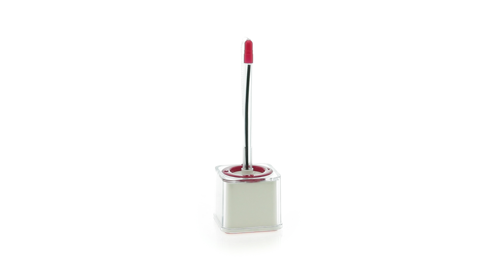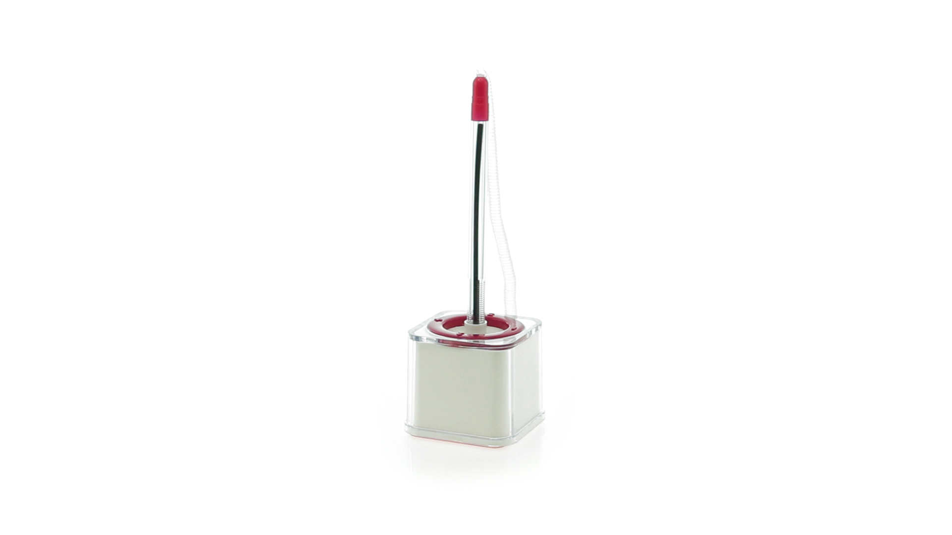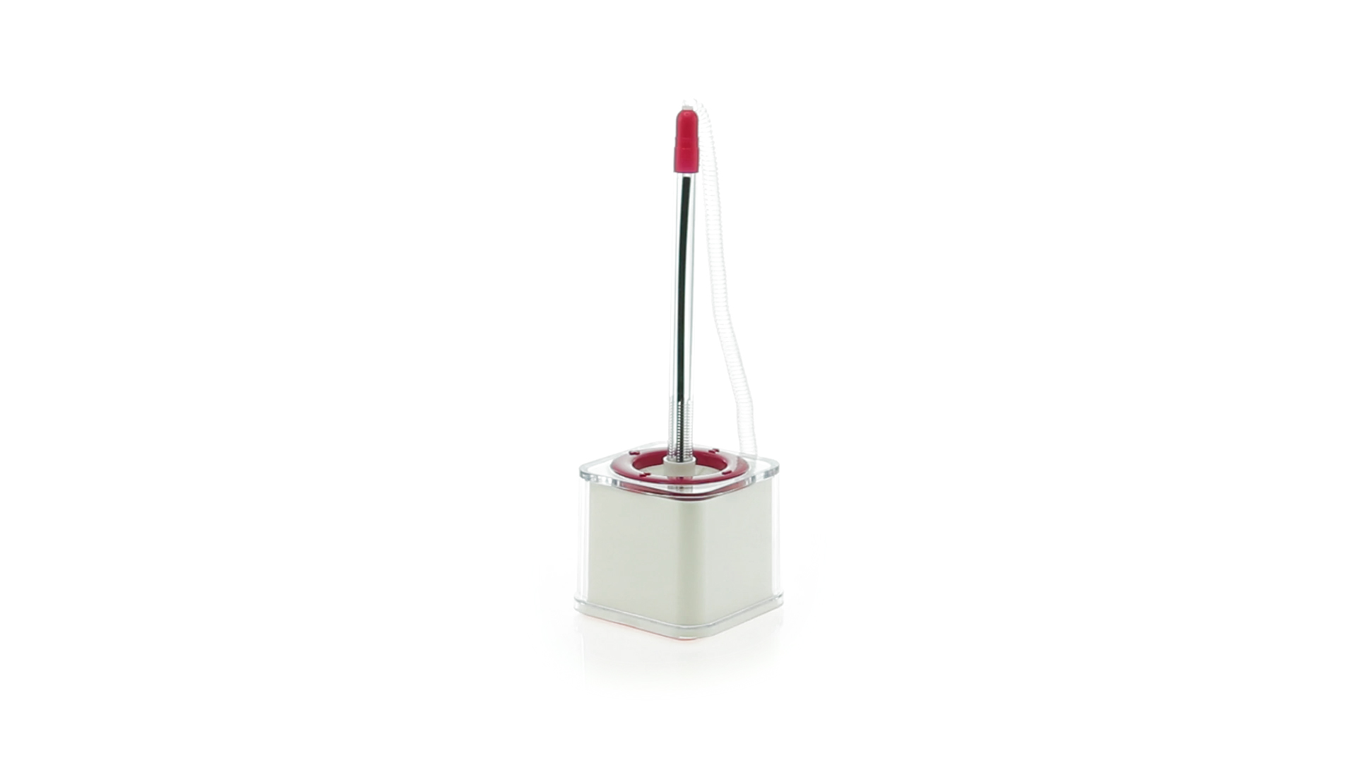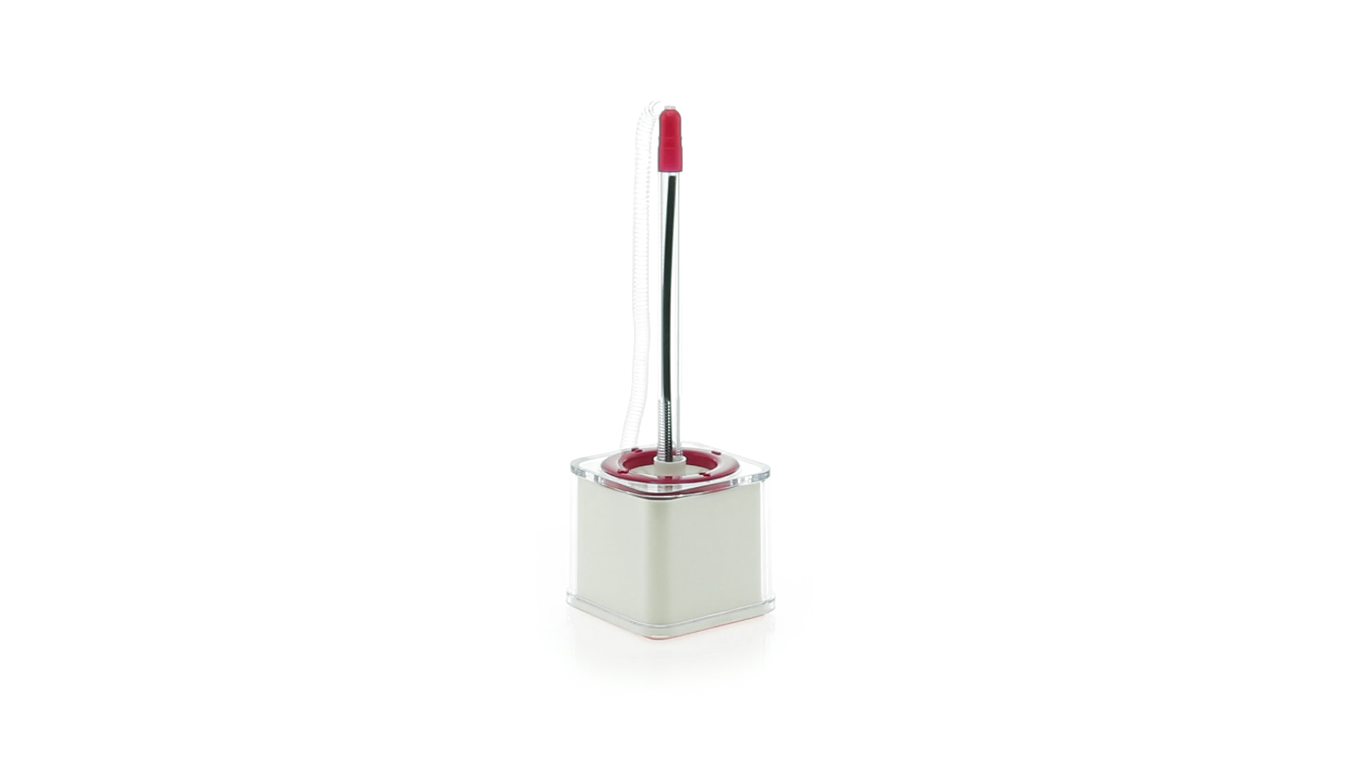 Kugelschreiber mit elastischem Spiralband an transparentem Standfuss mit originellem, zweifarbigem Design und rutschfester Unterseite.