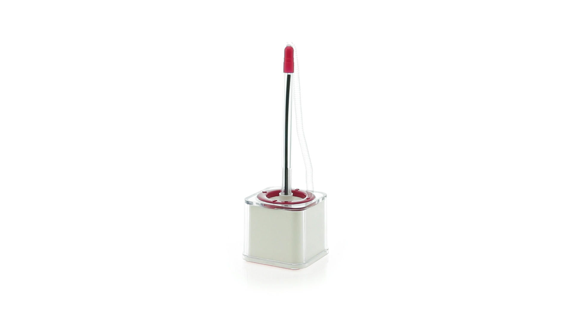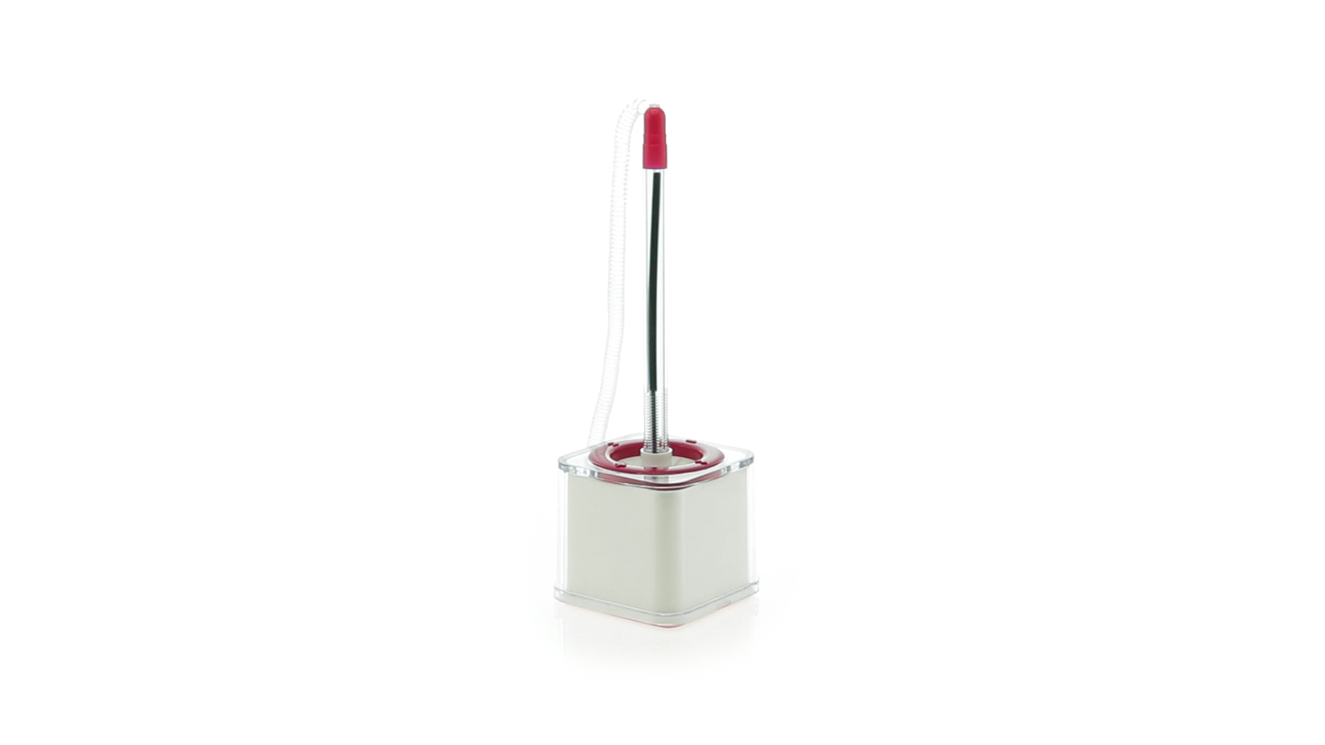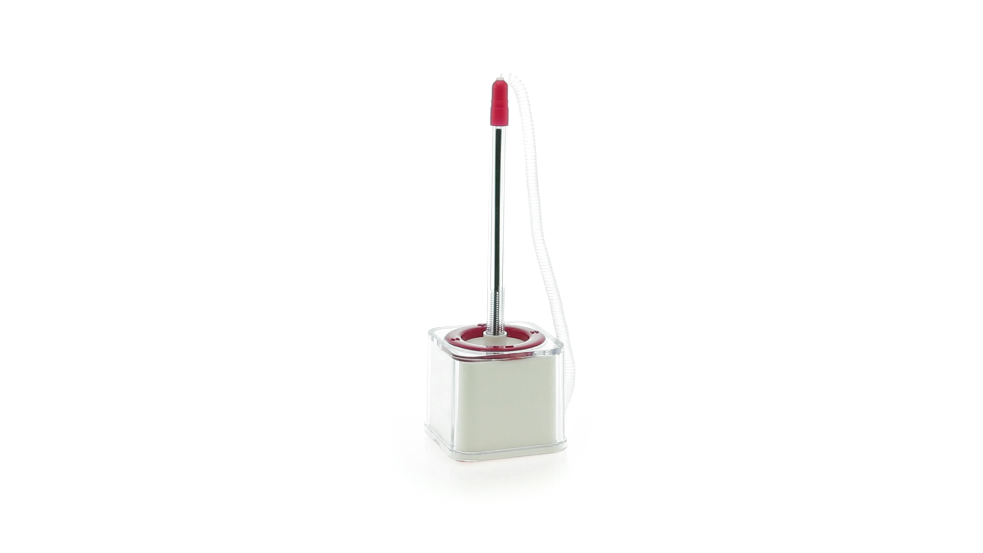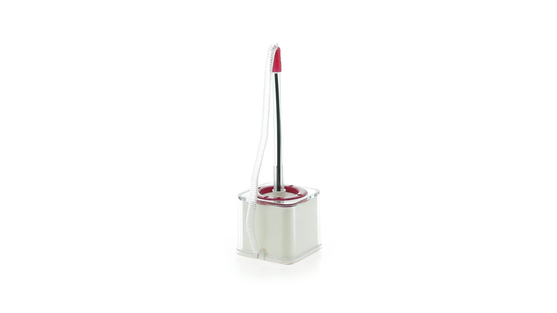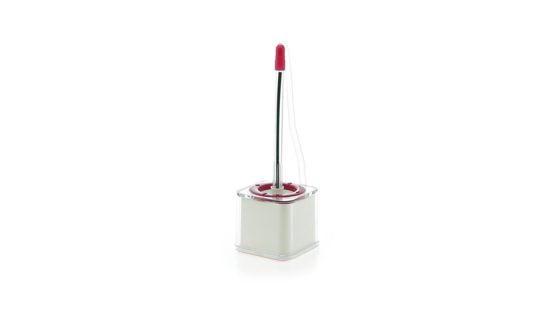 Kugelschreiber mit elastischem Spiralband an transparentem Standfuss mit originellem, zweifarbigem Design und rutschfester Unterseite.