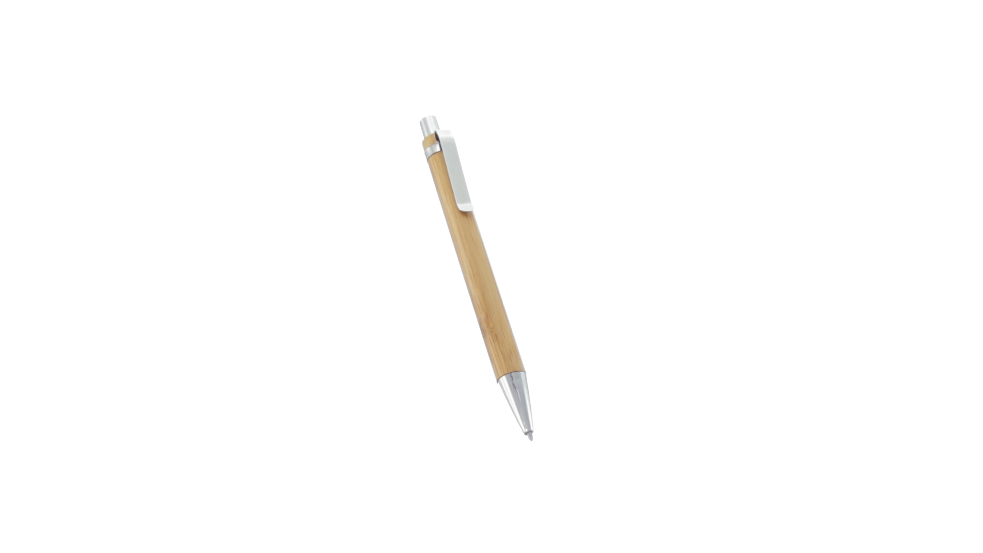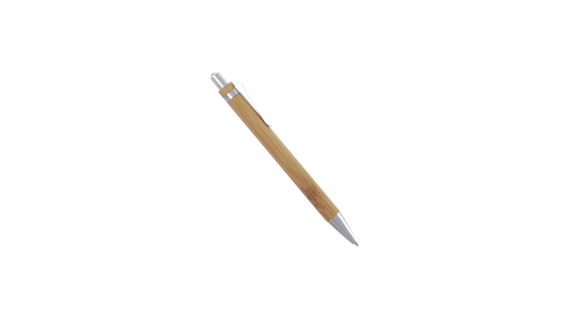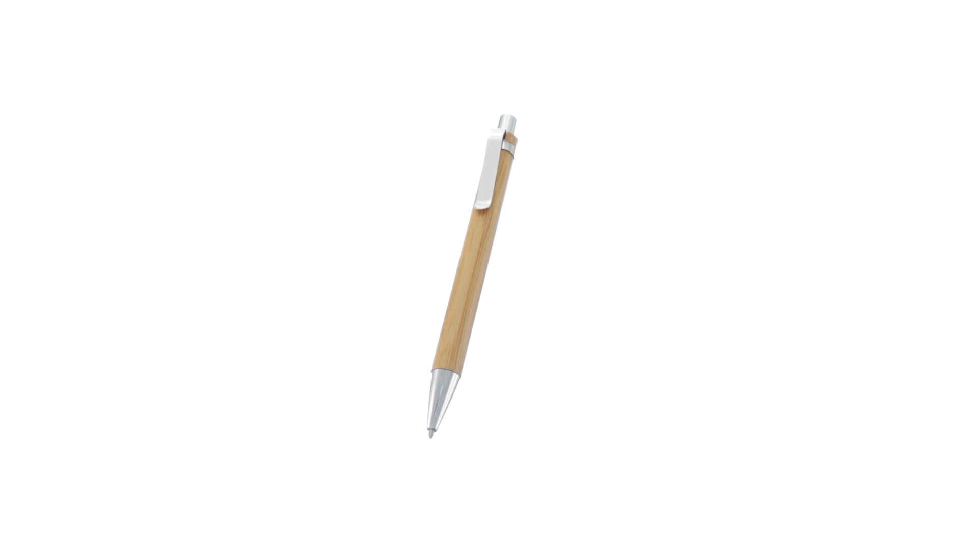 Eleganter Druck-Kugelschreiber mit Schaft aus natürlichem Bambusholz und Kontrastdetails mit Metallic-Finish in glänzendem Silber. Jumbo-Patrone mit blauer Tinte.
