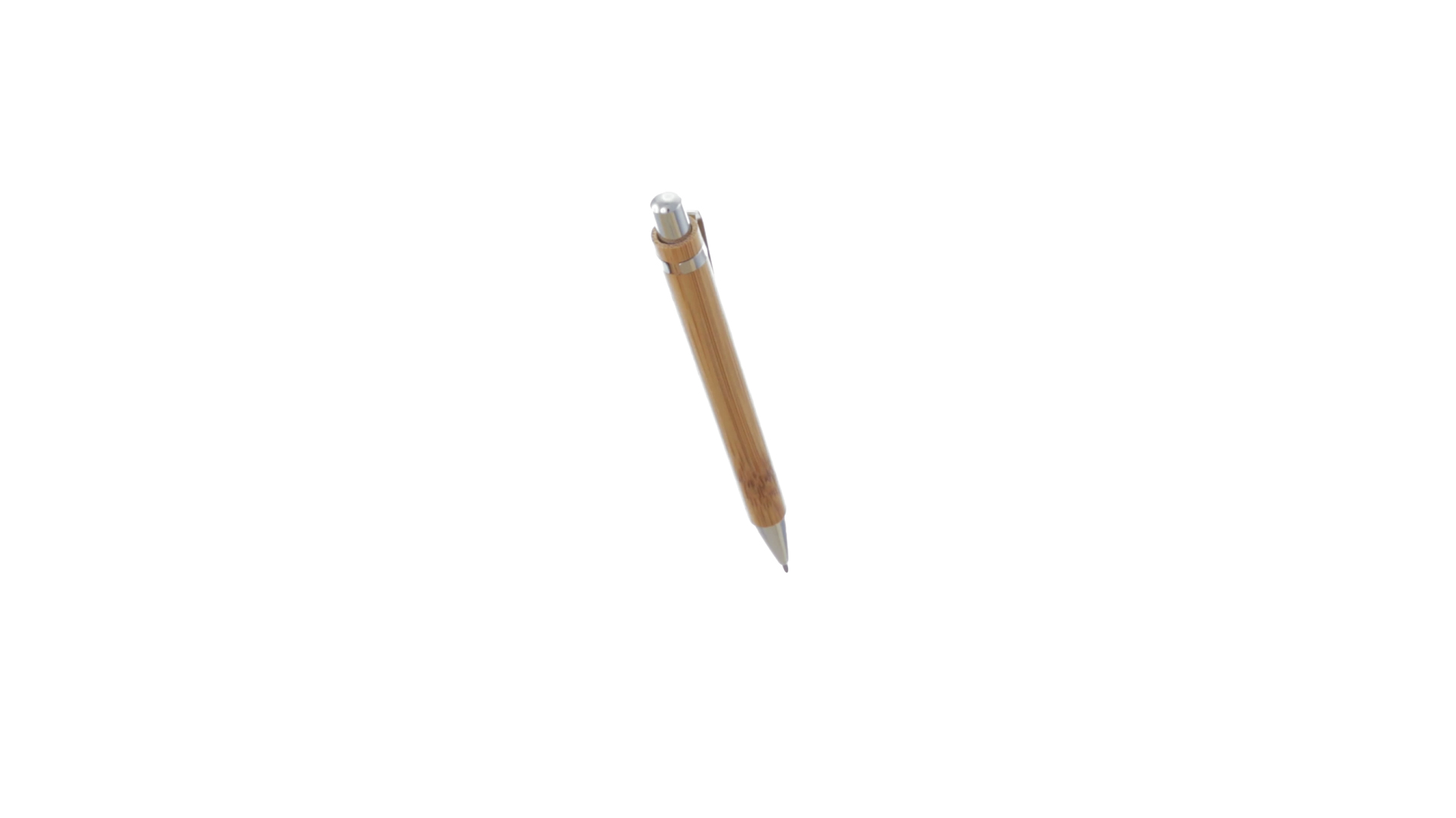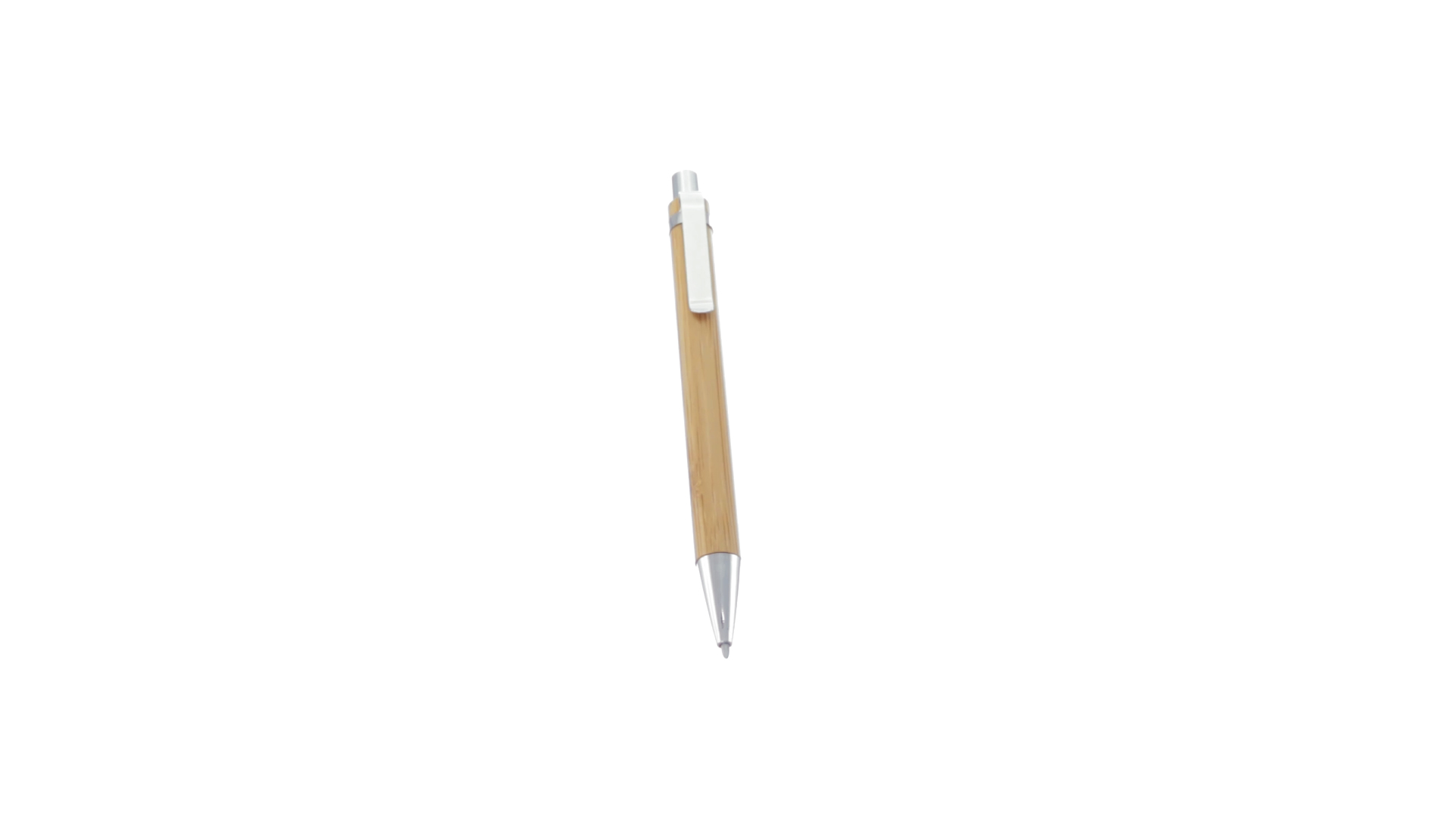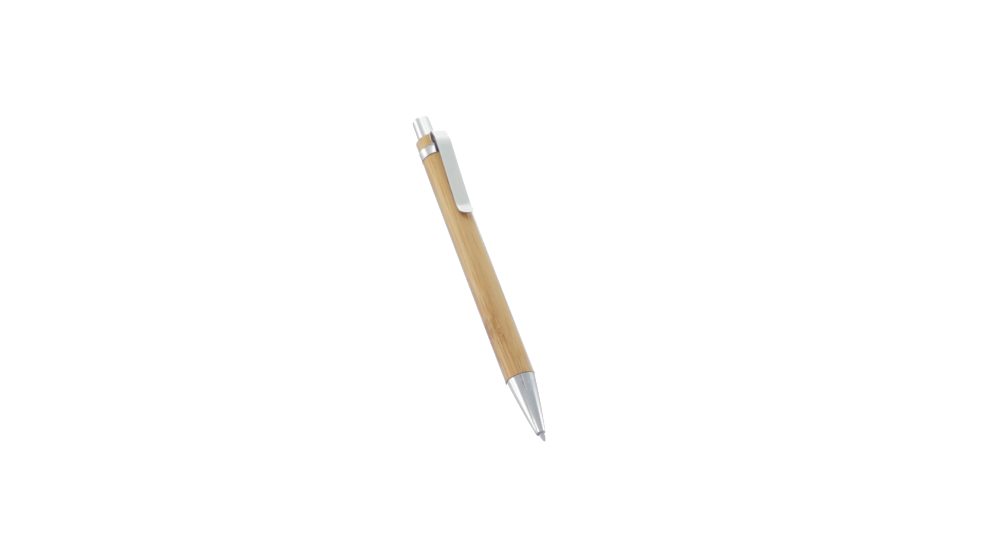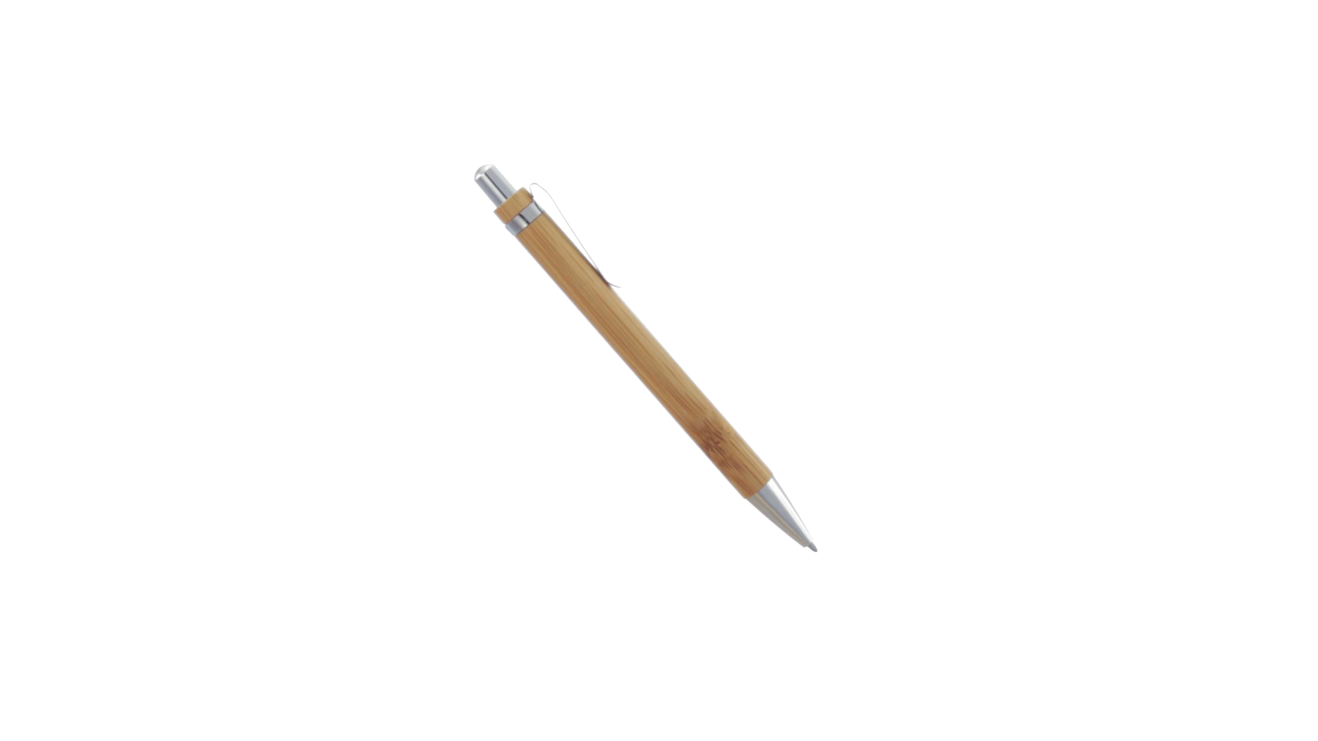 Eleganter Druck-Kugelschreiber mit Schaft aus natürlichem Bambusholz und Kontrastdetails mit Metallic-Finish in glänzendem Silber. Jumbo-Patrone mit blauer Tinte.