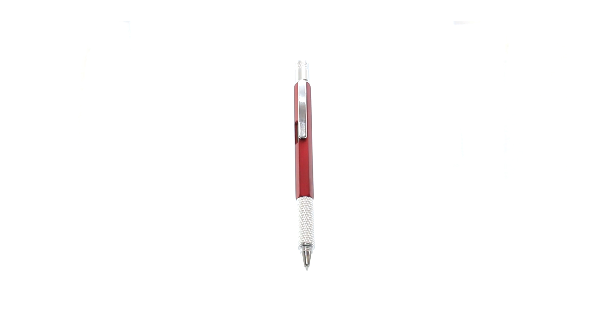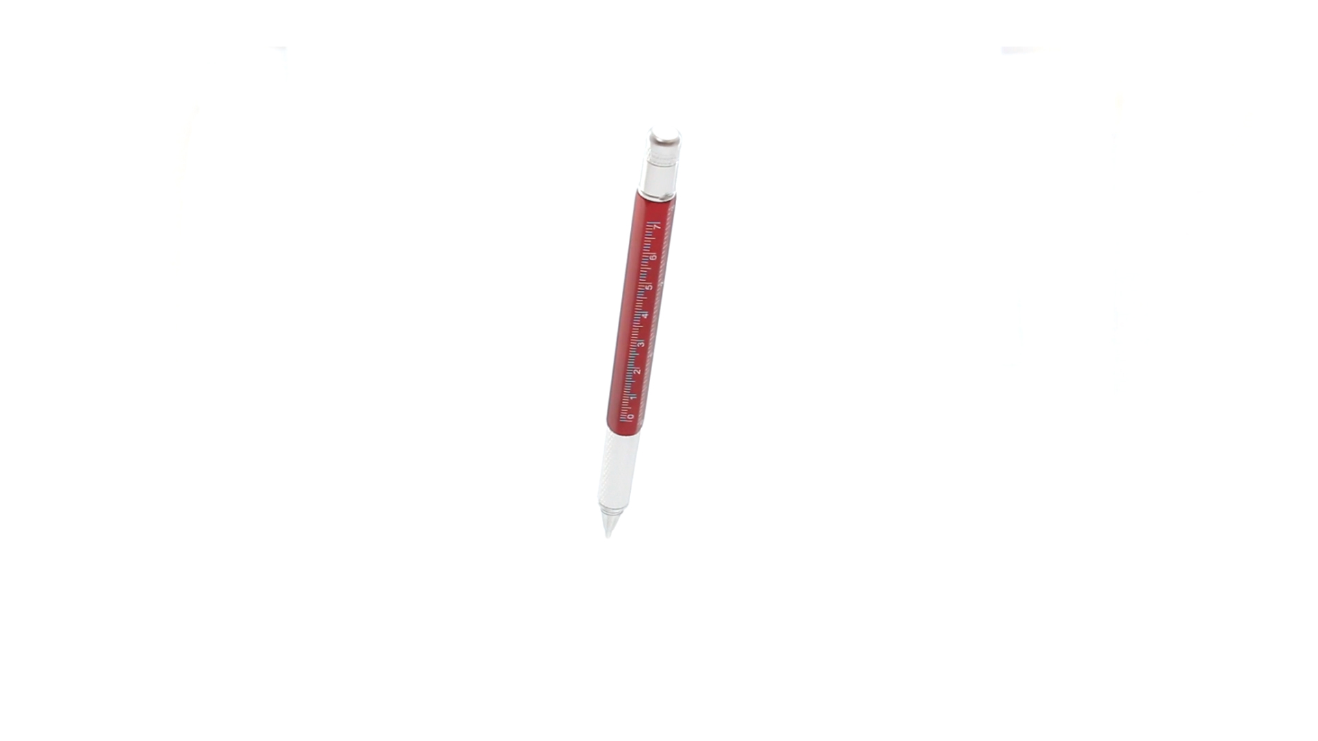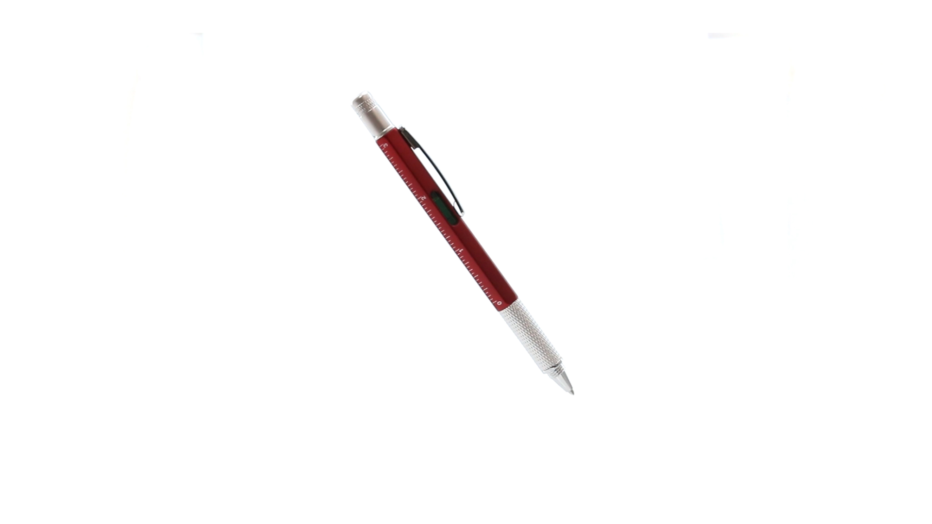 4-in-1 Multifunktions-Dreh-Kugelschreiber in verschiedenen Farben. Mit weichem Griff und integrierter Wasserwaage sowie Lineal mit Skala in Zentimetern und Zoll und Doppelkopf-Schraubendreher - schlitz- und kreuzförmig. Mit Metallclip und blauer Tinte.