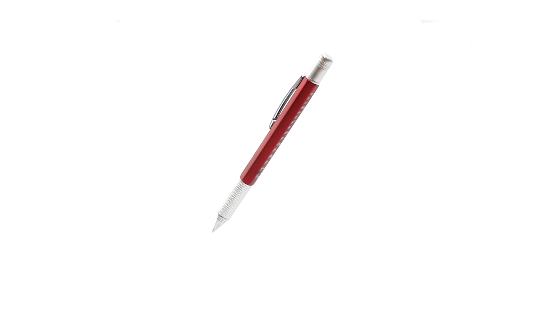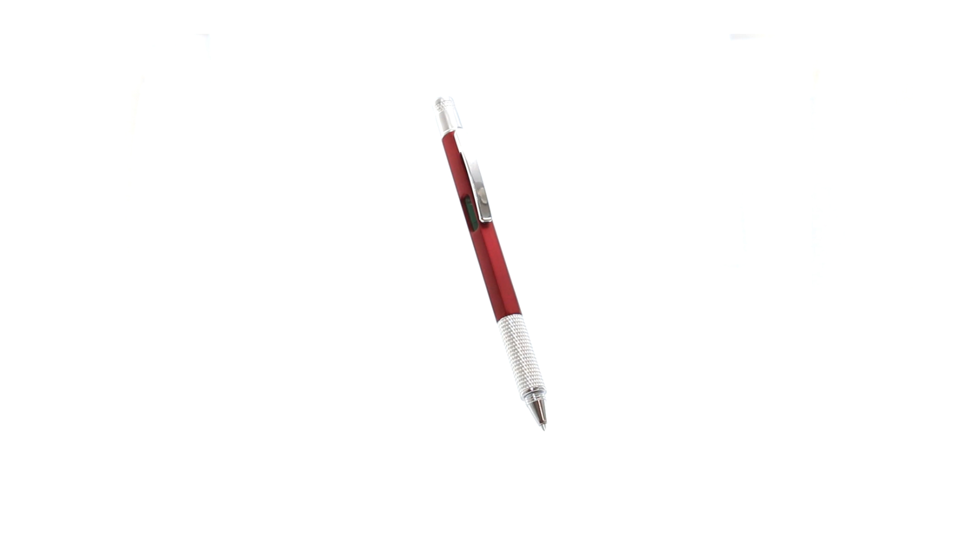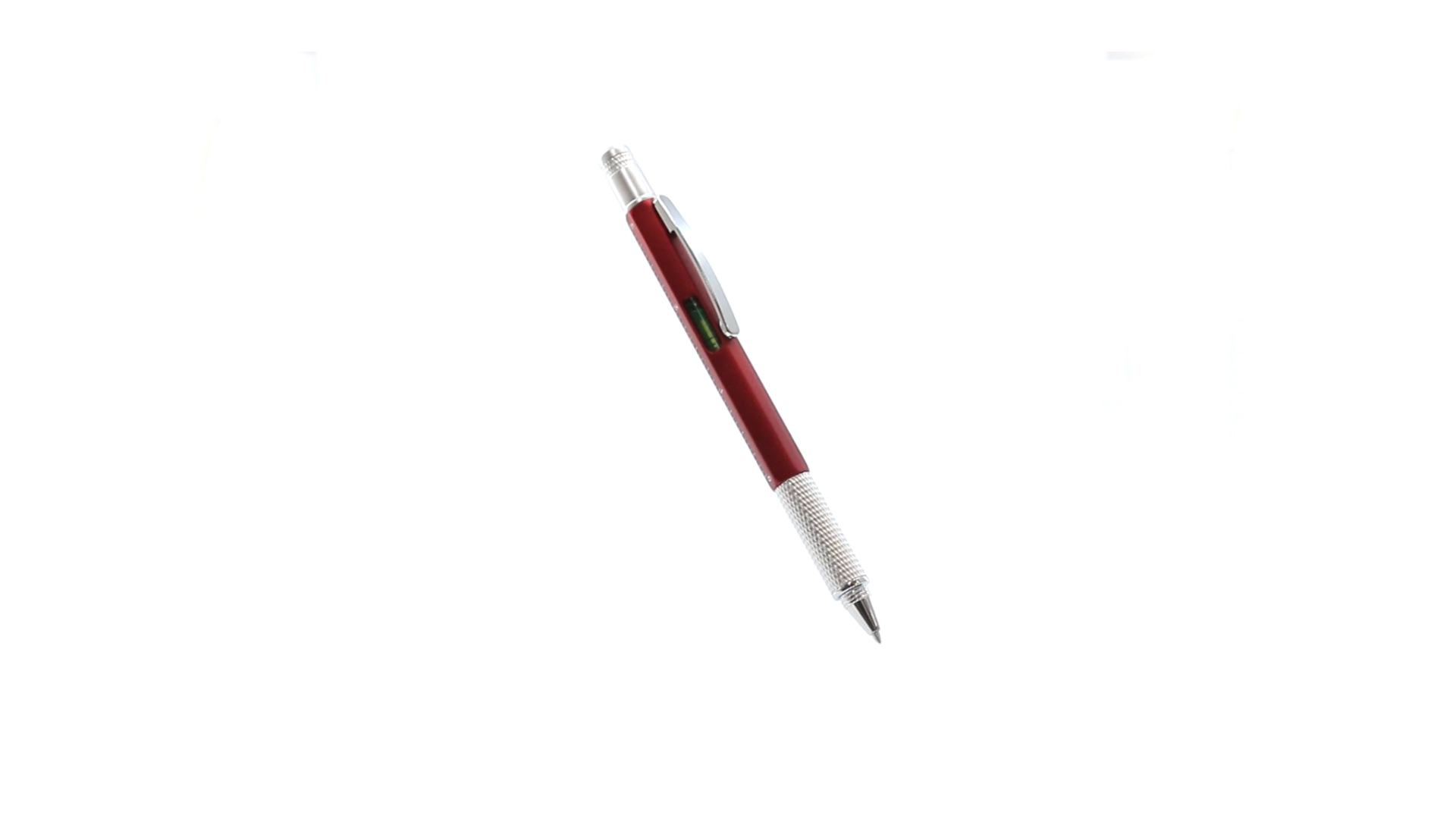 4-in-1 Multifunktions-Dreh-Kugelschreiber in verschiedenen Farben. Mit weichem Griff und integrierter Wasserwaage sowie Lineal mit Skala in Zentimetern und Zoll und Doppelkopf-Schraubendreher - schlitz- und kreuzförmig. Mit Metallclip und blauer Tinte.