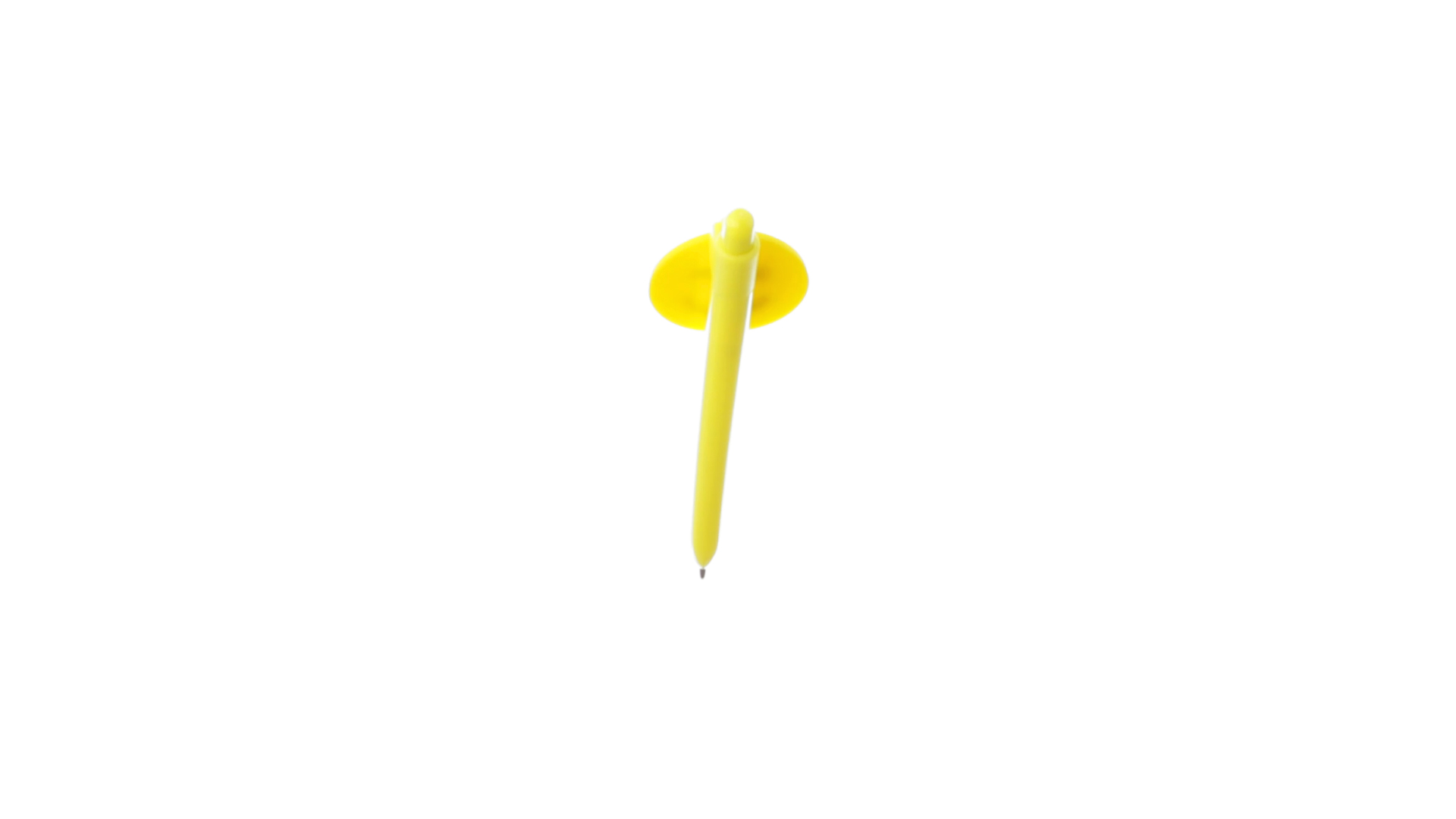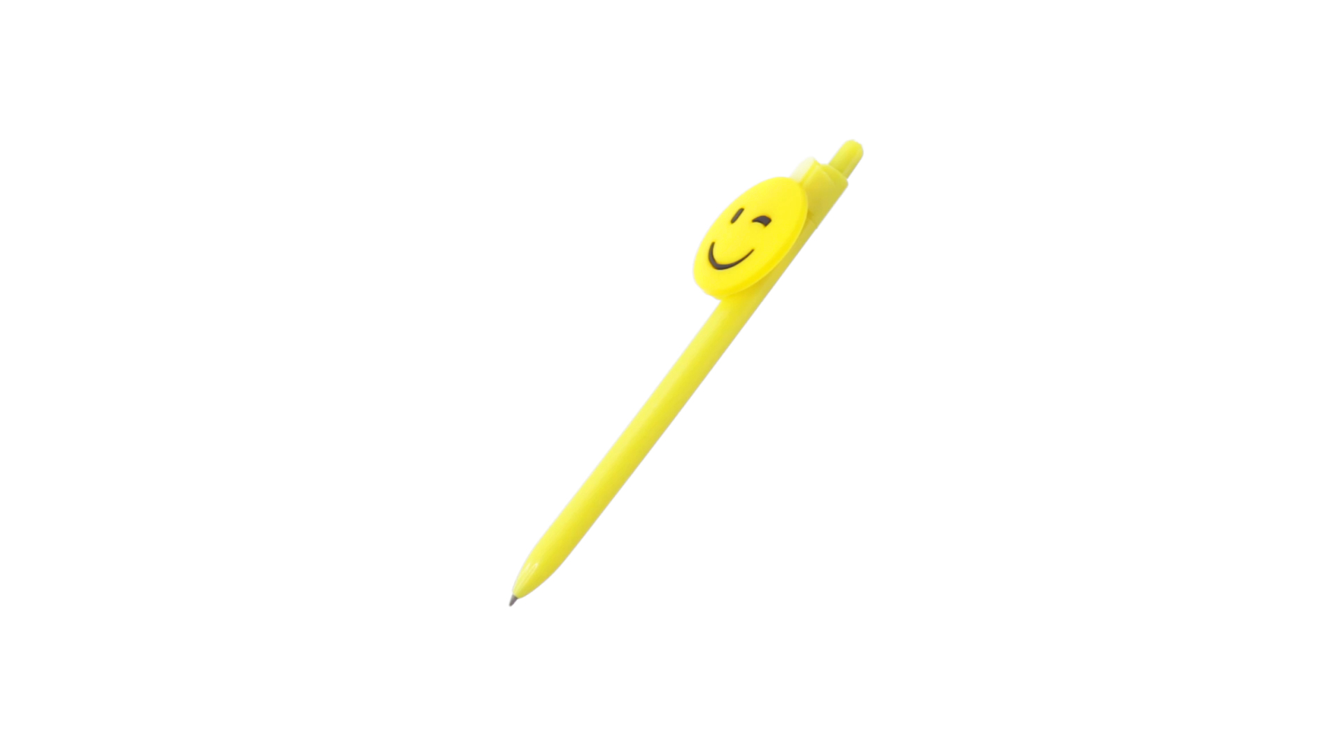 Toller Druck-Kugelschreiber mit Emoji-Design in auffälligem Gelb. Mit geschmeidigem Schaft in glänzender Ausführung und originellem kreisförmigen Clip sowie blauer Tinte.