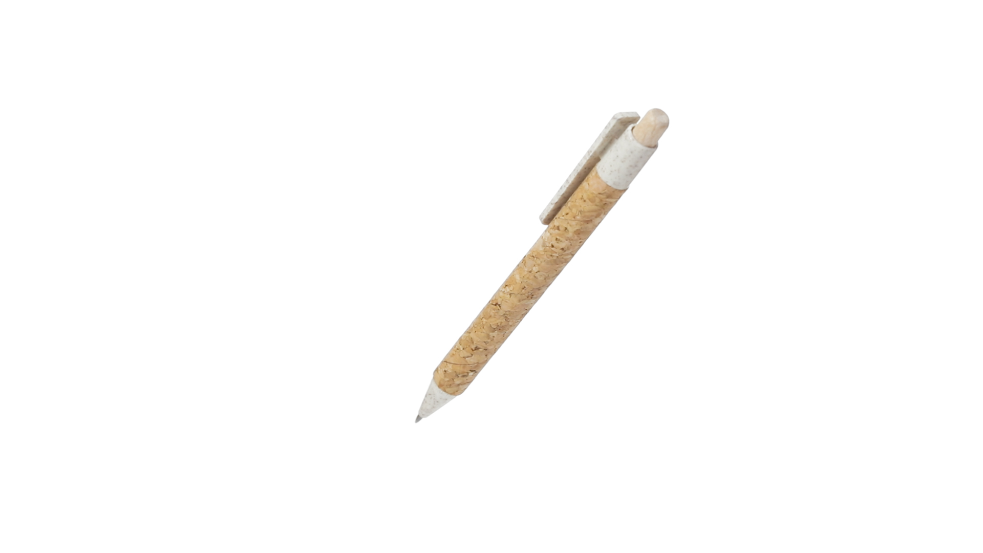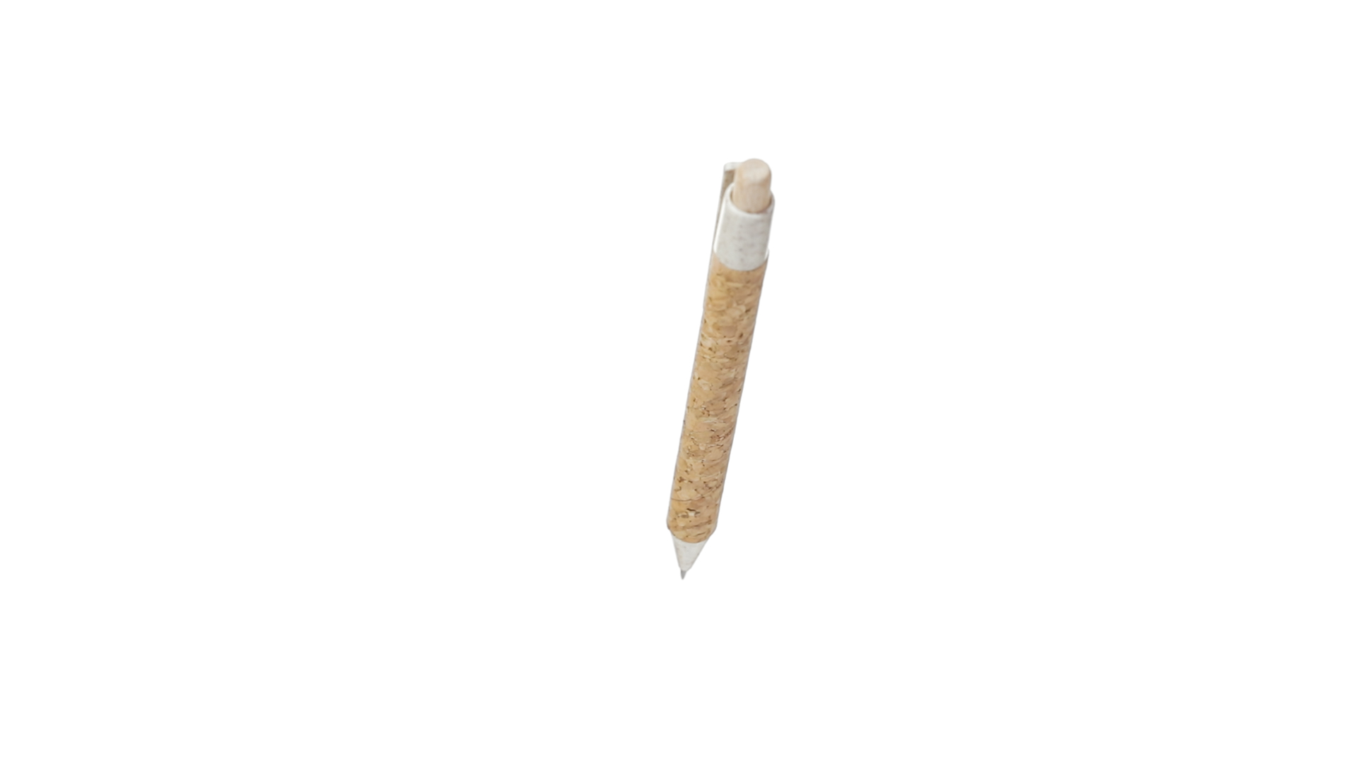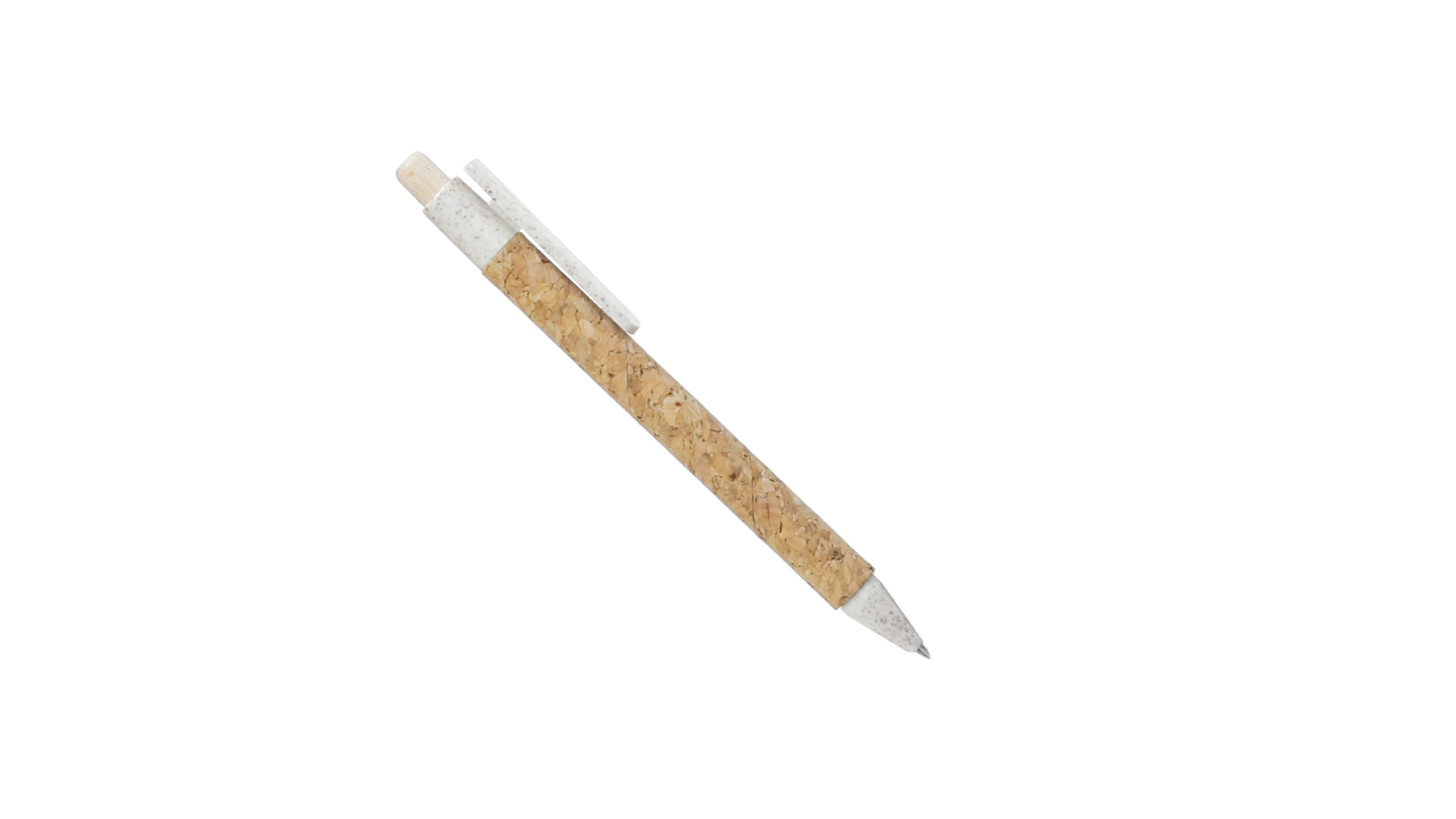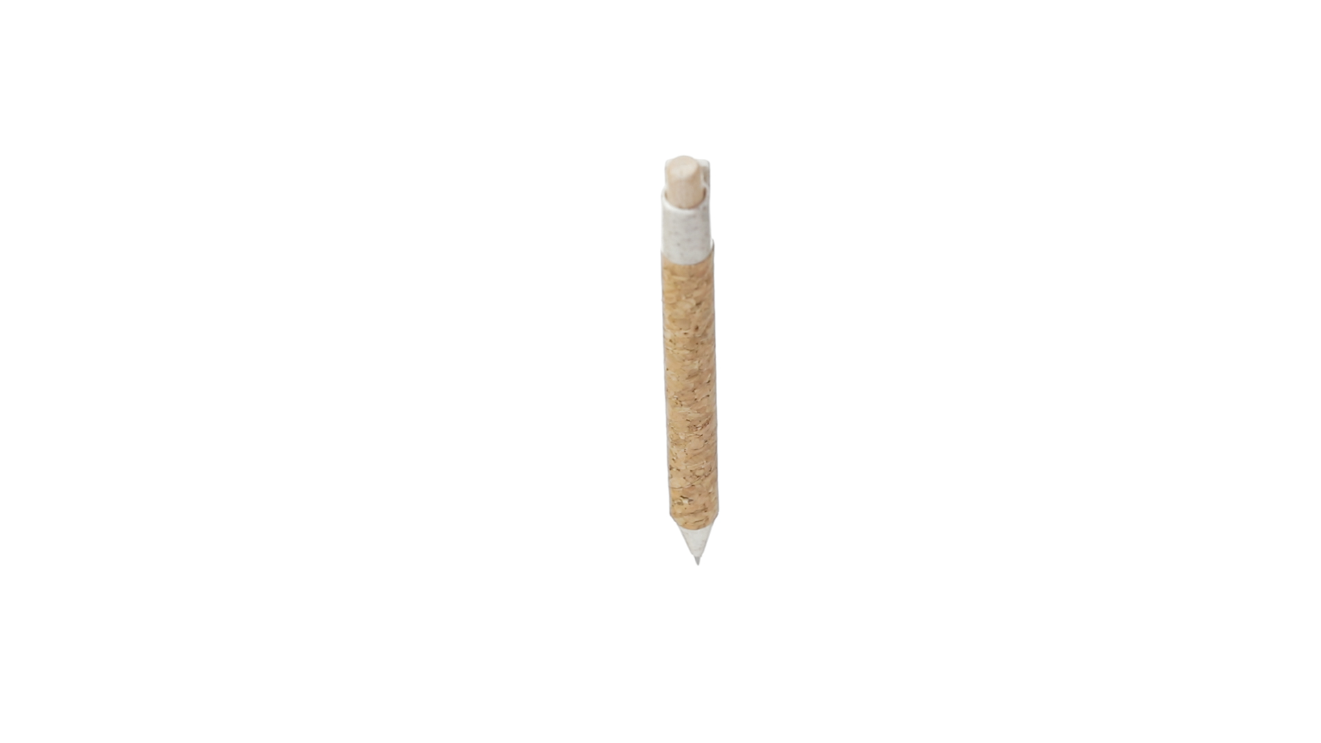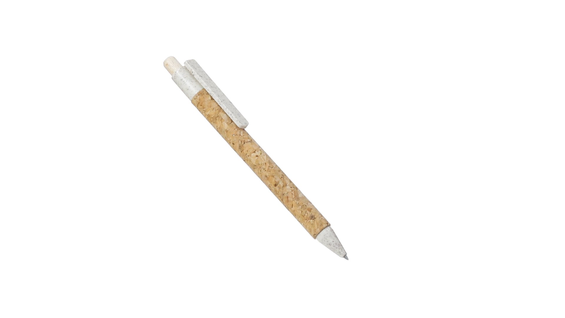 Kugelschreiber der Nature-Linie mit Gehäuse aus Naturkork. Clip, Spitze und Stopfer aus Weizenstroh, um die Verwendung natürlicher Rohstoffe zu fördern und den Schadstoffausstoss zu reduzieren. Clip speziell für den Tampondruck, mit Push-Up-Mechanismus und blauer Tintenmine.