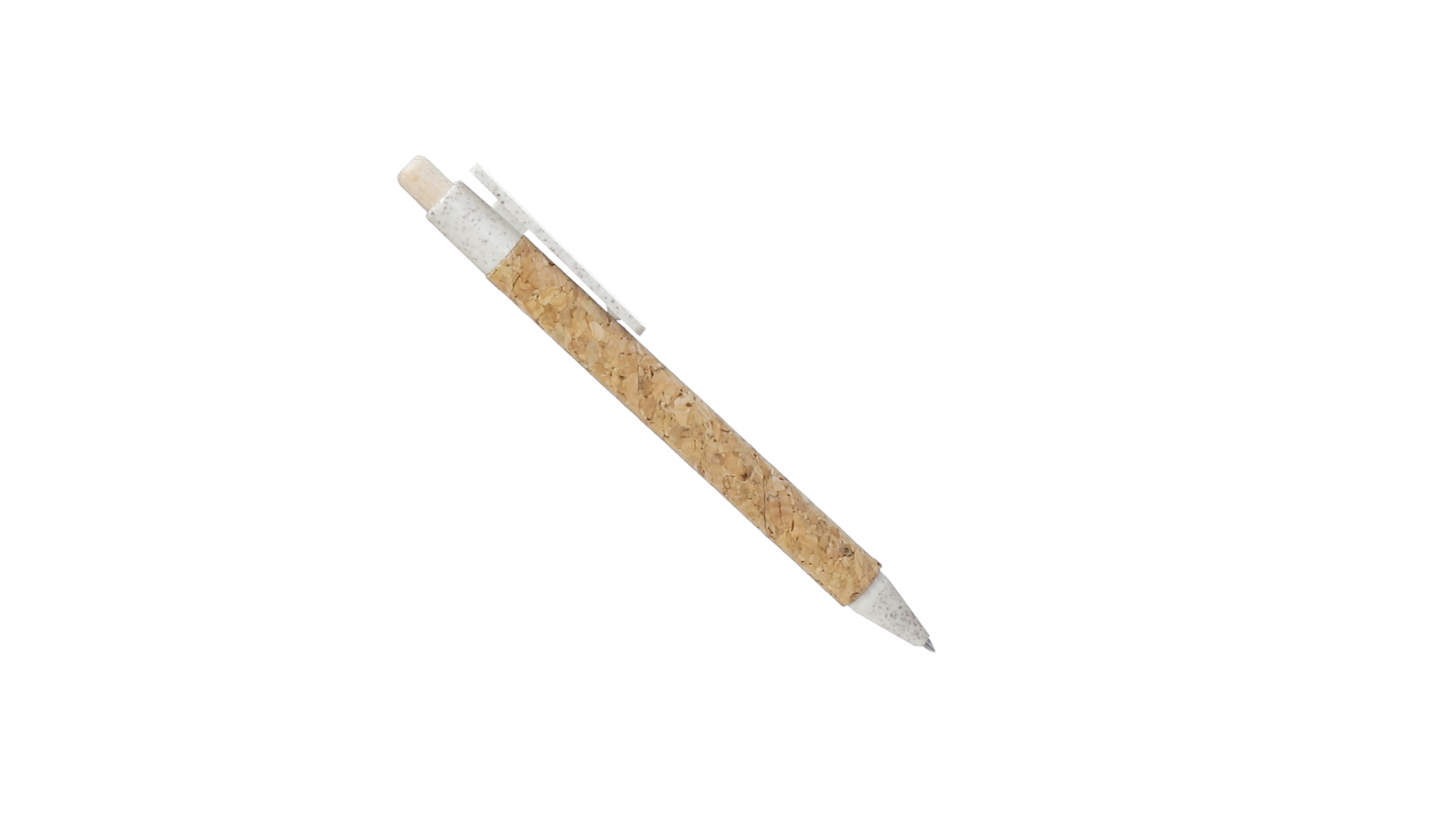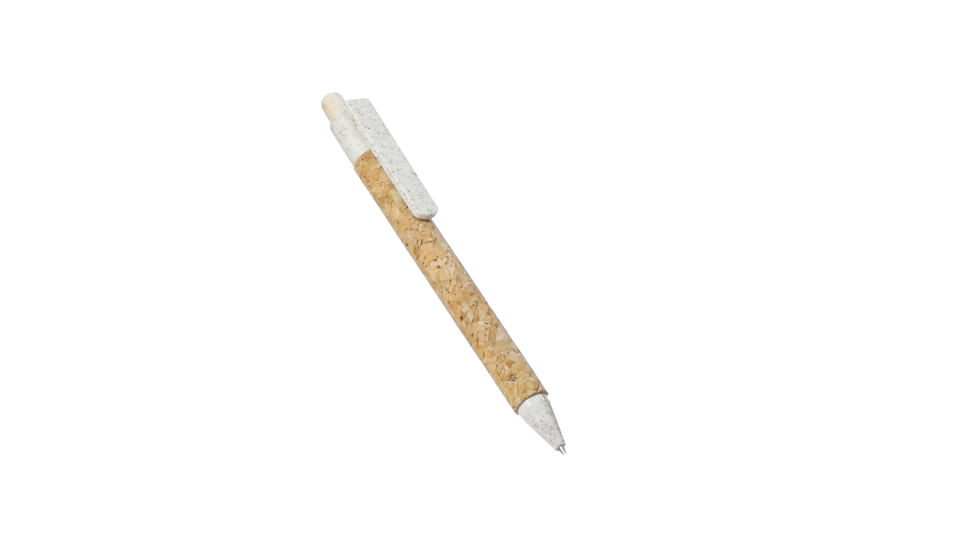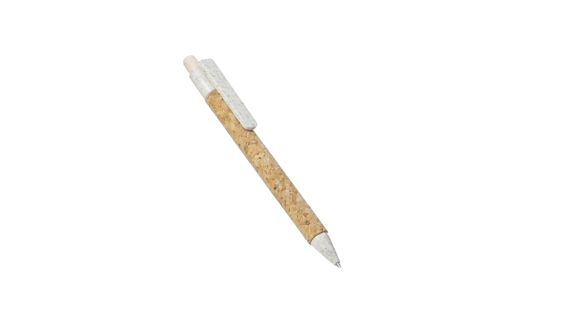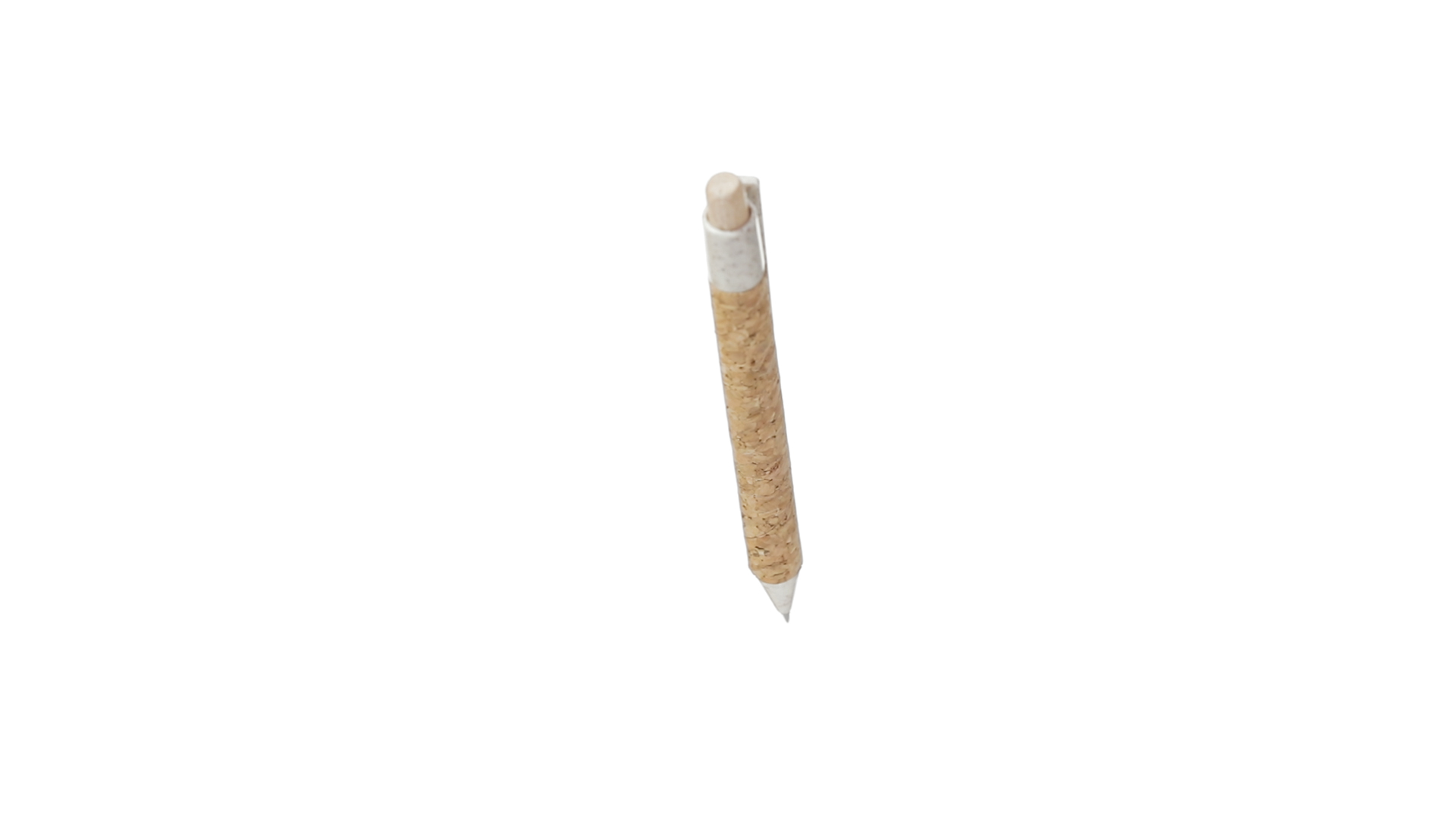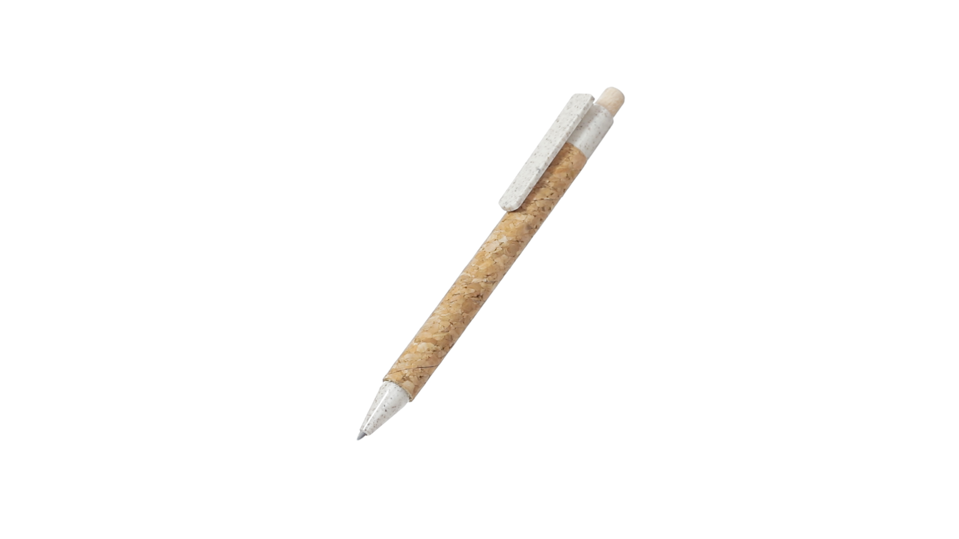 Kugelschreiber der Nature-Linie mit Gehäuse aus Naturkork. Clip, Spitze und Stopfer aus Weizenstroh, um die Verwendung natürlicher Rohstoffe zu fördern und den Schadstoffausstoss zu reduzieren. Clip speziell für den Tampondruck, mit Push-Up-Mechanismus und blauer Tintenmine.