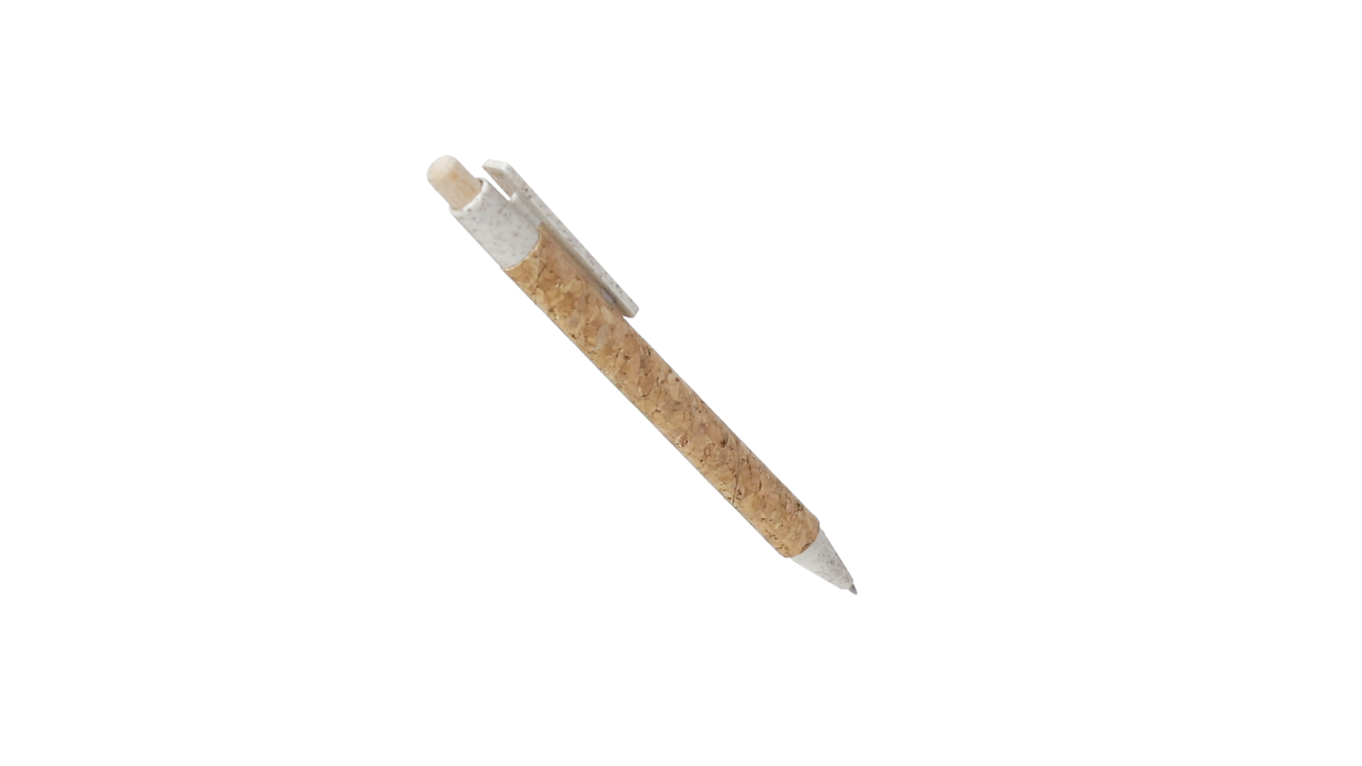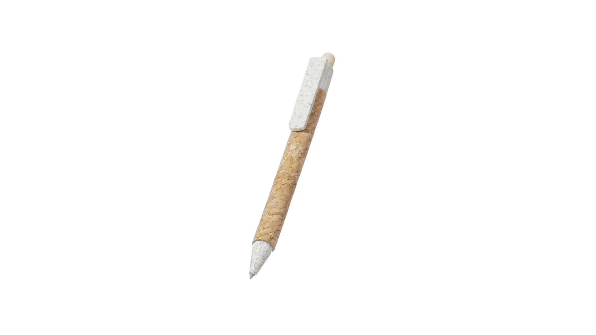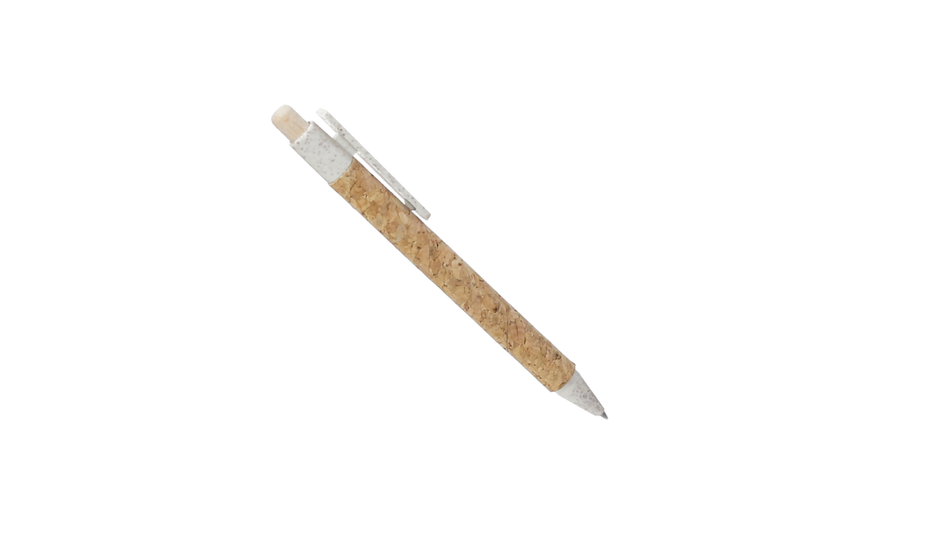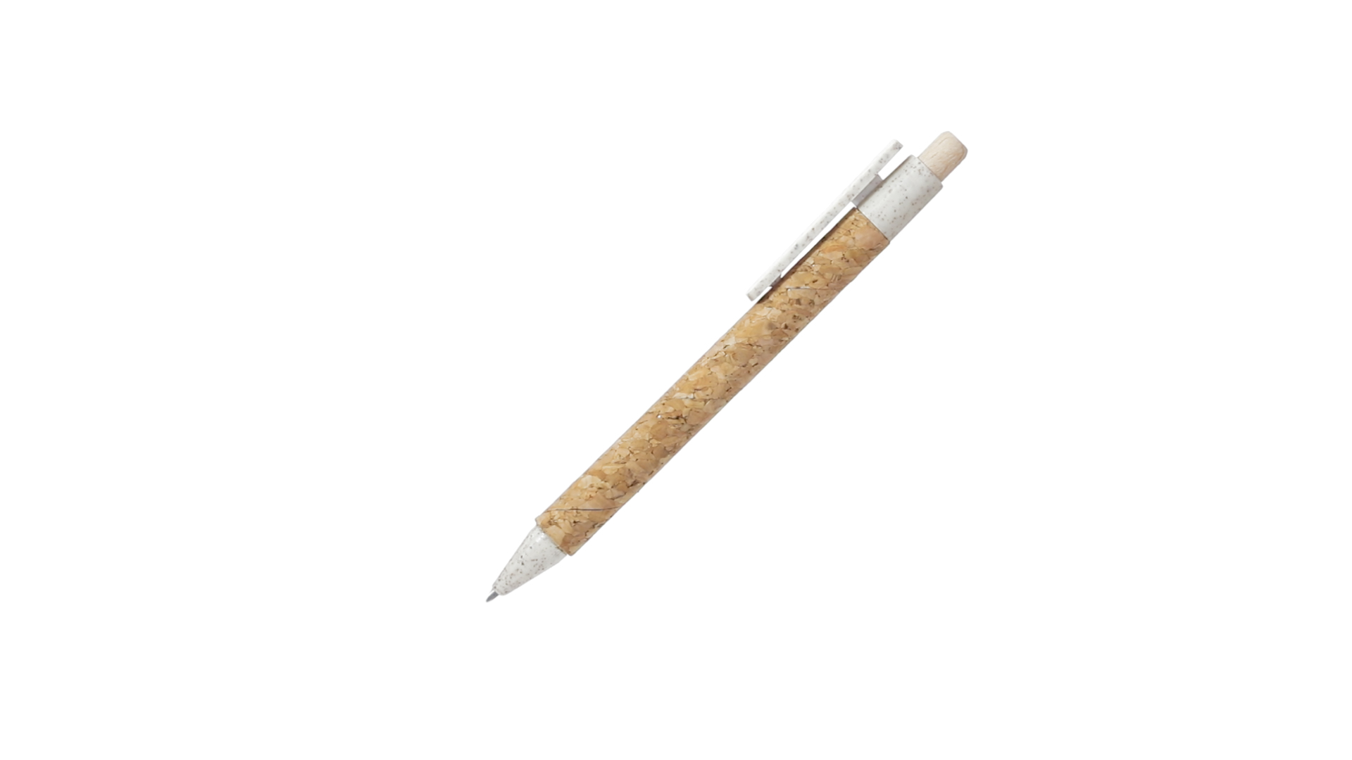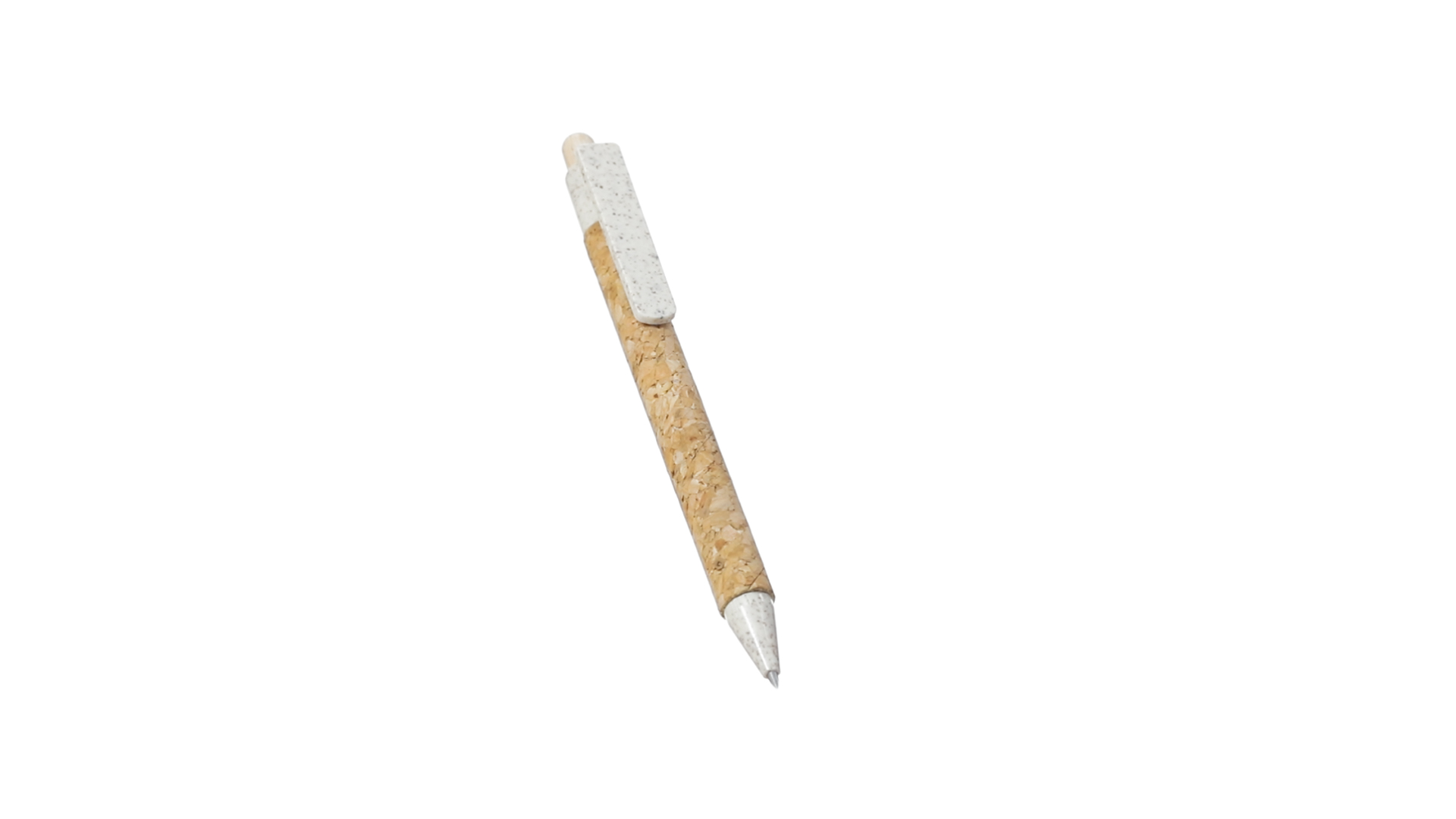 Kugelschreiber der Nature-Linie mit Gehäuse aus Naturkork. Clip, Spitze und Stopfer aus Weizenstroh, um die Verwendung natürlicher Rohstoffe zu fördern und den Schadstoffausstoss zu reduzieren. Clip speziell für den Tampondruck, mit Push-Up-Mechanismus und blauer Tintenmine.