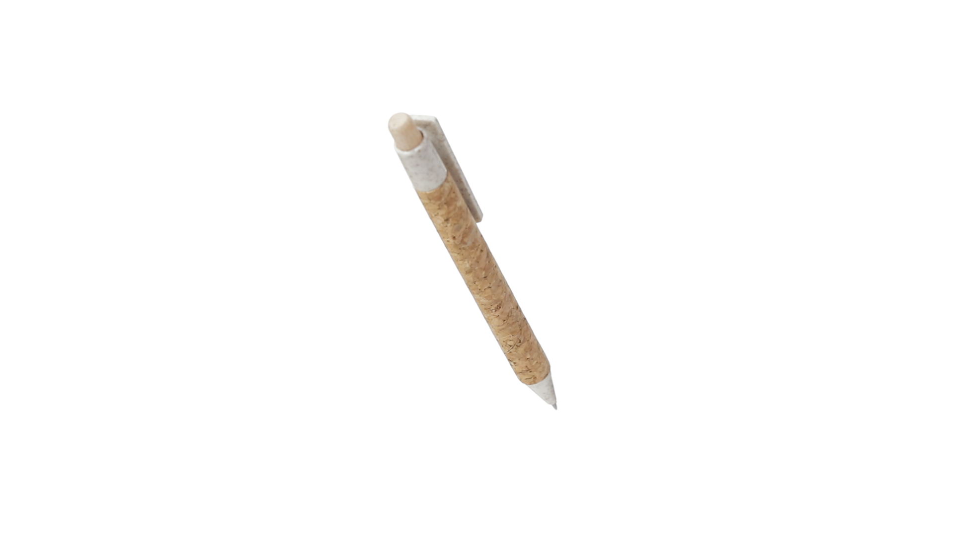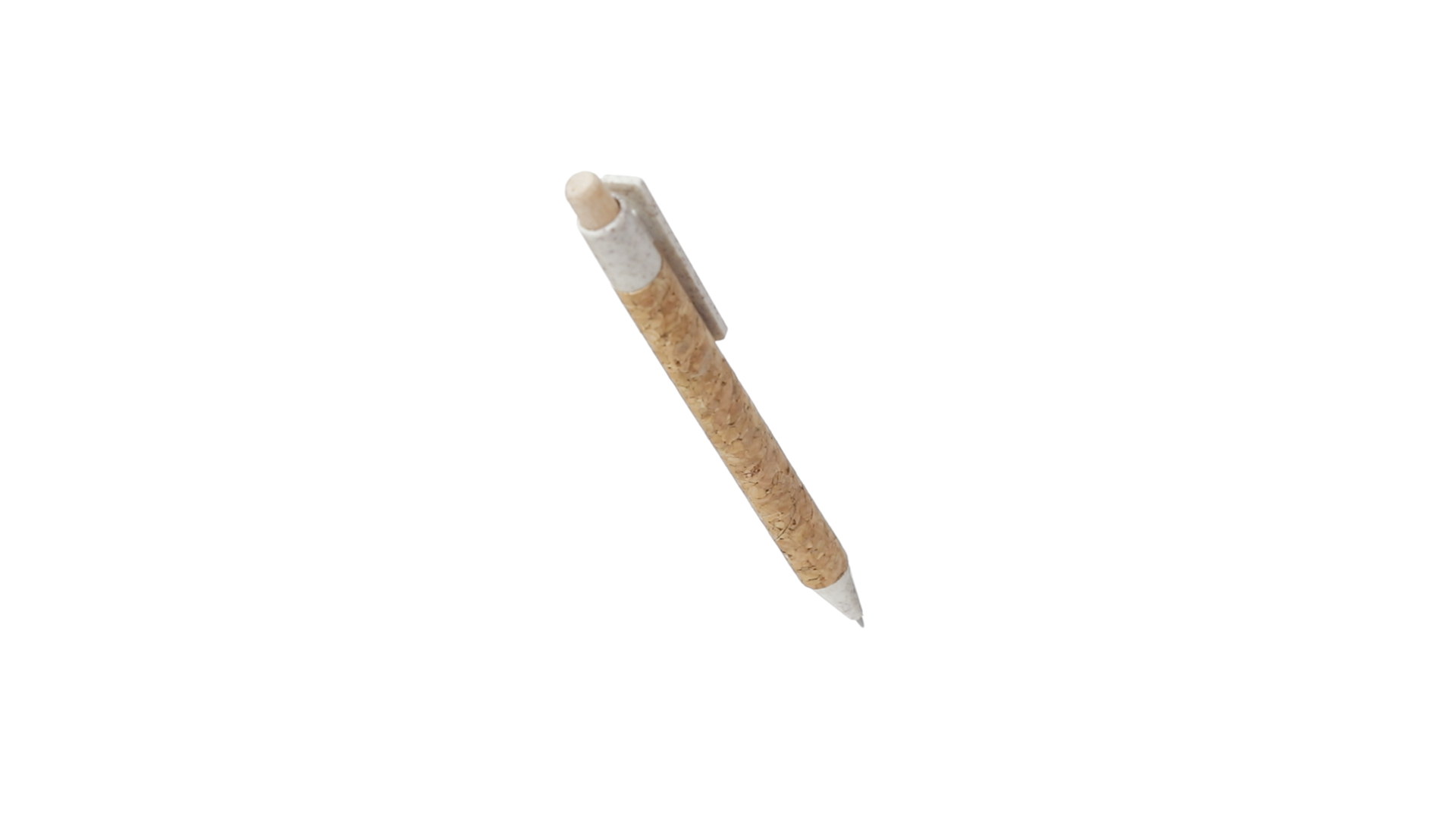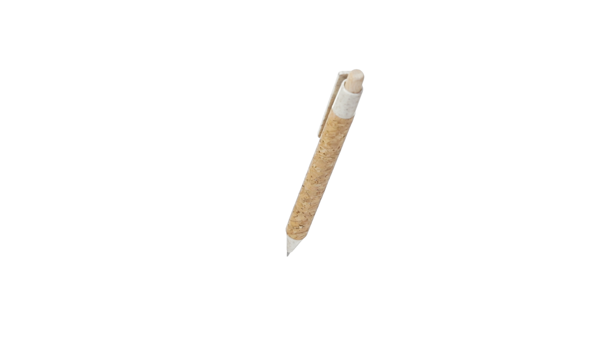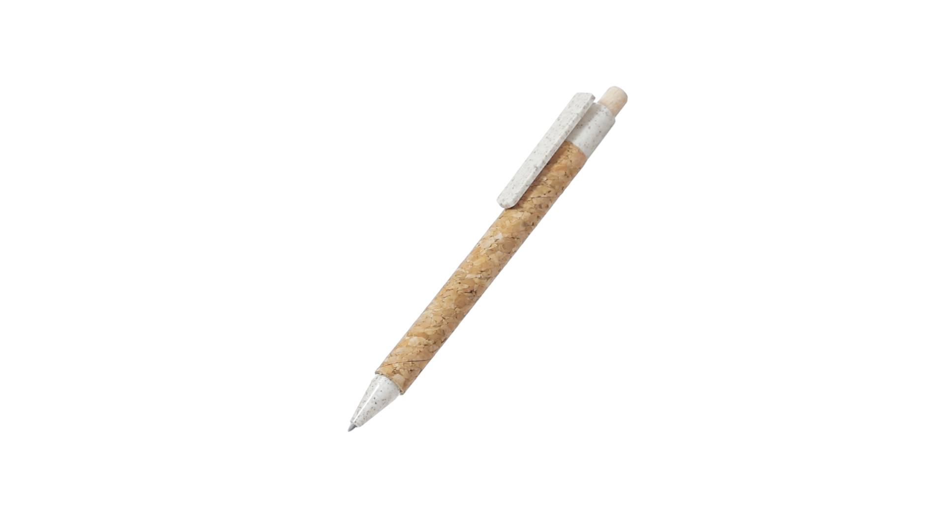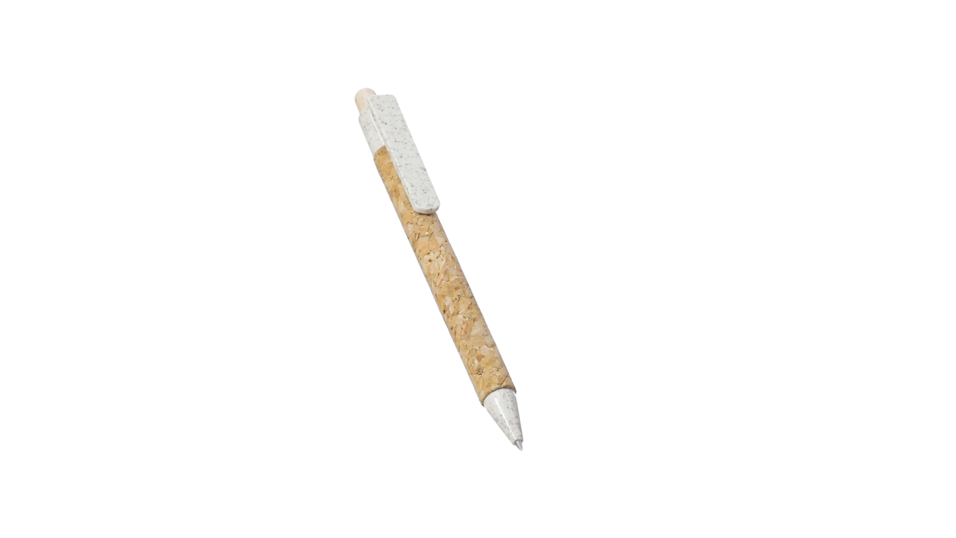 Kugelschreiber der Nature-Linie mit Gehäuse aus Naturkork. Clip, Spitze und Stopfer aus Weizenstroh, um die Verwendung natürlicher Rohstoffe zu fördern und den Schadstoffausstoss zu reduzieren. Clip speziell für den Tampondruck, mit Push-Up-Mechanismus und blauer Tintenmine.