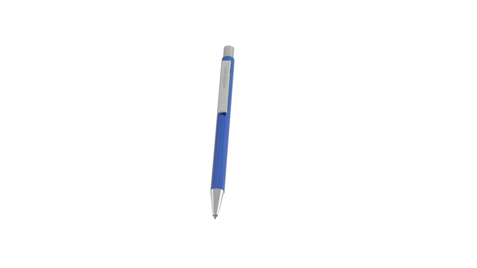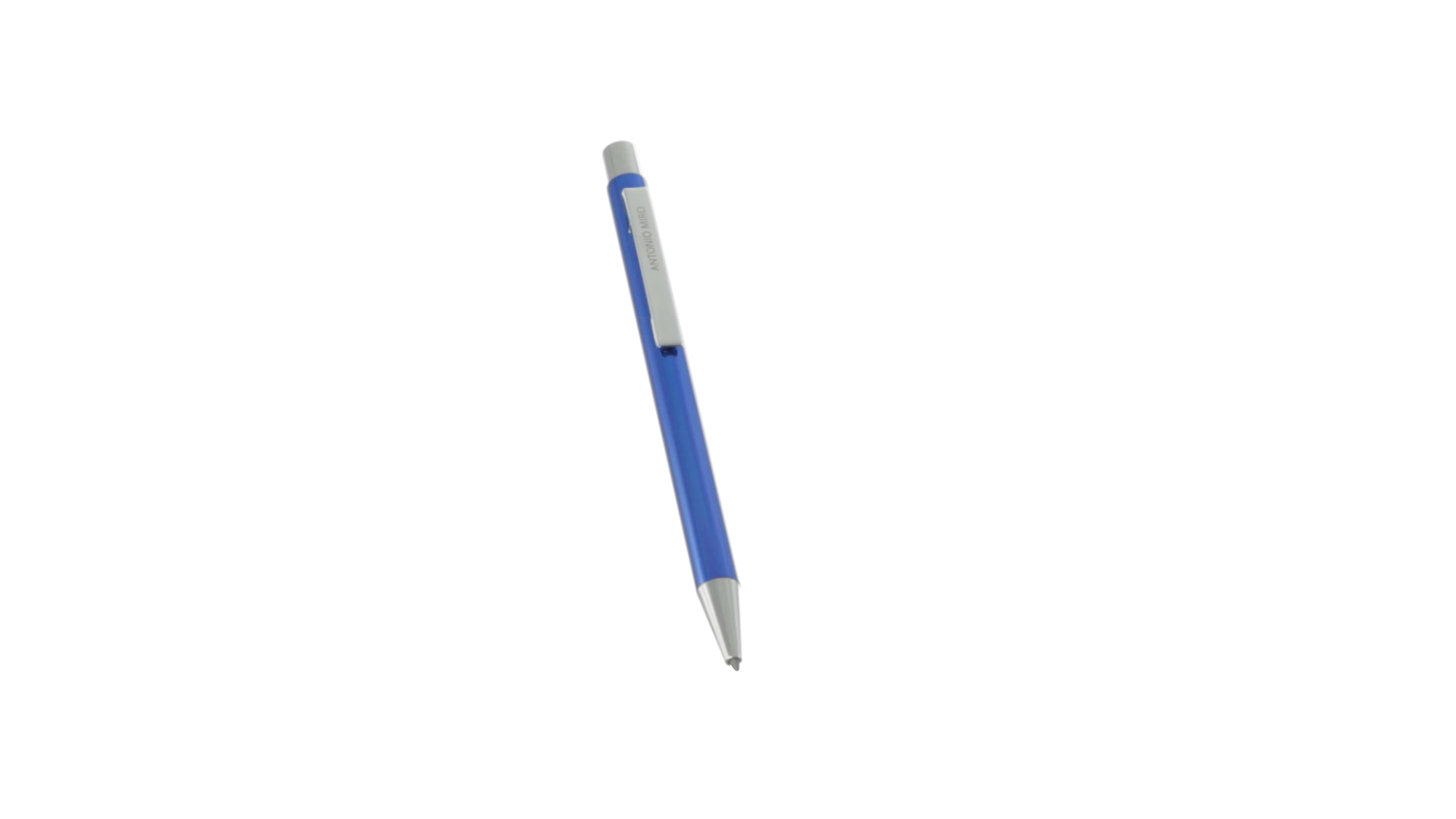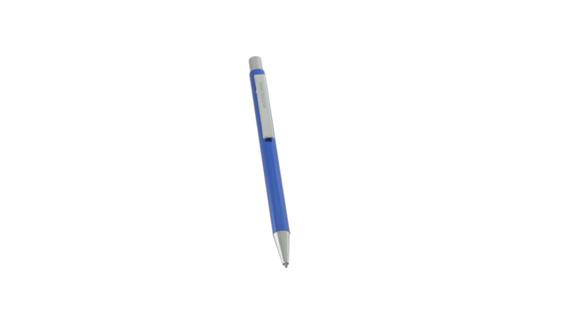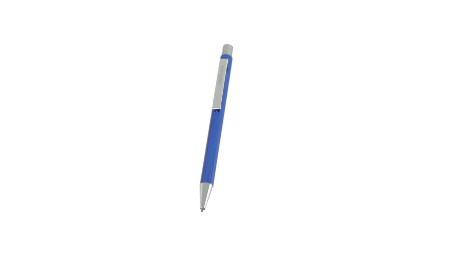 Druck-Kugelschreiber von Antonio Miró mit Aluminiumschaft in verschiedenen Farben und Silber. Präsentiert in einem Beutel mit dem Markenlogo. Blaue Tinte.