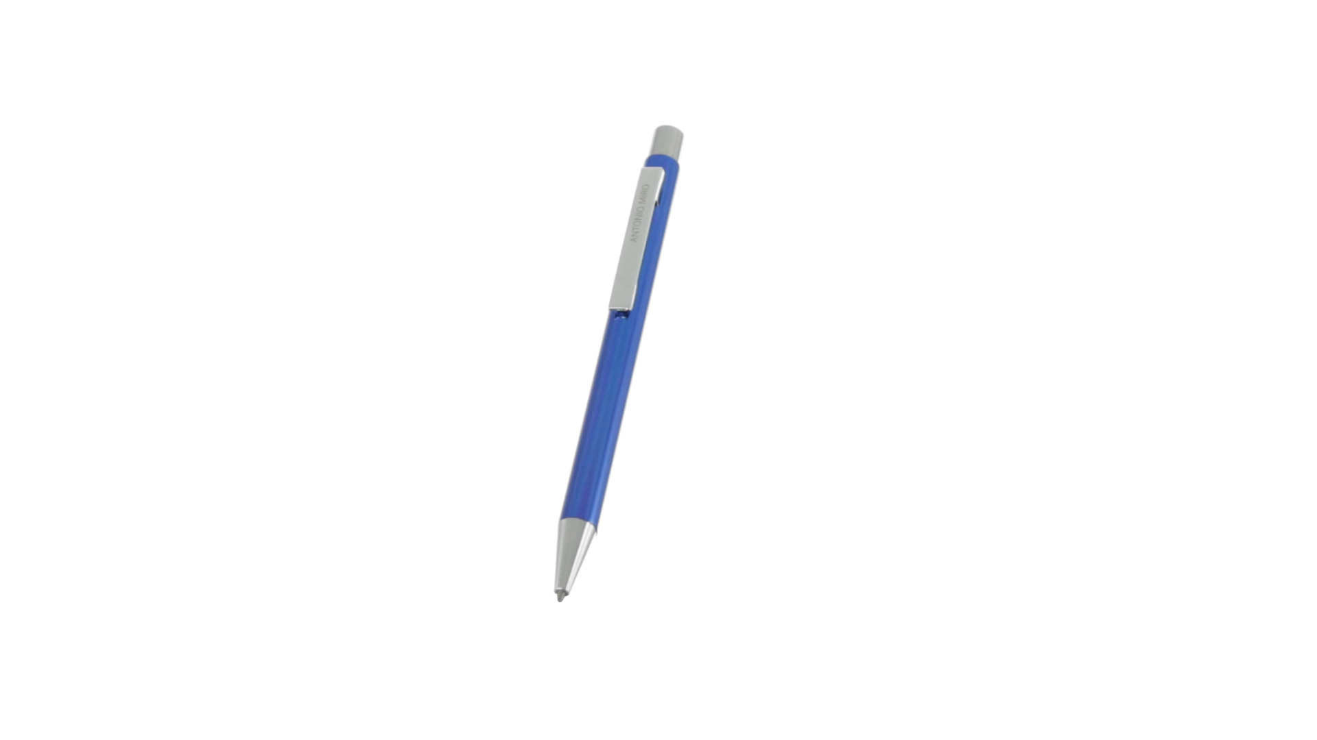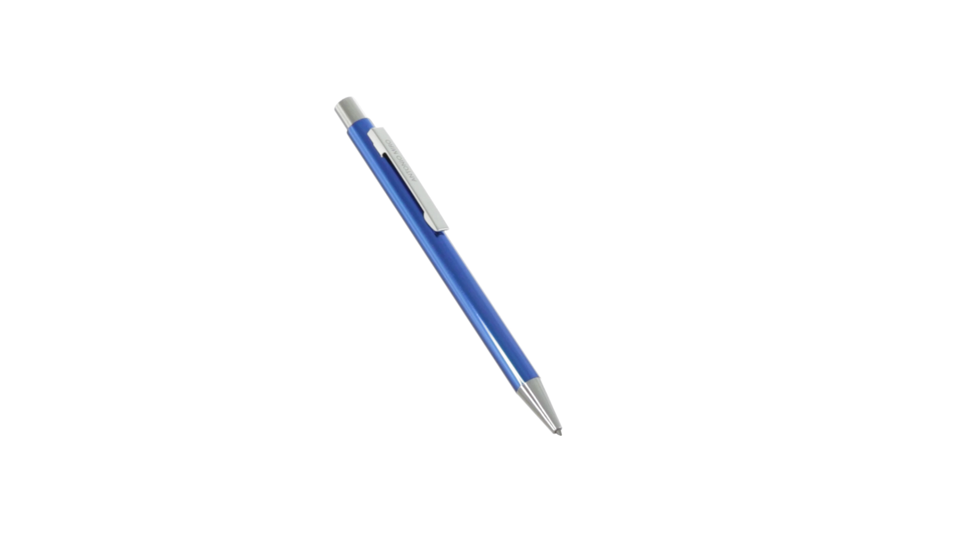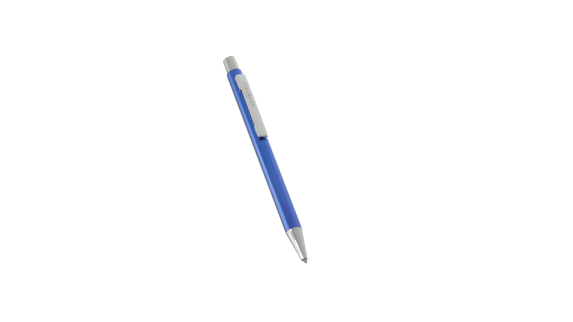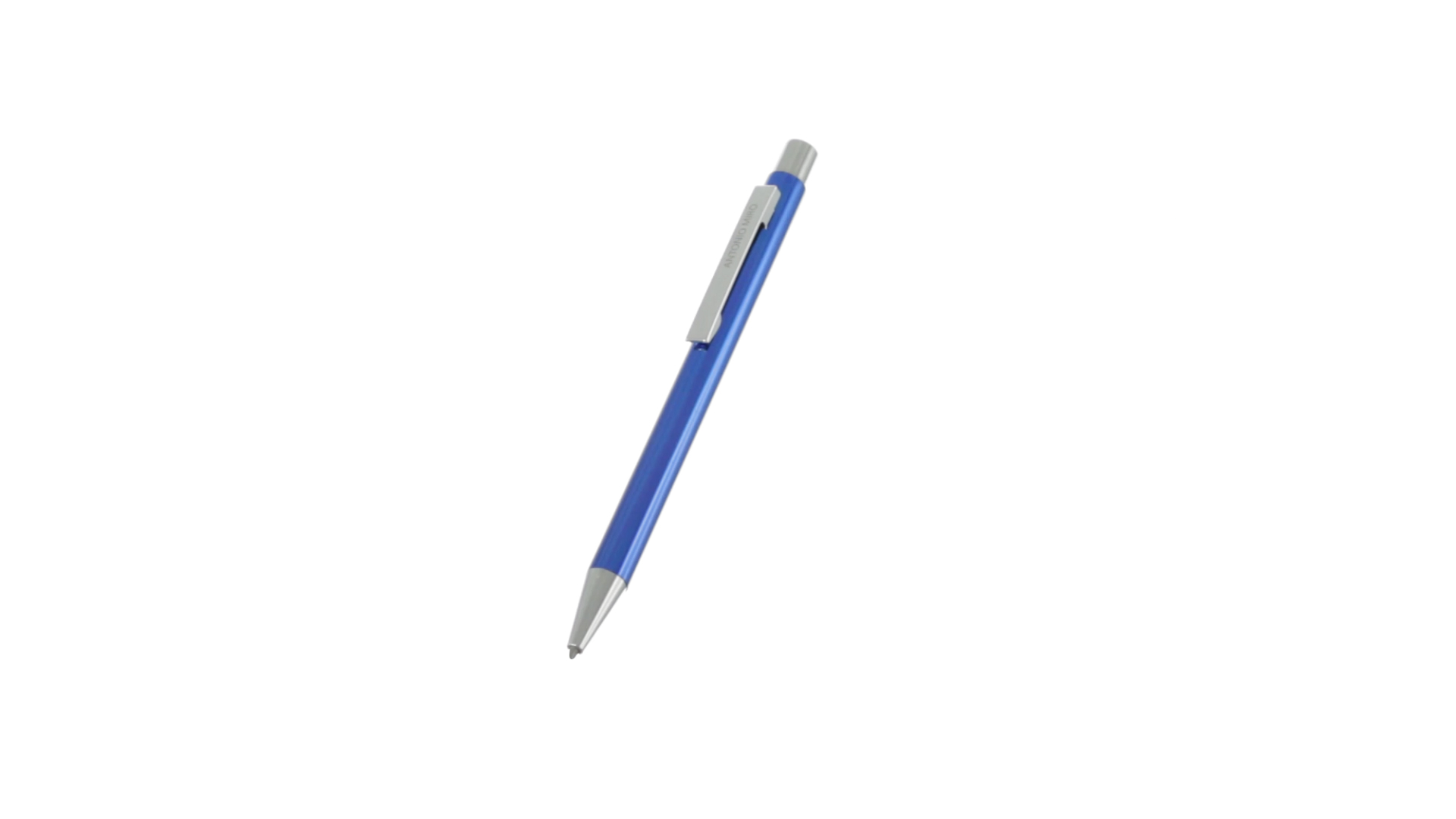 Druck-Kugelschreiber von Antonio Miró mit Aluminiumschaft in verschiedenen Farben und Silber. Präsentiert in einem Beutel mit dem Markenlogo. Blaue Tinte.