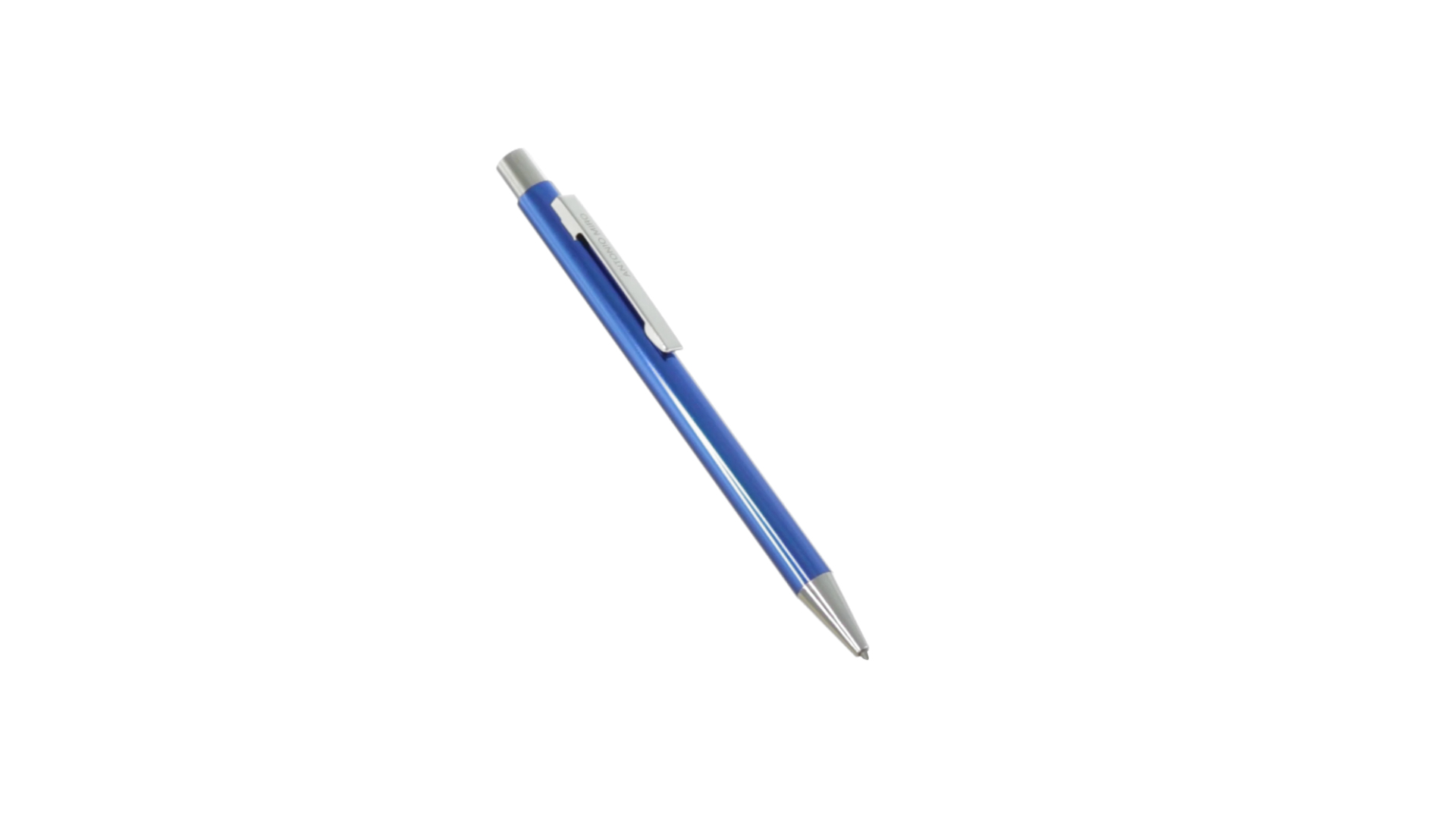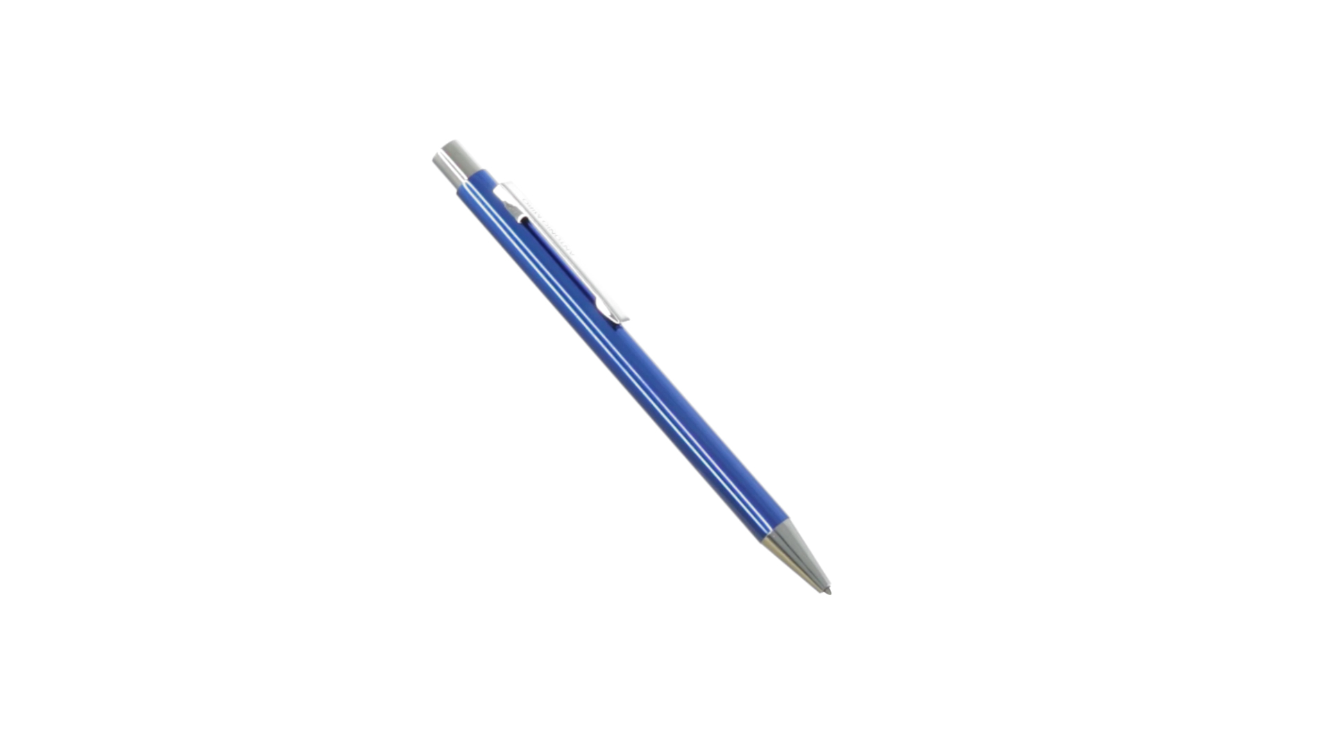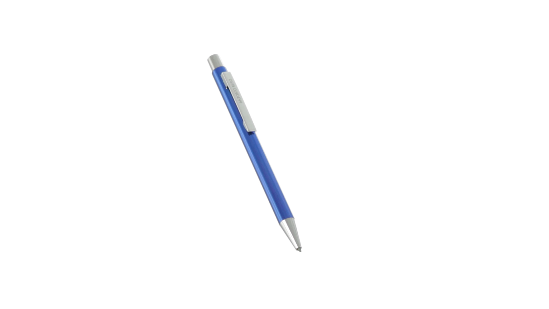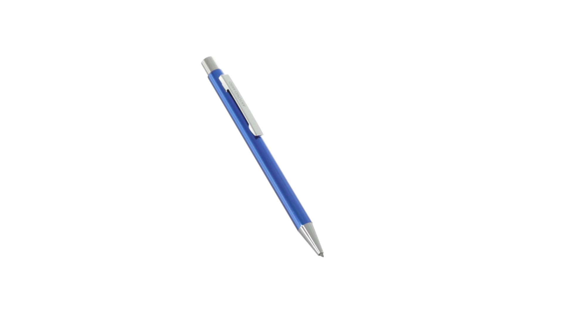 Druck-Kugelschreiber von Antonio Miró mit Aluminiumschaft in verschiedenen Farben und Silber. Präsentiert in einem Beutel mit dem Markenlogo. Blaue Tinte.