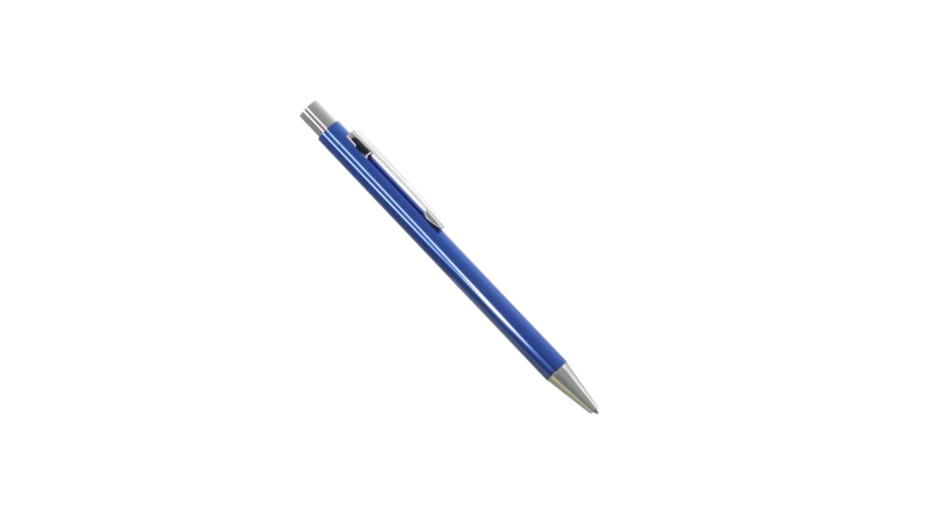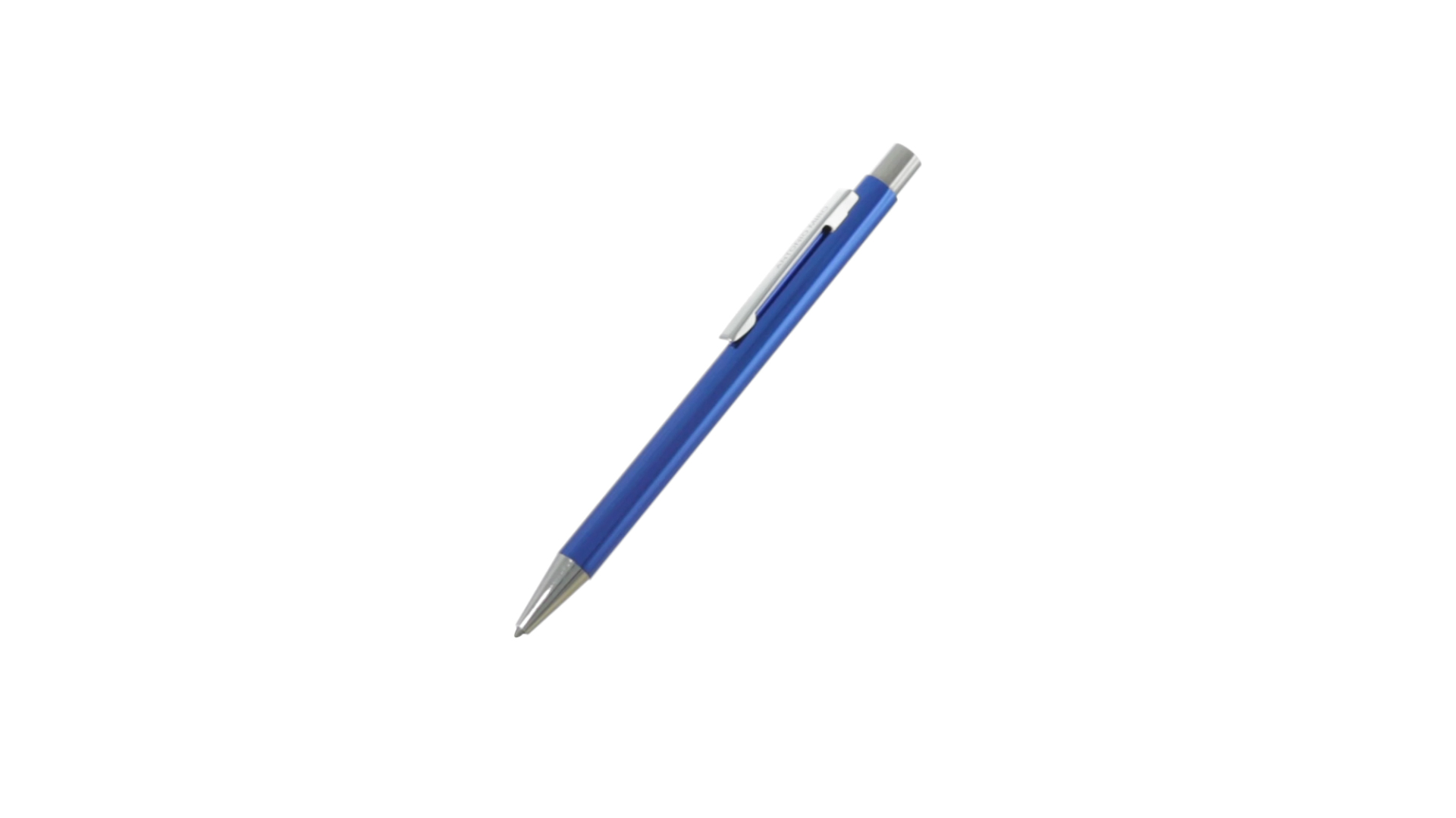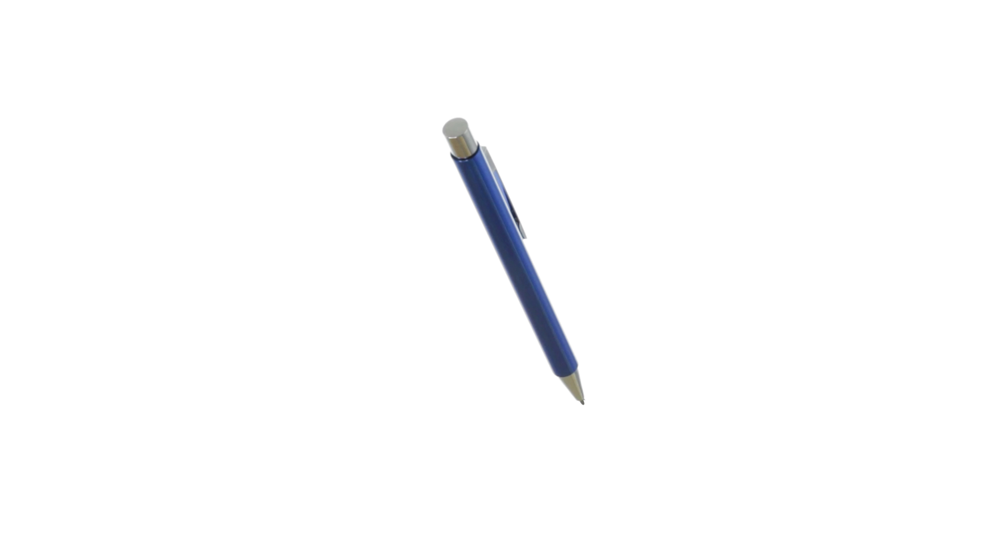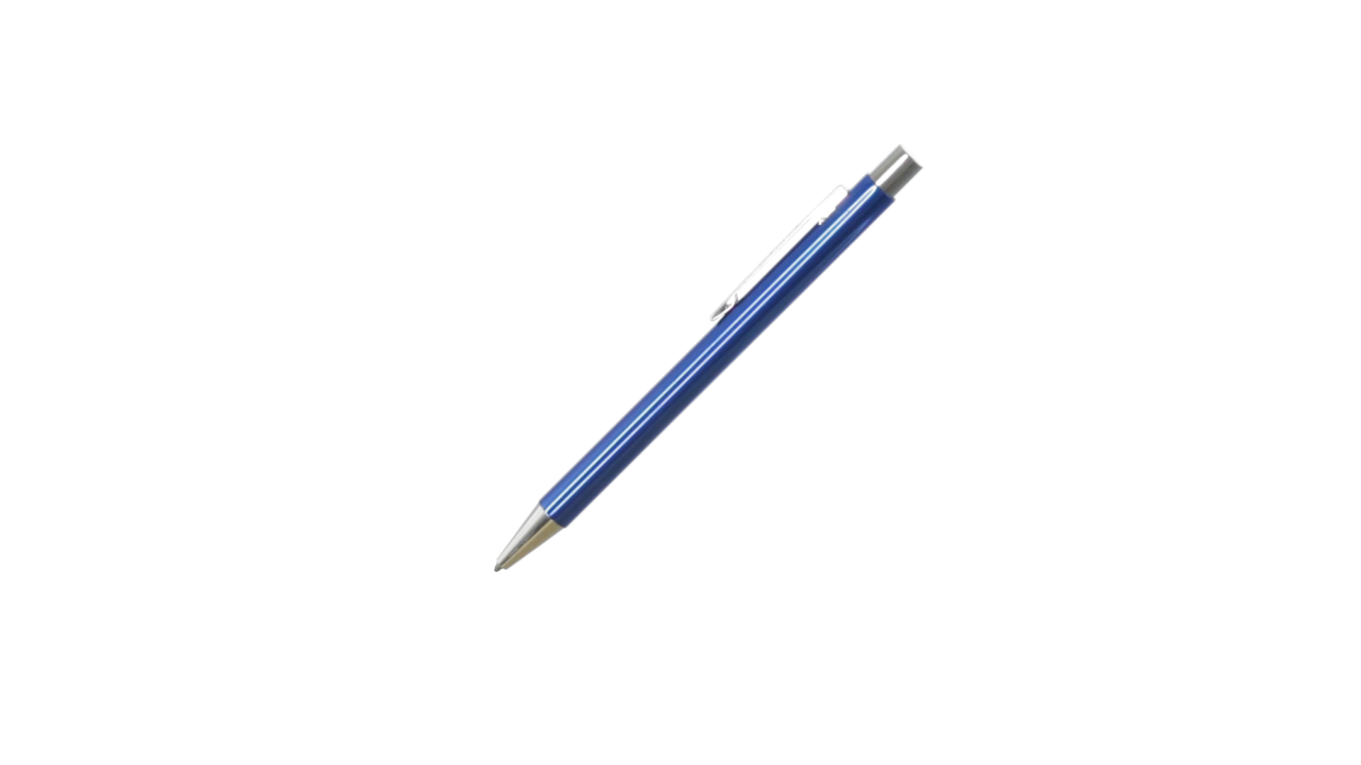 Druck-Kugelschreiber von Antonio Miró mit Aluminiumschaft in verschiedenen Farben und Silber. Präsentiert in einem Beutel mit dem Markenlogo. Blaue Tinte.