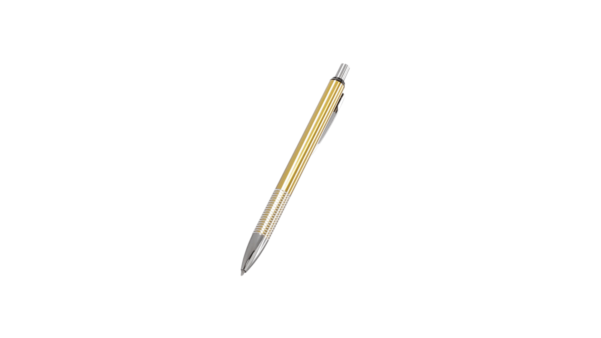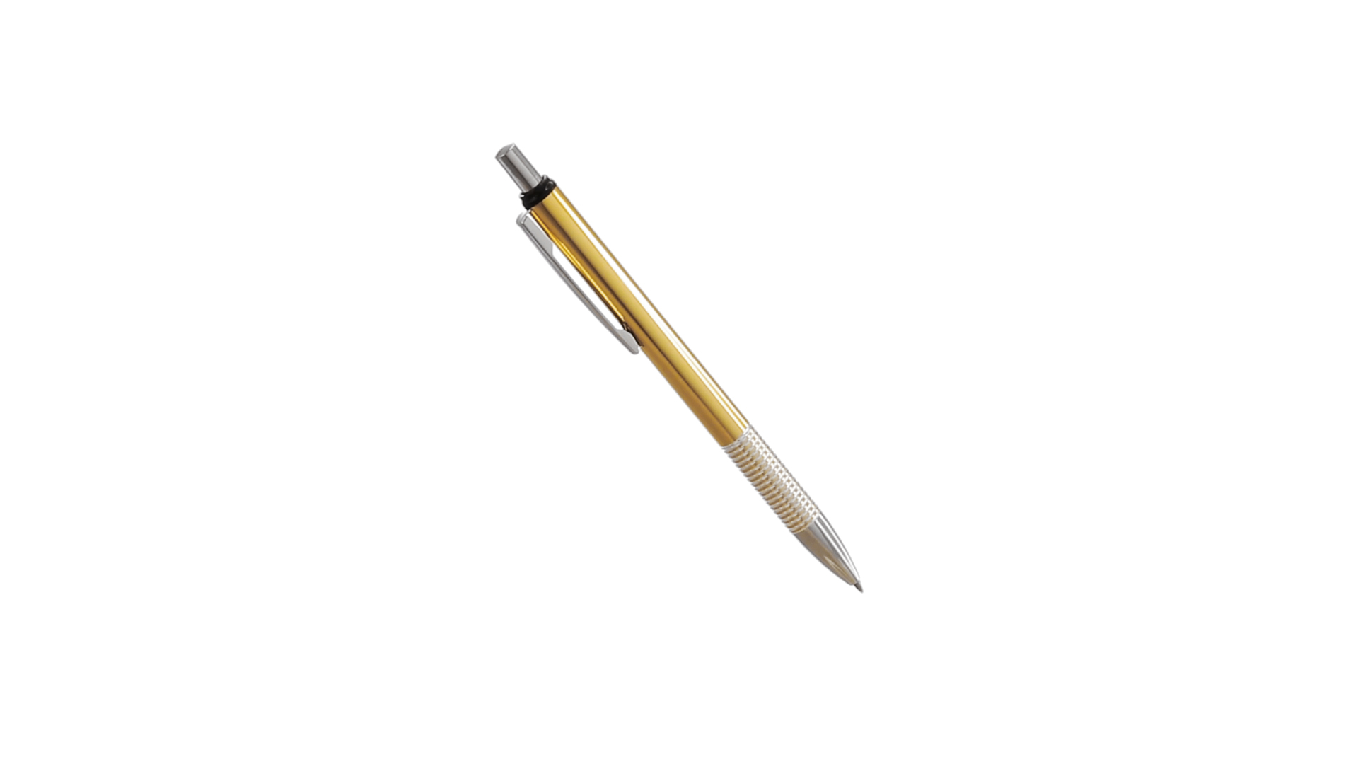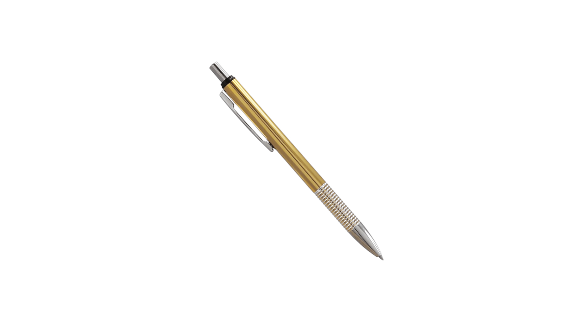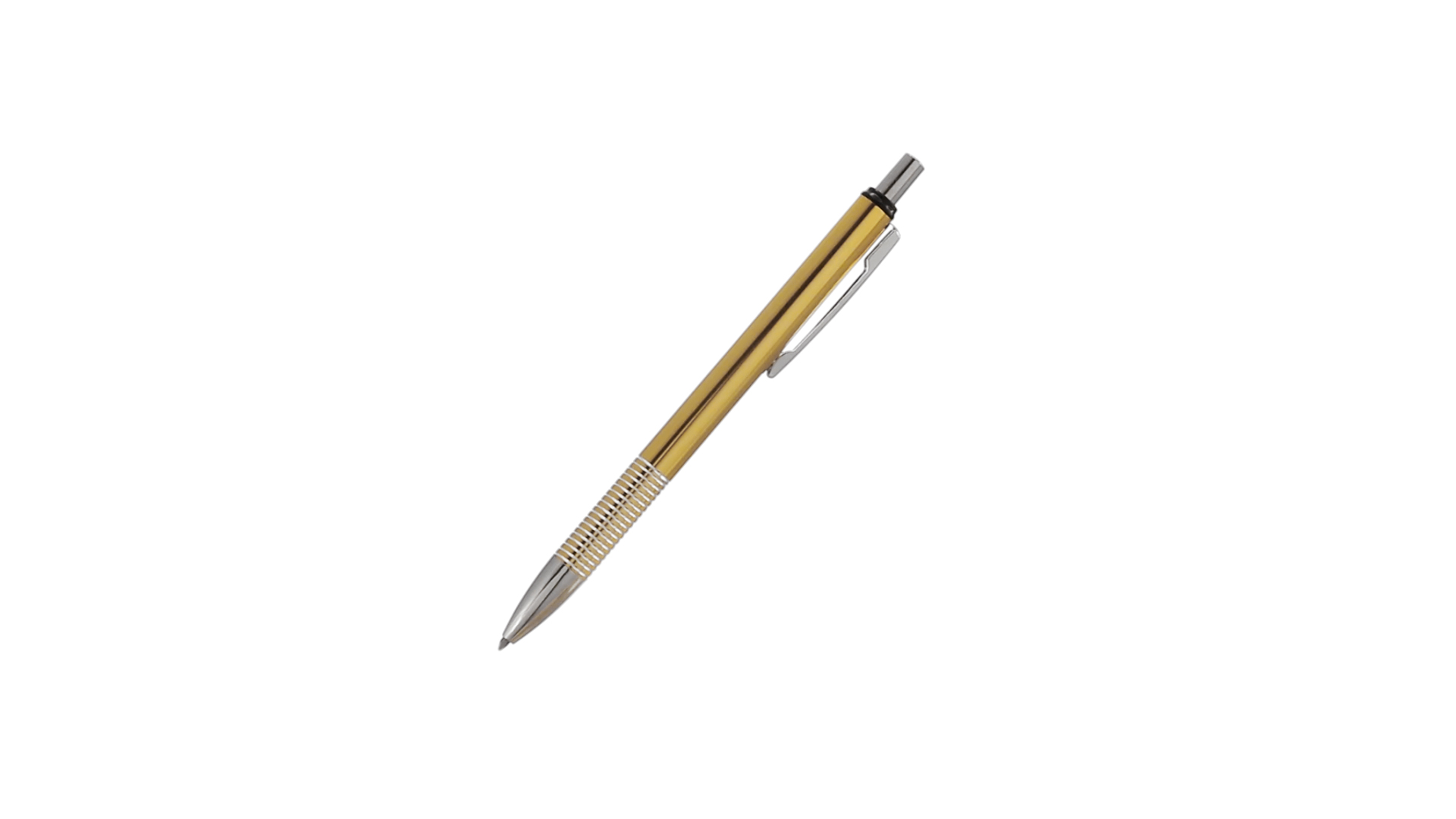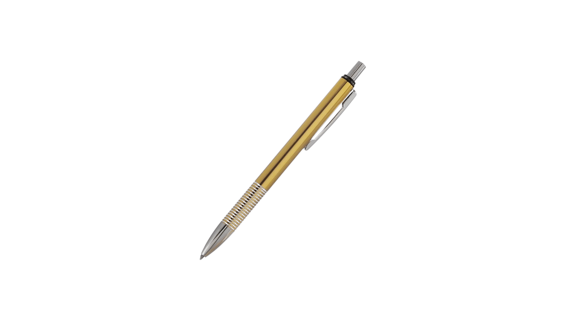 Druck-Kugelschreiber mit elegantem Design in Silber und Gold. Mit geschmeidigem Aluminiumschaft sowie originellem Clip und Kontrastdetails in Silber. Jumbo-Patrone mit blauer Tinte.