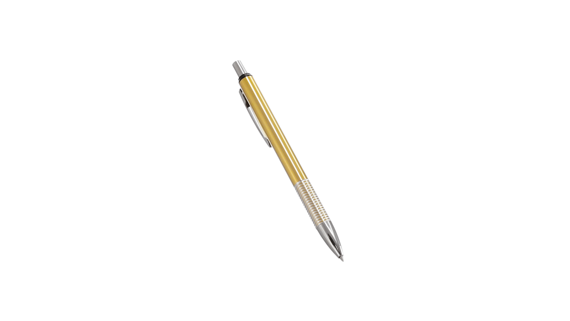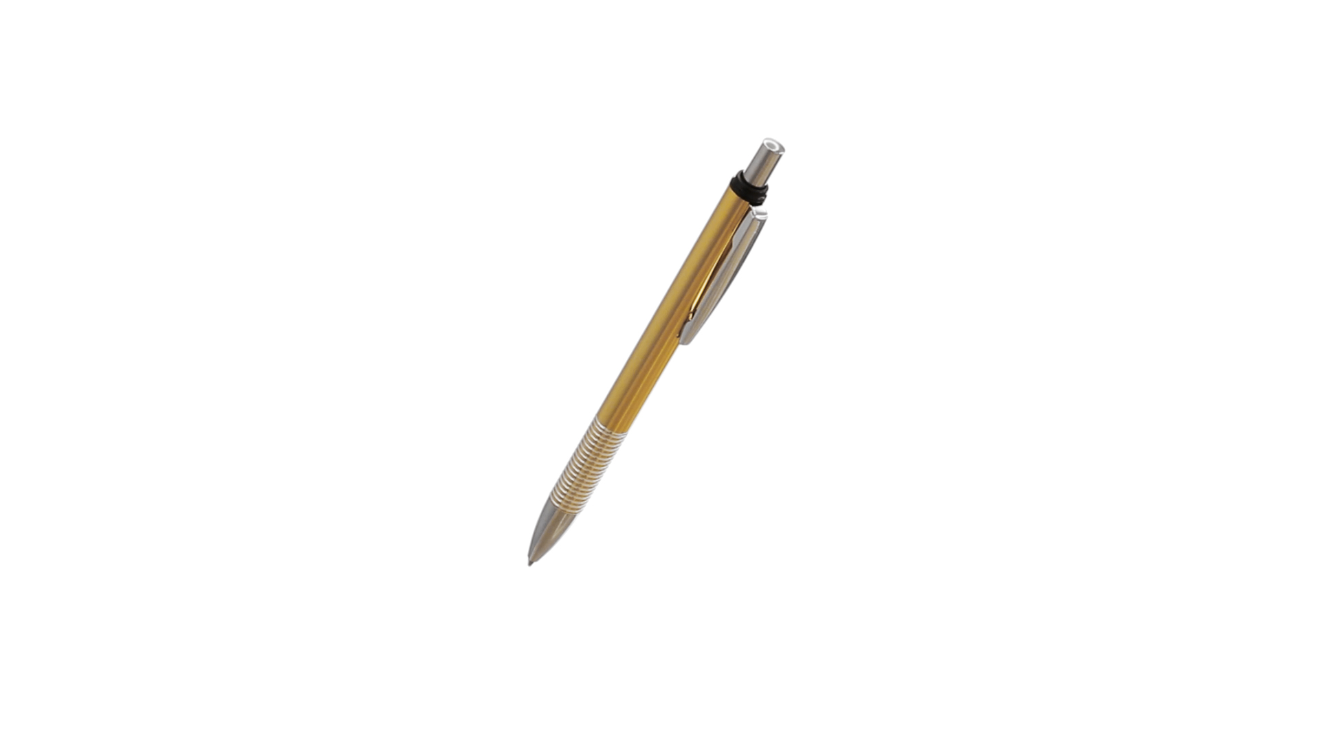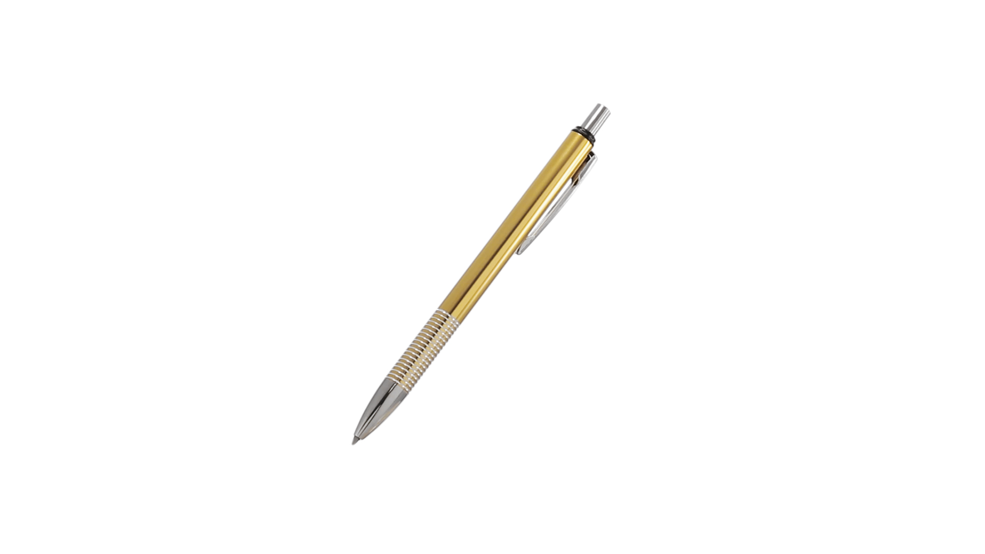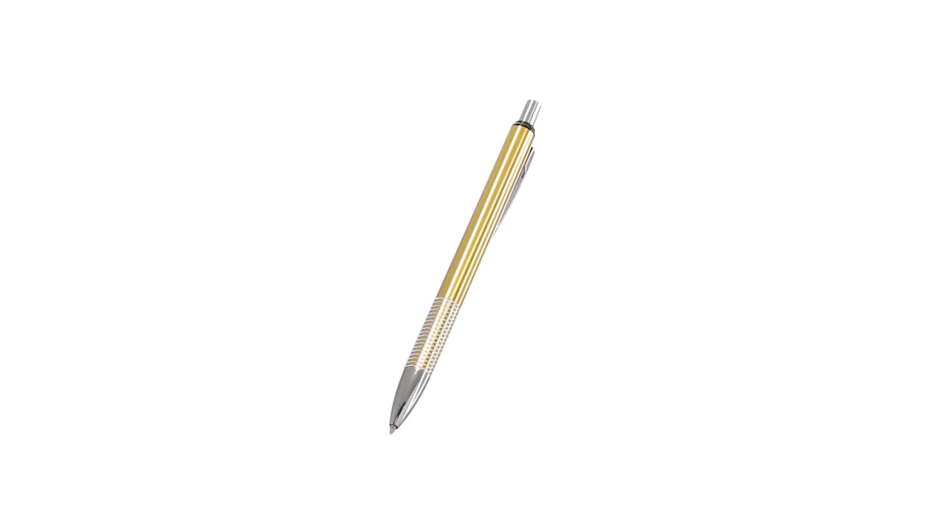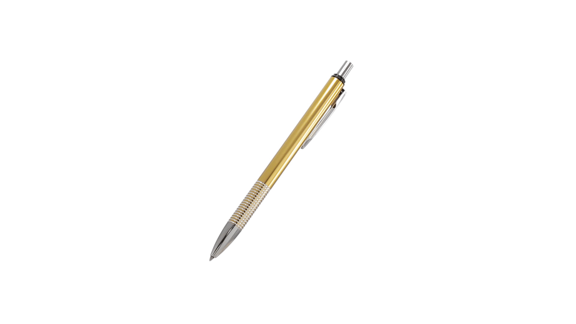 Druck-Kugelschreiber mit elegantem Design in Silber und Gold. Mit geschmeidigem Aluminiumschaft sowie originellem Clip und Kontrastdetails in Silber. Jumbo-Patrone mit blauer Tinte.