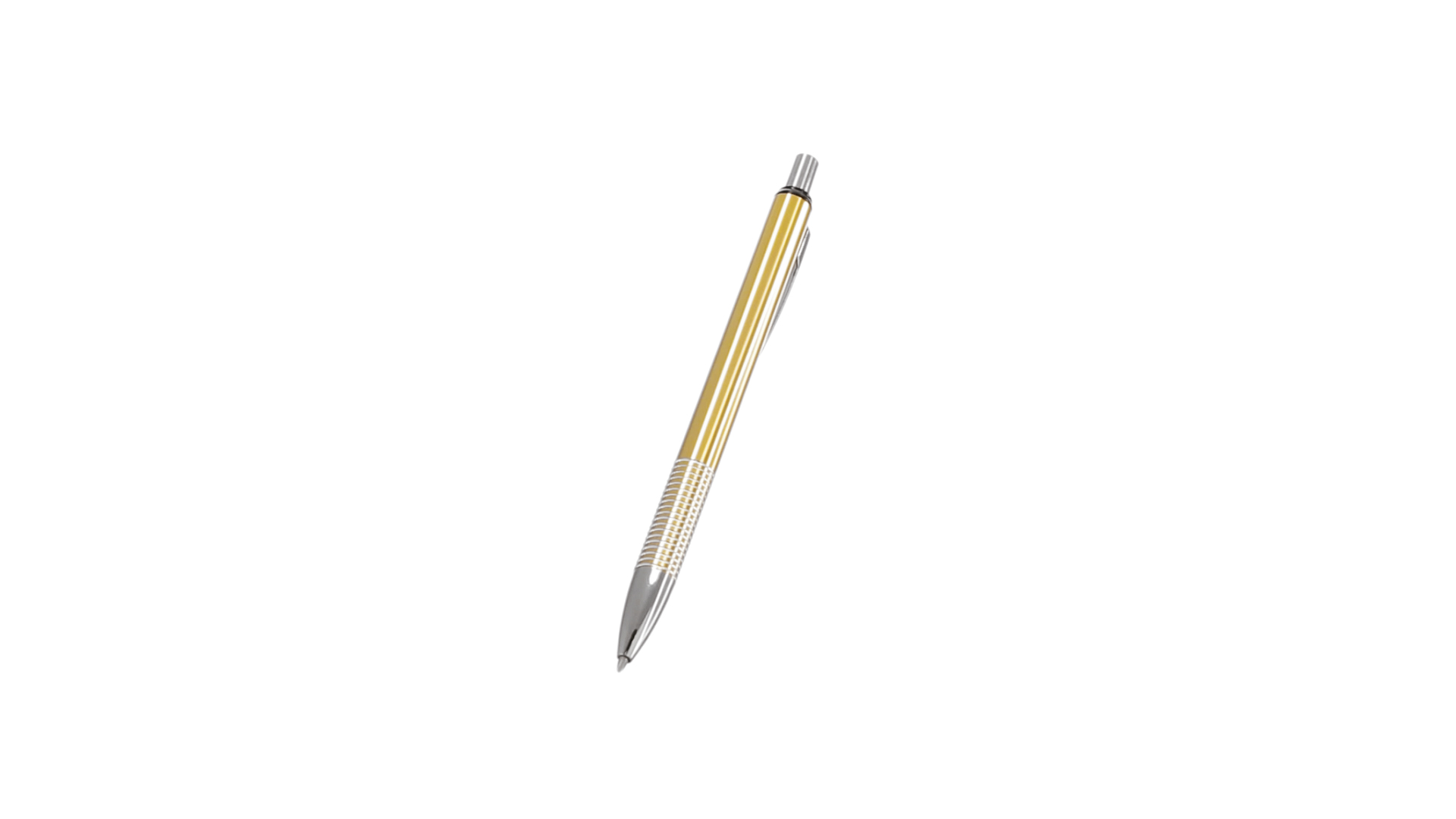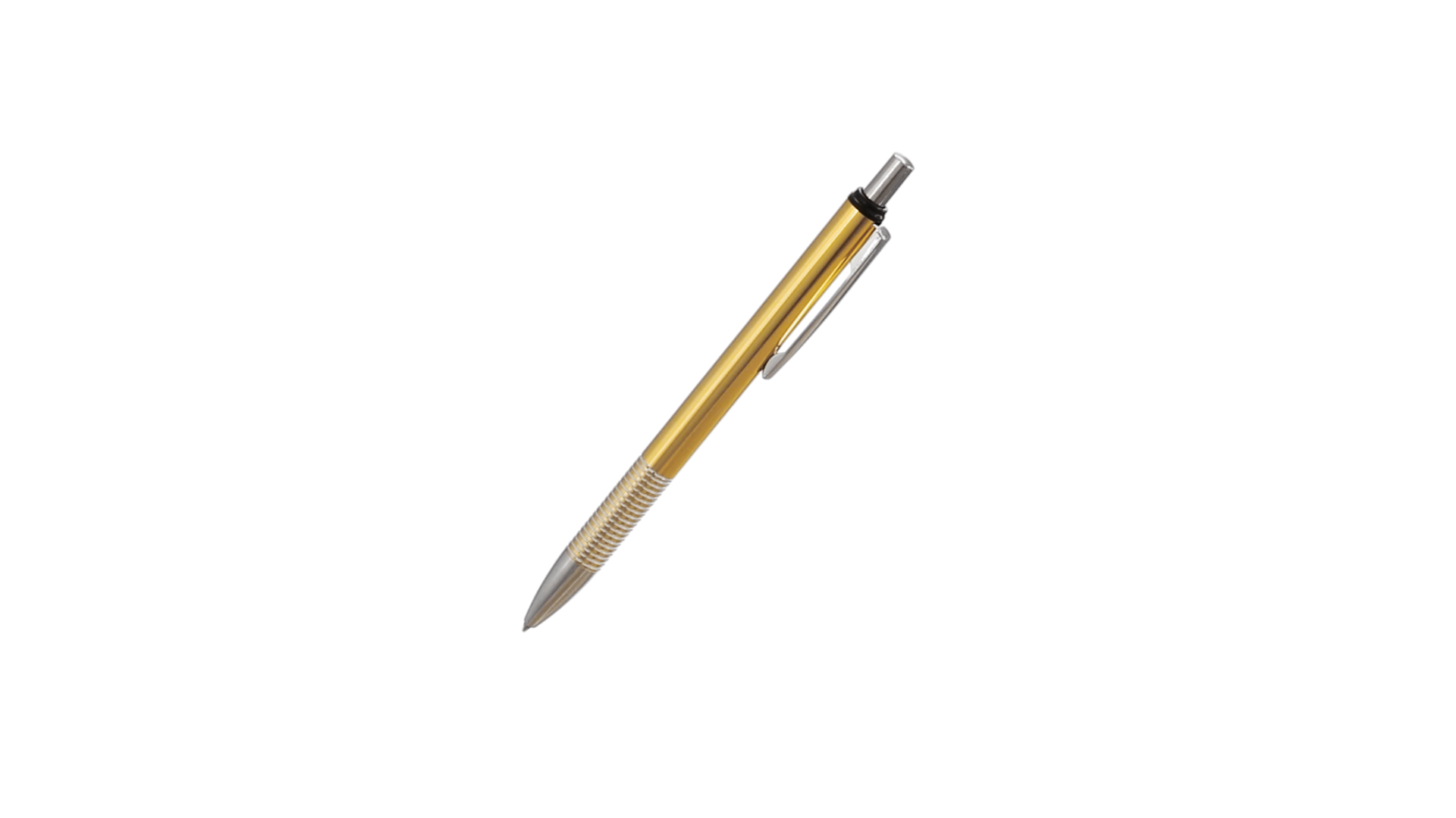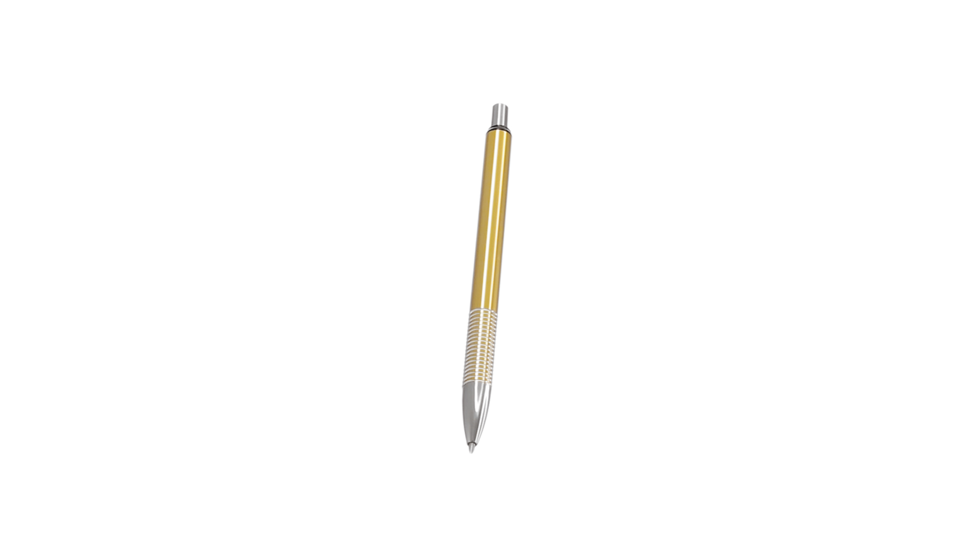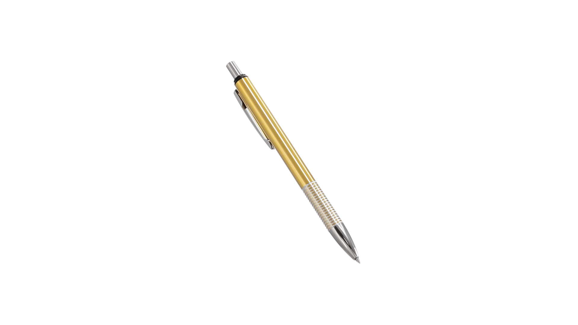 Druck-Kugelschreiber mit elegantem Design in Silber und Gold. Mit geschmeidigem Aluminiumschaft sowie originellem Clip und Kontrastdetails in Silber. Jumbo-Patrone mit blauer Tinte.