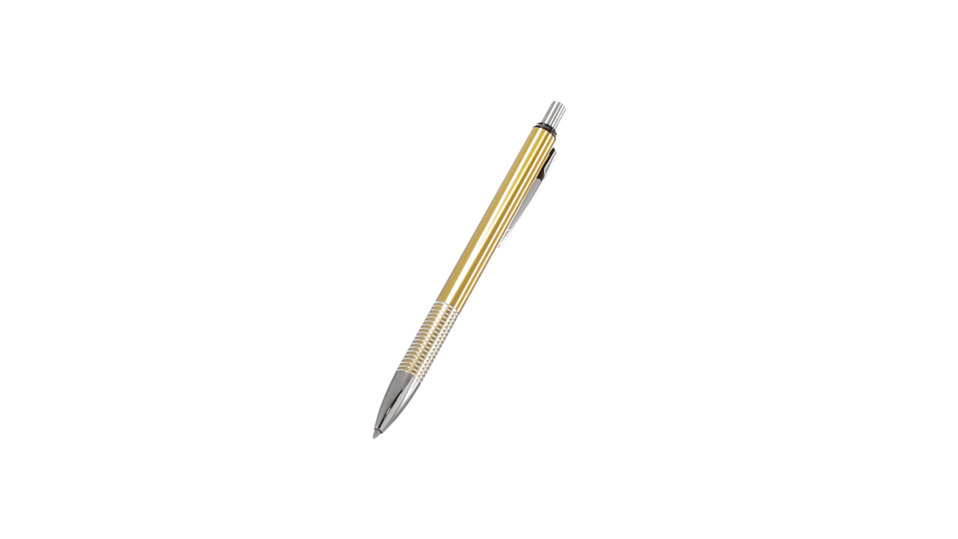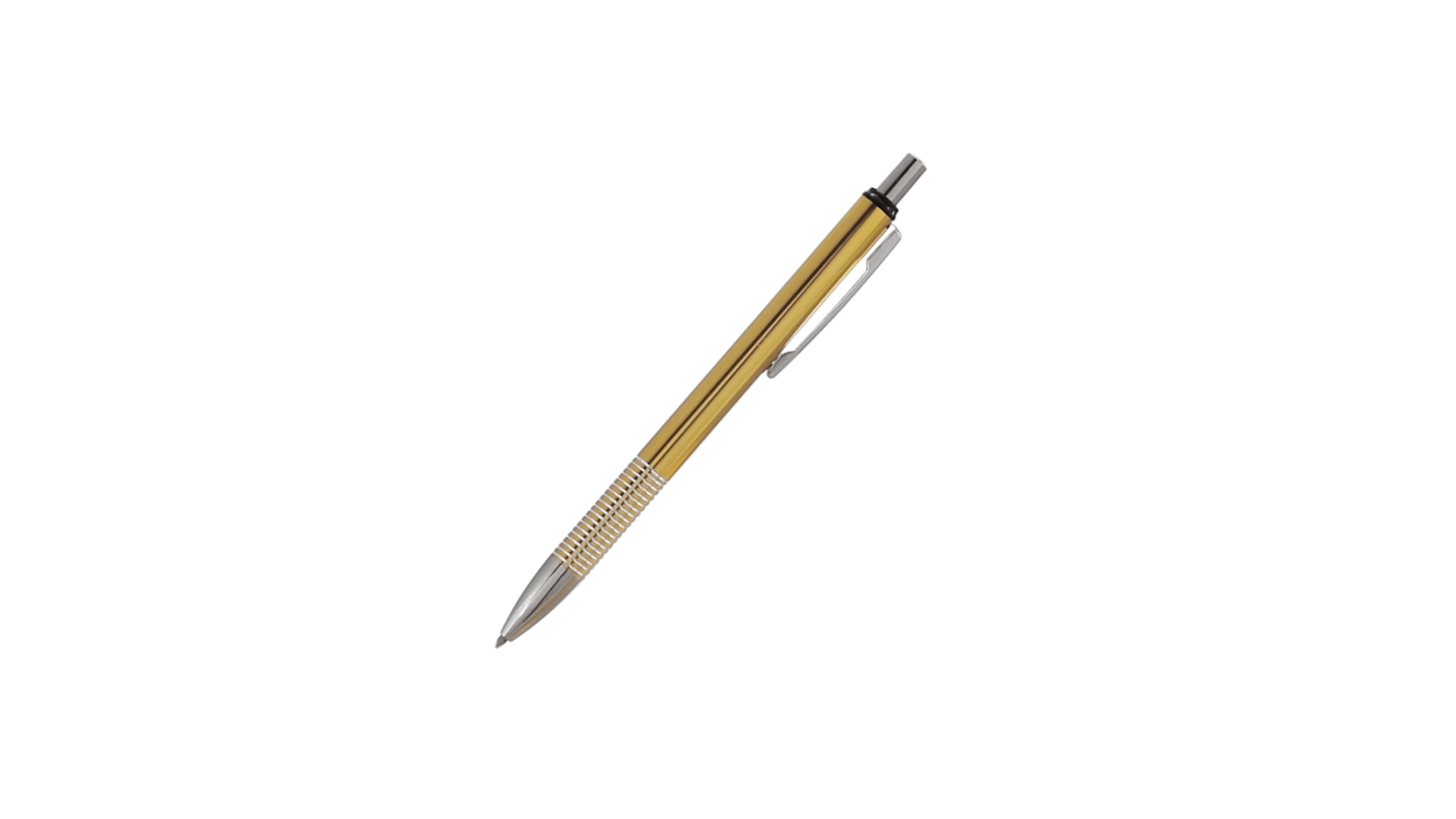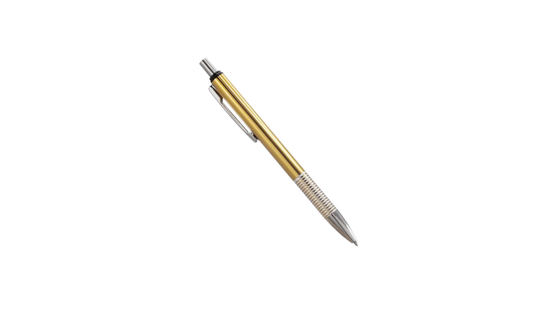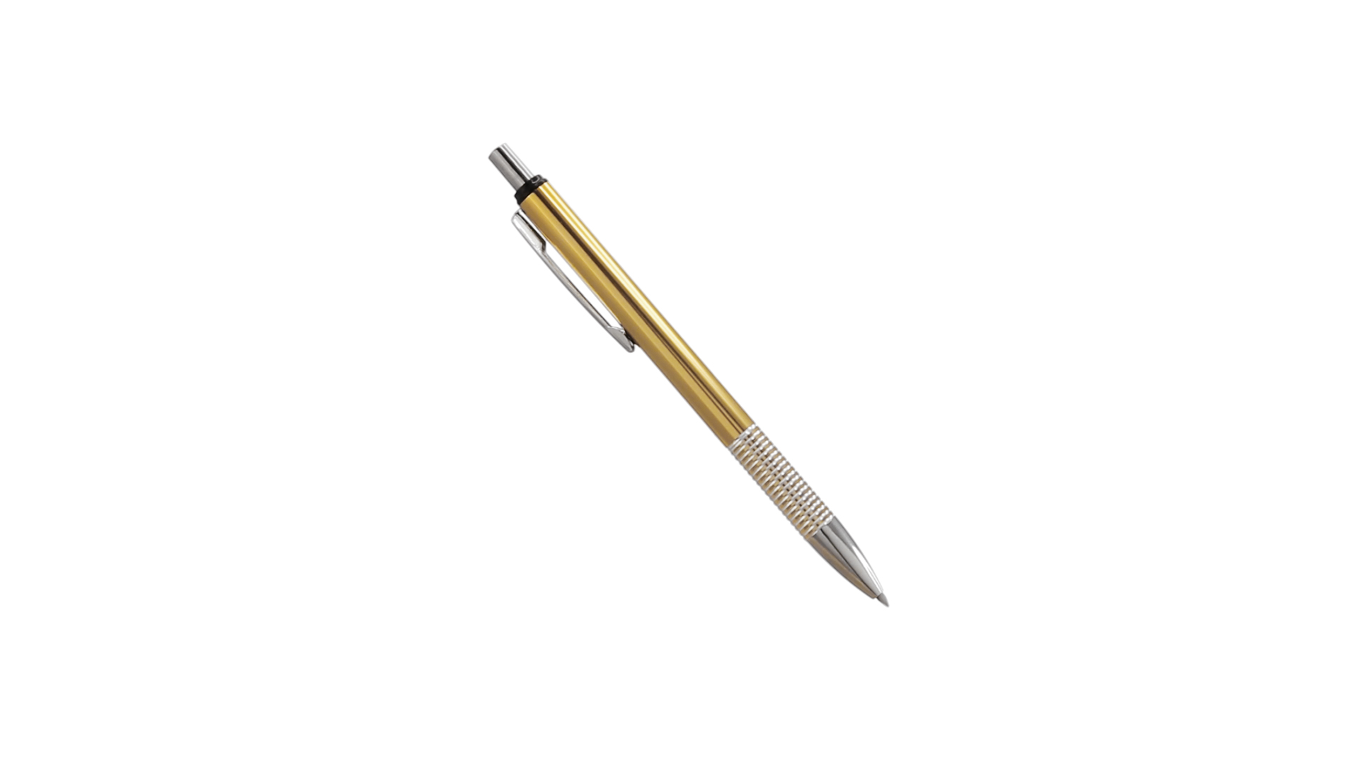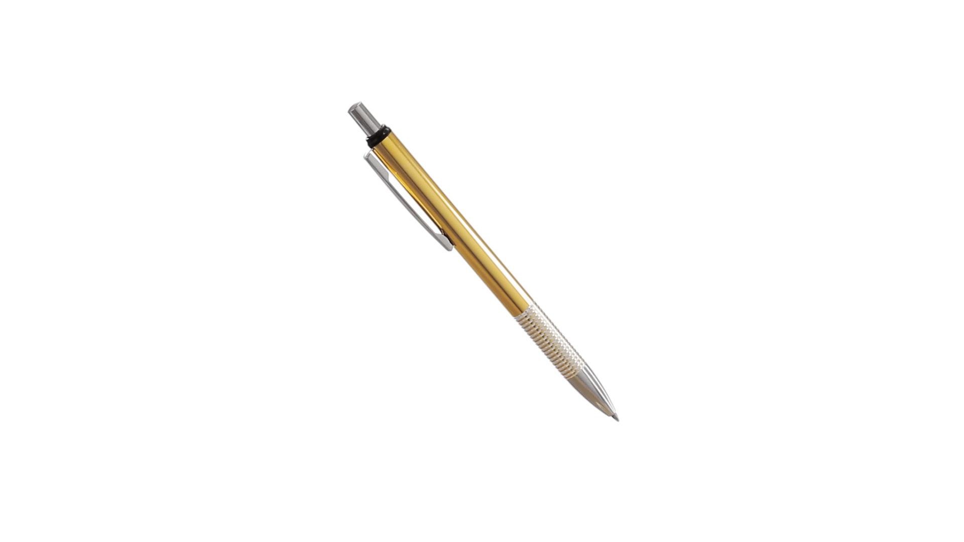 Druck-Kugelschreiber mit elegantem Design in Silber und Gold. Mit geschmeidigem Aluminiumschaft sowie originellem Clip und Kontrastdetails in Silber. Jumbo-Patrone mit blauer Tinte.