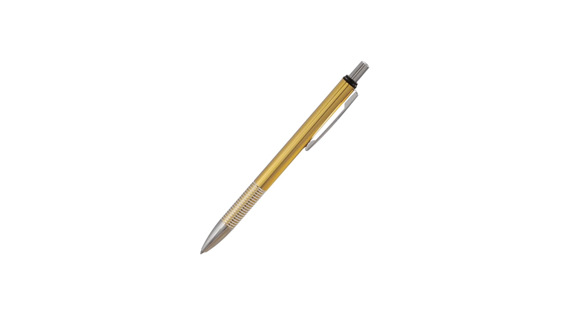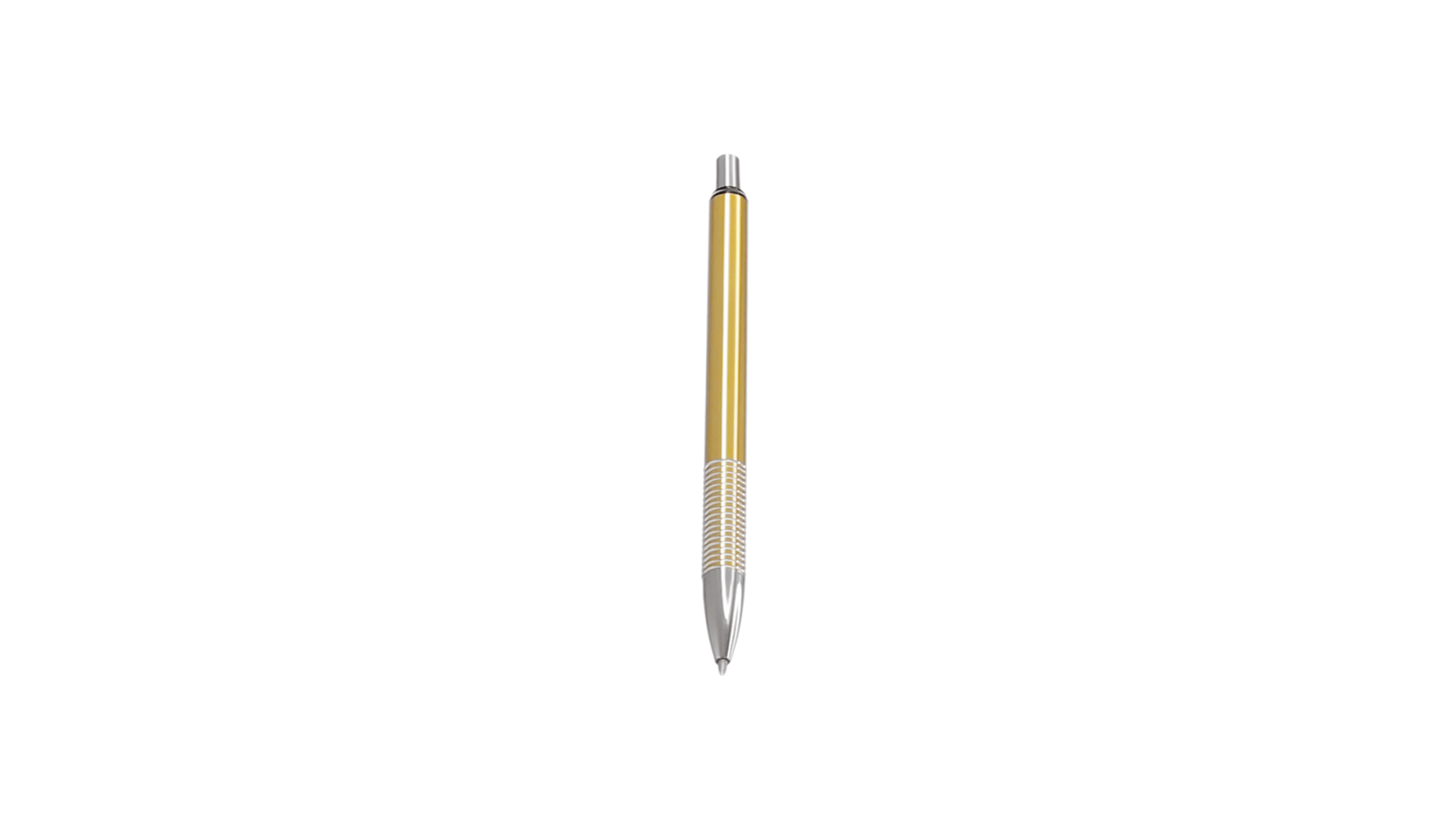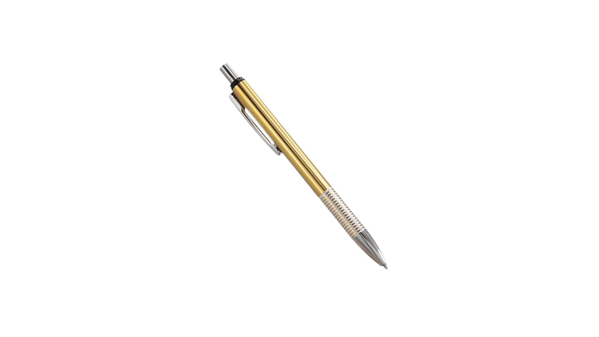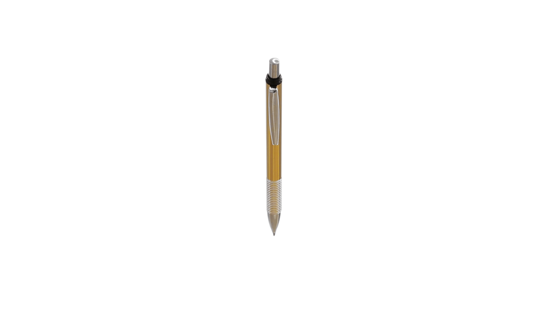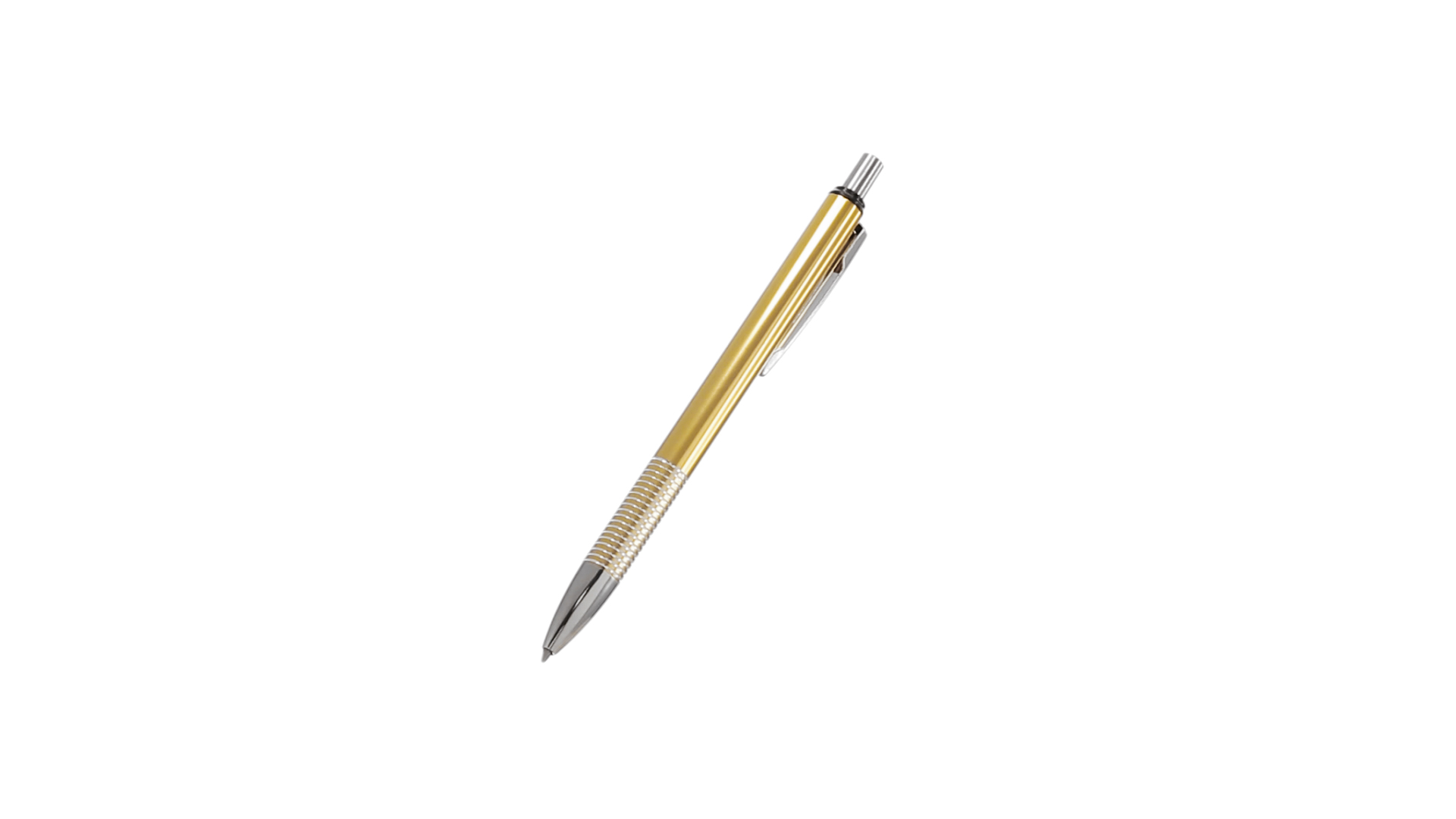 Druck-Kugelschreiber mit elegantem Design in Silber und Gold. Mit geschmeidigem Aluminiumschaft sowie originellem Clip und Kontrastdetails in Silber. Jumbo-Patrone mit blauer Tinte.