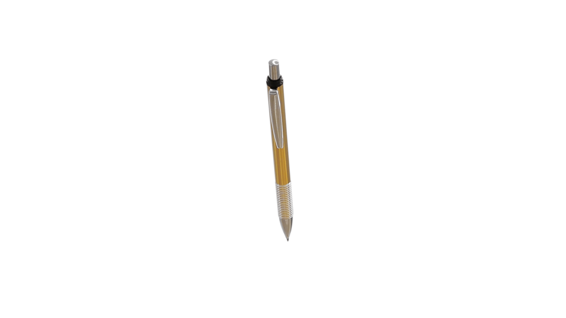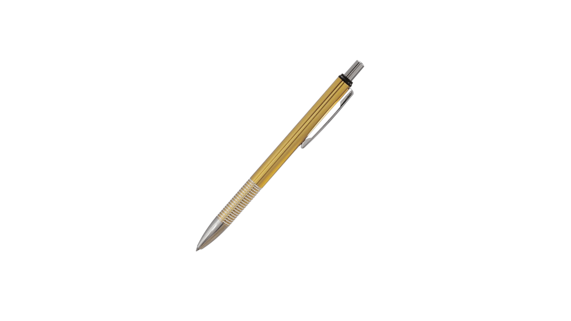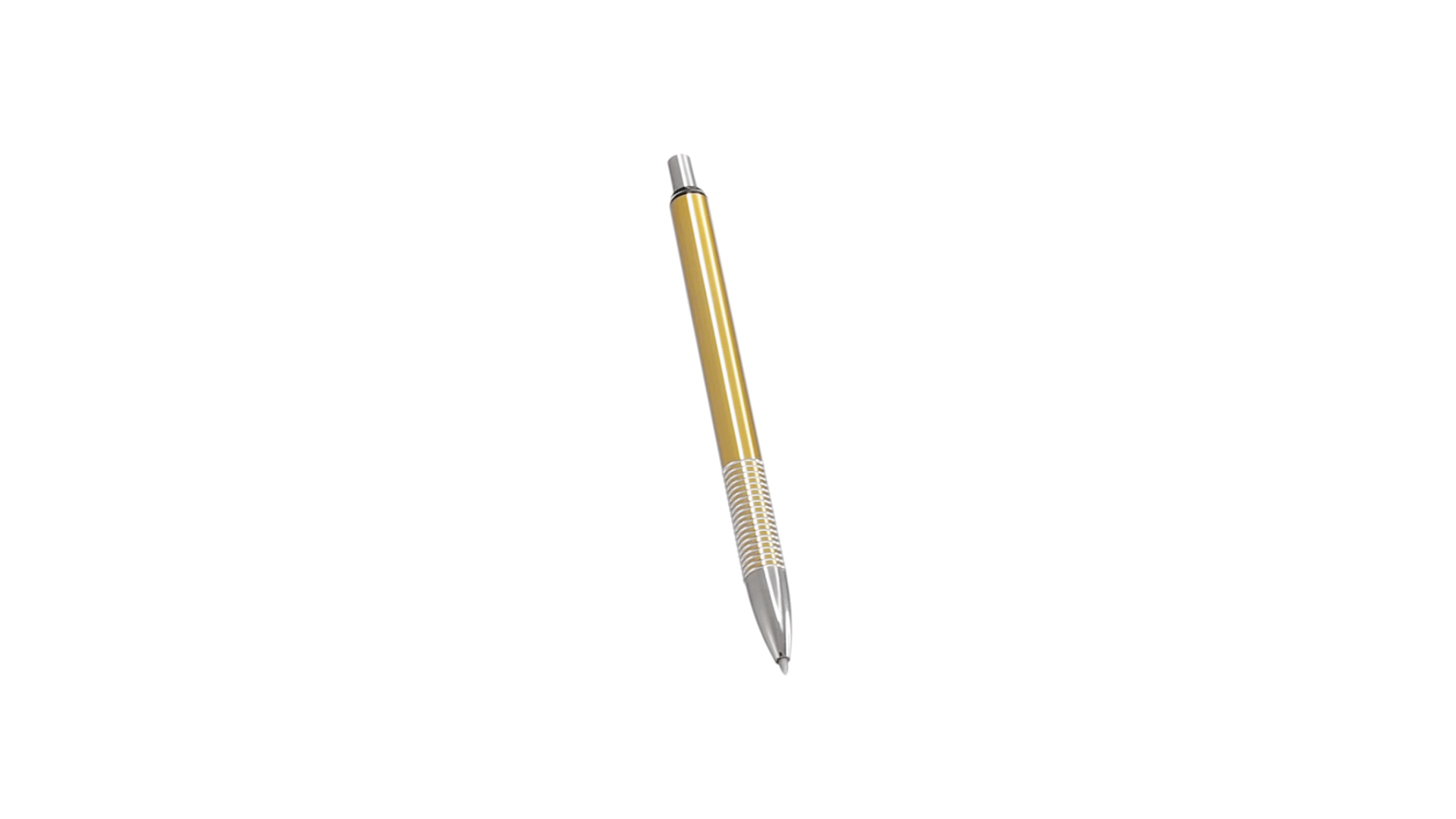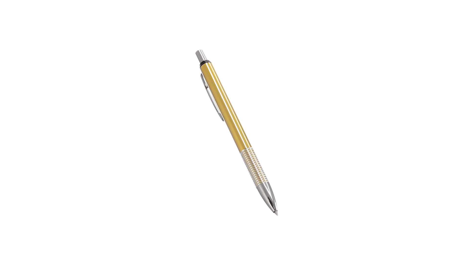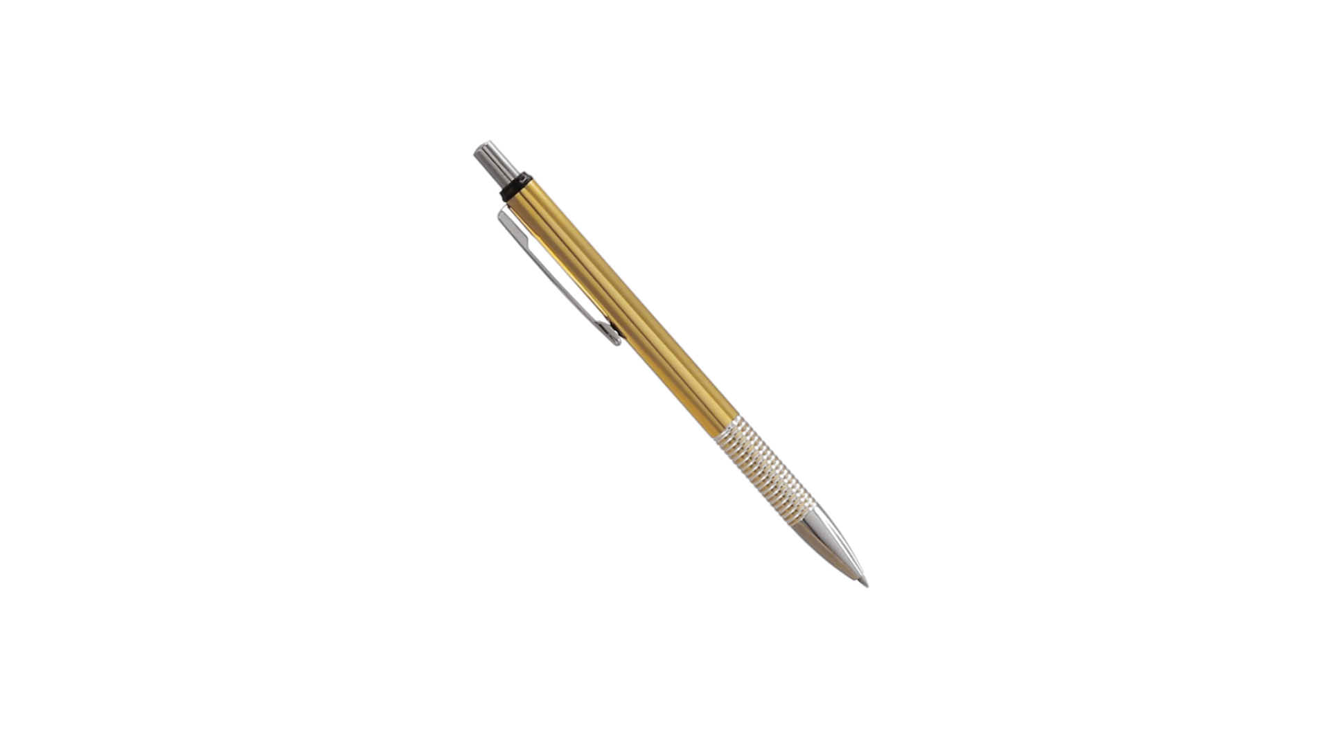 Druck-Kugelschreiber mit elegantem Design in Silber und Gold. Mit geschmeidigem Aluminiumschaft sowie originellem Clip und Kontrastdetails in Silber. Jumbo-Patrone mit blauer Tinte.