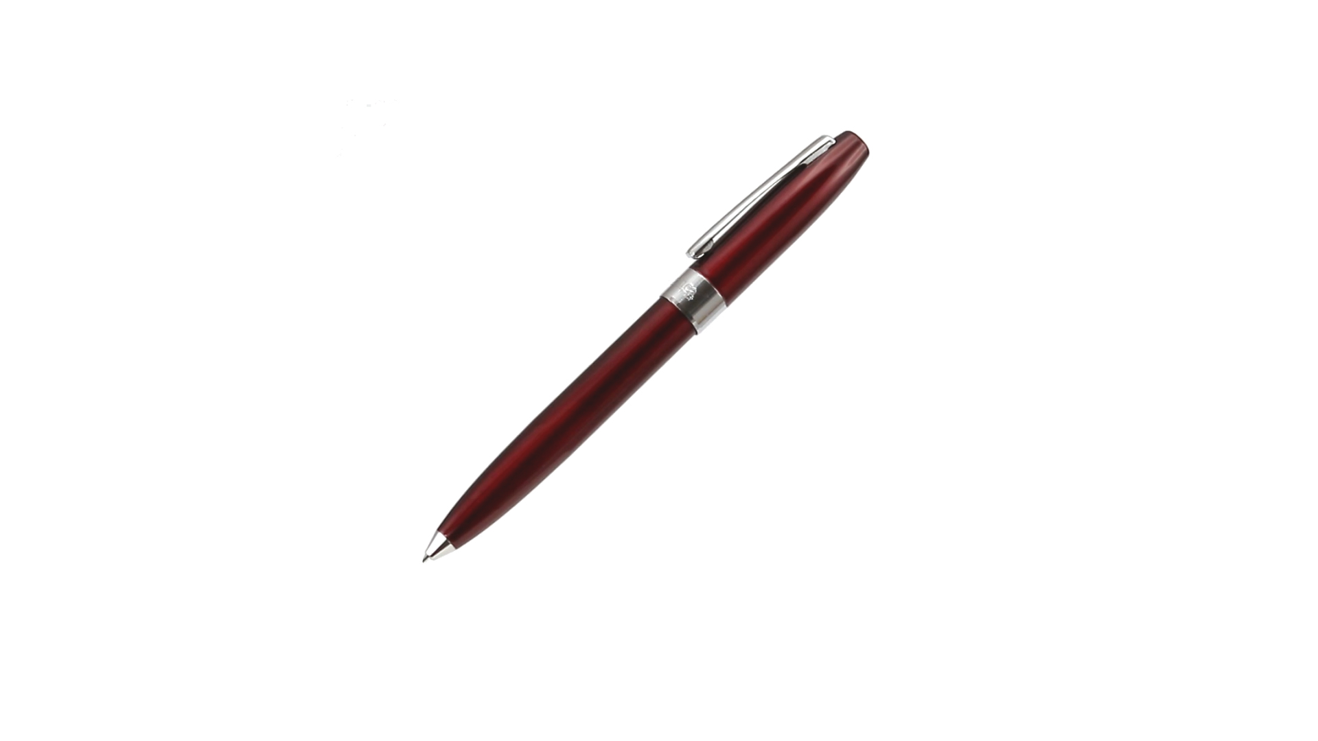 Dreh-Kugelschreiber von Alexluca mit elegantem, zweifarbigem Design und geschmeidigem Metallschaft in auffälligen Farben. Mit Clip und Spitze in glänzendem Silber und Markenlogo auf dem mittleren Ring. Präsentiert in einem individuellen schwarzen Etui. Mit blauer Tinte.