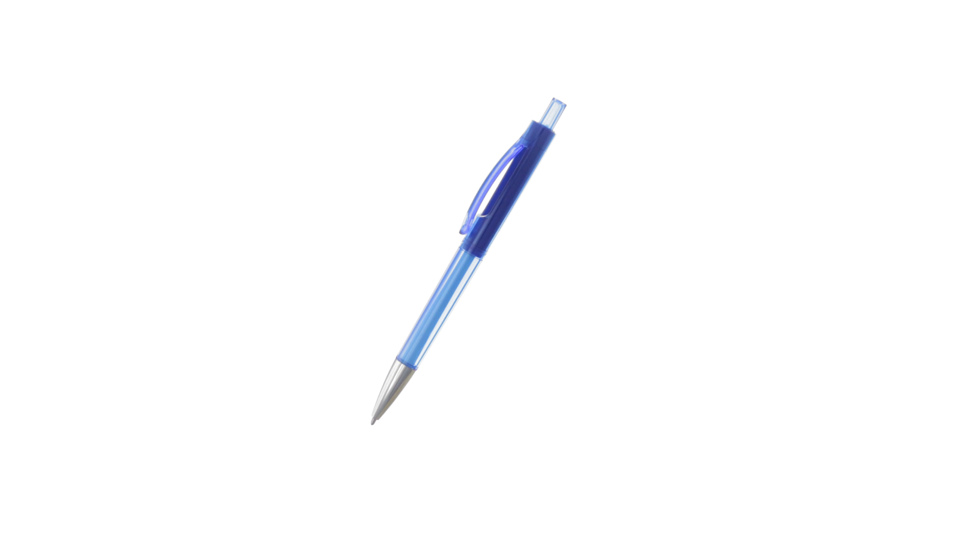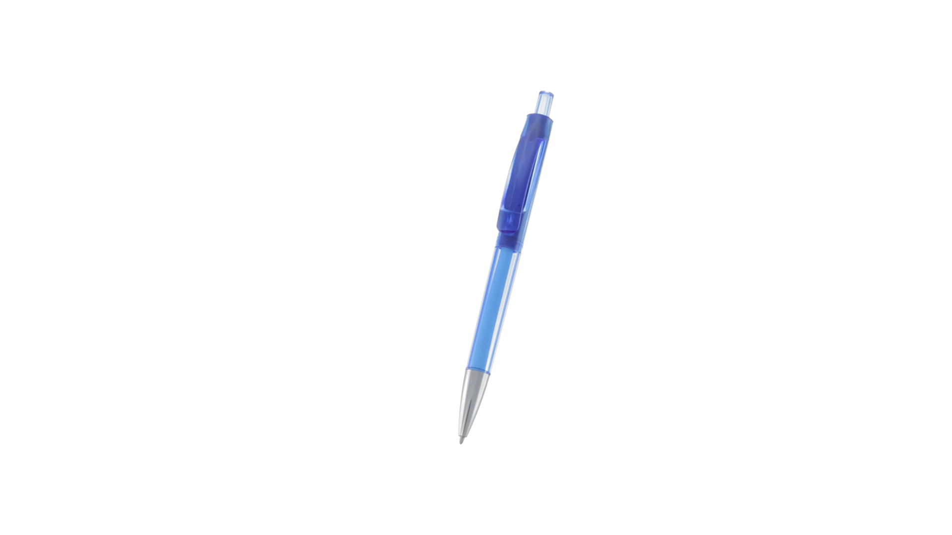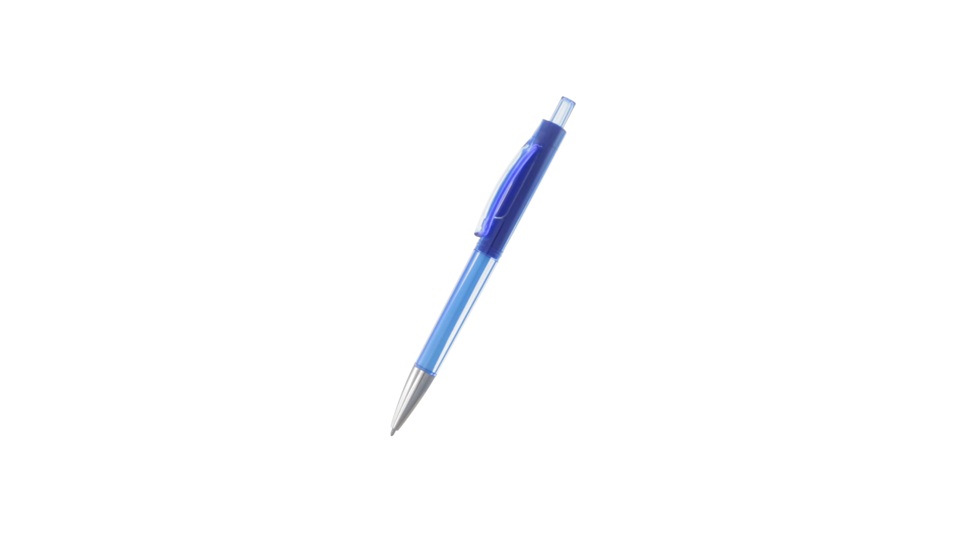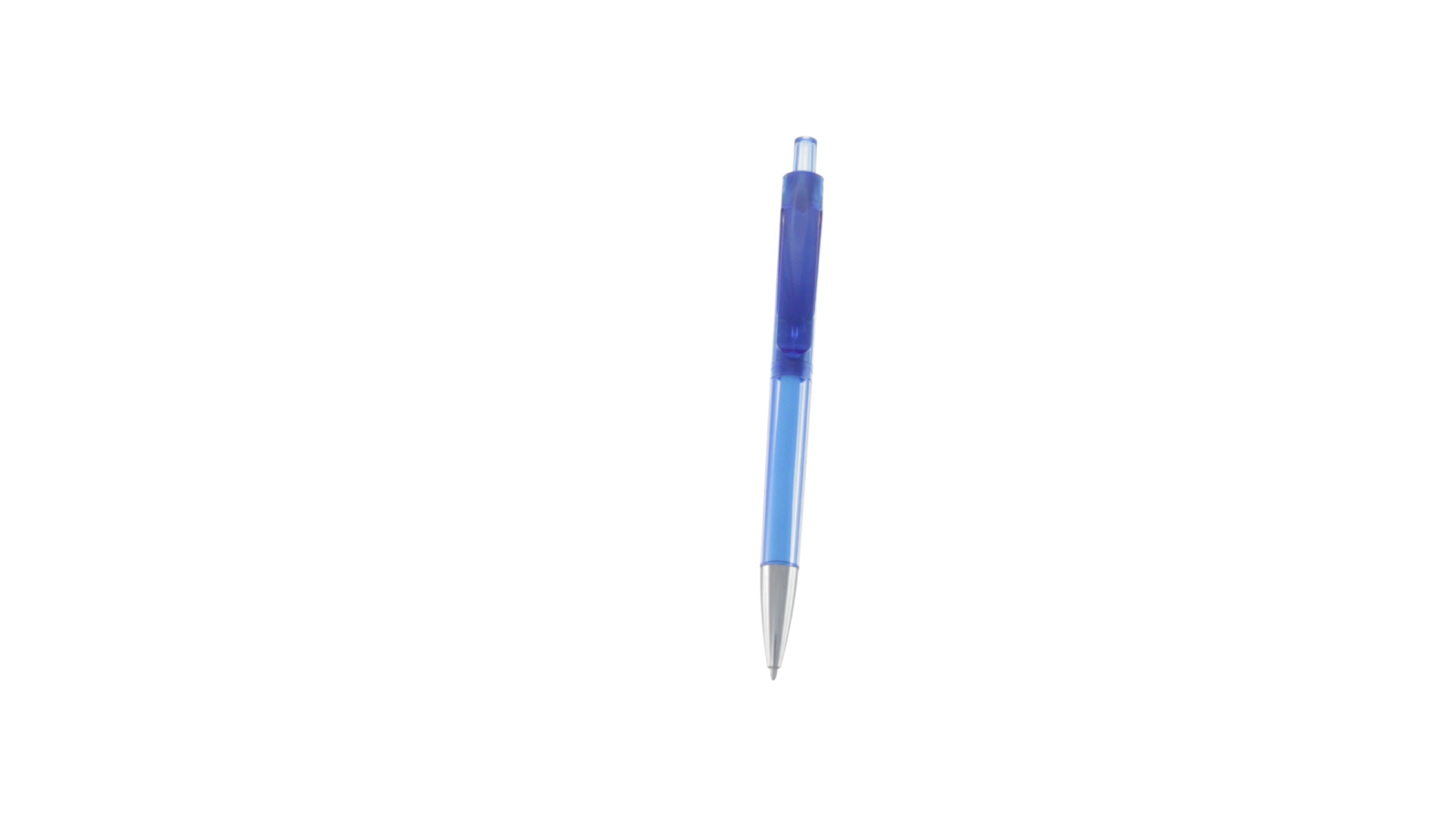 Origineller Druck-Kugelschreiber mit transparentem Design in lebendigen Farben. Mit originellem gebogenem Clip in passender Farbe und glänzender Spitze sowie Jumbo-Patrone mit blauer Tinte.