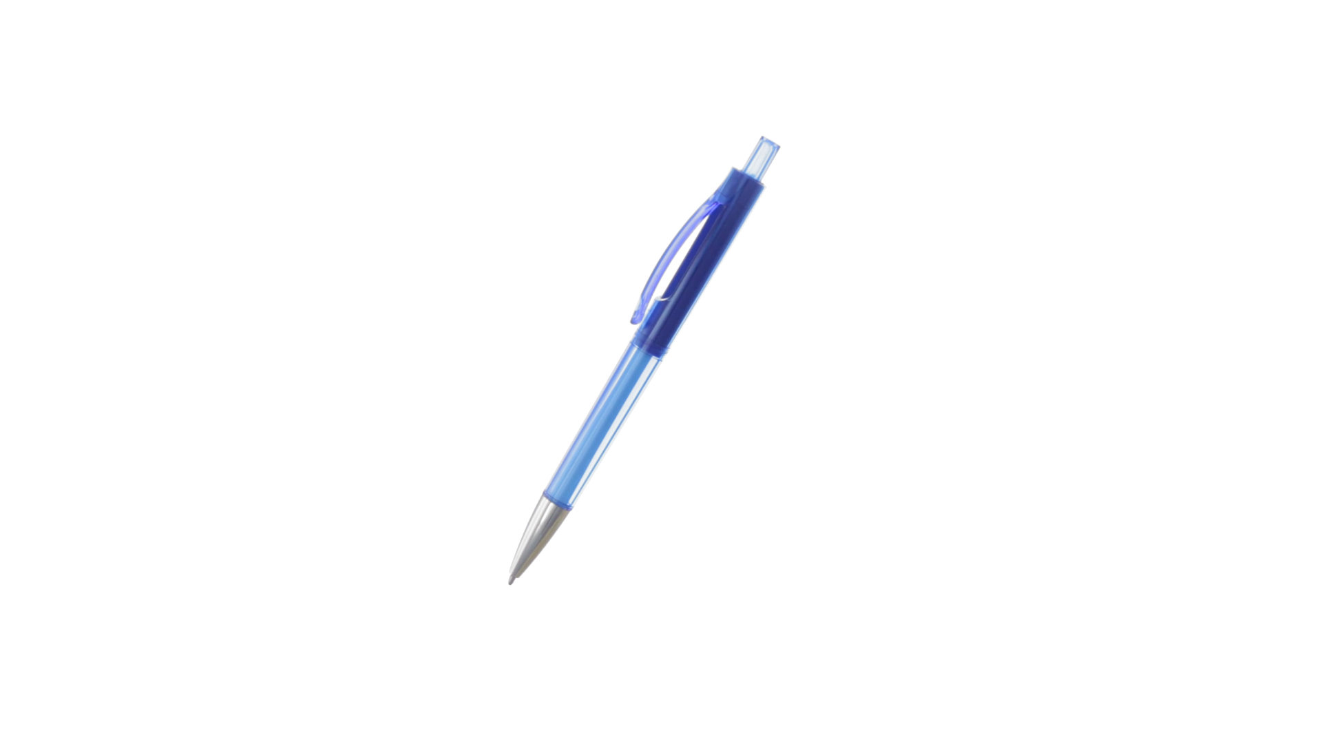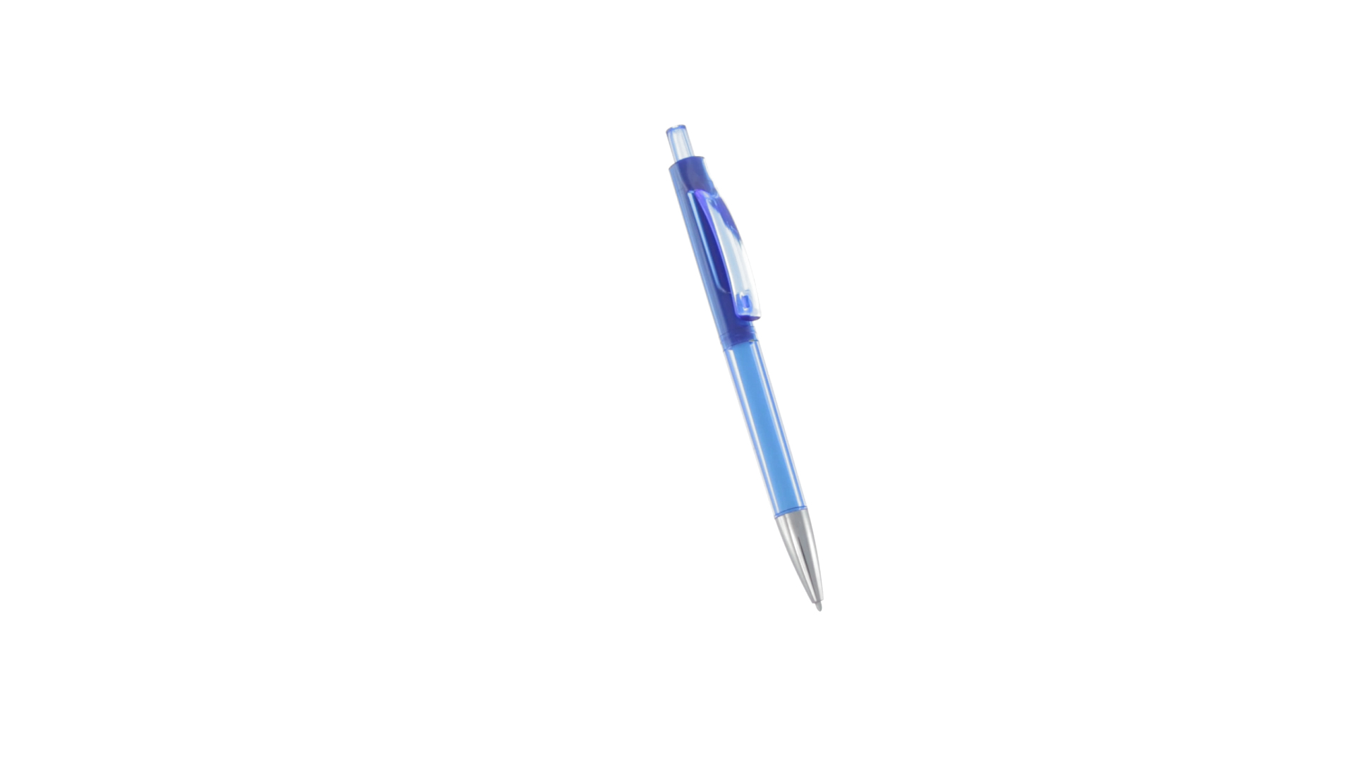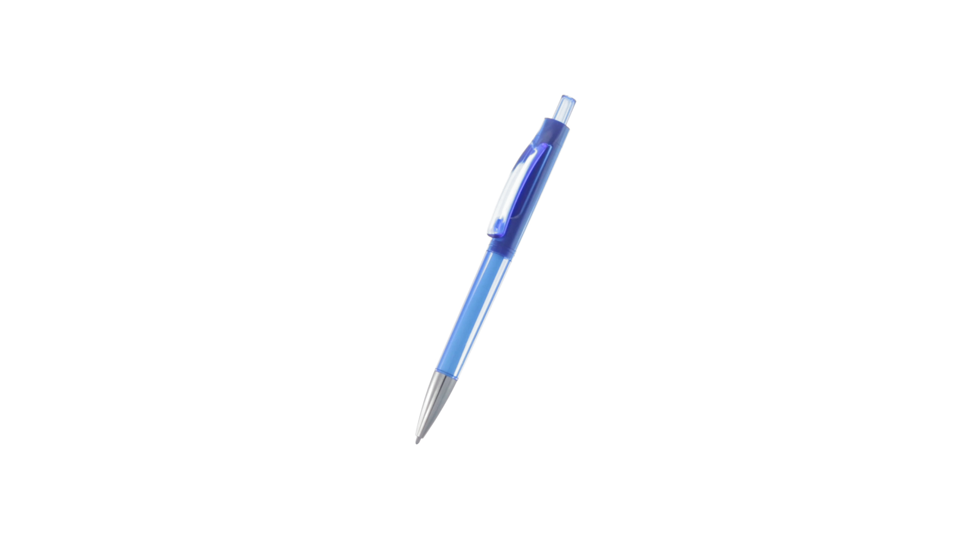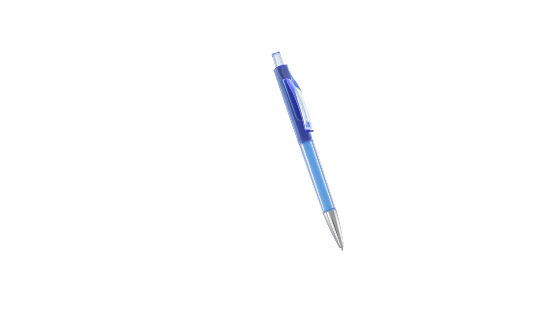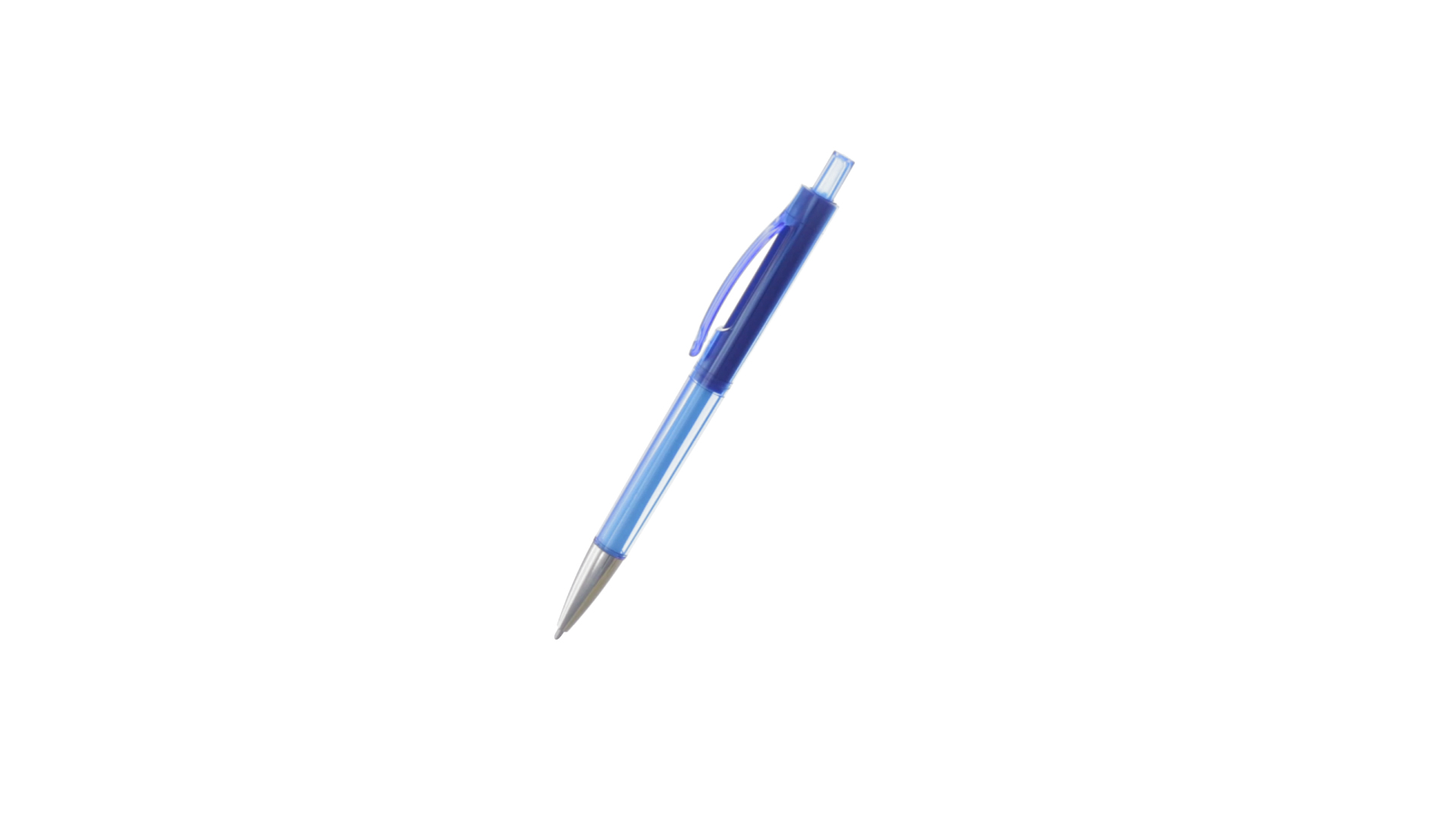 Origineller Druck-Kugelschreiber mit transparentem Design in lebendigen Farben. Mit originellem gebogenem Clip in passender Farbe und glänzender Spitze sowie Jumbo-Patrone mit blauer Tinte.