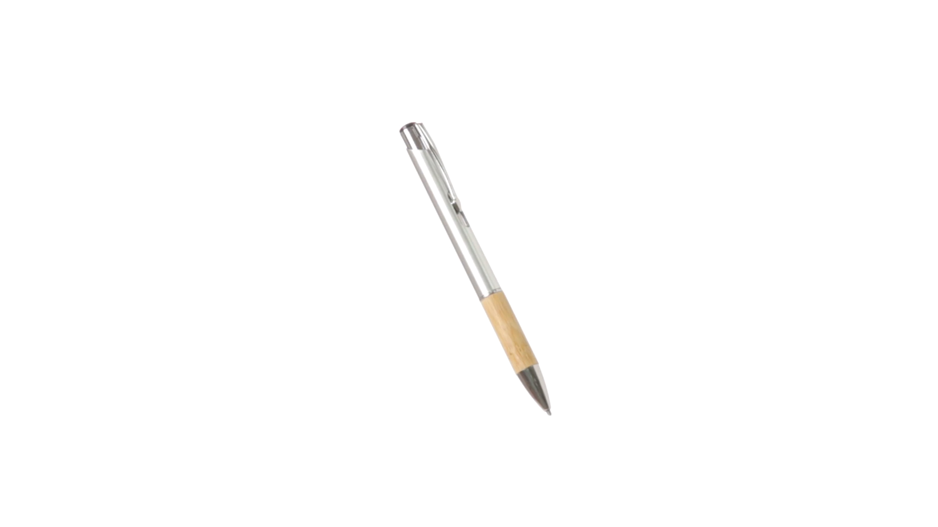 Eleganter Kugelschreiber der Linie Natur mit Druckknopfmechanik. Gehäuse aus ABS mit glänzender Oberfläche und Bambusgriff, mit passendem Zubehör. Metallclip, mit Jumbo-Patrone und blauer Tinte.
