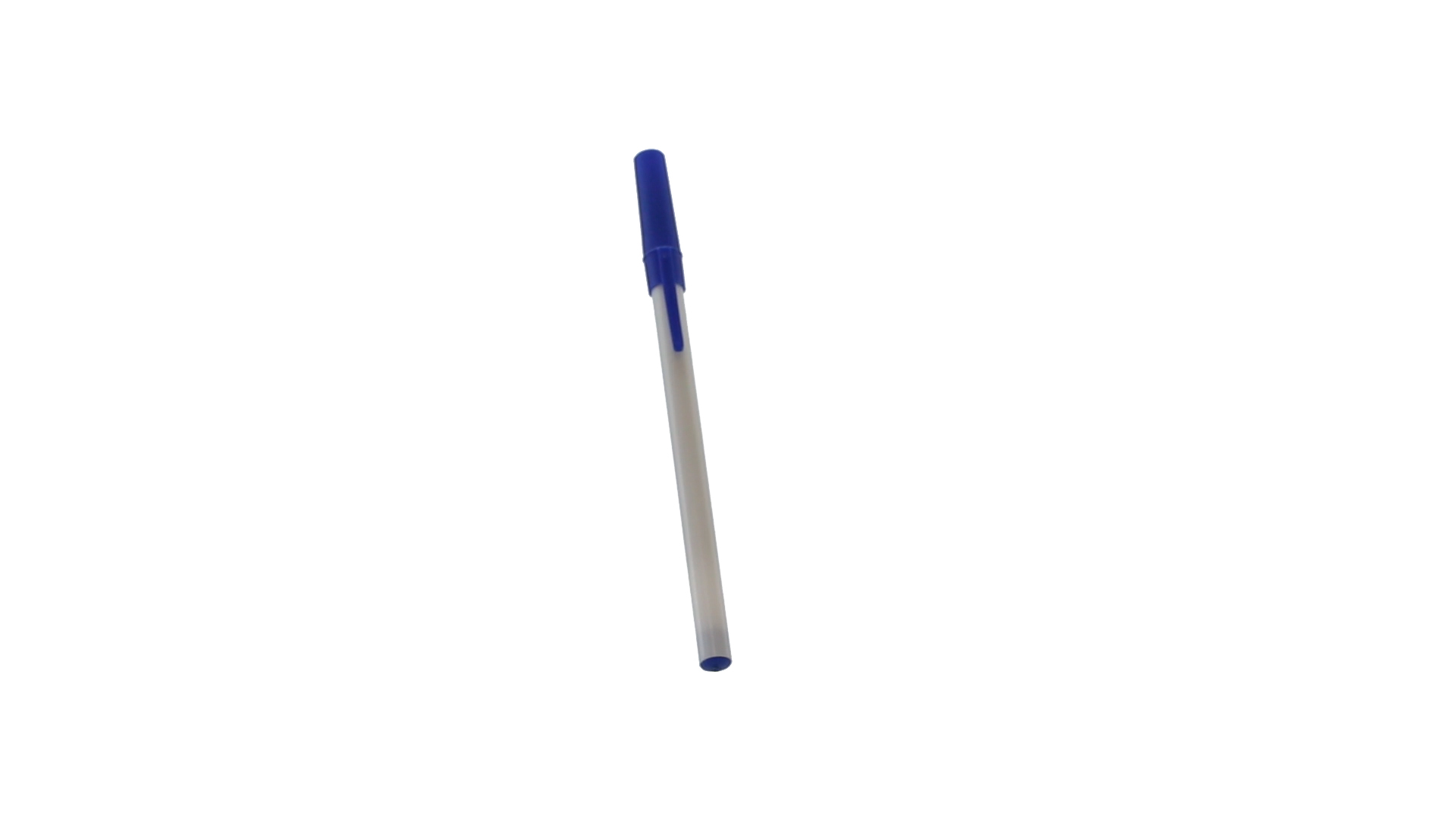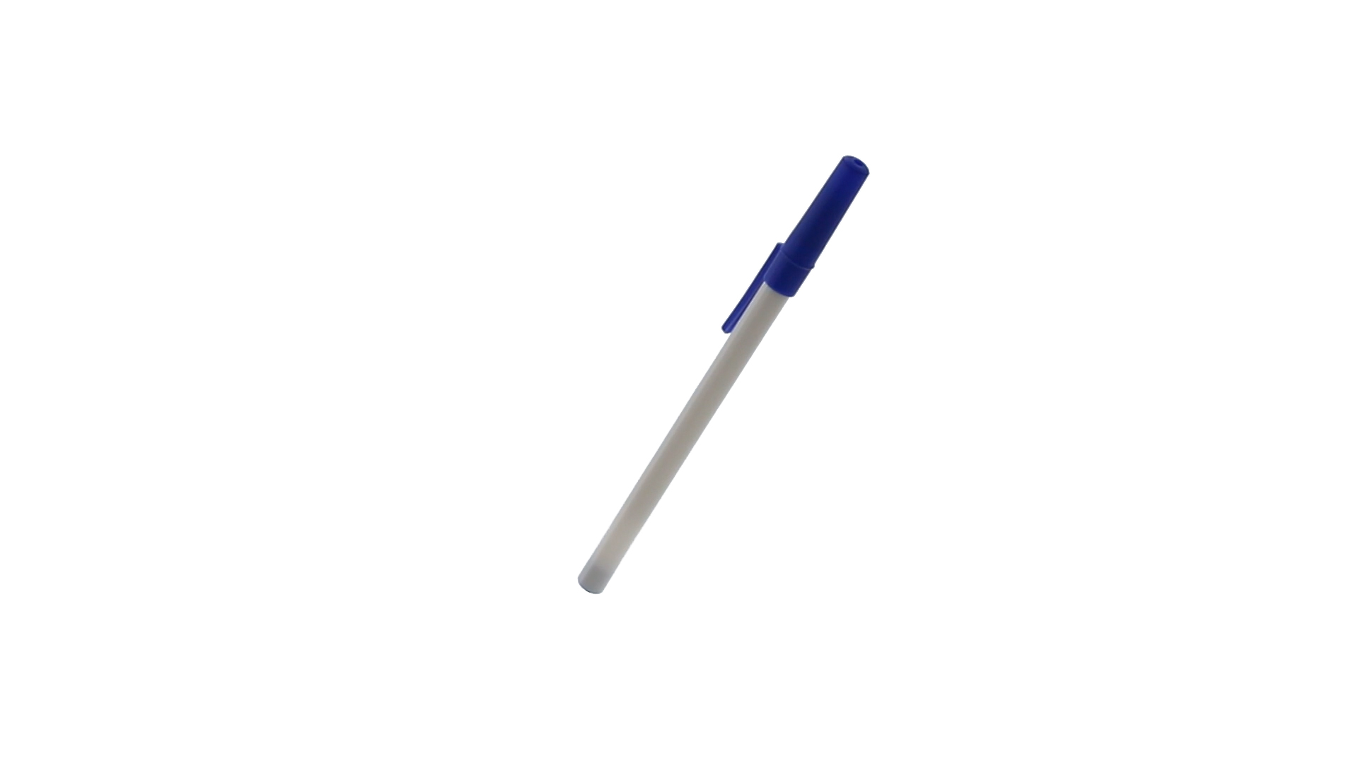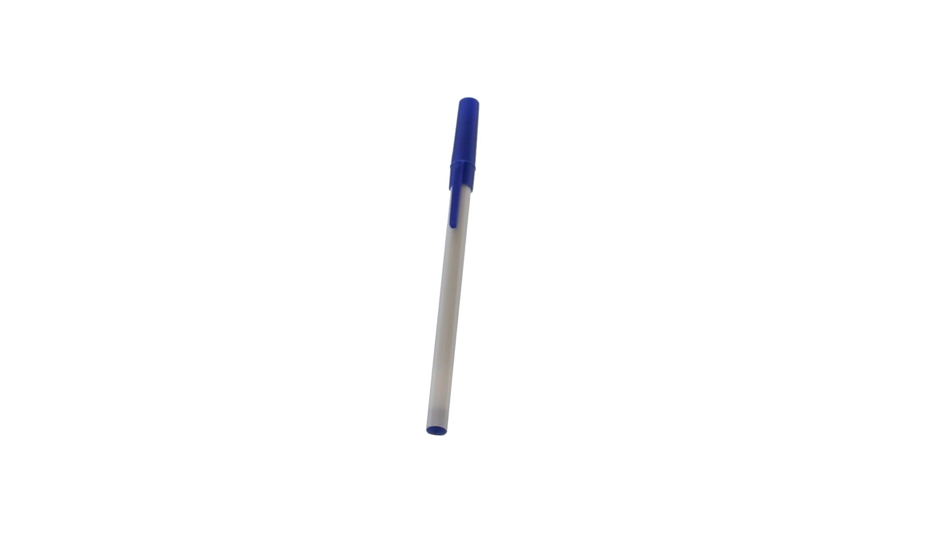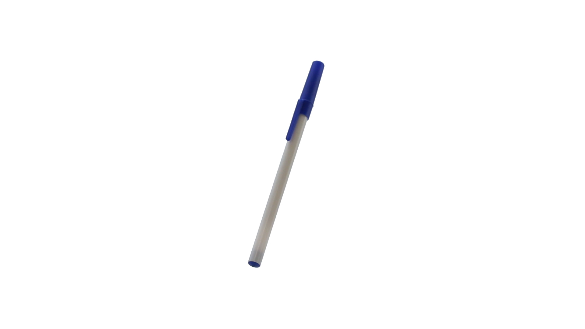 Klassischer zweifarbiger Kugelschreiber mit Kappe und halbtransparentem weissem Gehäuse mit Kontrastdetails in kräftigen Farben. Blaue Tinte.