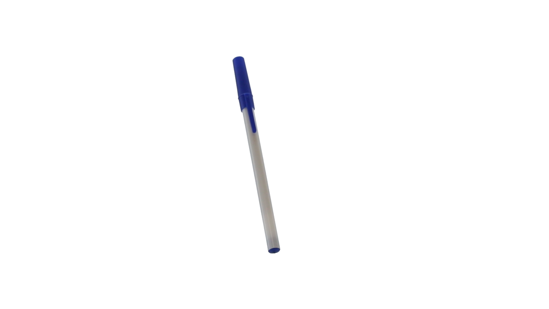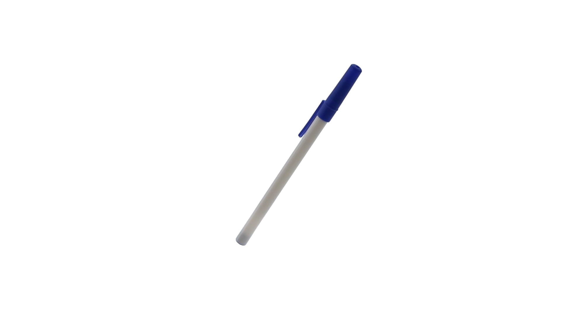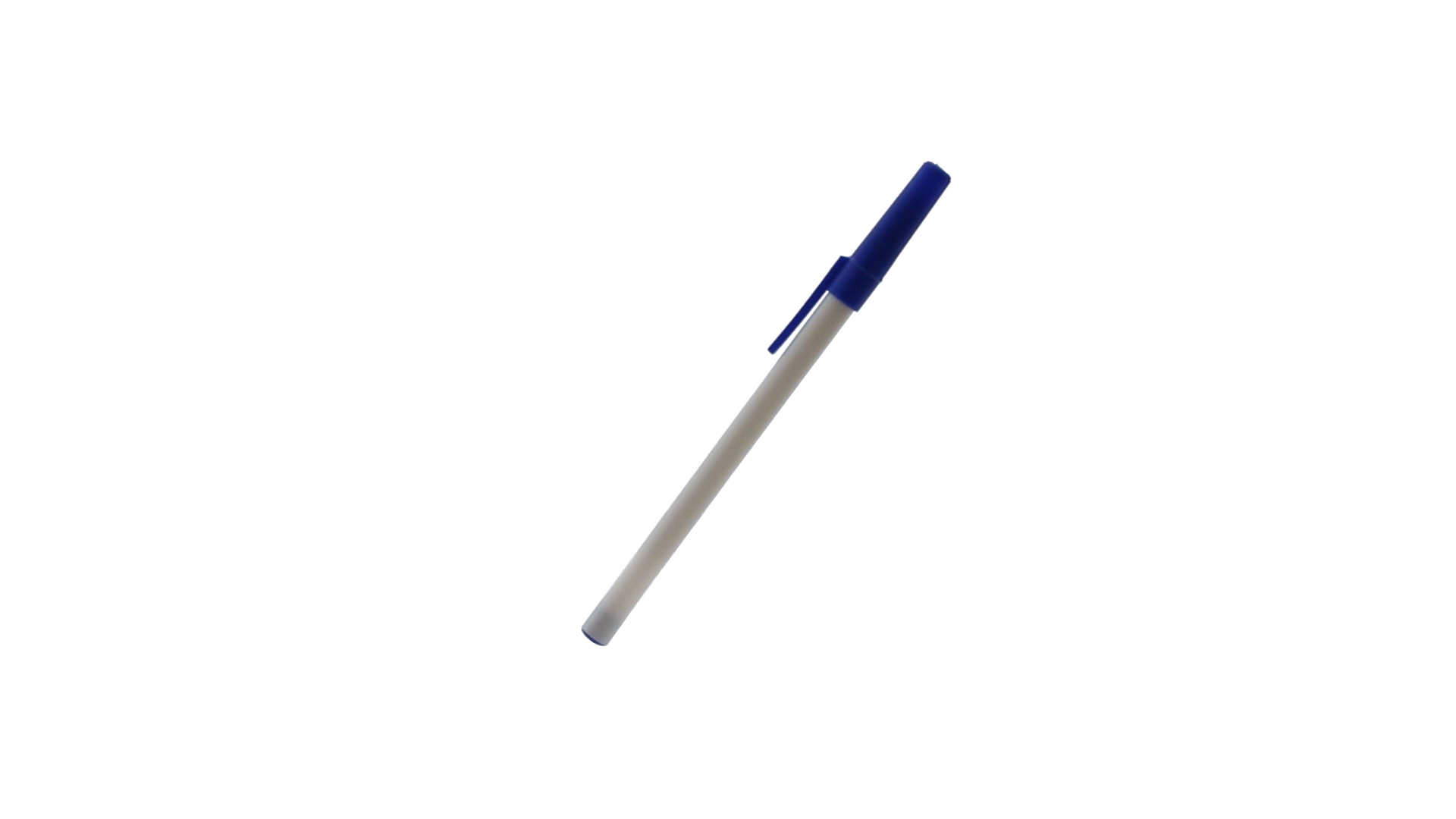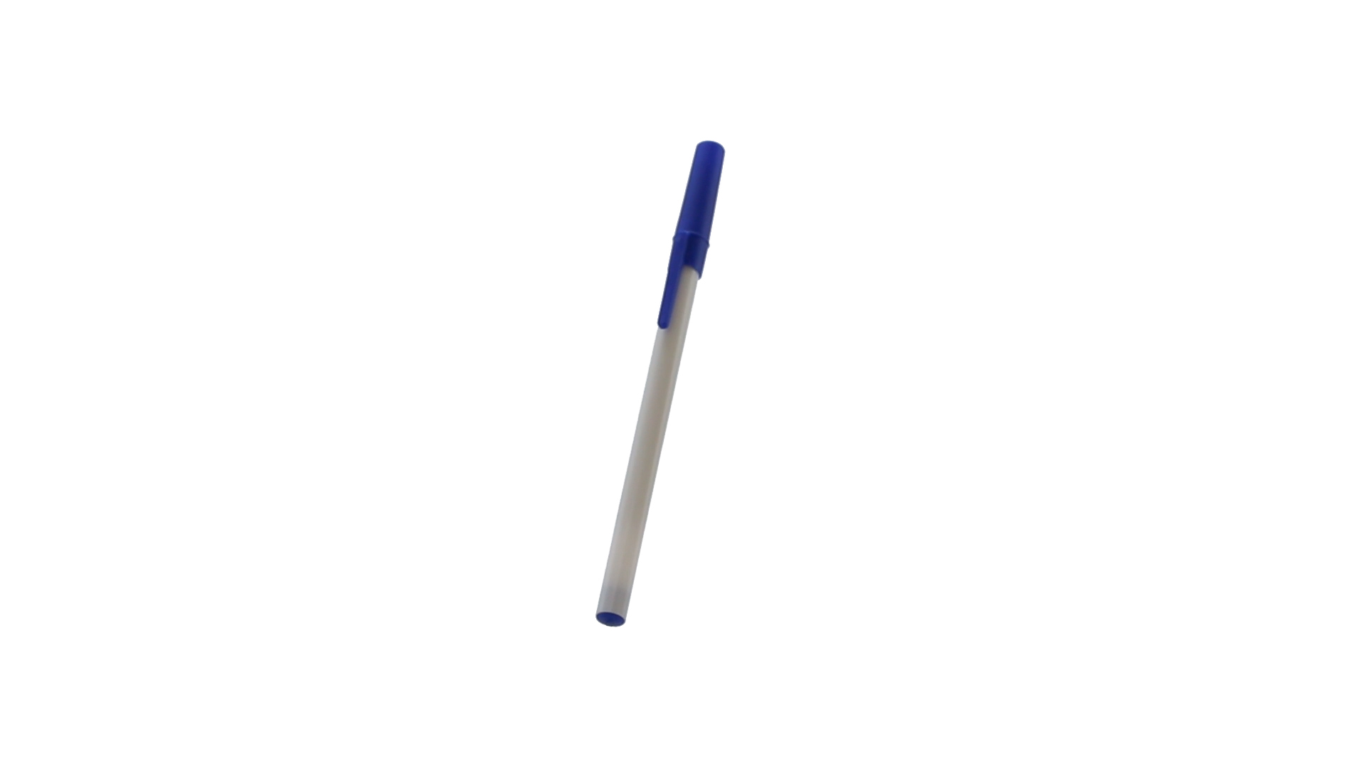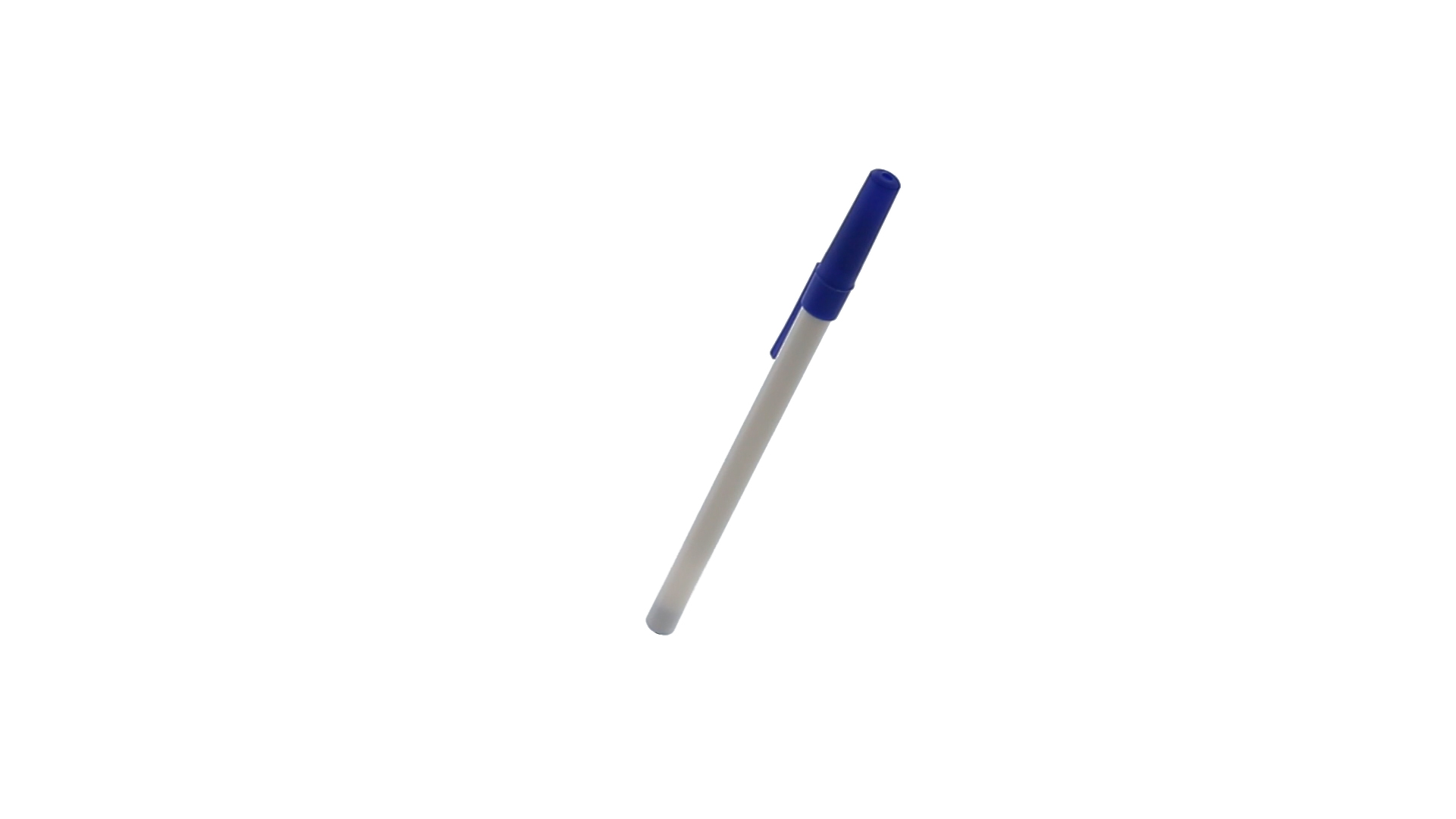 Klassischer zweifarbiger Kugelschreiber mit Kappe und halbtransparentem weissem Gehäuse mit Kontrastdetails in kräftigen Farben. Blaue Tinte.