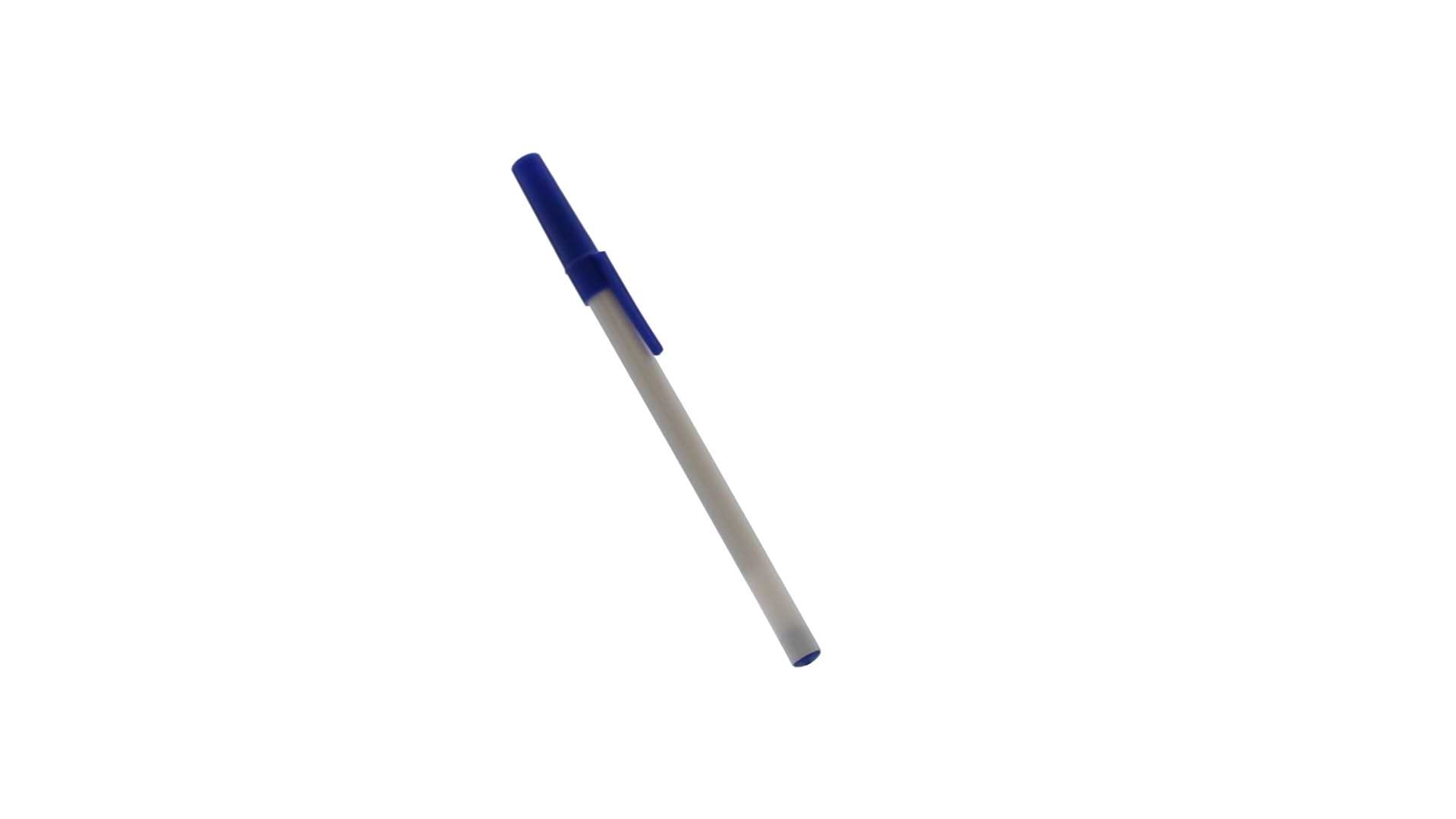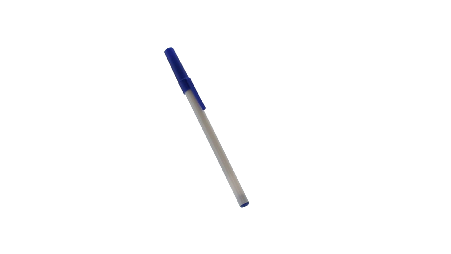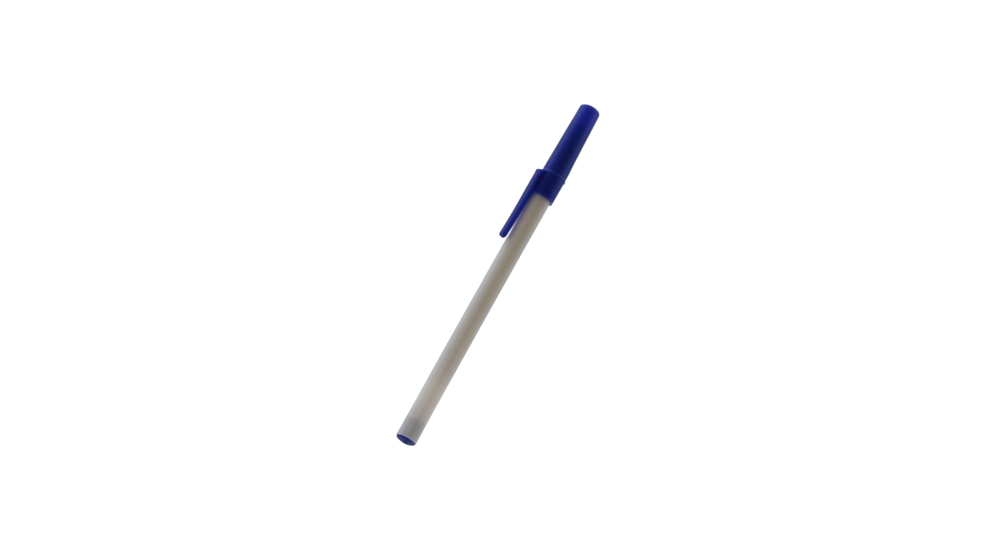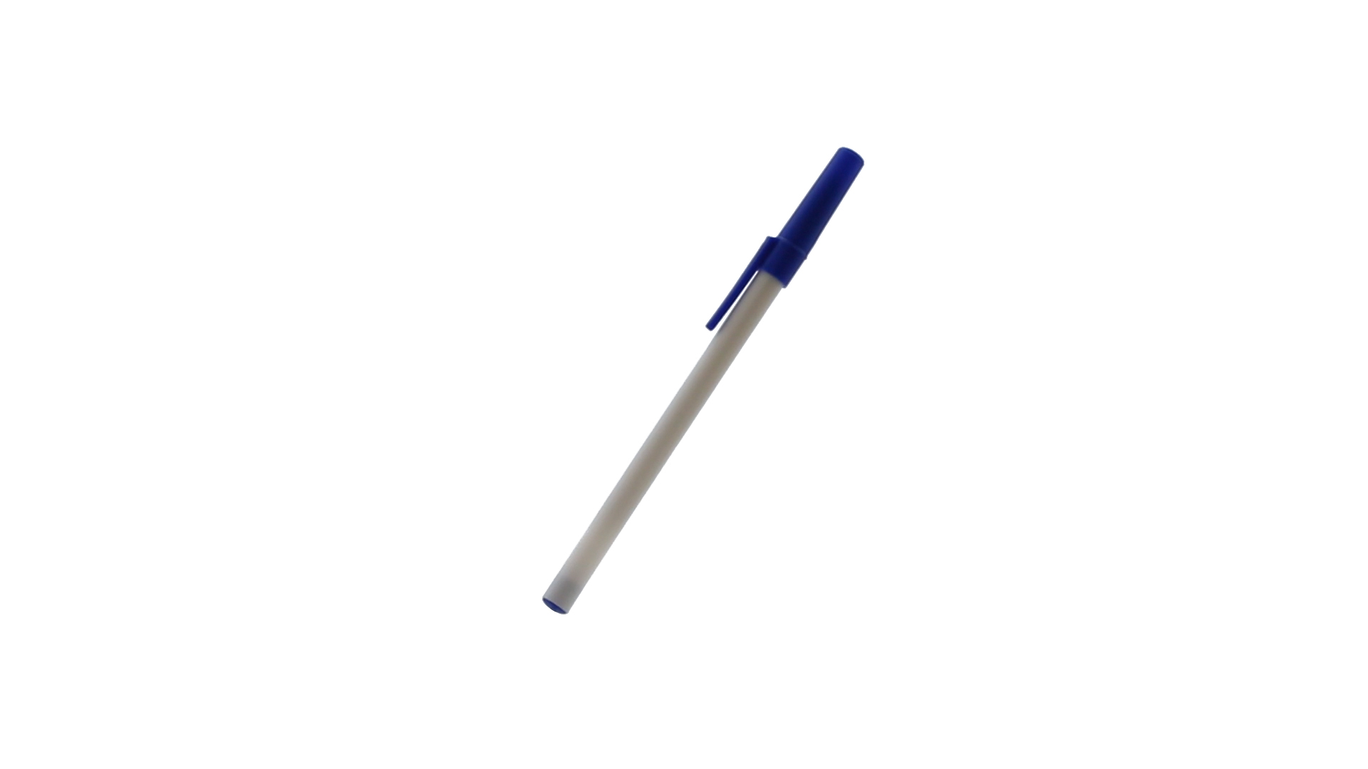 Klassischer zweifarbiger Kugelschreiber mit Kappe und halbtransparentem weissem Gehäuse mit Kontrastdetails in kräftigen Farben. Blaue Tinte.