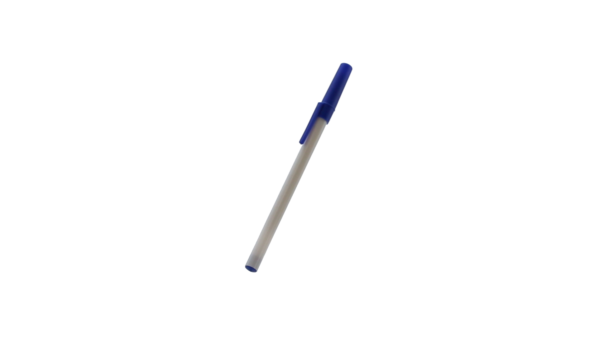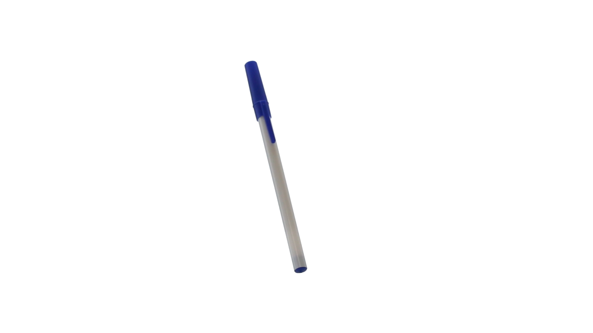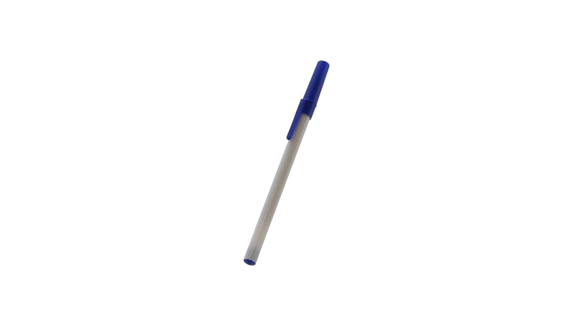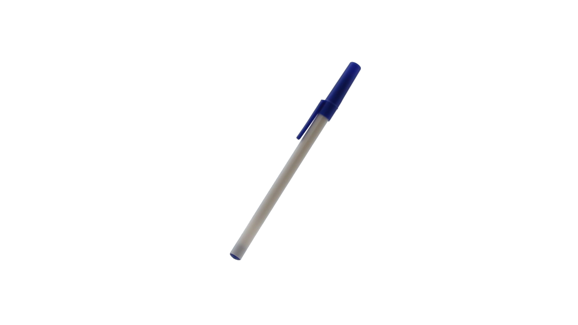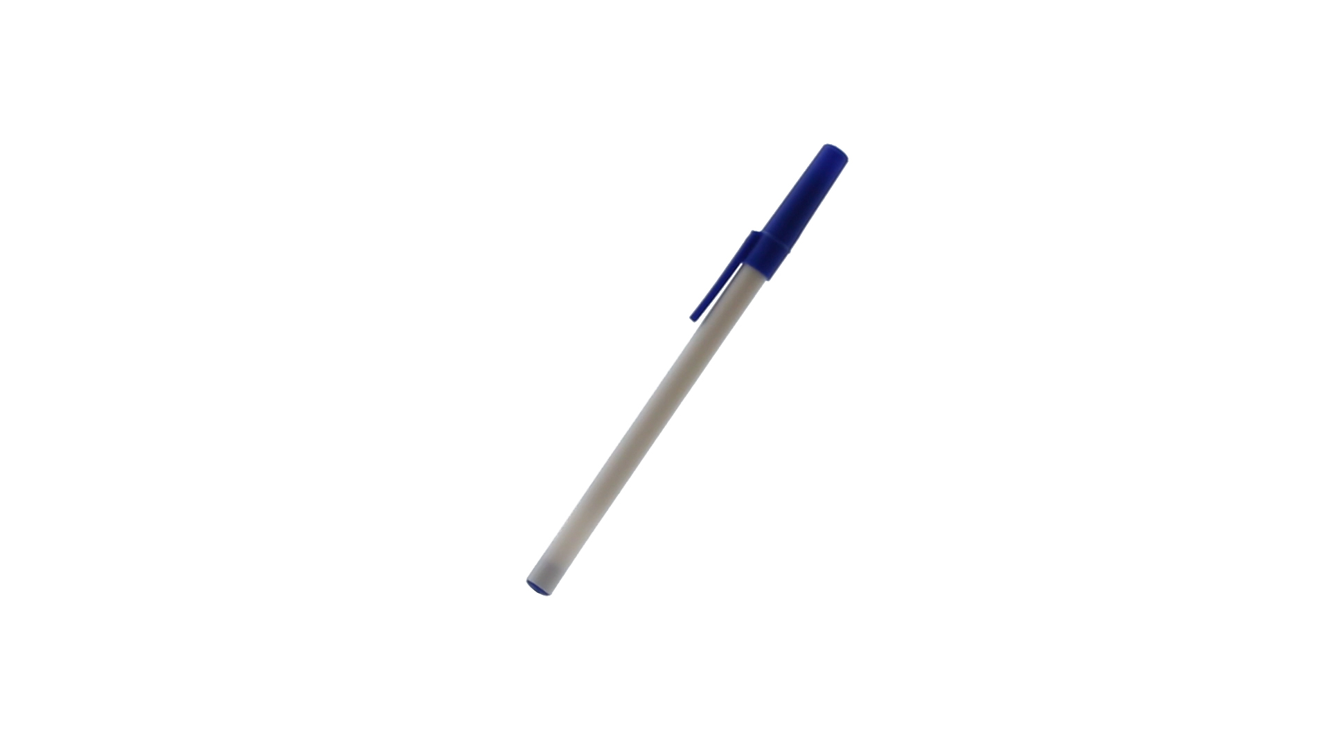 Klassischer zweifarbiger Kugelschreiber mit Kappe und halbtransparentem weissem Gehäuse mit Kontrastdetails in kräftigen Farben. Blaue Tinte.