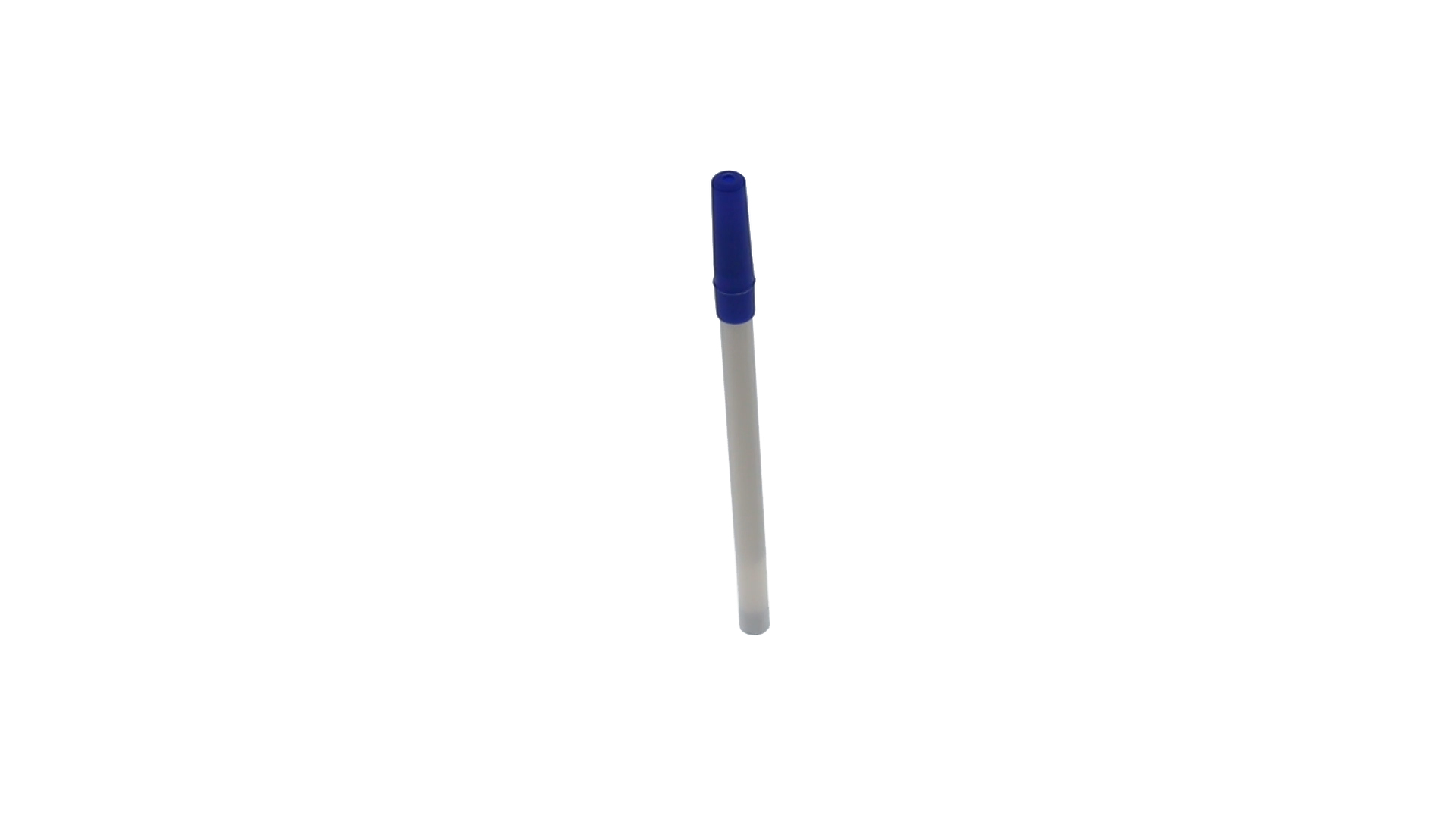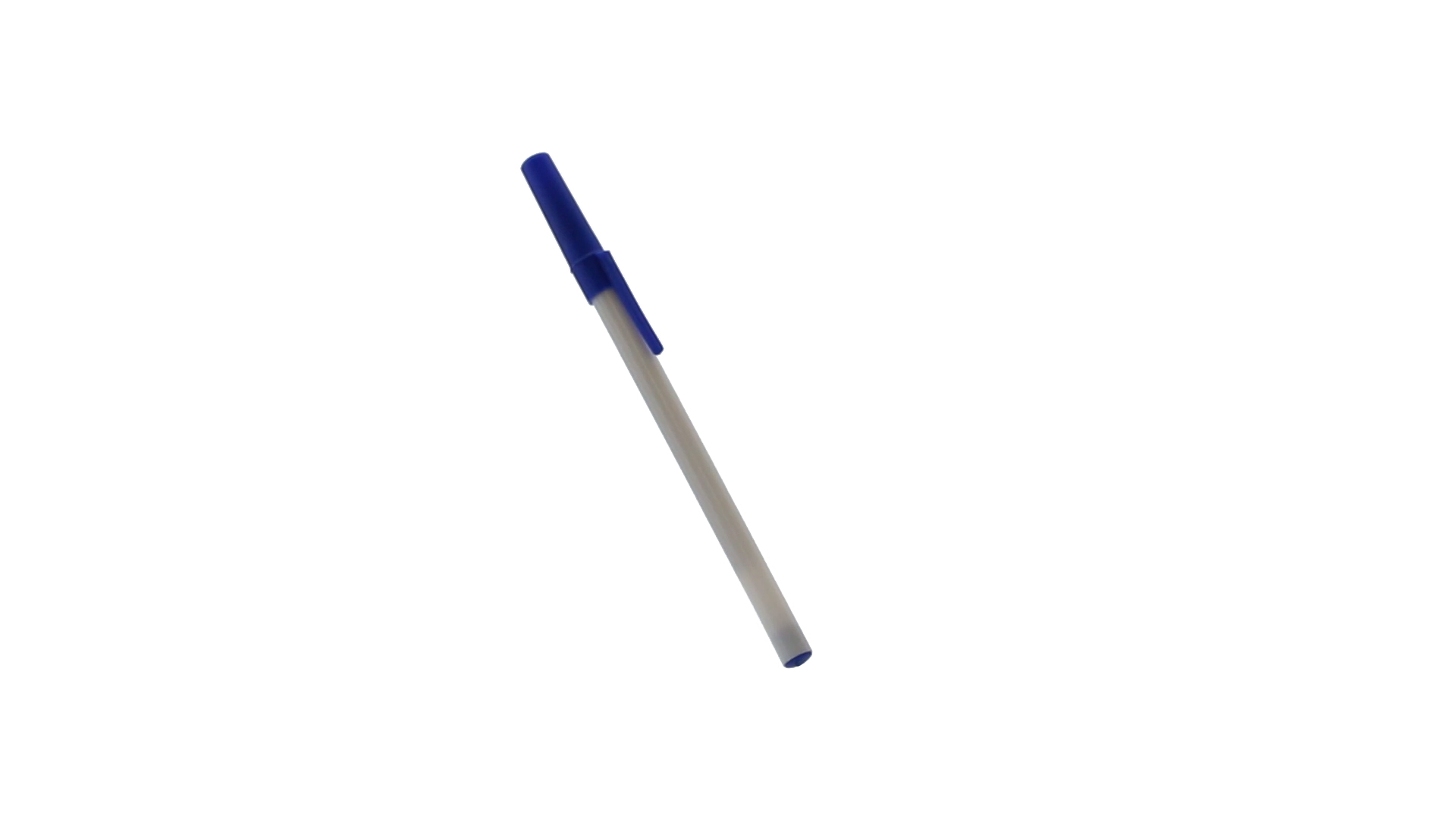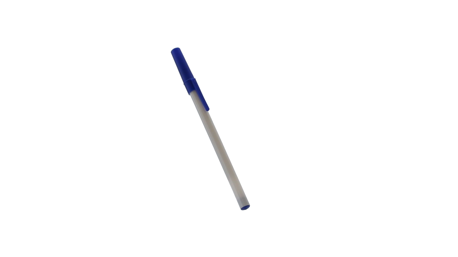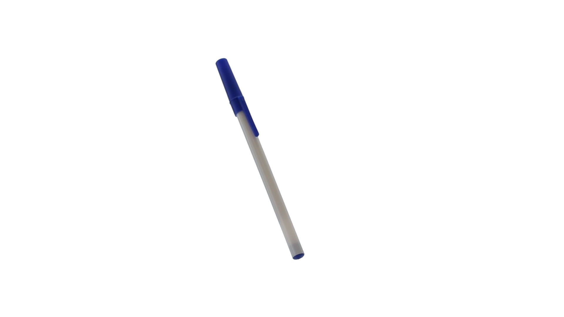 Klassischer zweifarbiger Kugelschreiber mit Kappe und halbtransparentem weissem Gehäuse mit Kontrastdetails in kräftigen Farben. Blaue Tinte.