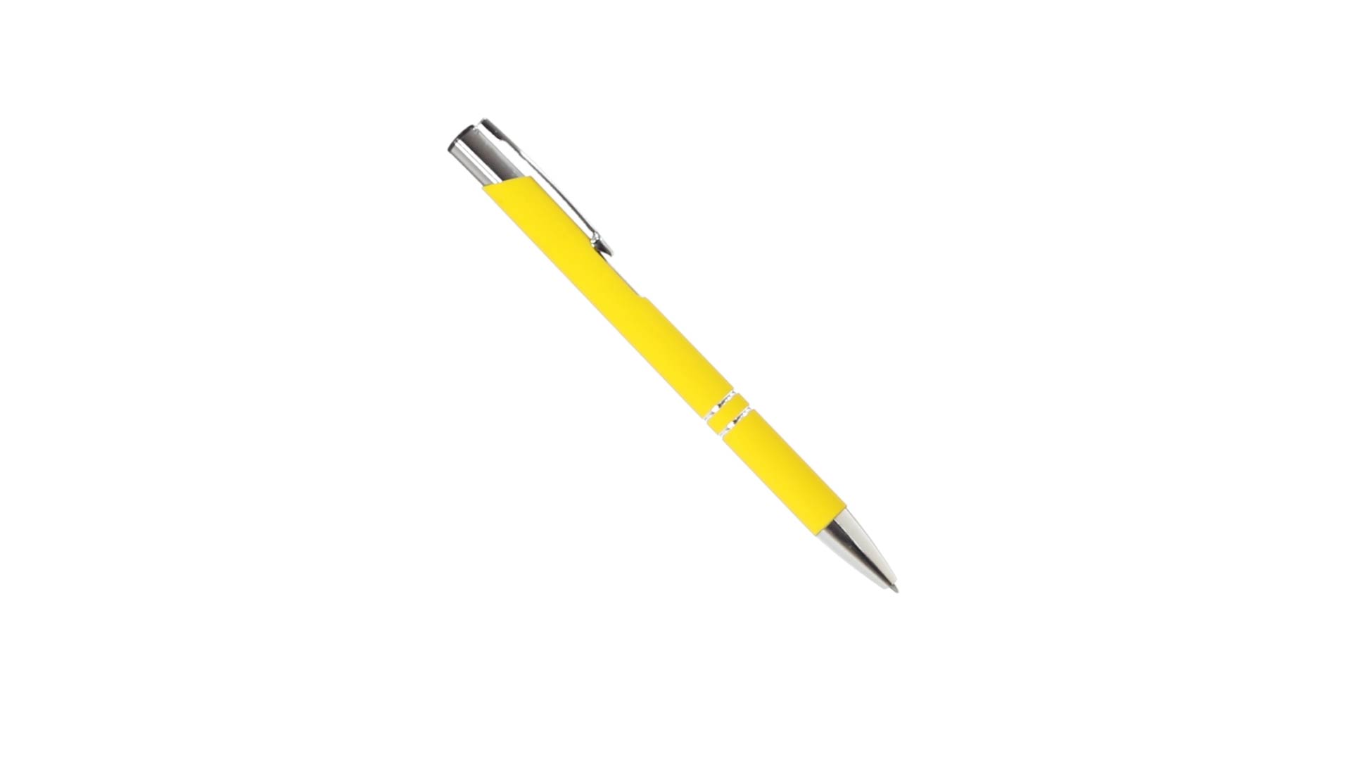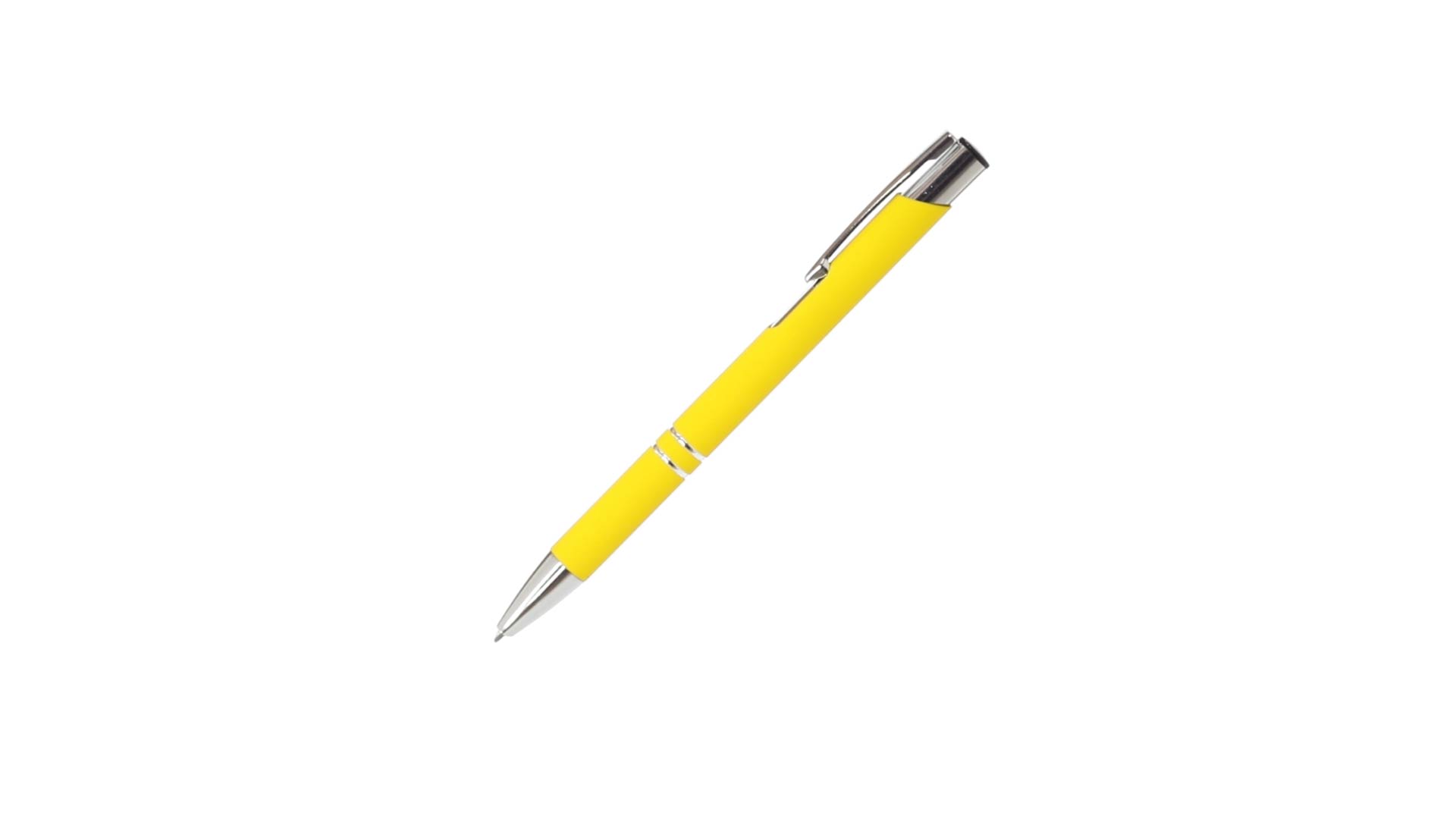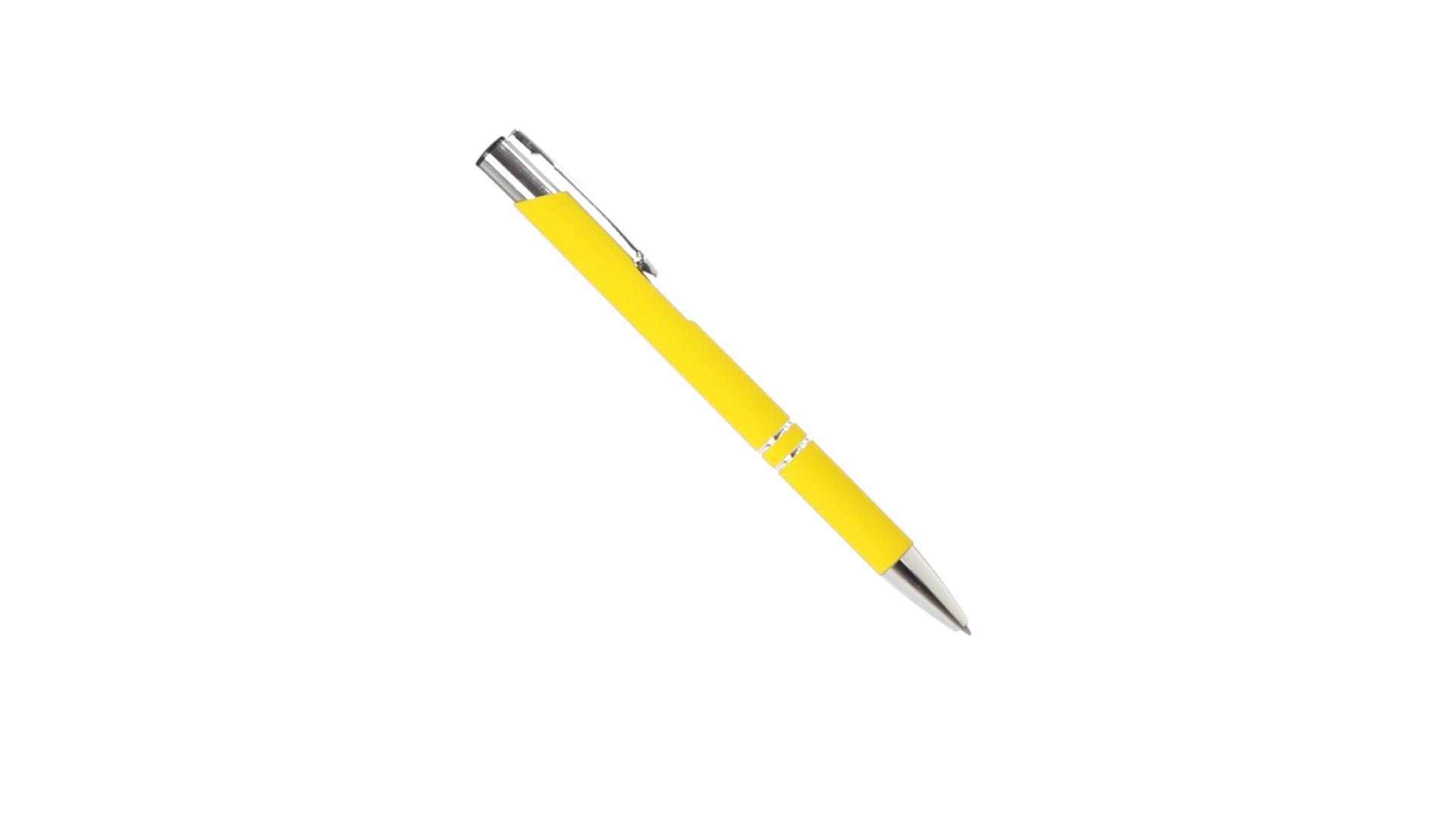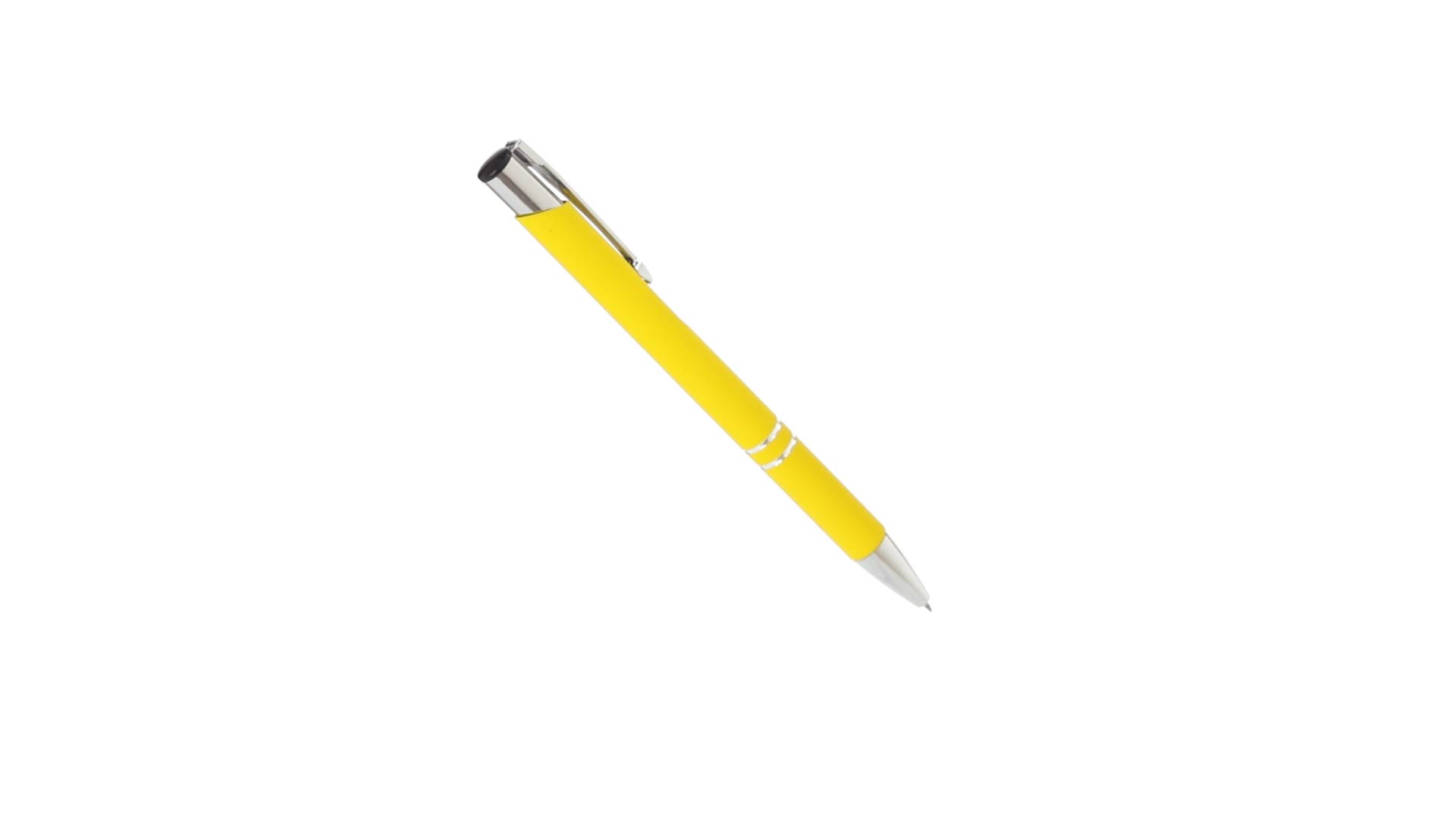 Kugelschreiber mit Push-Up-Mechanismus in elegantem zweifarbigem Design. Aluminiumgehäuse mit Gummiausrüstung, speziell für den Laserdruck entwickelt, dass das Logo in silberfarbenem Ton zeigt. Verchromte Spitze, Ringe und Metallclip. Erhältlich in einer breiten Palette von Farben, mit Jumbo-Patrone und blauer Tintenmine.