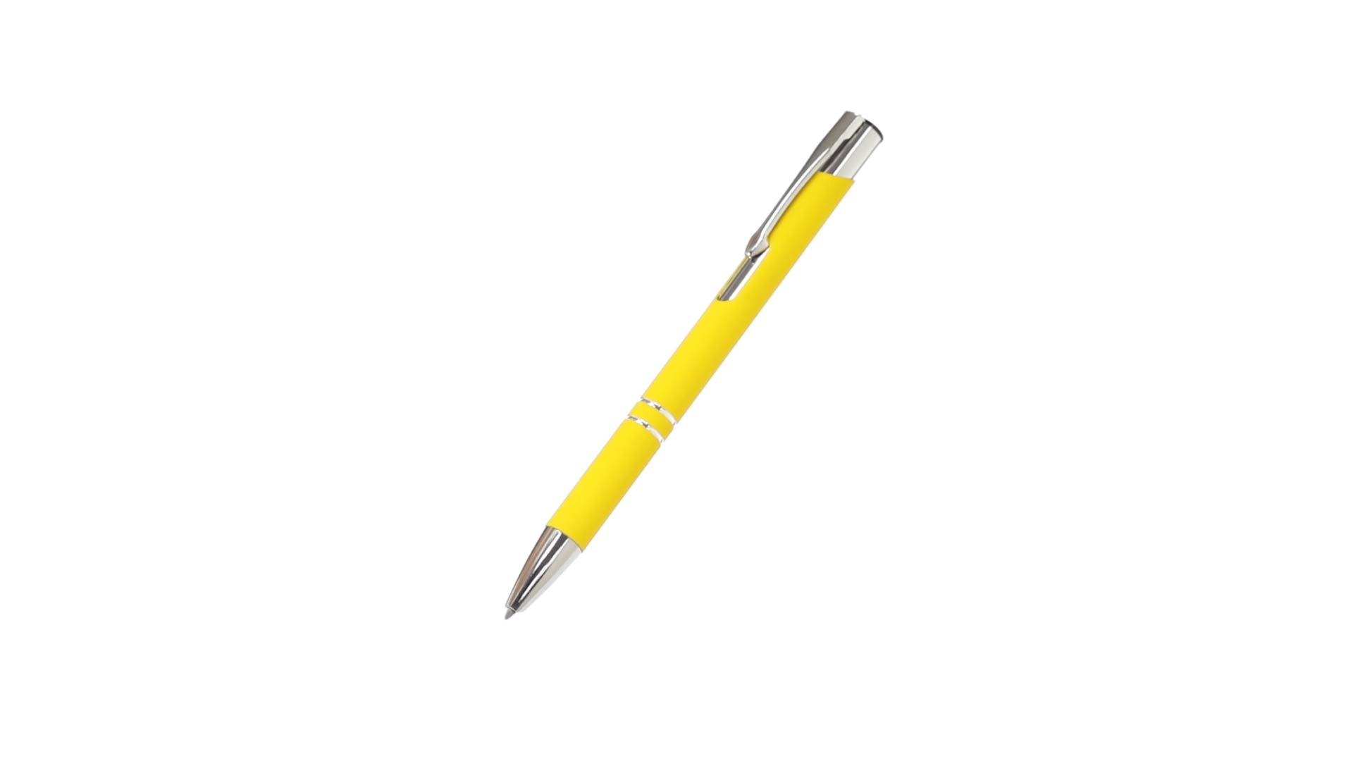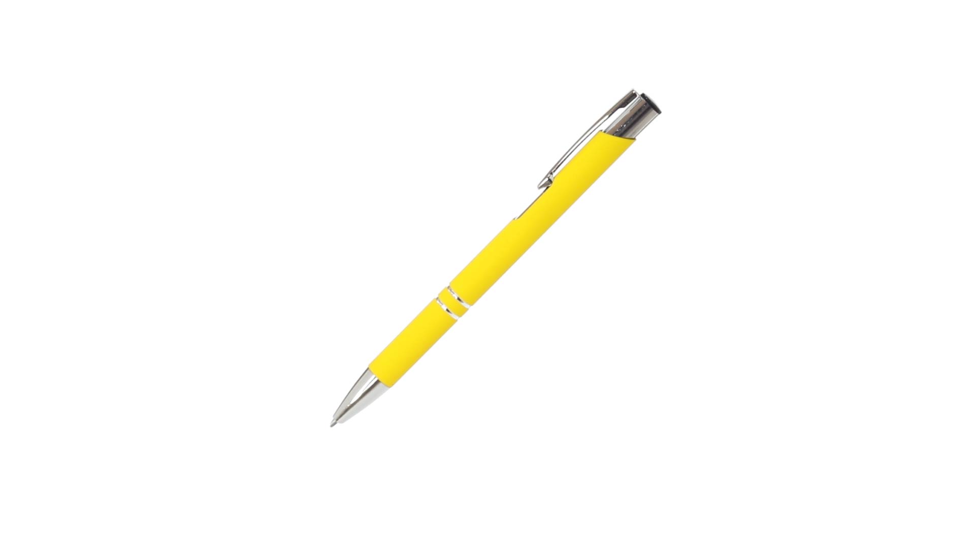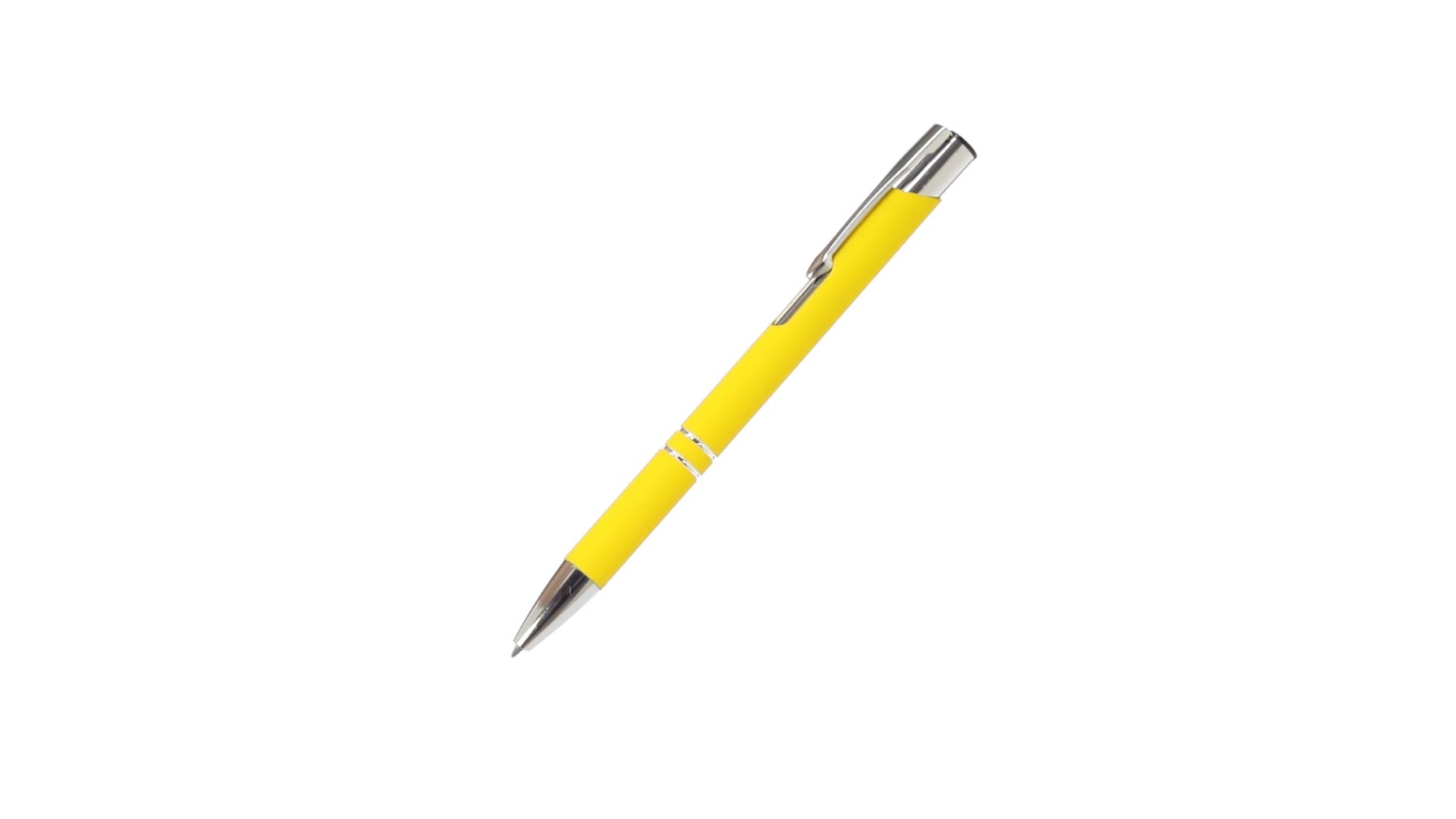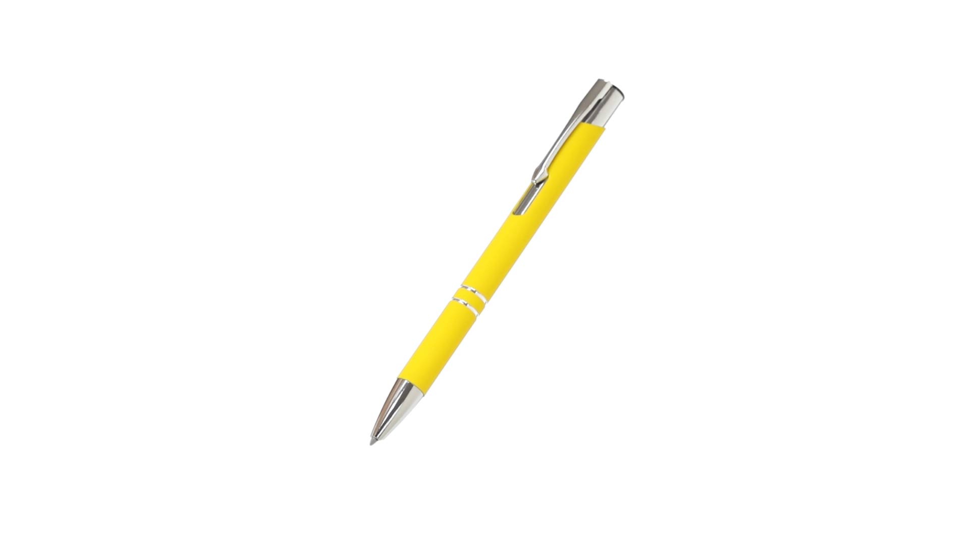 Kugelschreiber mit Push-Up-Mechanismus in elegantem zweifarbigem Design. Aluminiumgehäuse mit Gummiausrüstung, speziell für den Laserdruck entwickelt, dass das Logo in silberfarbenem Ton zeigt. Verchromte Spitze, Ringe und Metallclip. Erhältlich in einer breiten Palette von Farben, mit Jumbo-Patrone und blauer Tintenmine.