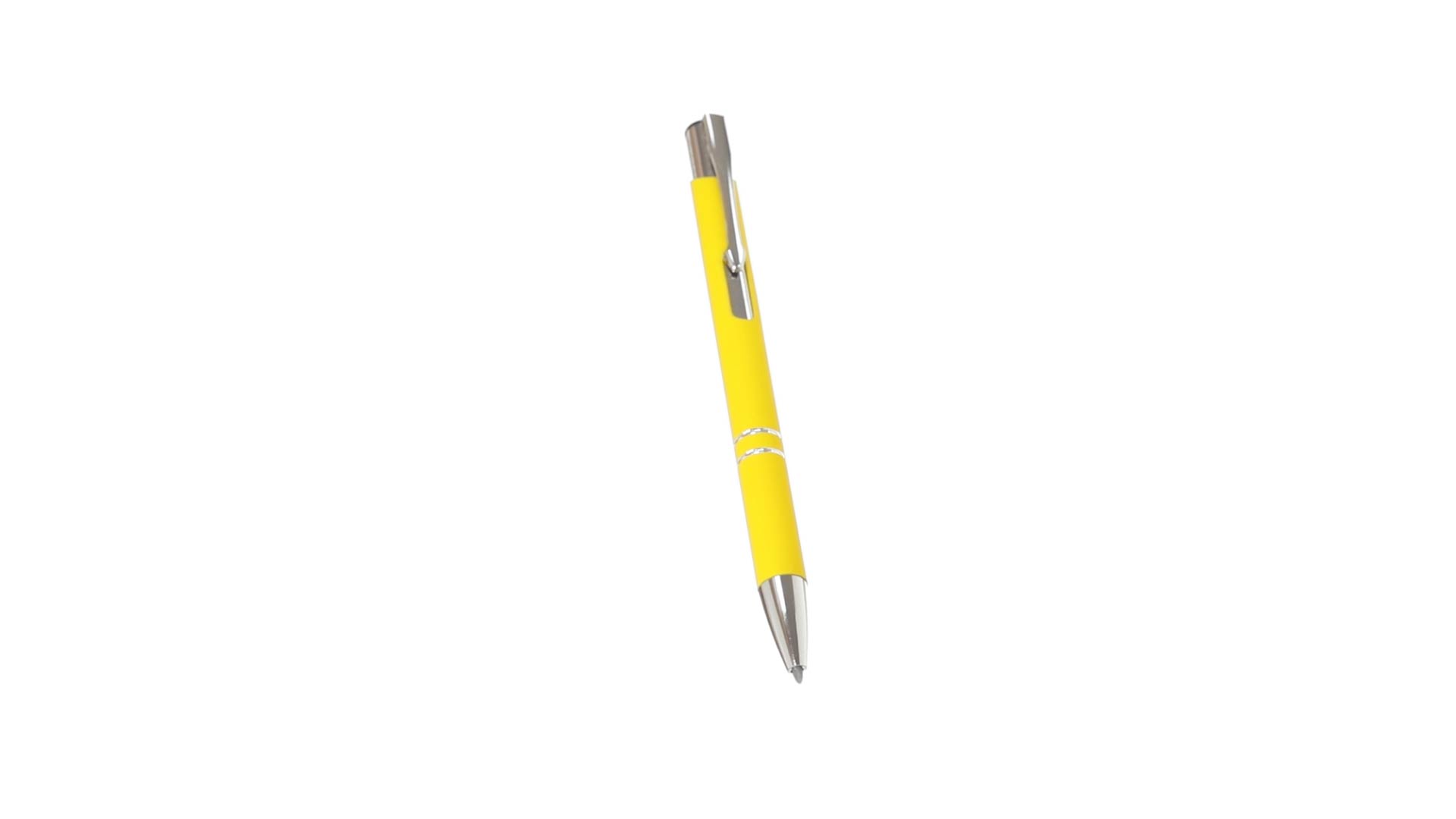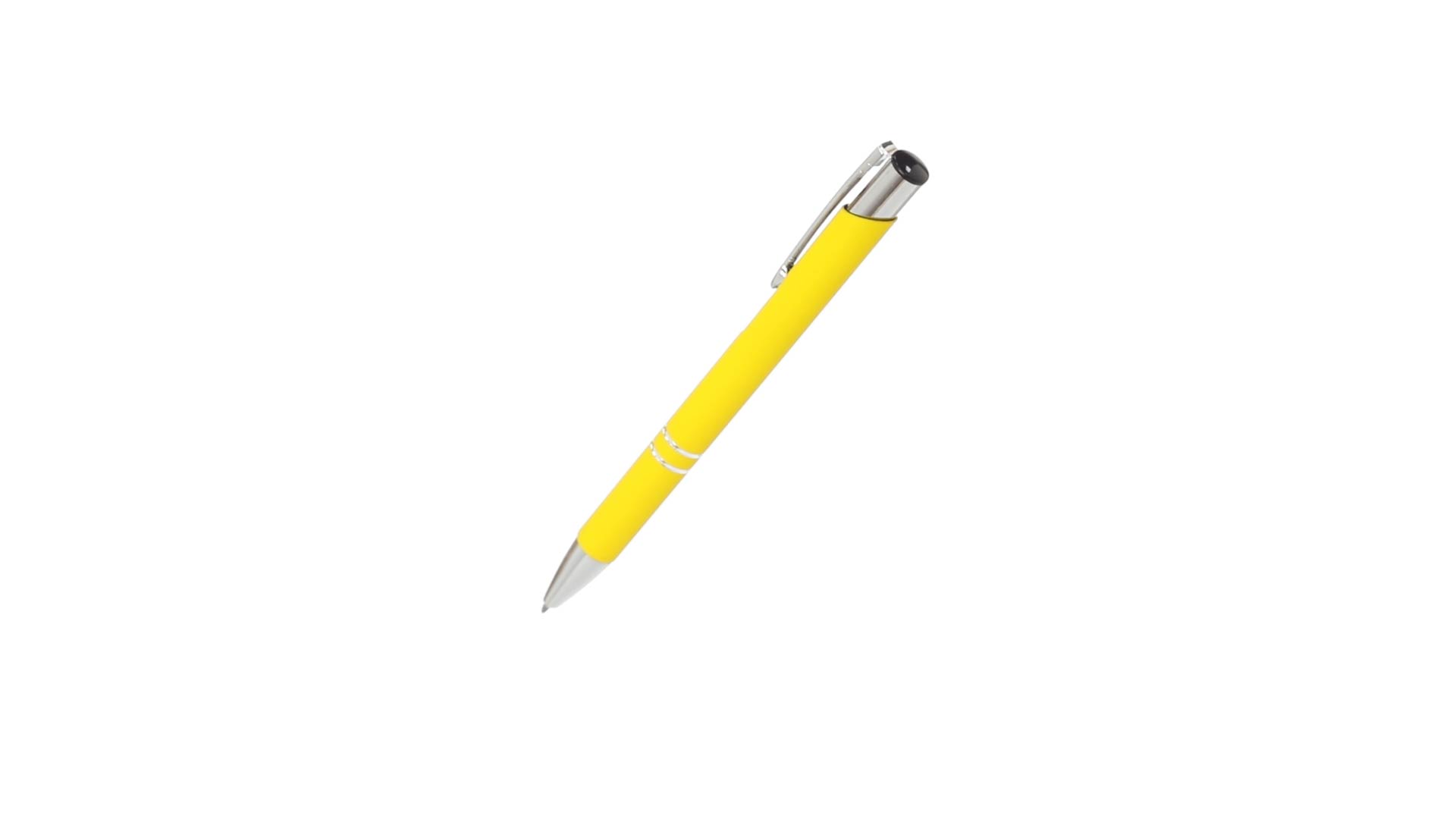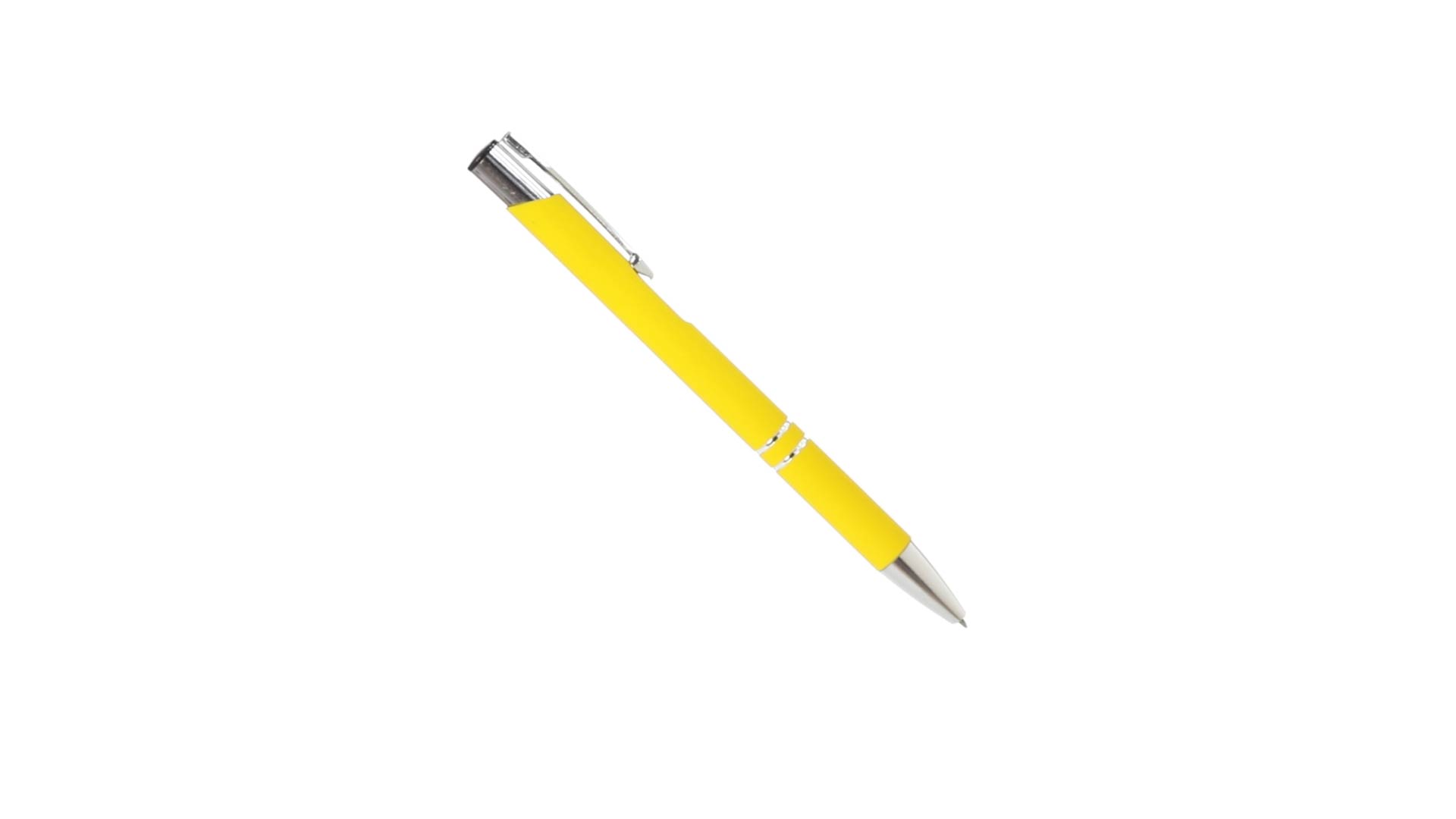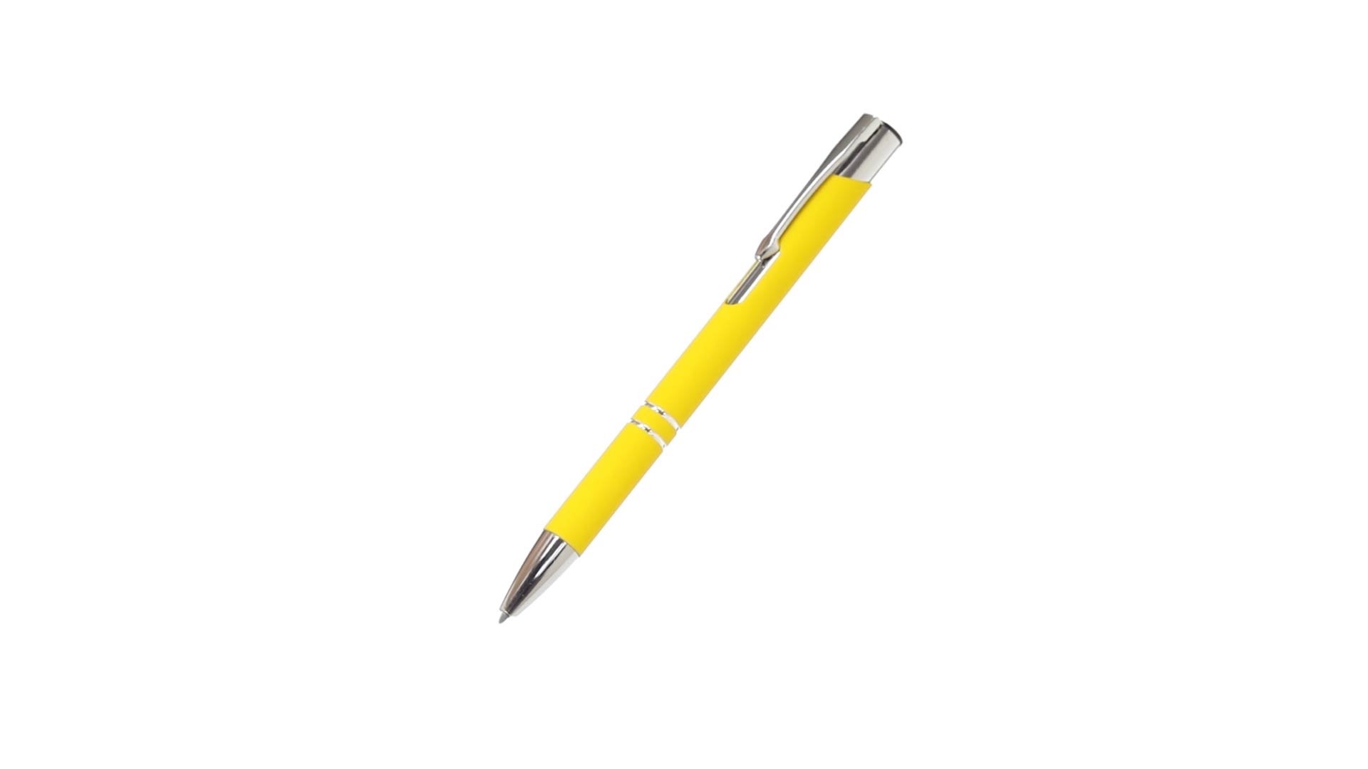 Kugelschreiber mit Push-Up-Mechanismus in elegantem zweifarbigem Design. Aluminiumgehäuse mit Gummiausrüstung, speziell für den Laserdruck entwickelt, dass das Logo in silberfarbenem Ton zeigt. Verchromte Spitze, Ringe und Metallclip. Erhältlich in einer breiten Palette von Farben, mit Jumbo-Patrone und blauer Tintenmine.