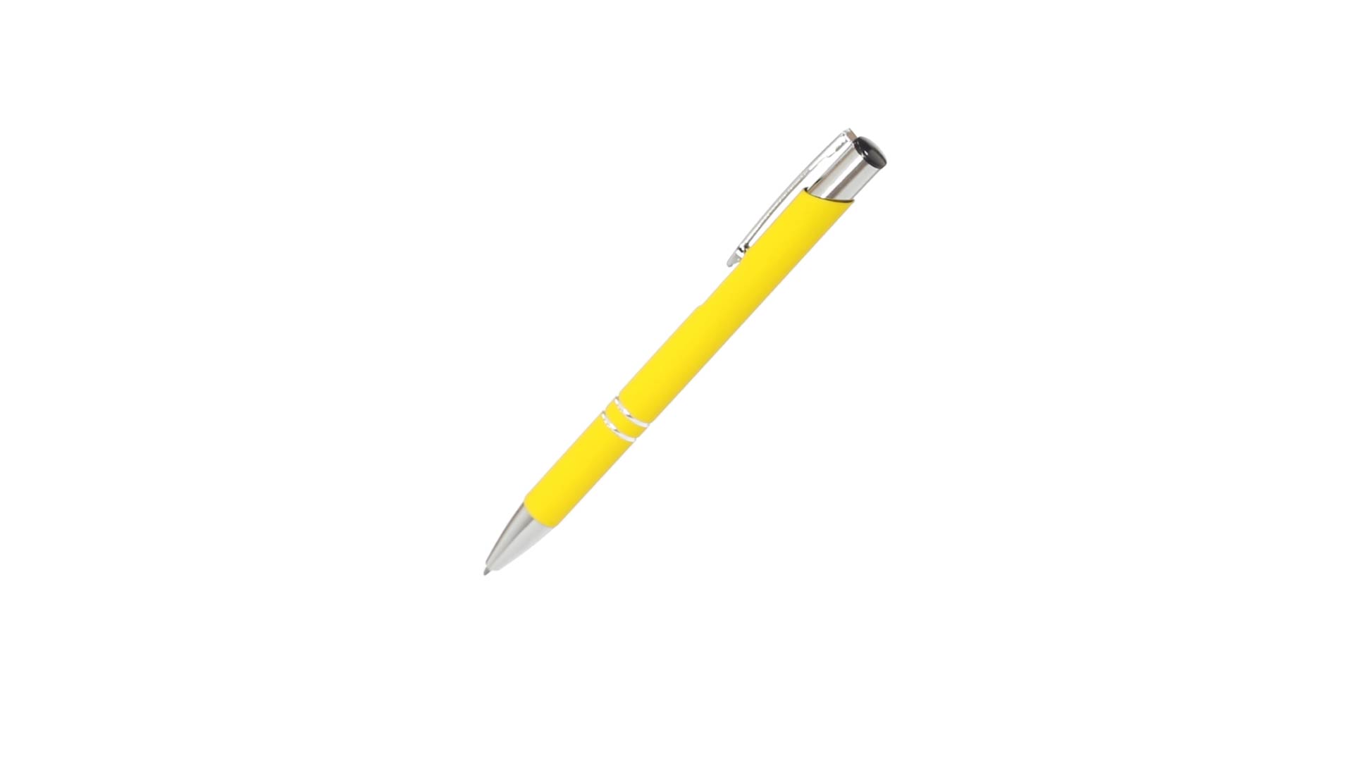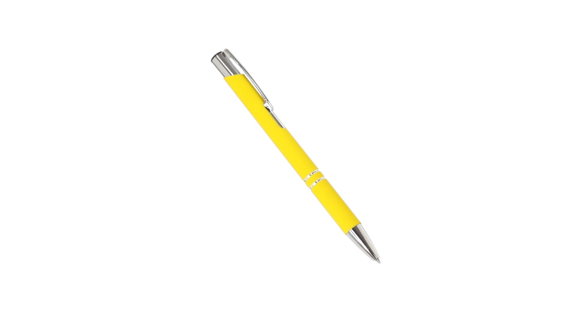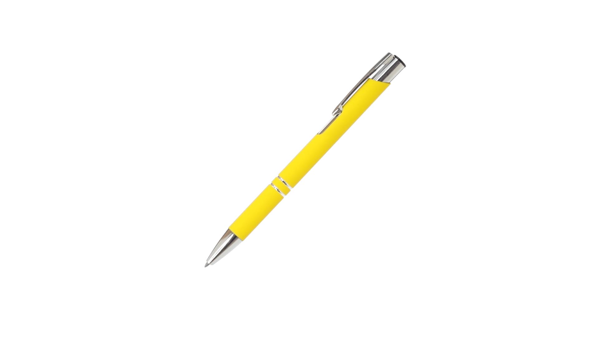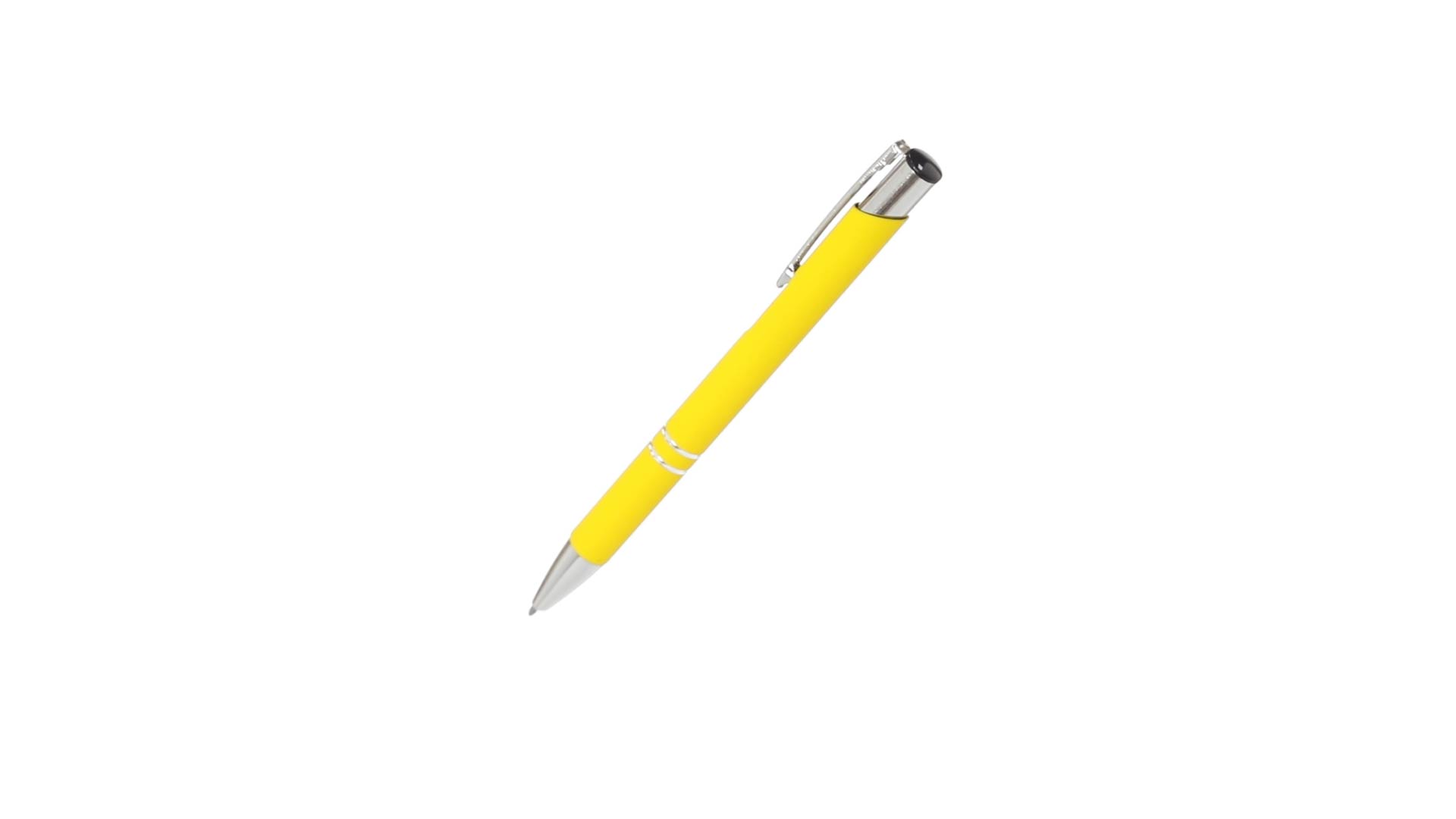 Kugelschreiber mit Push-Up-Mechanismus in elegantem zweifarbigem Design. Aluminiumgehäuse mit Gummiausrüstung, speziell für den Laserdruck entwickelt, dass das Logo in silberfarbenem Ton zeigt. Verchromte Spitze, Ringe und Metallclip. Erhältlich in einer breiten Palette von Farben, mit Jumbo-Patrone und blauer Tintenmine.