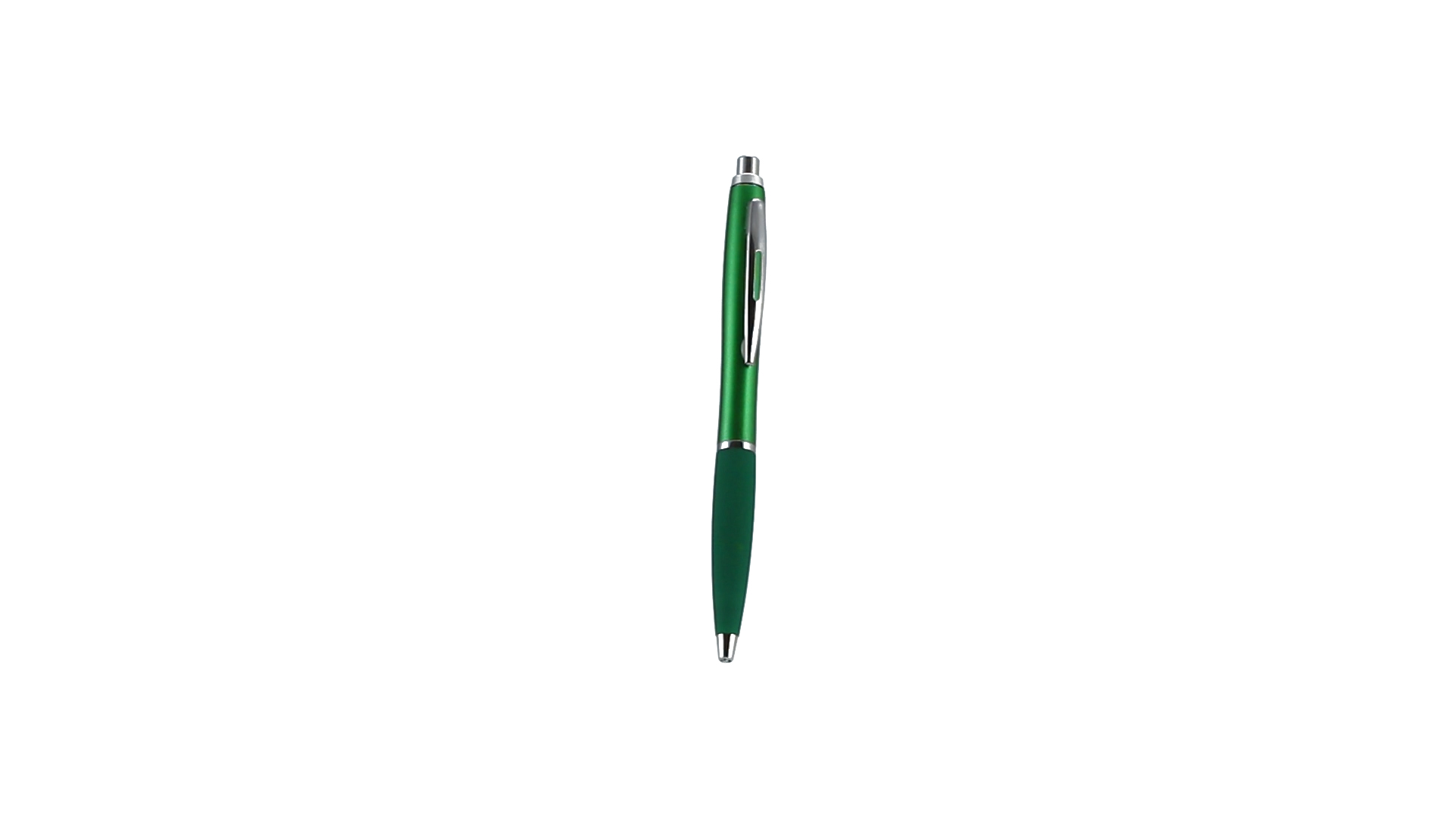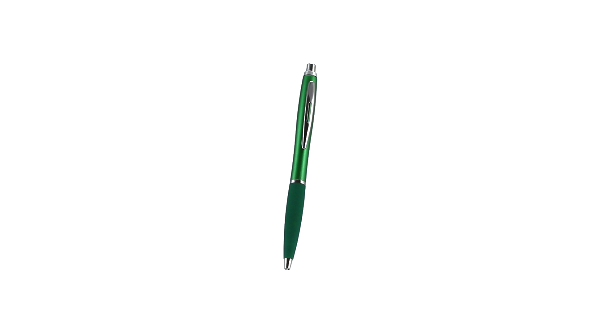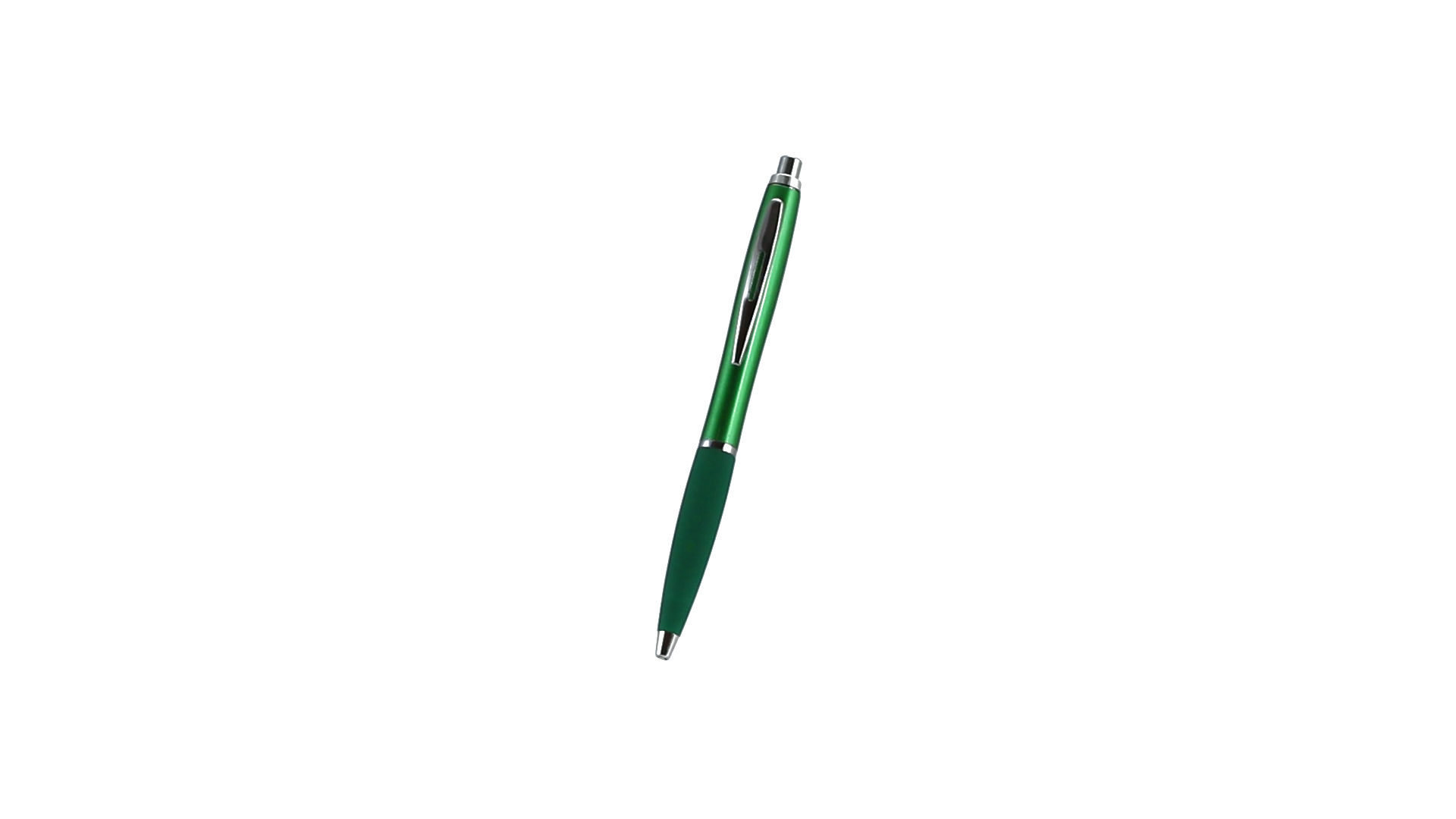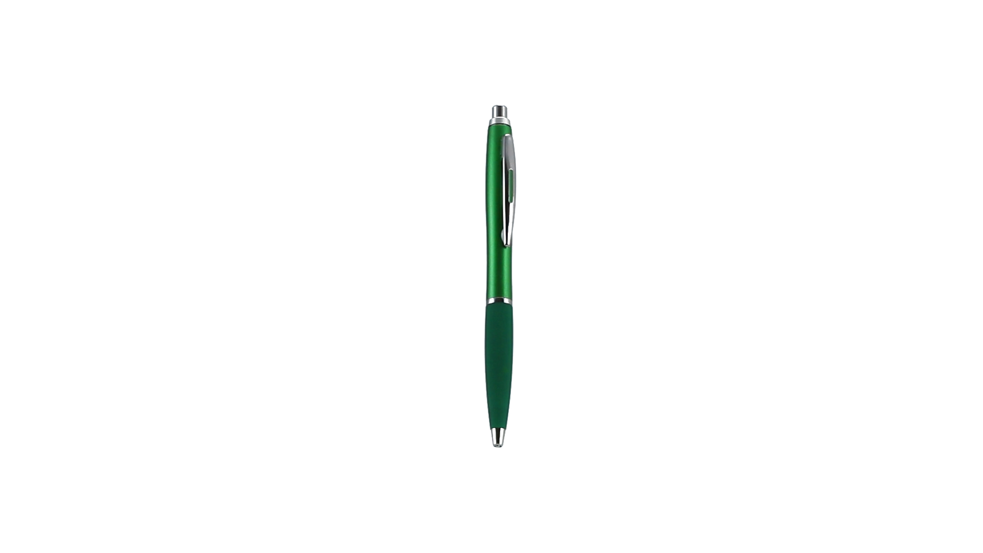 Kräftiger, zweifarbiger Design-Druckkugelschreiber mit silberfarbenen Accessoires und glattem, glänzendem Gehäuse in auffälligen Uni-Farben. Mit komfortablem und weichem Griff passend dazu ein gestanztem Metallclip. Blaue Tinte.
