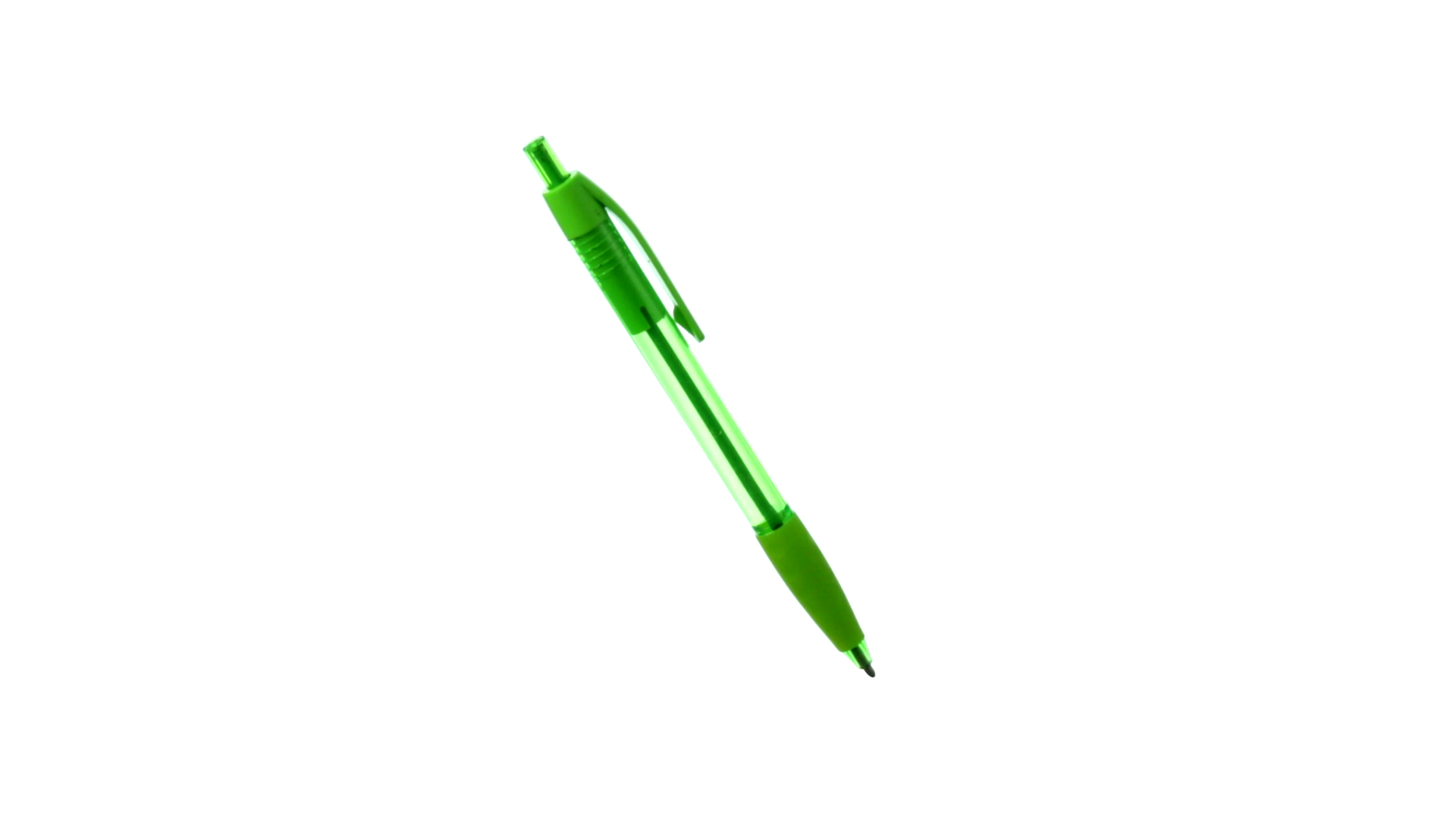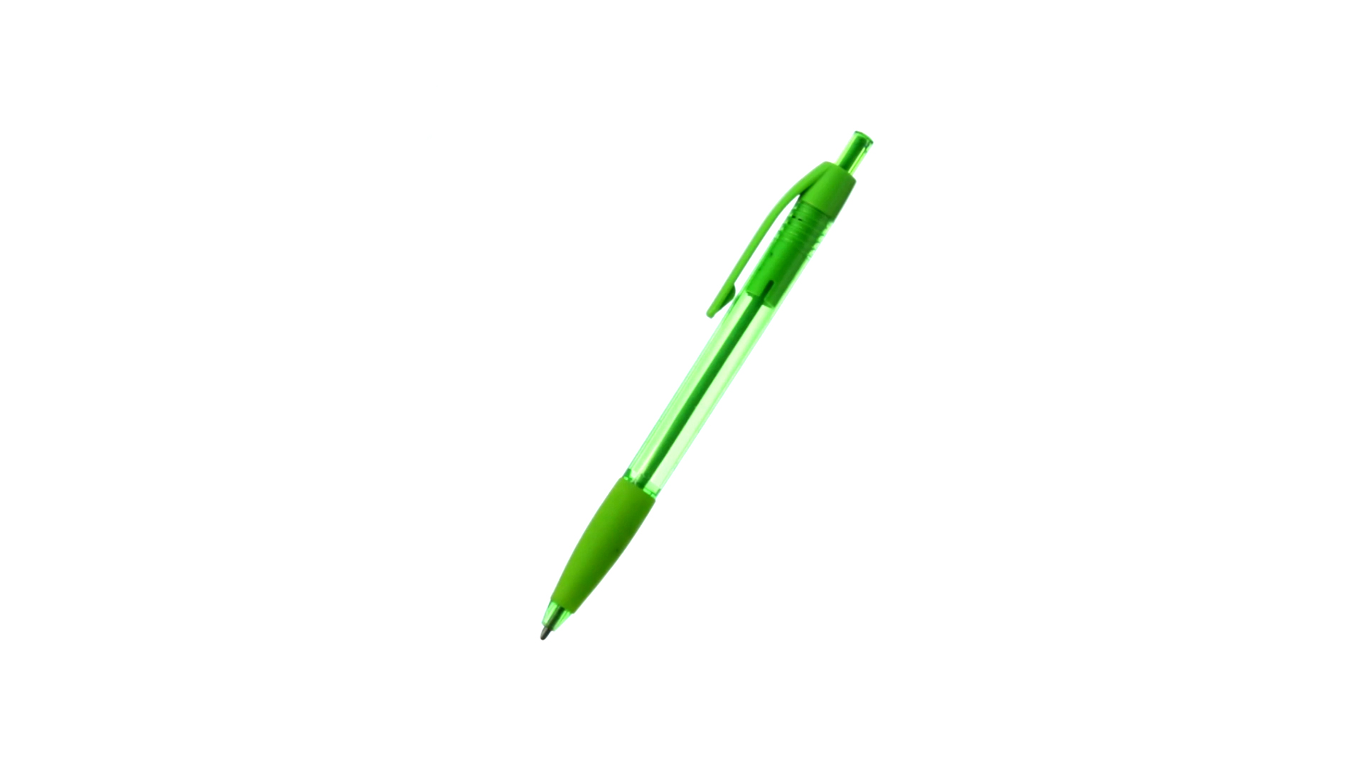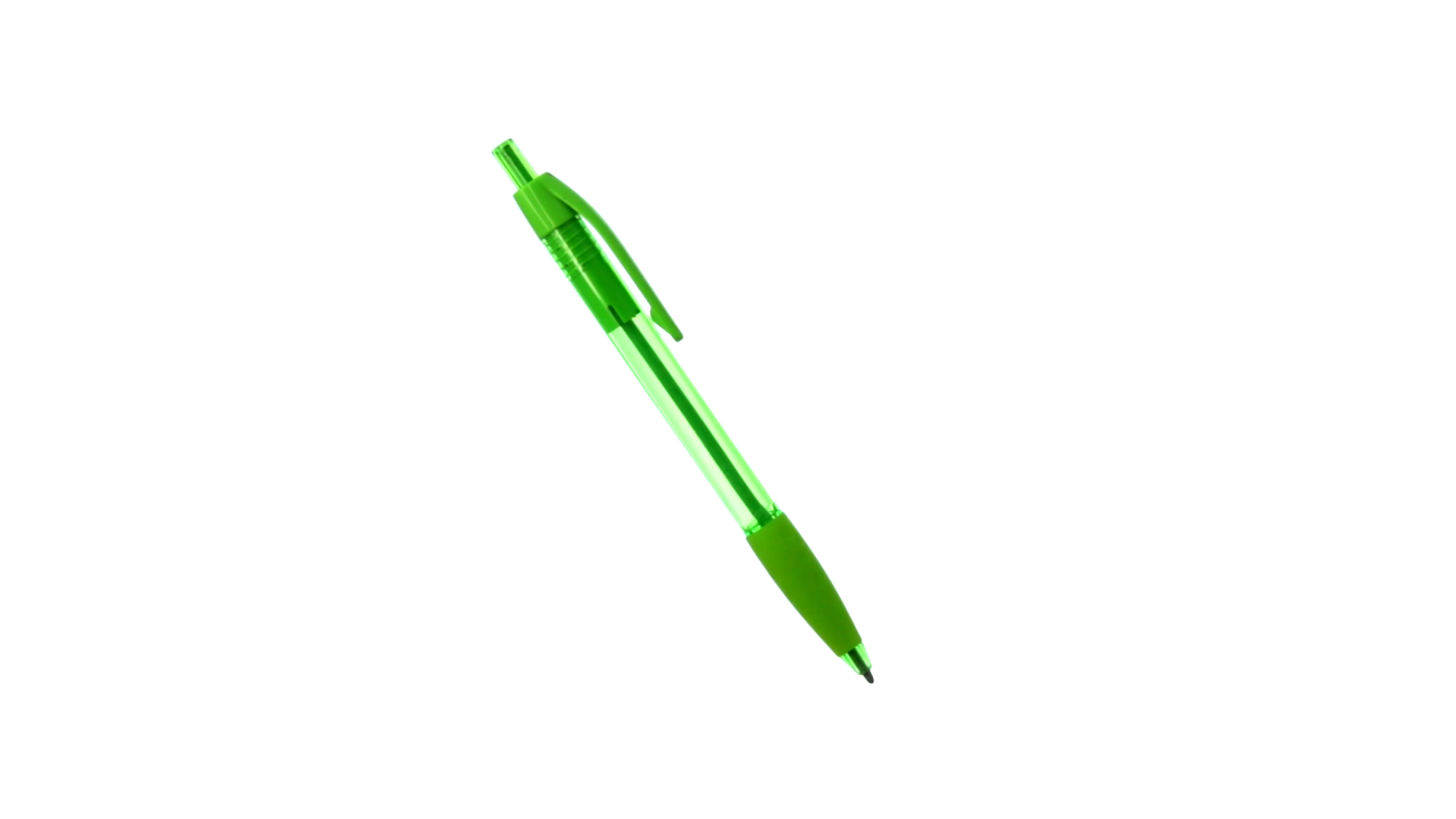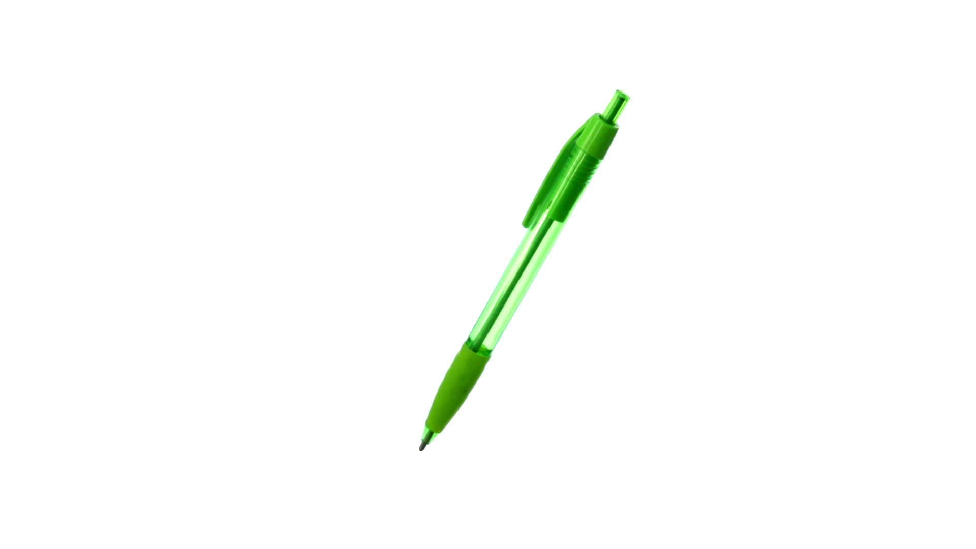 Druck-Kugelschreiber mit halbtransparentem Gehäuse in lebendigen Farben. Mit weichem, bequemem Griff und farblich passendem Clip. Blaue Tinte.
