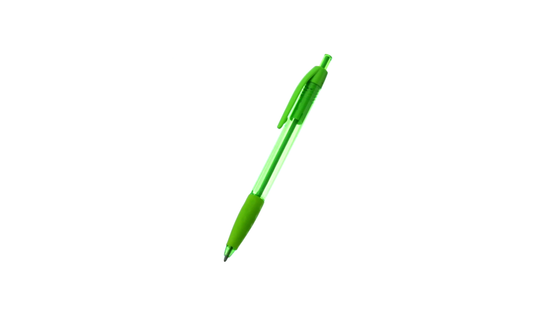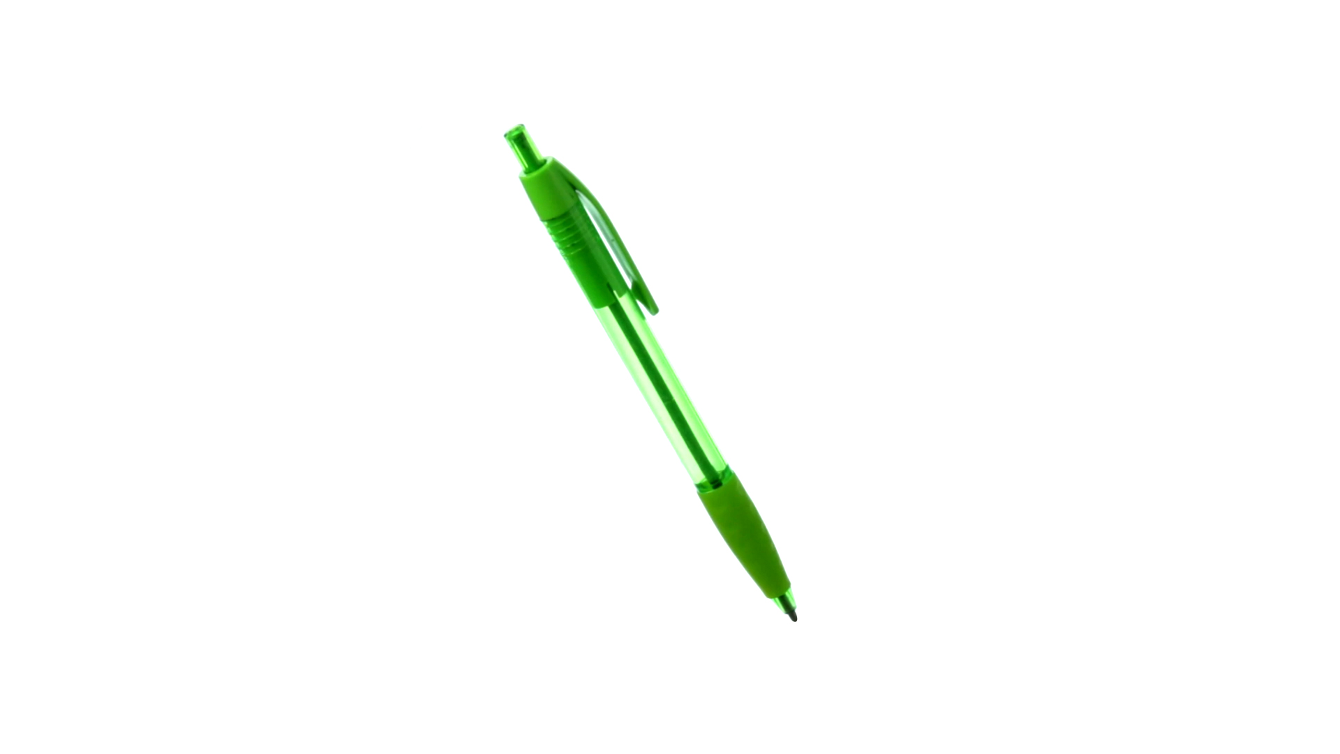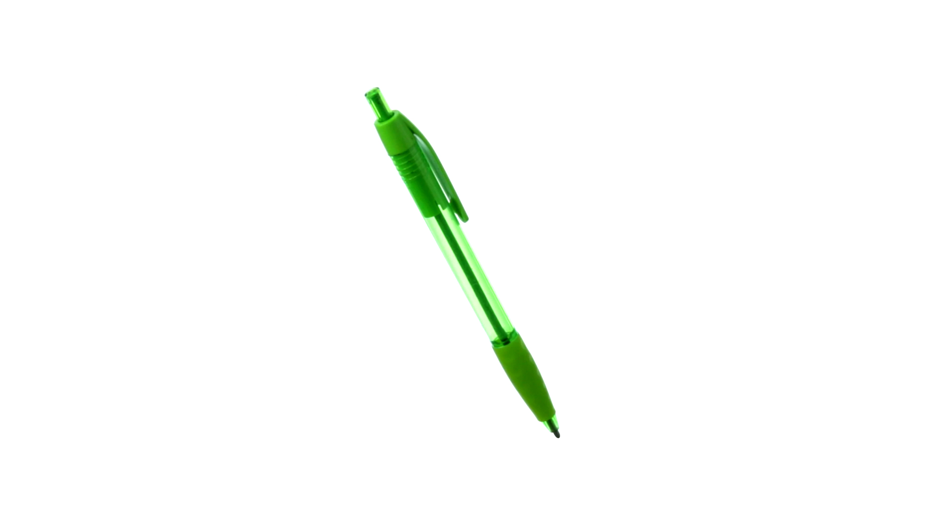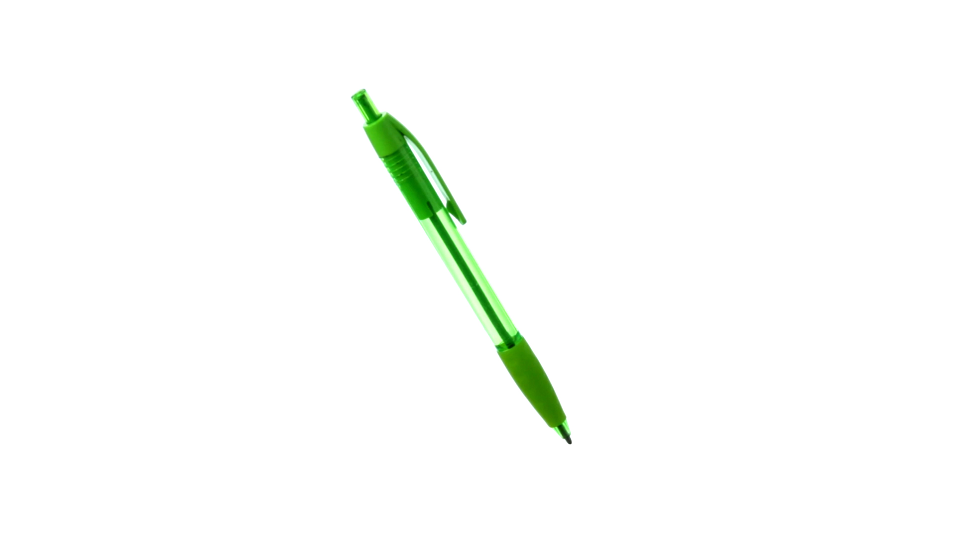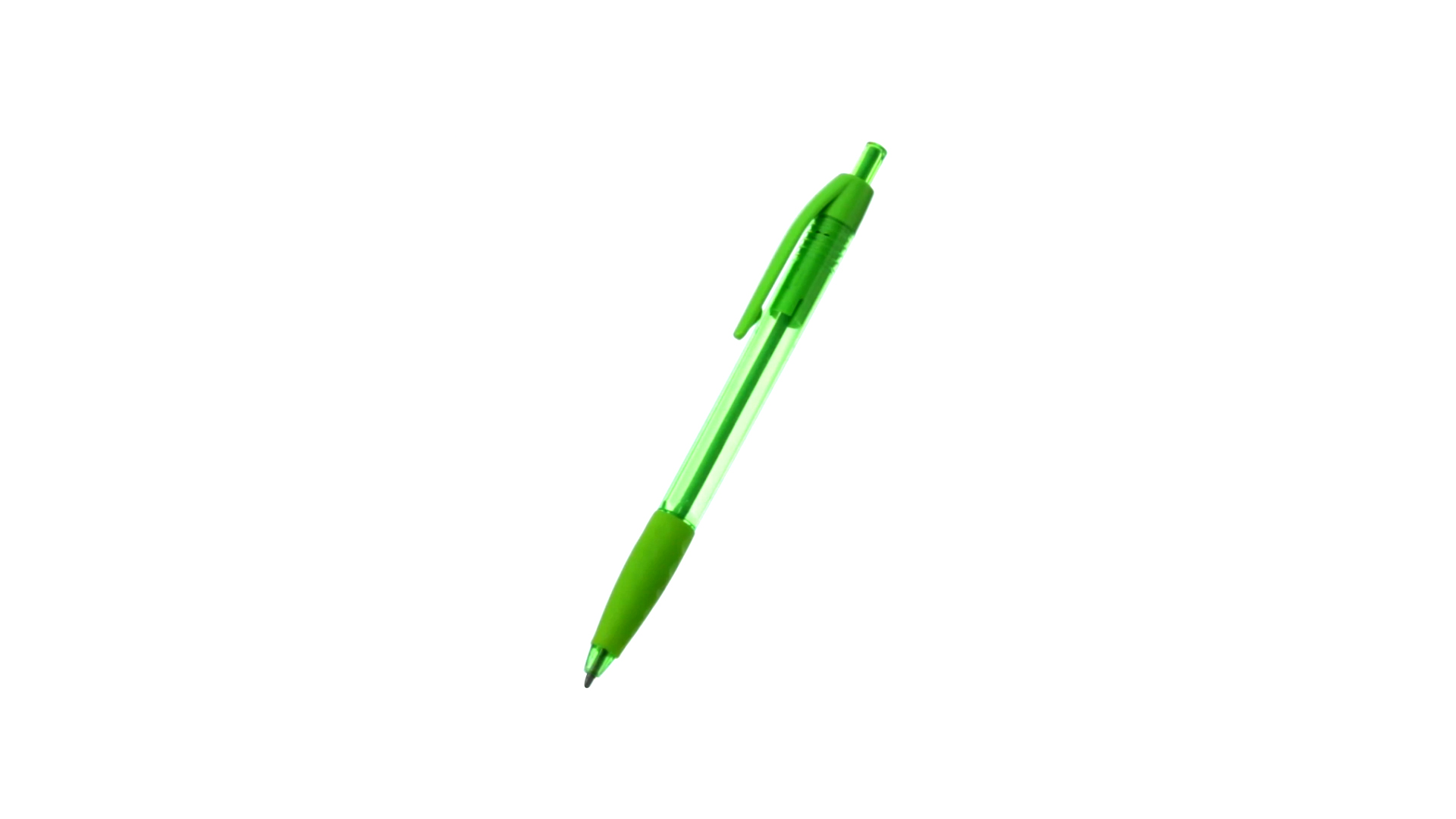 Druck-Kugelschreiber mit halbtransparentem Gehäuse in lebendigen Farben. Mit weichem, bequemem Griff und farblich passendem Clip. Blaue Tinte.